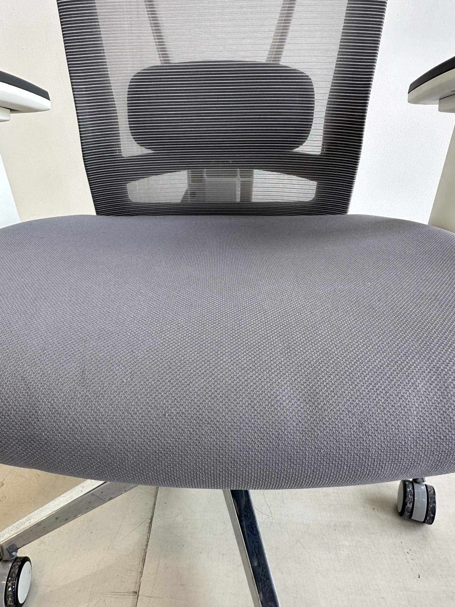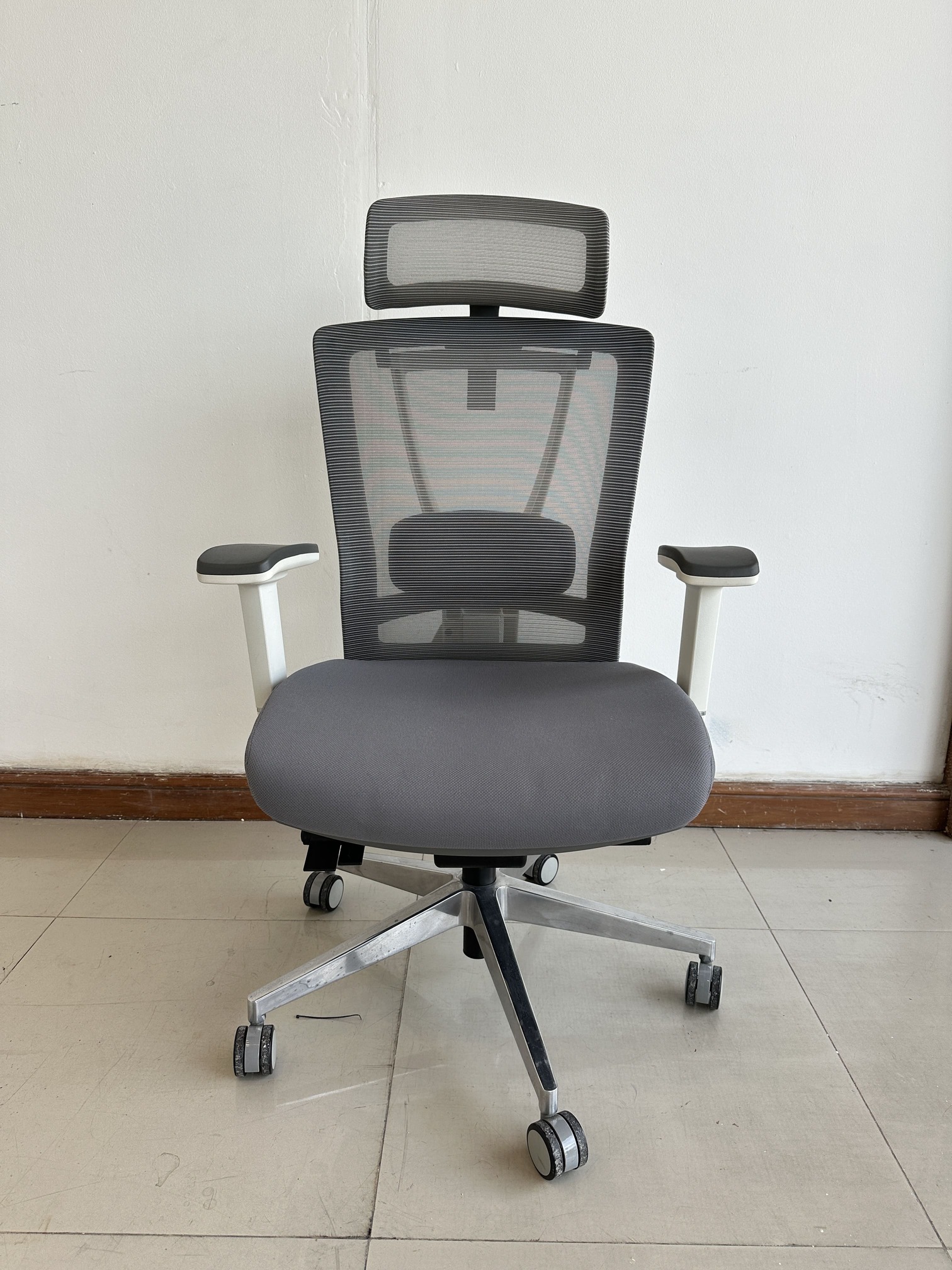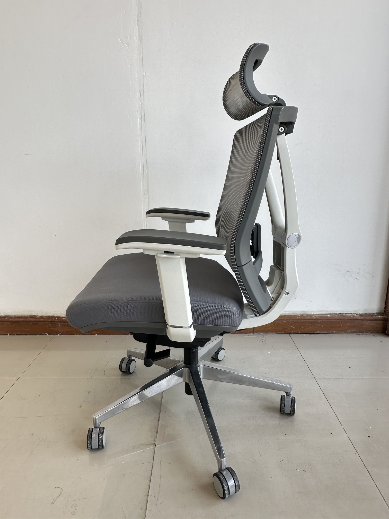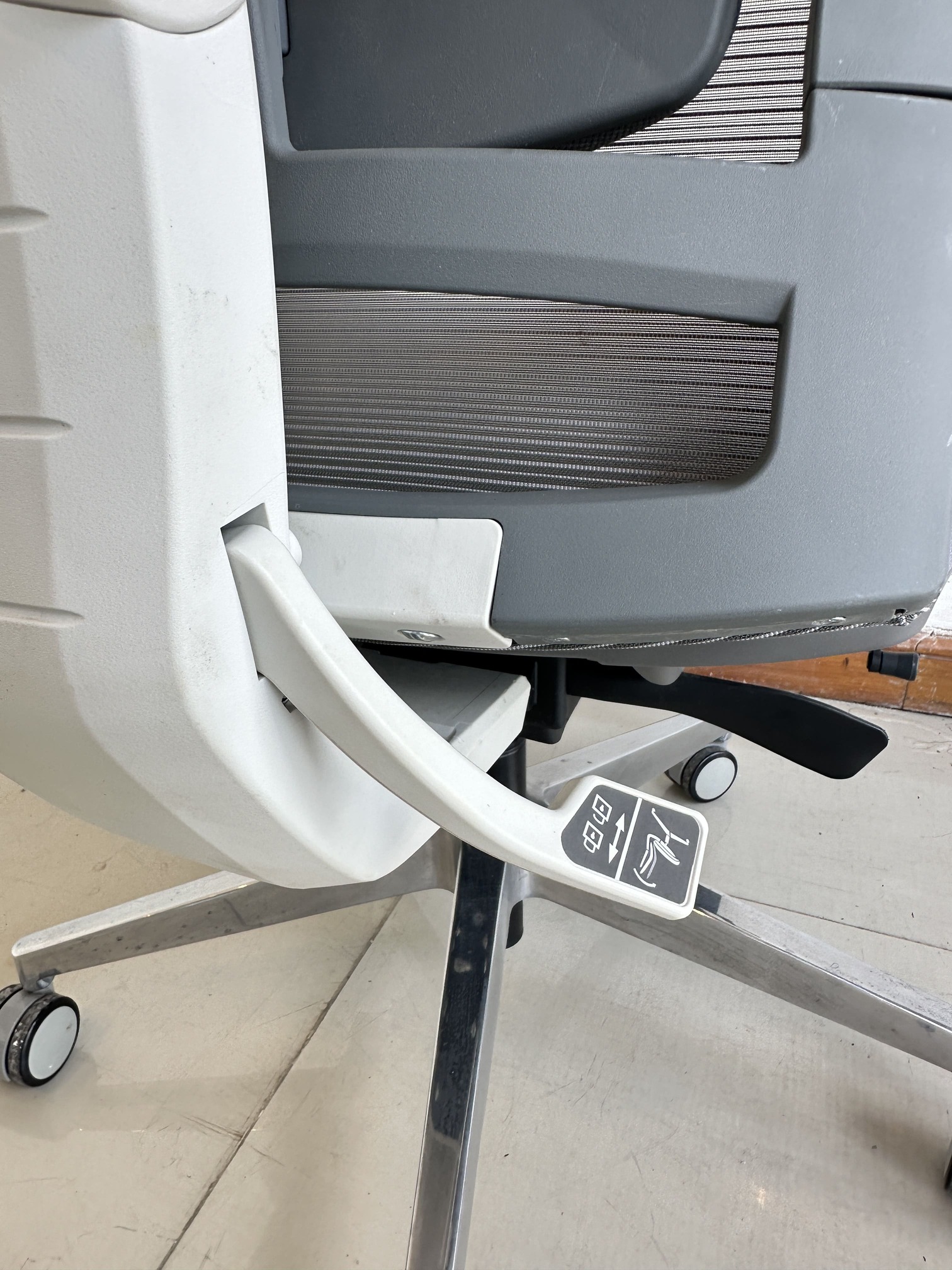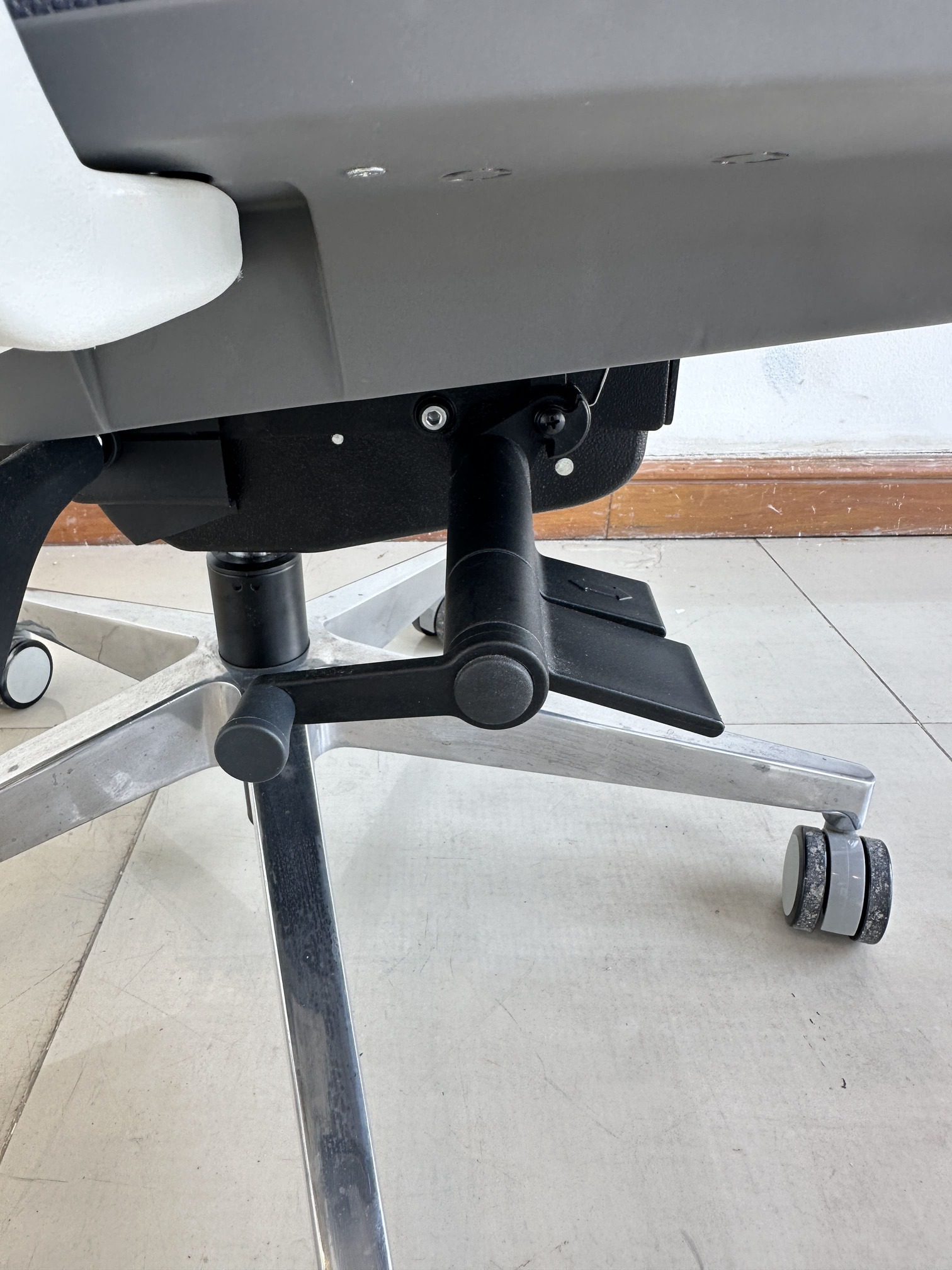 เก้าอี้เพื่อสุขภาพ แบรนด์ Ergotrend รุ่น ERGO-X เบาะผ้าตาข่ายสีเทา เบาะเลื่อนปรับระดับได้ พักแขนและพักคอปรับได้ ขาอลูมิเนียม ล้อเลื่อน