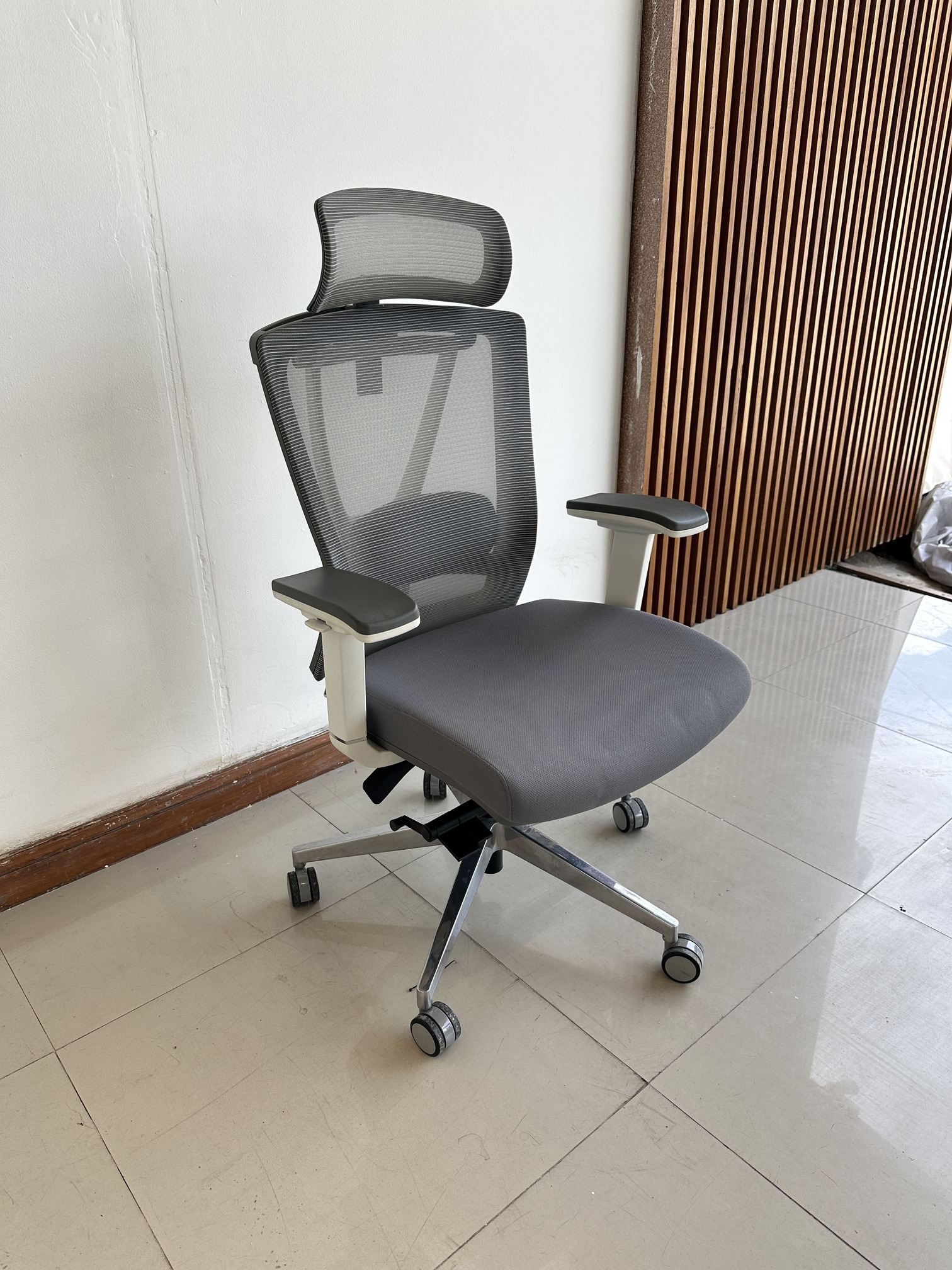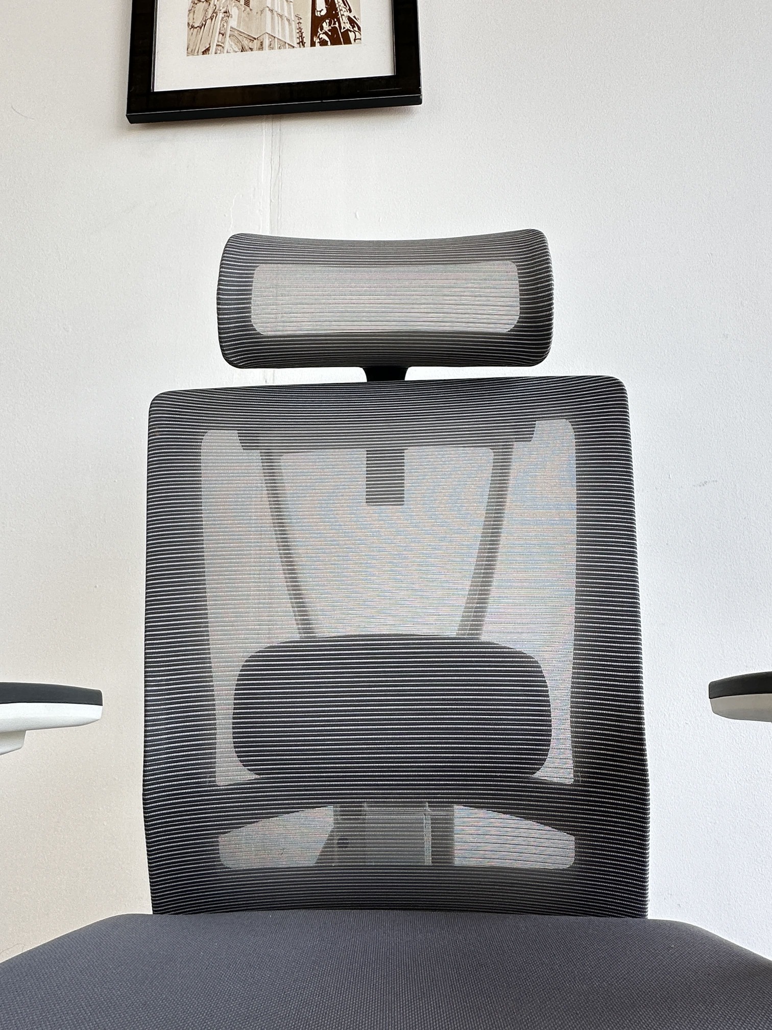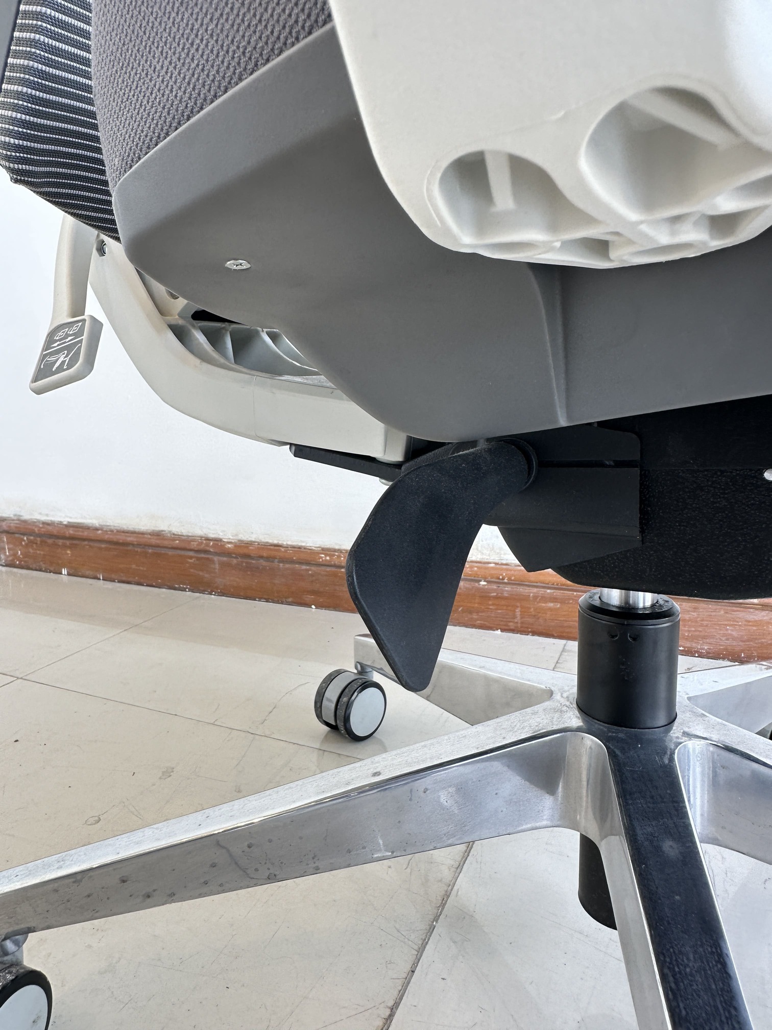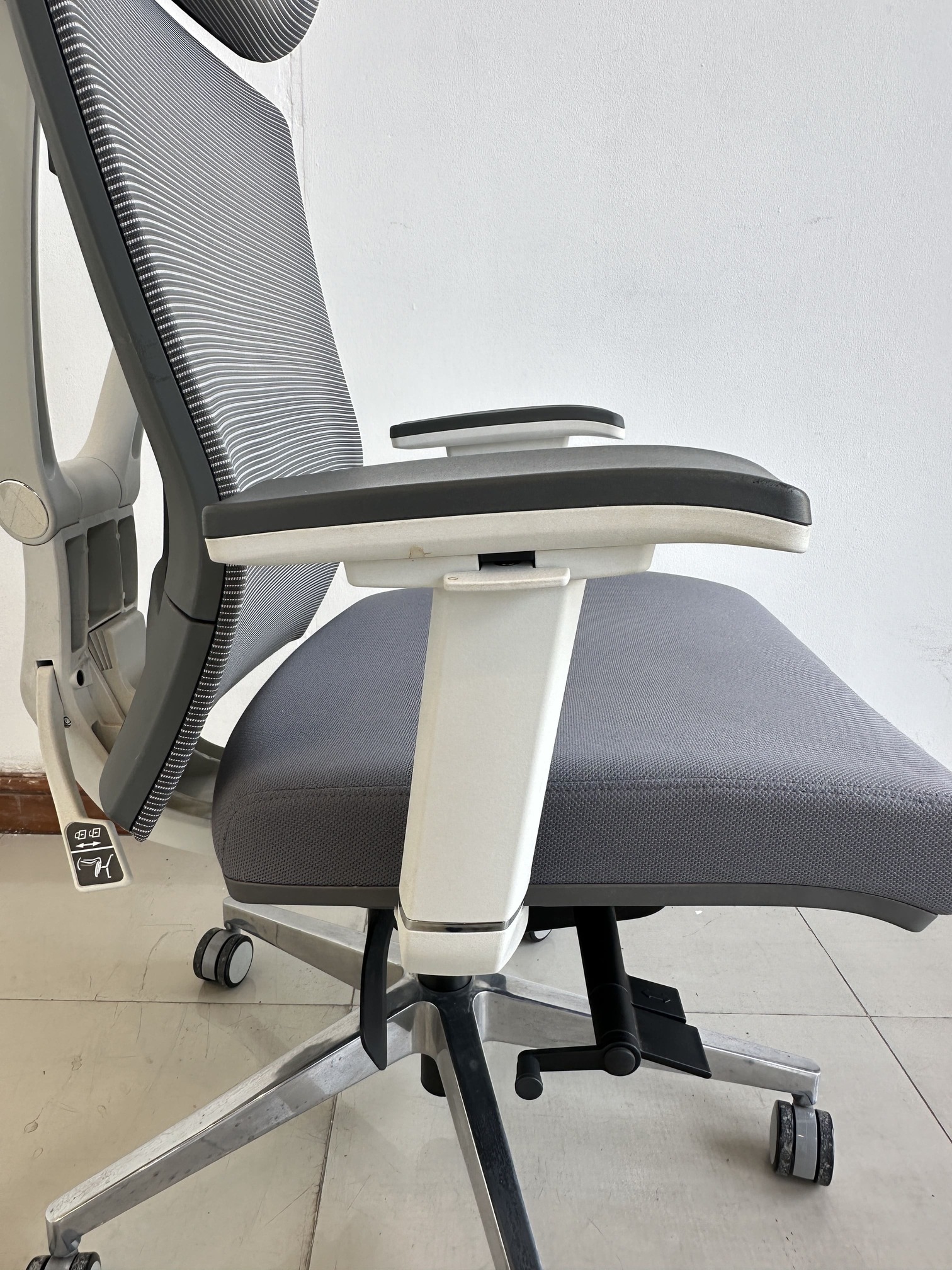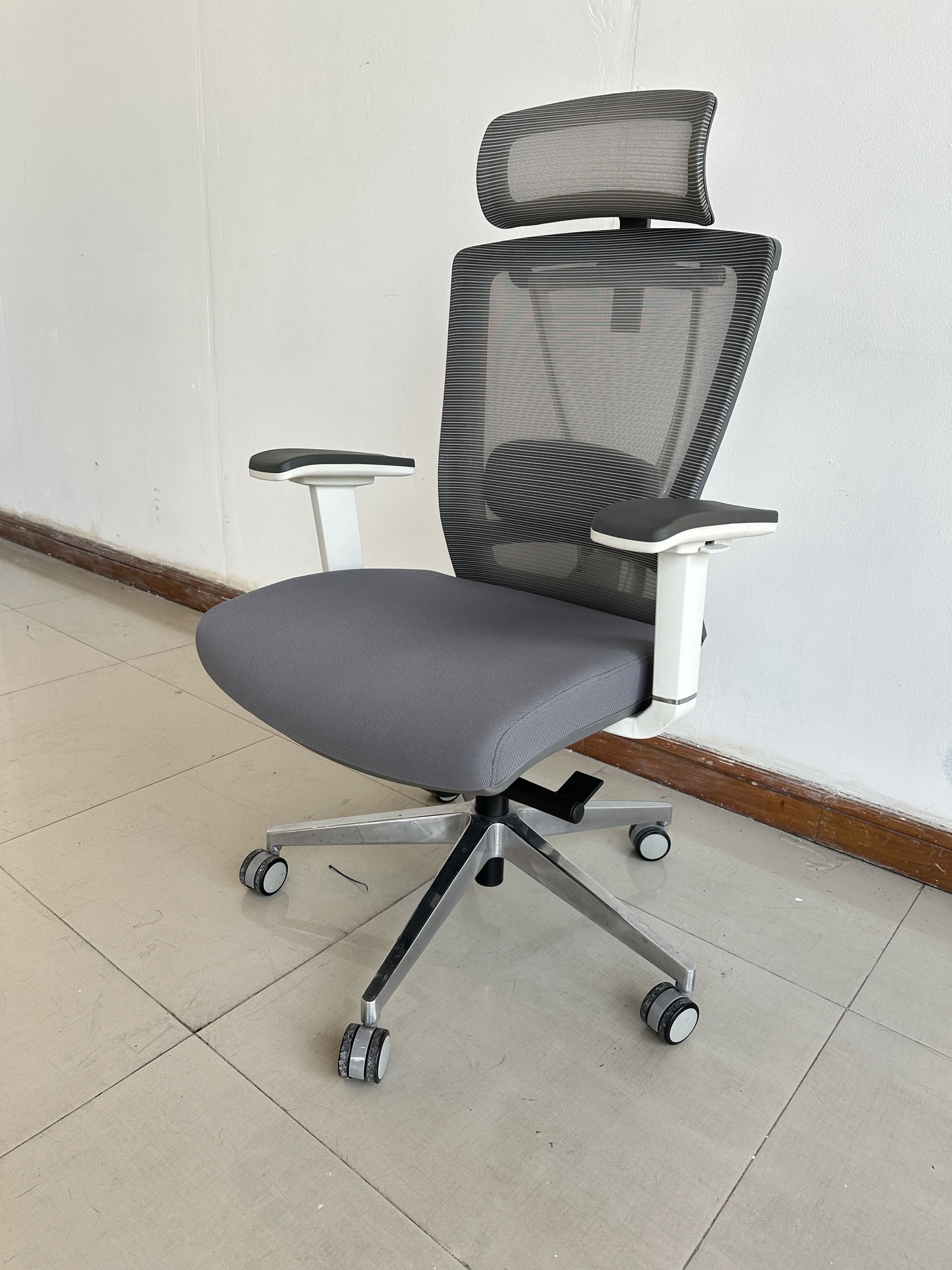 เก้าอี้เพื่อสุขภาพ แบรนด์ Ergotrend รุ่น ERGO-X เบาะผ้าตาข่ายสีเทา เบาะเลื่อนปรับระดับได้ พักแขนและพักคอปรับได้ ขาอลูมิเนียม ล้อเลื่อน