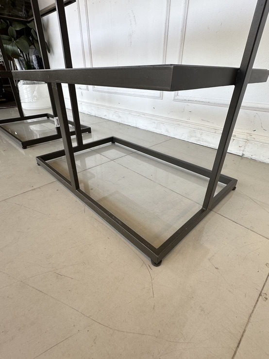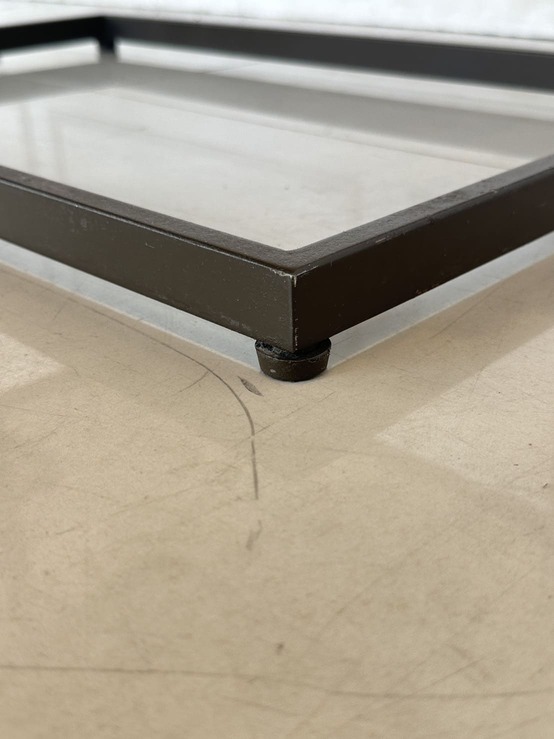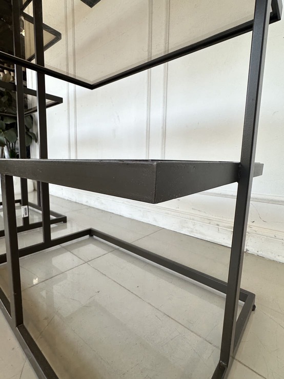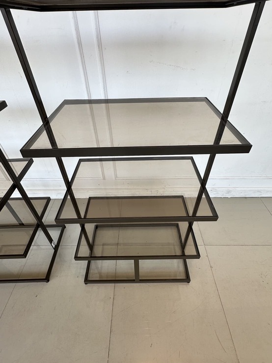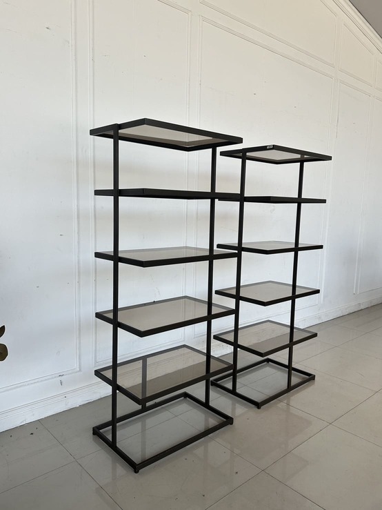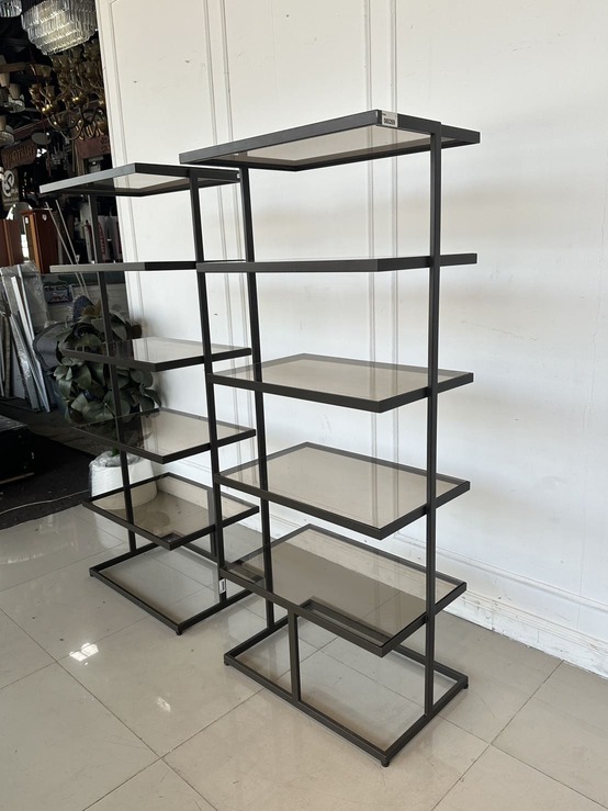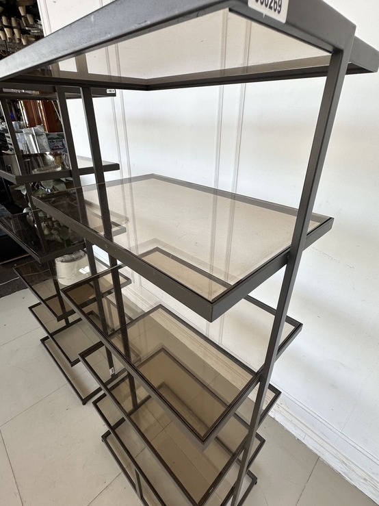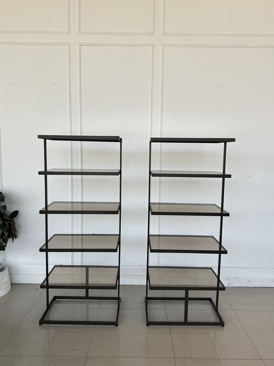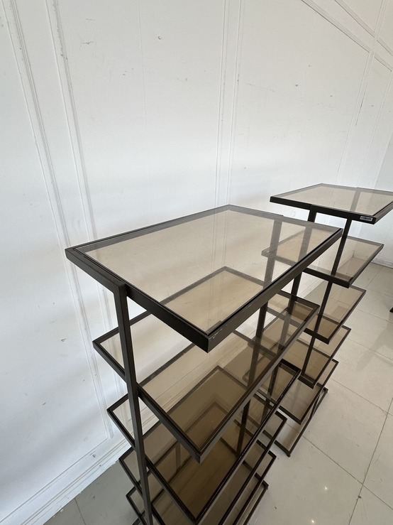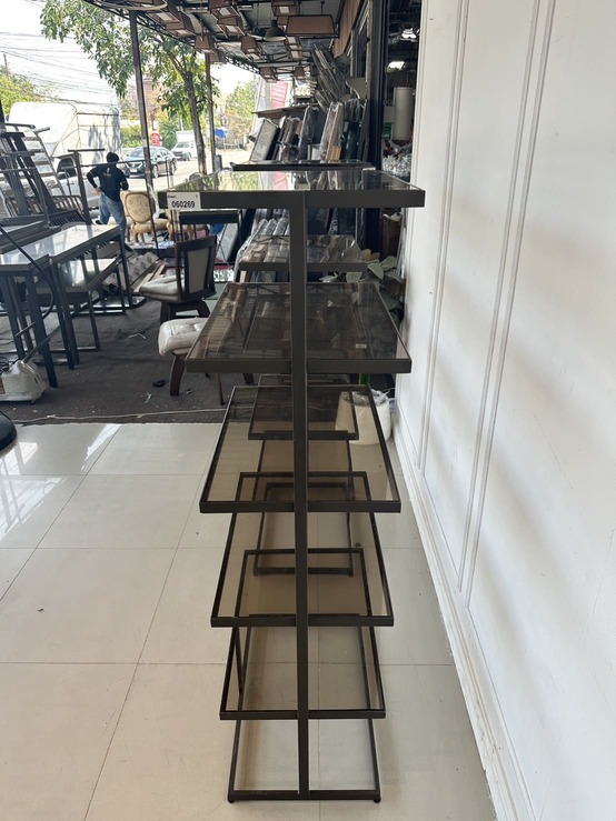 ชั้นวางสินค้า 5 ชั้นวาง แผ่นชั้นอะคริลิคใสสีชา โครงฐานเหล็ก สีน้ำตาลทอง