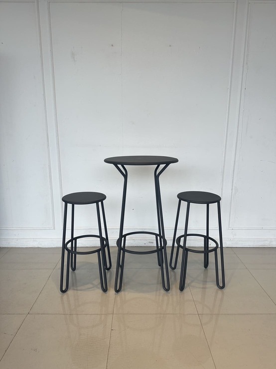 ชุดโต๊ะบาร์ แบรนด์ MODERN OUTDOOR พร้อมเก้าอี้บาร์ 2 ที่นั่ง วัสดุอลูมิเนียม สีเทาเข้ม