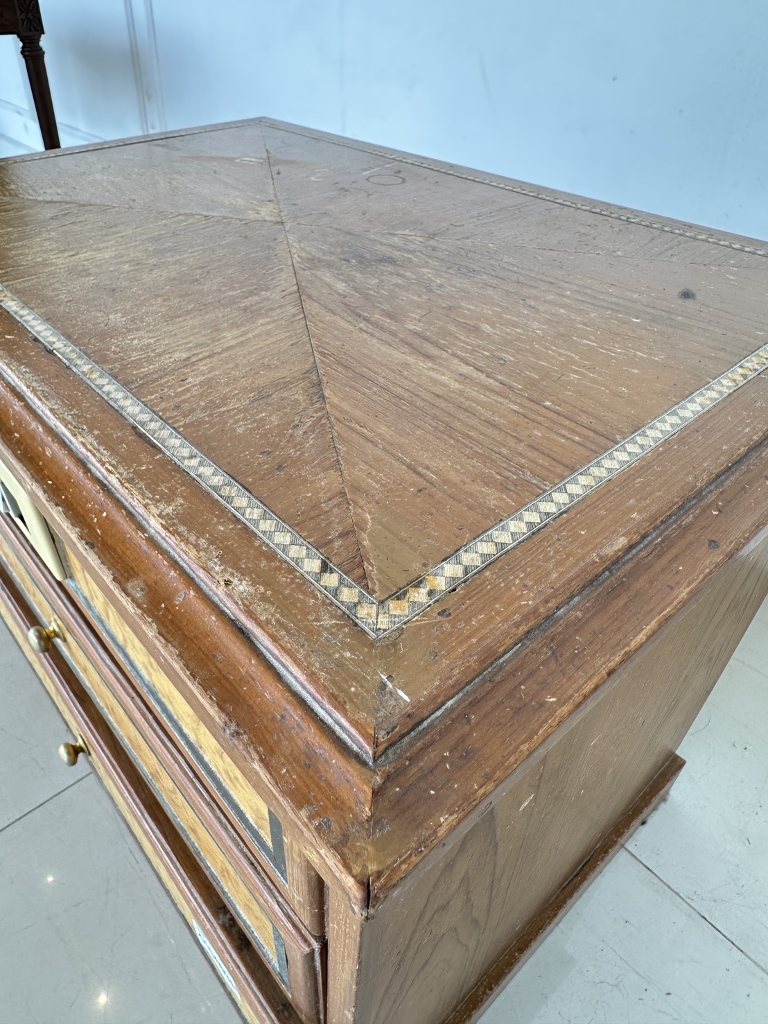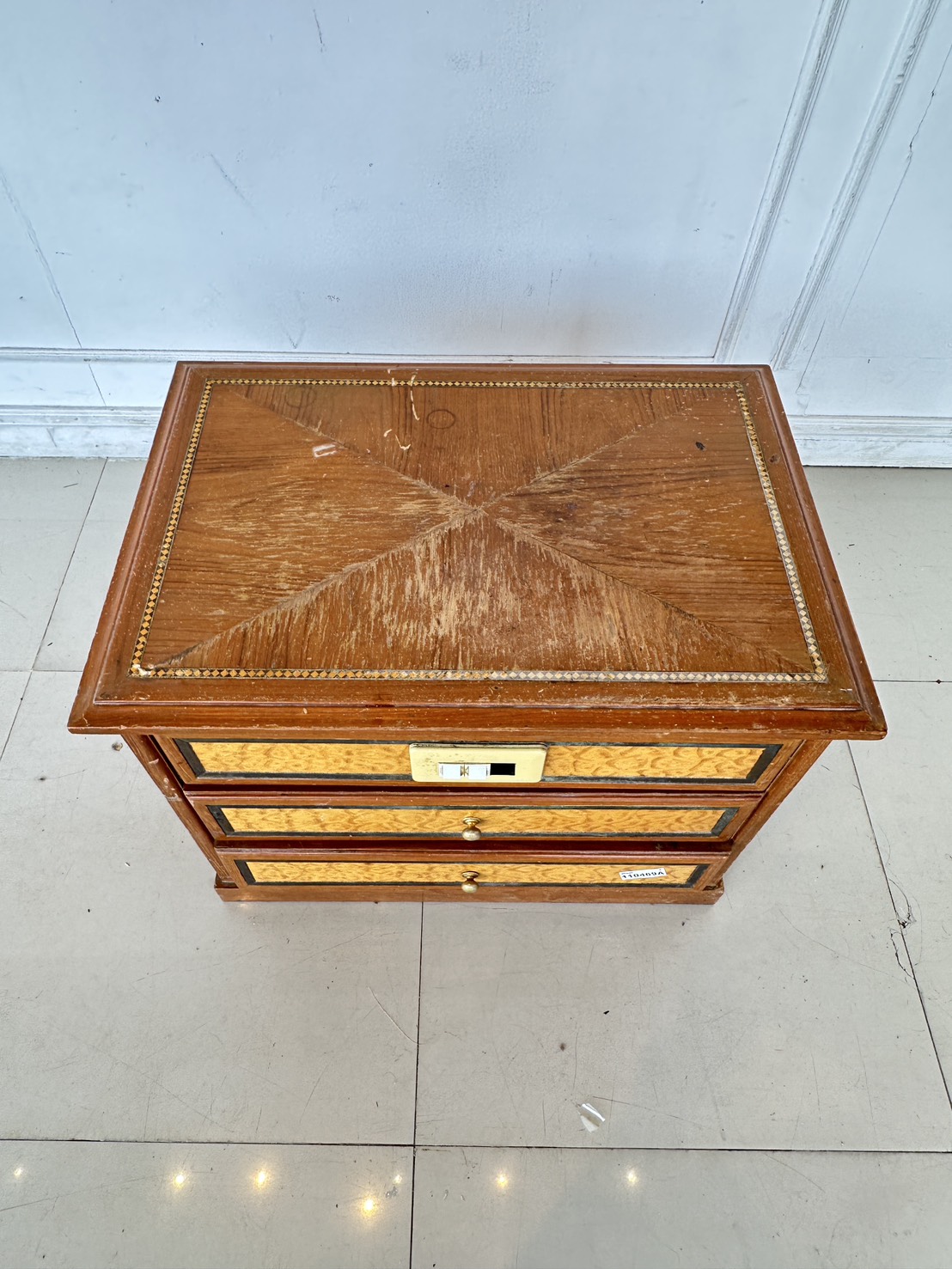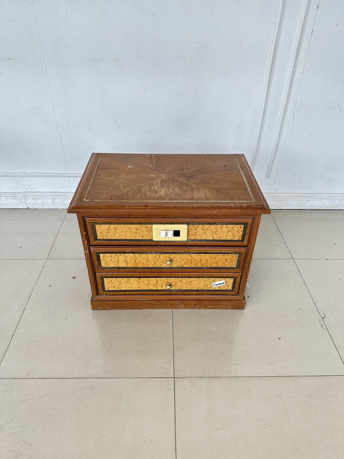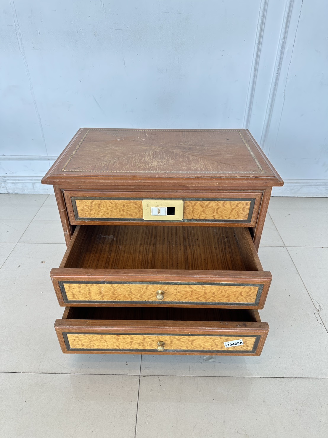 ตู้ข้างเตียง สไตล์วินเทจ 2 ลิ้นชัก ด้านหน้าติดสวิสไฟ โครงฐานไม้จริงปิดแผ่นไม้อัดสีน้ำตาล