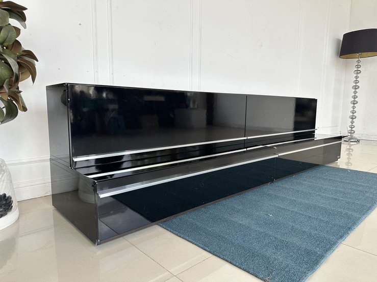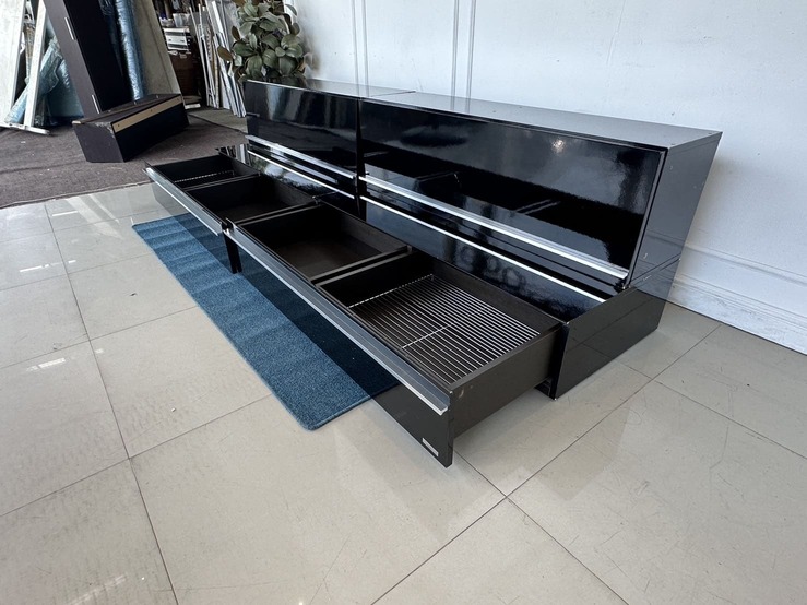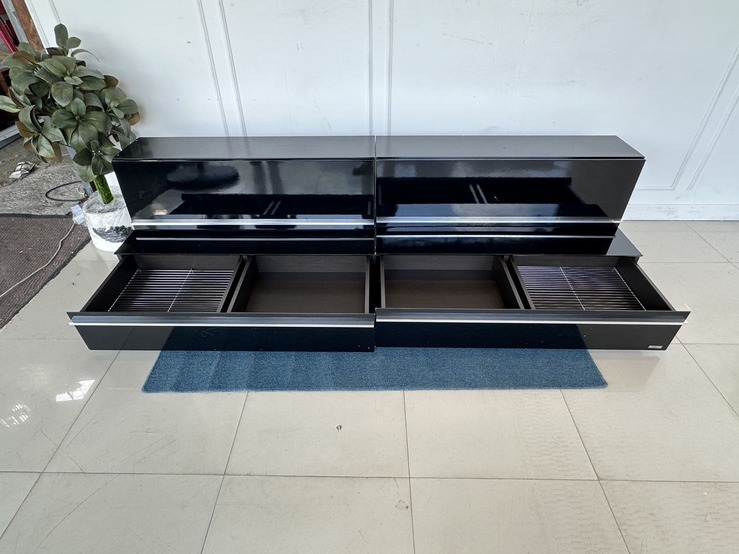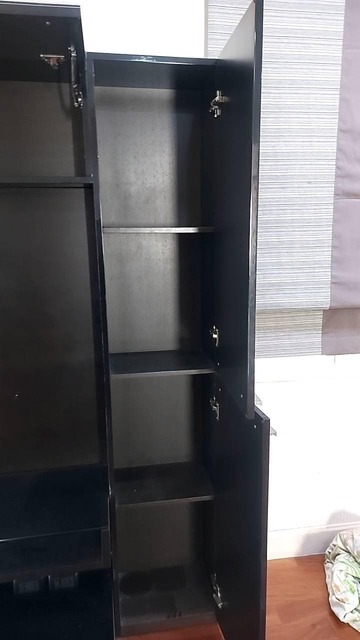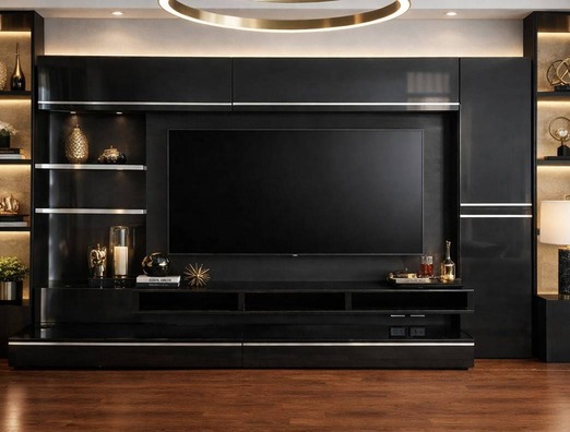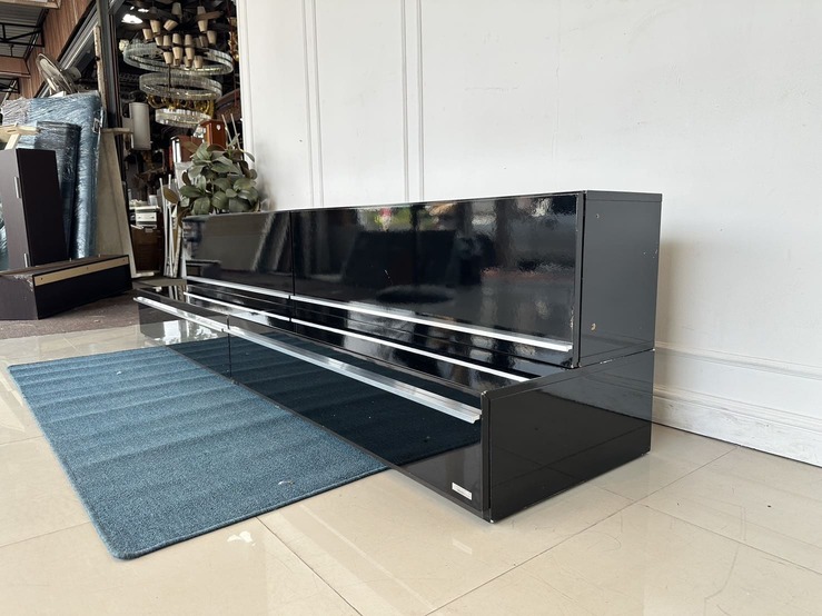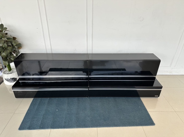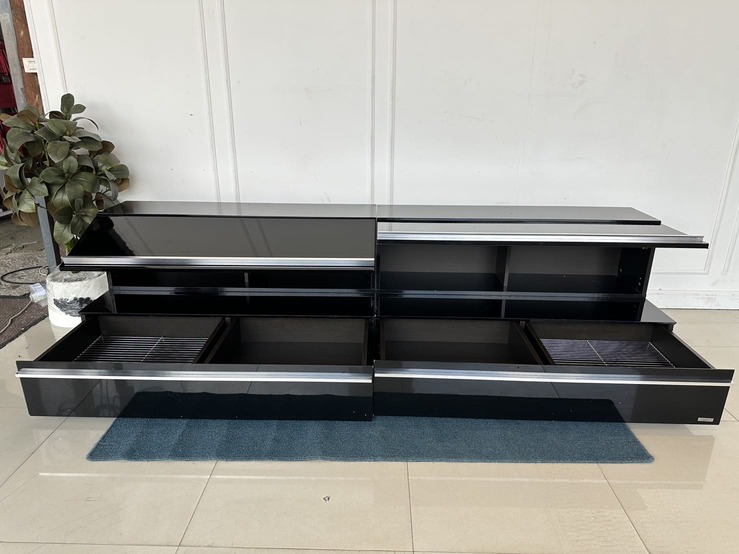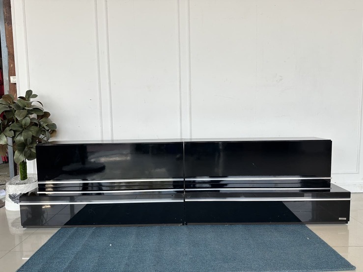ตู้วางทีวี พร้อมตู้แขวนติดผนัง แบรนด์ TRENDESIGN มือจับอลูมิเนียม โครงไม้ MDF สีดำไฮกรอสสีดำ