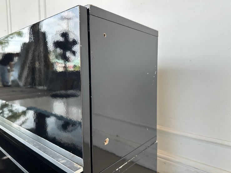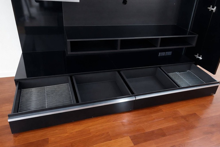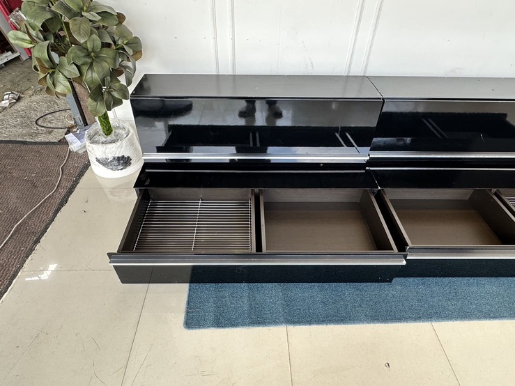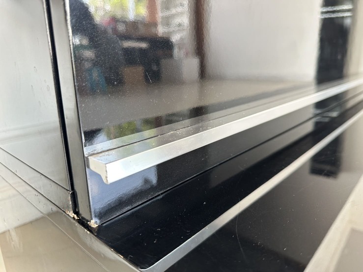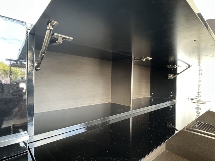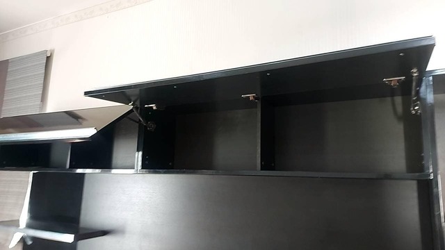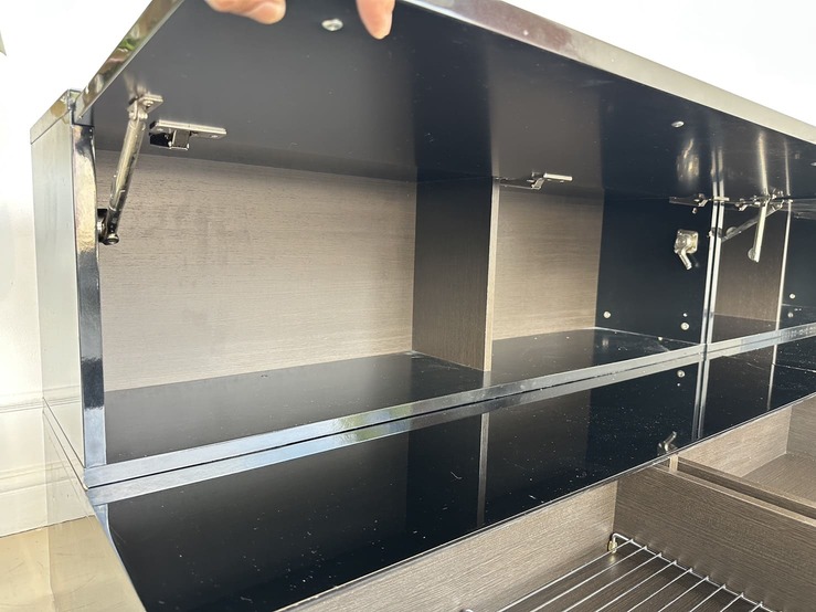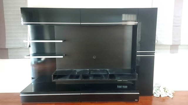 ตู้วางทีวี พร้อมตู้แขวนติดผนัง แบรนด์ TRENDESIGN มือจับอลูมิเนียม โครงไม้ MDF สีดำไฮกรอสสีดำ