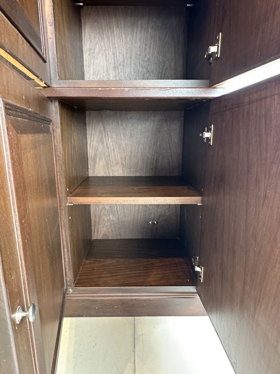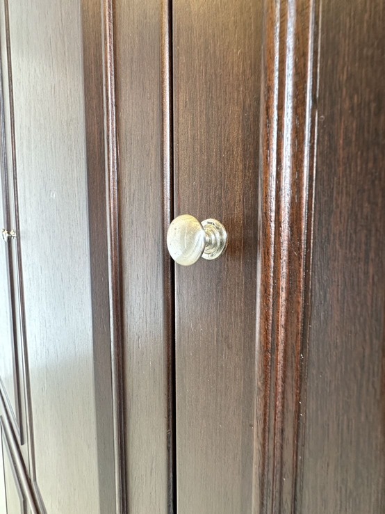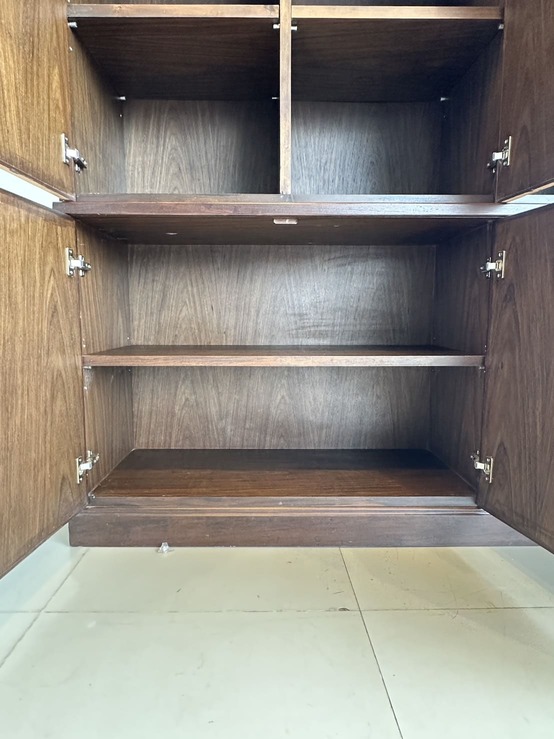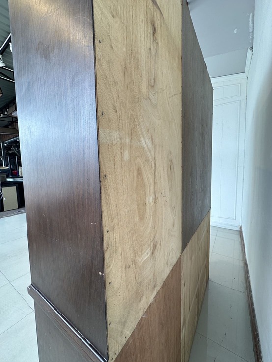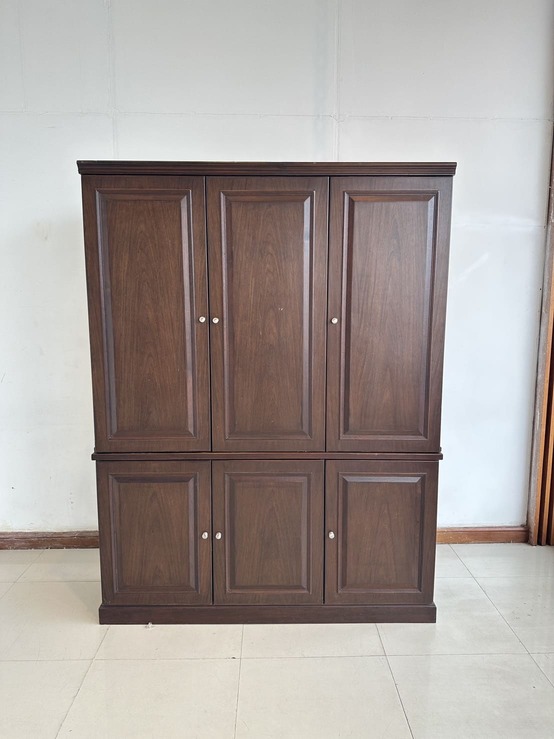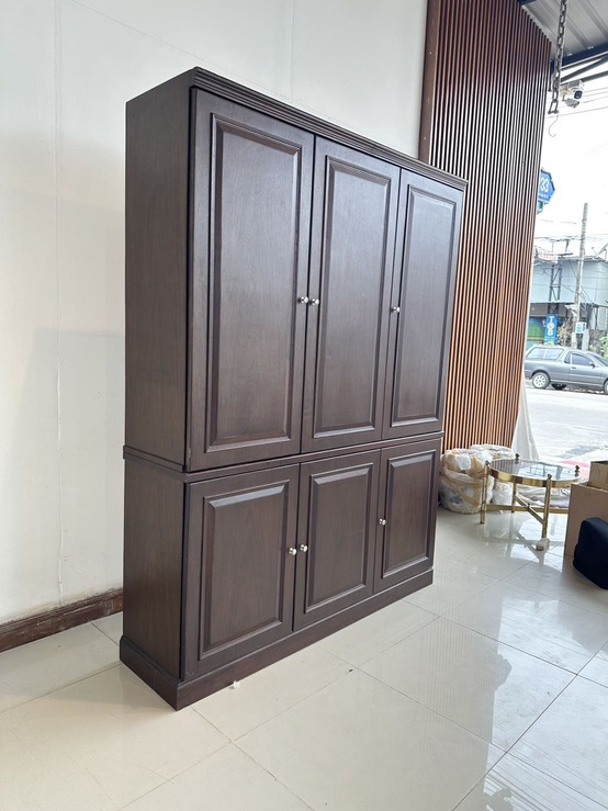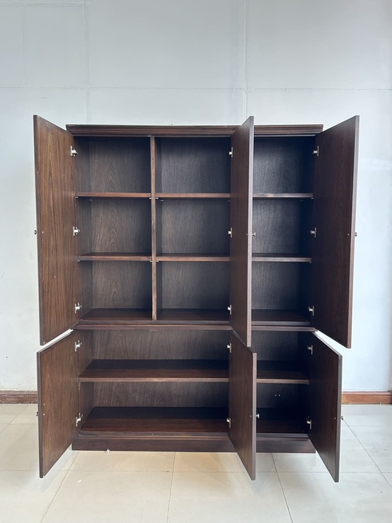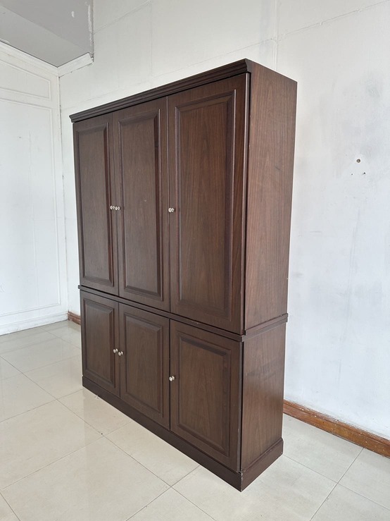 ตู้เก็บของสไตล์วินเทจ 6 บานเปิด โครงไม้จริงปิดแผ่นไม้อัด สีน้ำตาลเข้มลายไม้