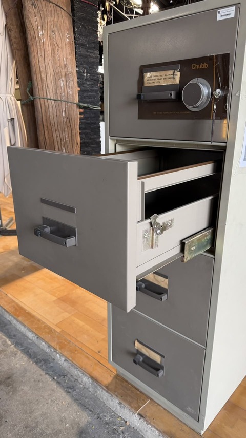 ตู้เซฟ 4 ช่องลิ้นชัก แบรนด์ CHUBB (ตัวที่ 1) (1140320C) . ขนาดกว้าง 54 ลึก 83 สูง 154 เซนติเมตร