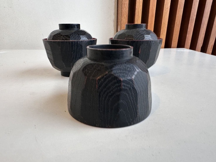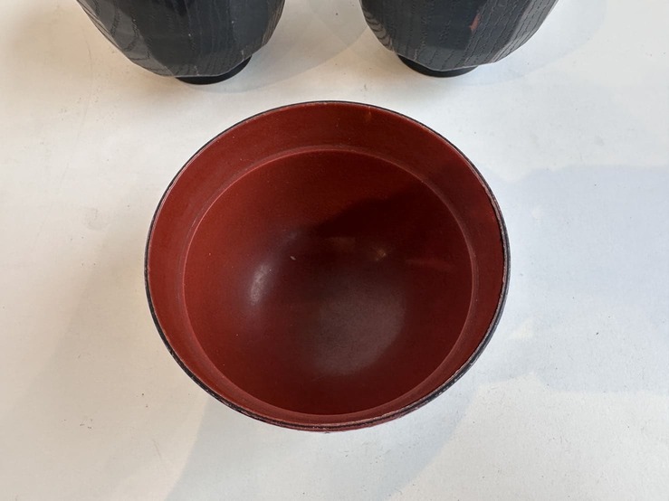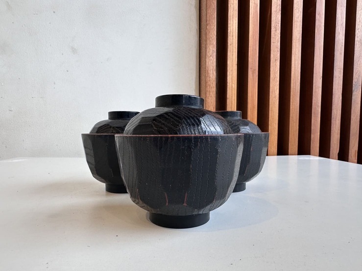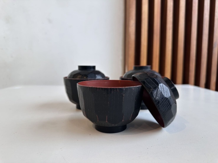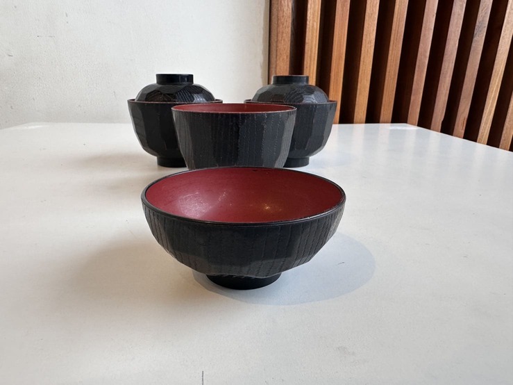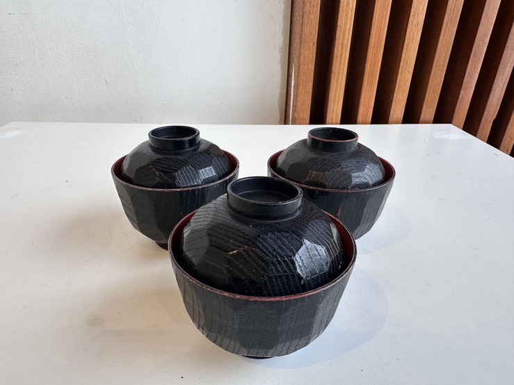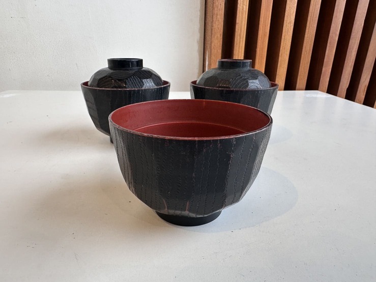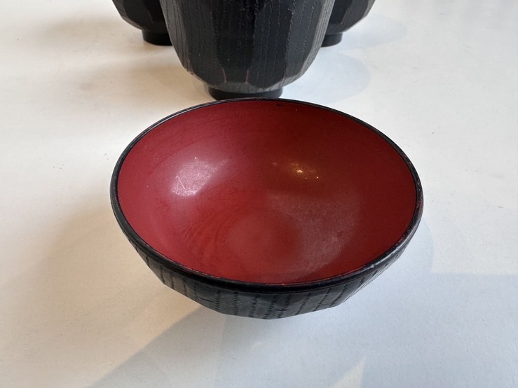 ถ้วยน้ำซุปเมลามีน สีดำแดง ลายไม้ สไตล์ญี่ปุ่น