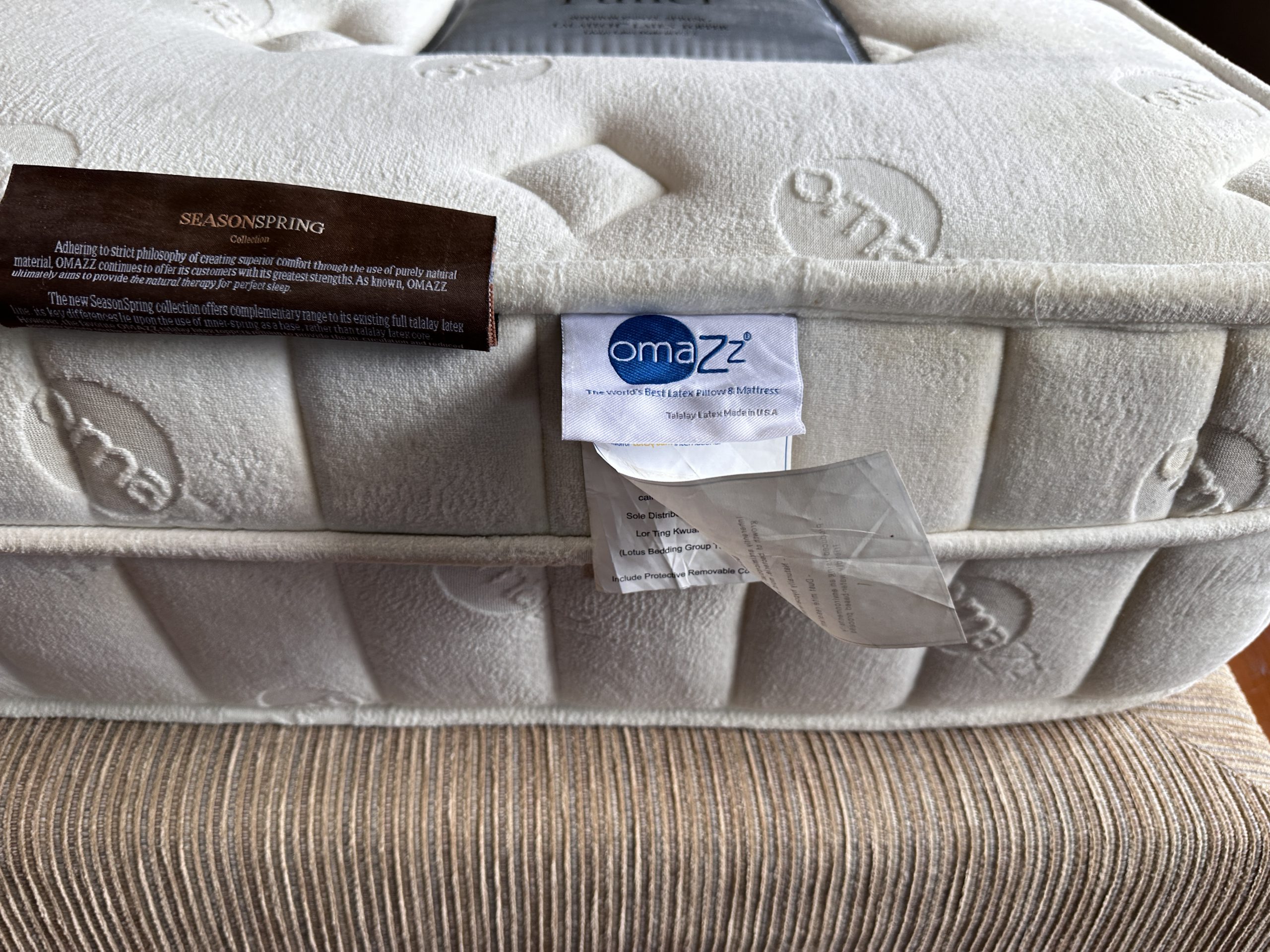 ฟูกที่นอนขนาด 6 ฟุต แบรนด์ OMAZz รุ่น Fuller (มีรอยคราบน้ำนิดหน่อยทำความสะอาดได้)