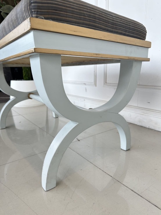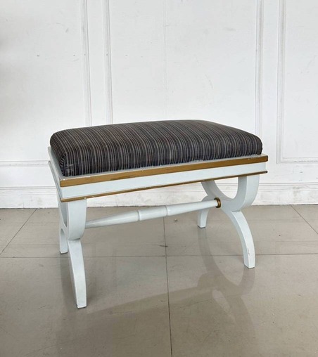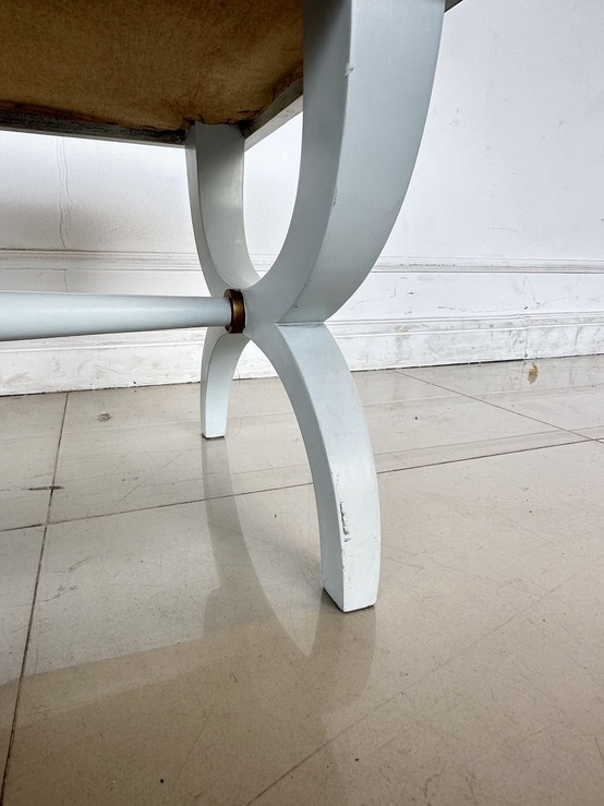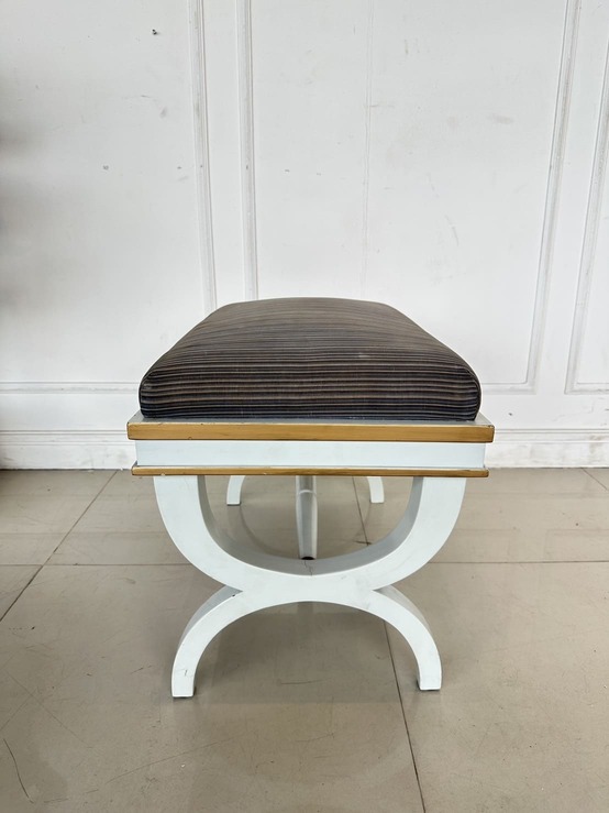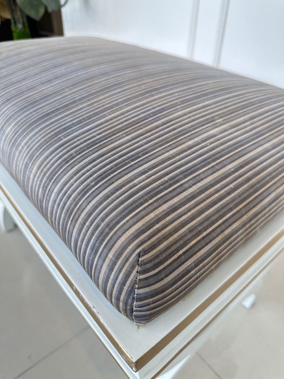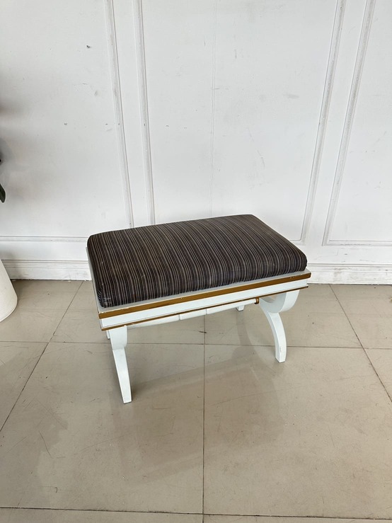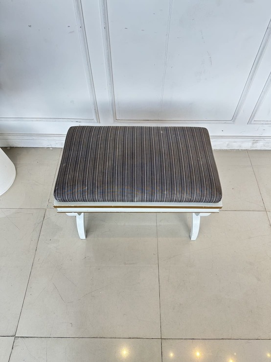สตูล สไตล์วินเทจ เบาะผ้าลายสีน้ำตาล โครงขาไม้จริงสีขาว ขอบทอง