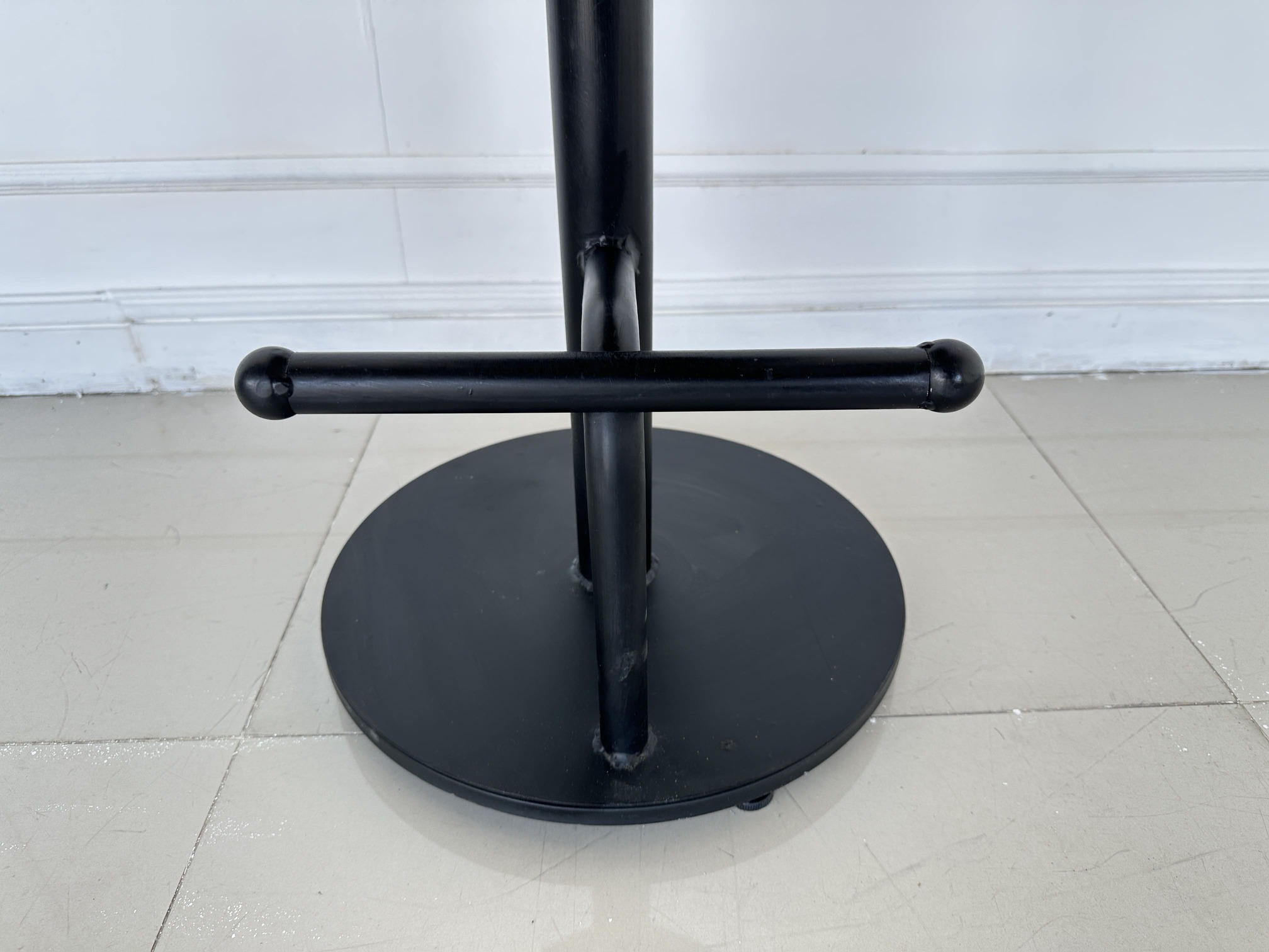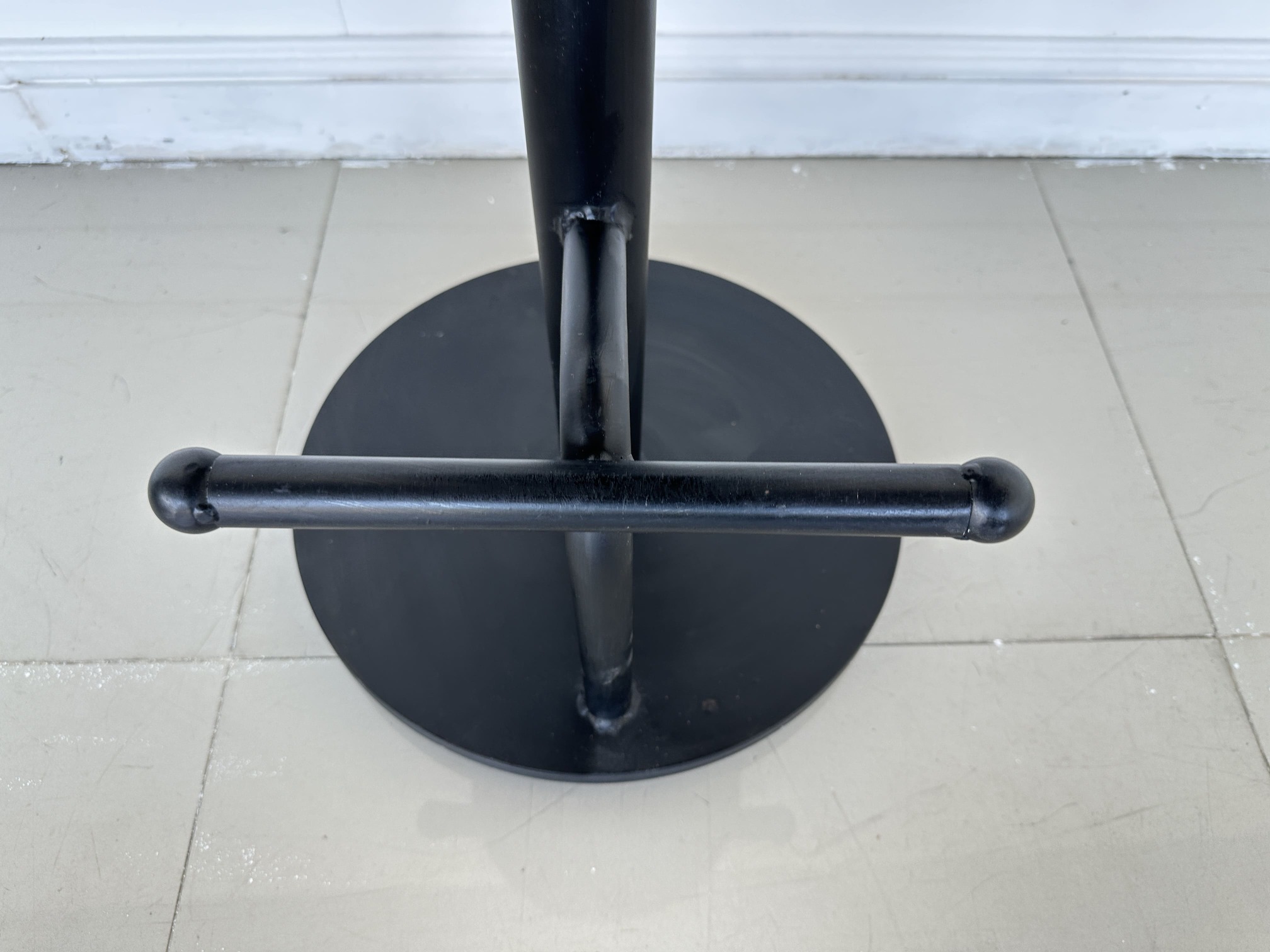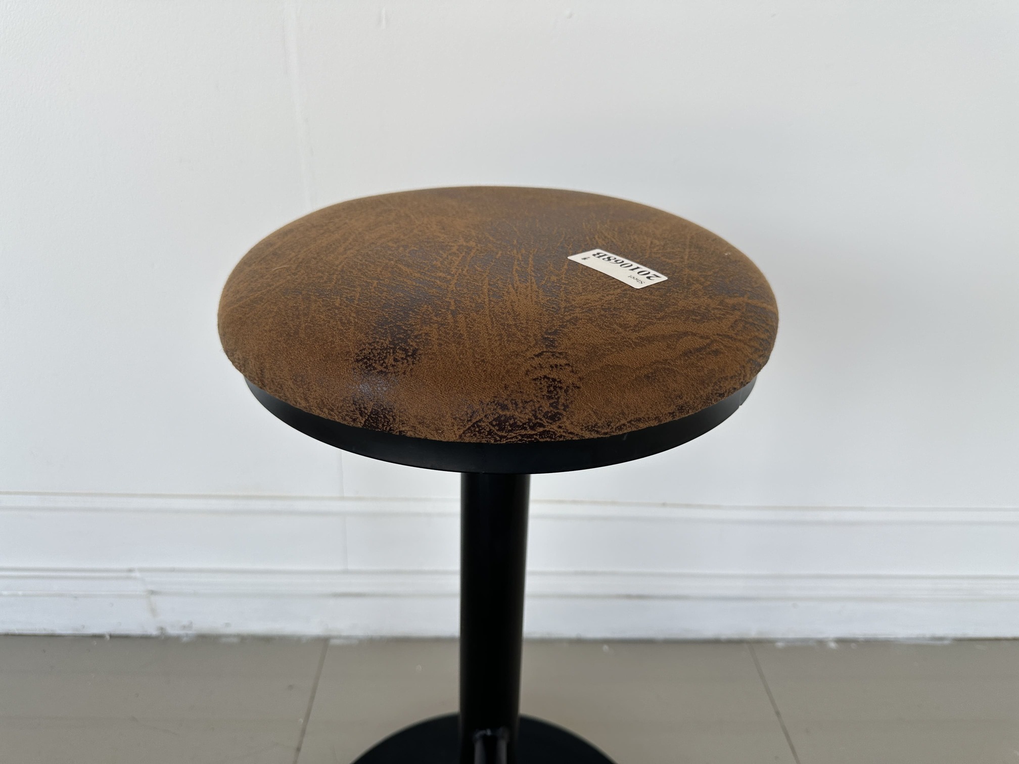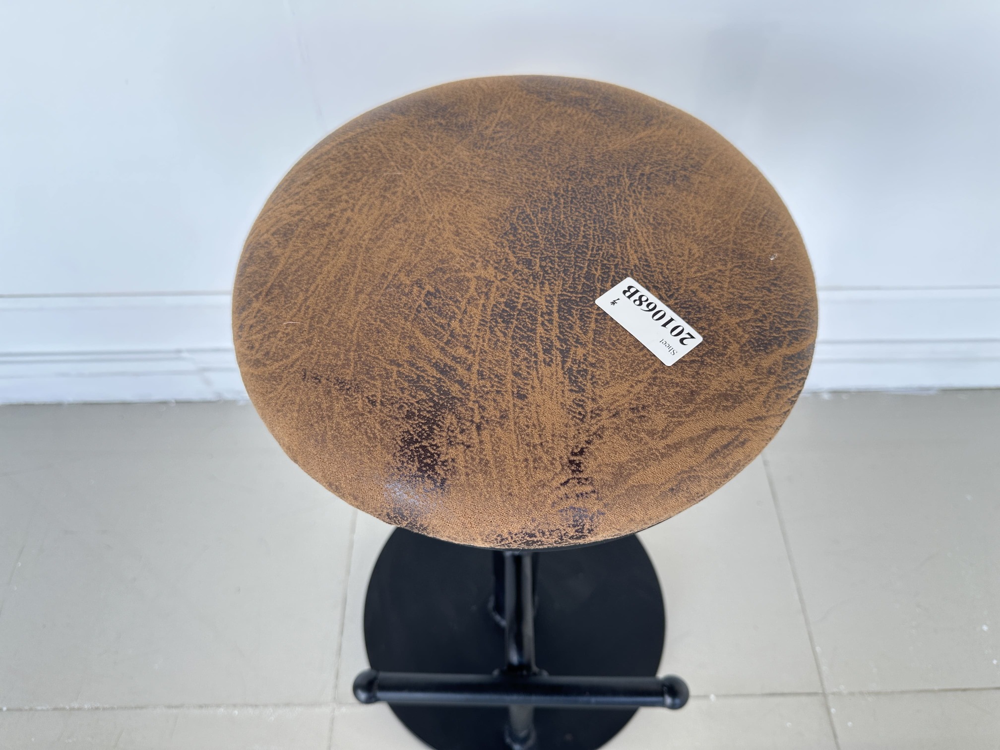 เก้าอี้บาร์ เบาะผ้าหนังกลับสีน้ำตาล โครงขาเหล็กสีดำ ปรับระดับด้วยระบบเกลียว มีที่พักขา