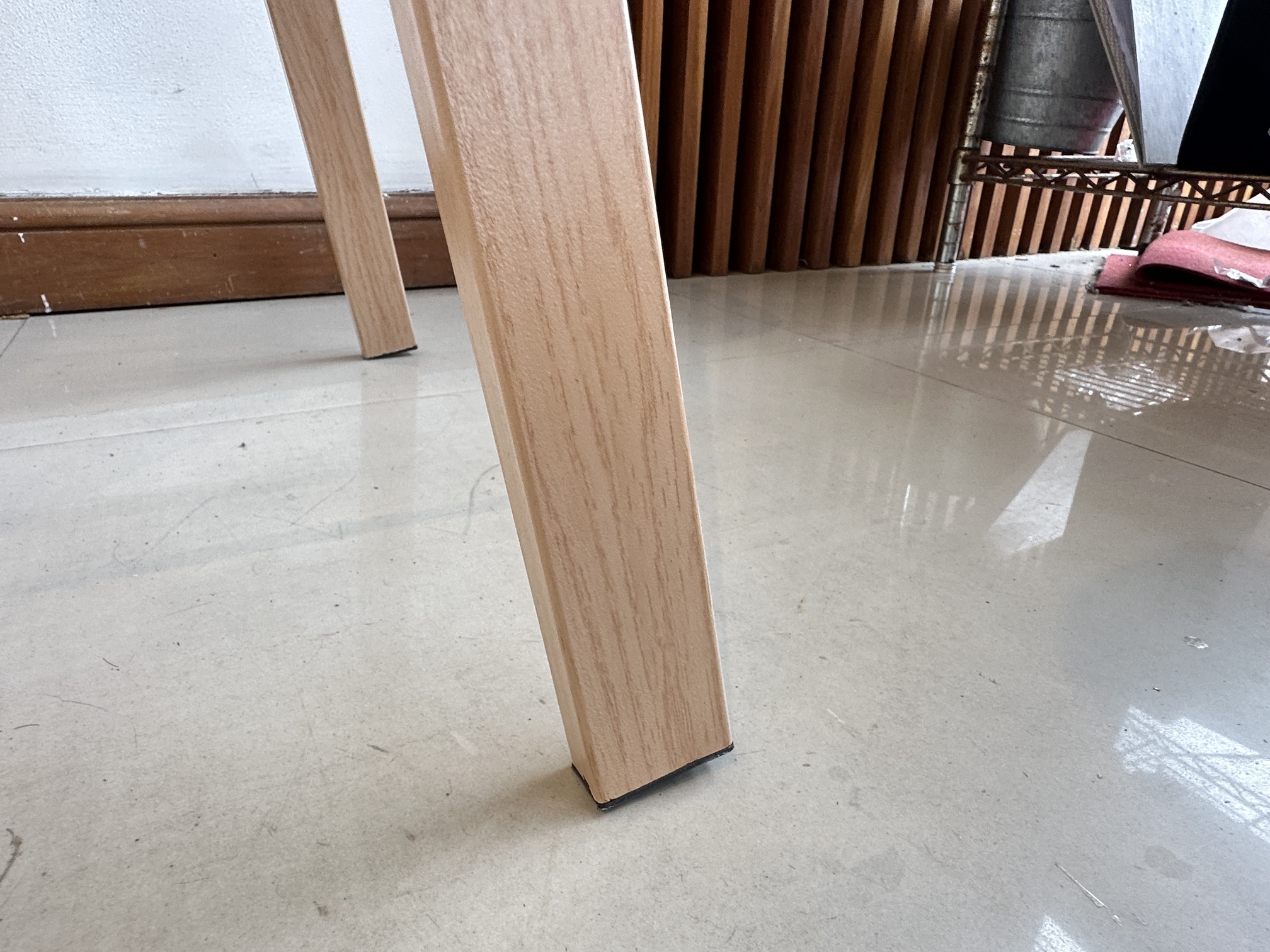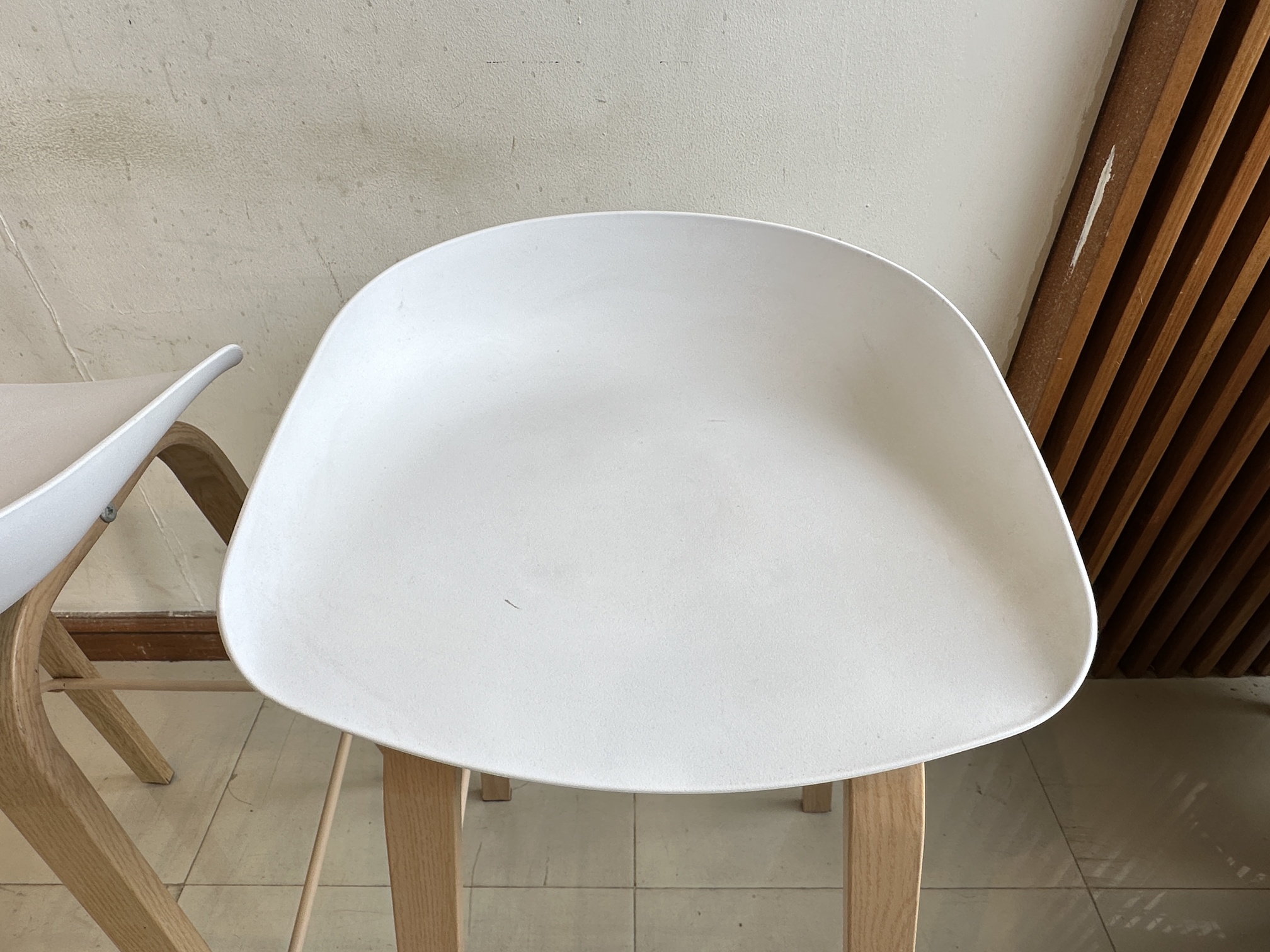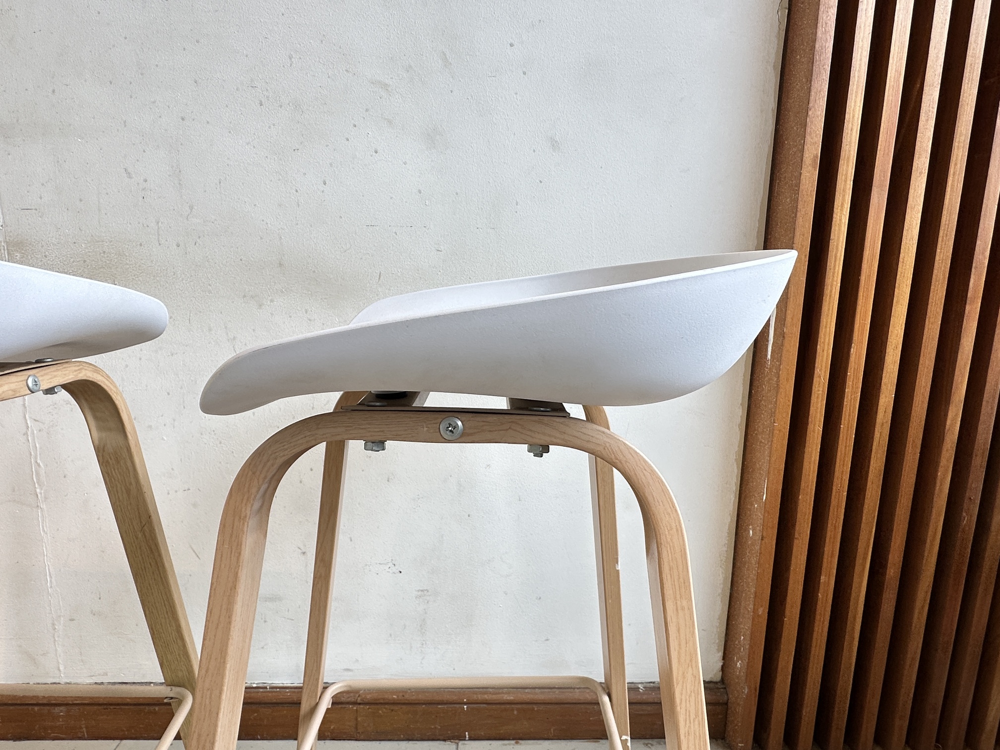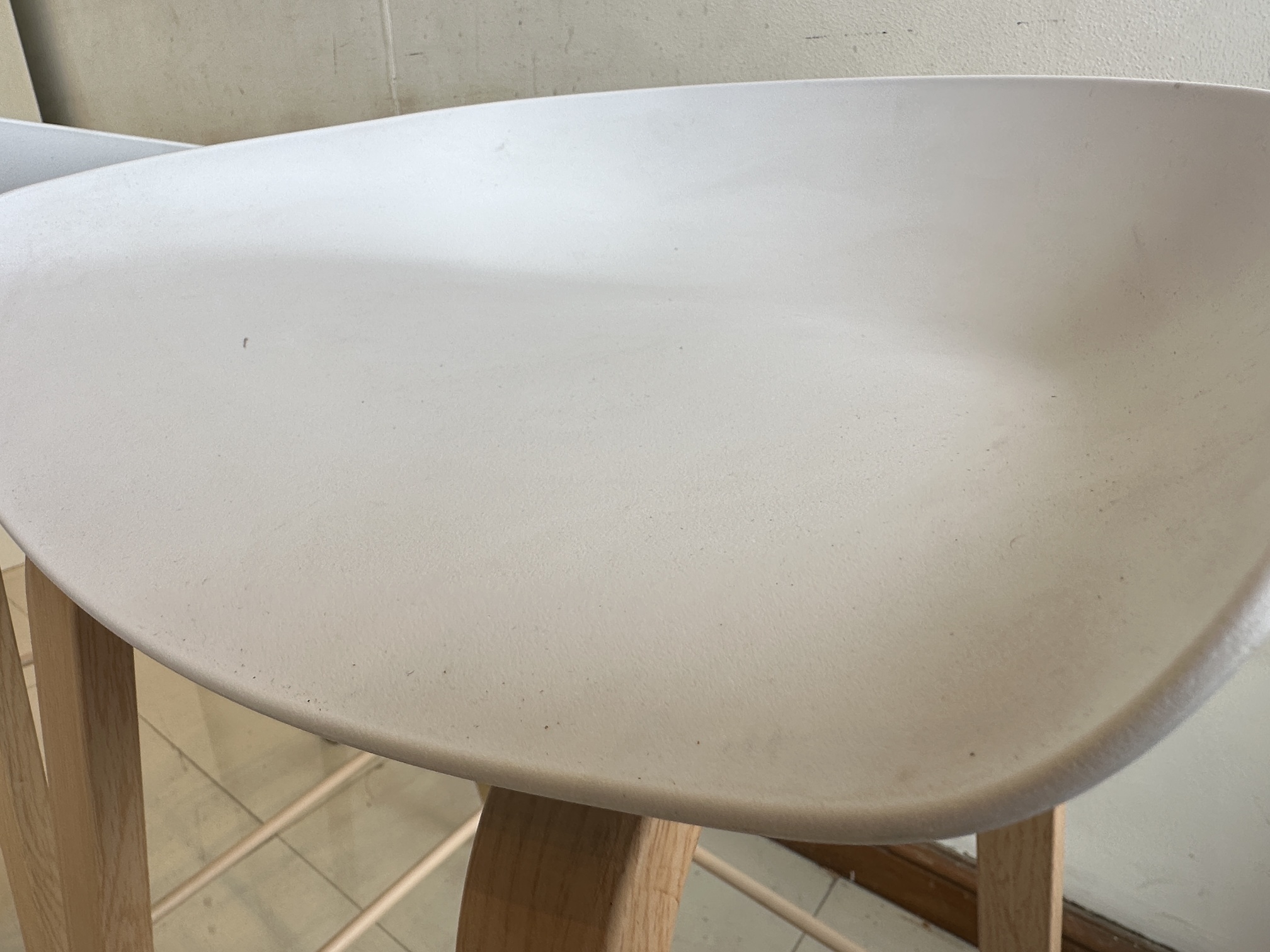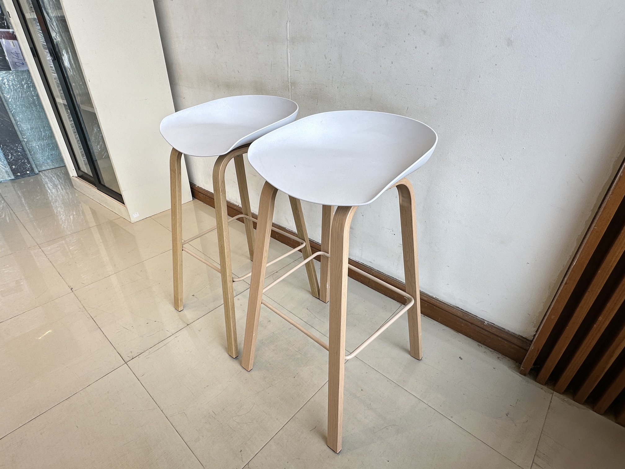 เก้าอี้บาร์ เบาะพลาสติกสีขาว โครงขาเหล็ก ติดลายไม้สีบีช