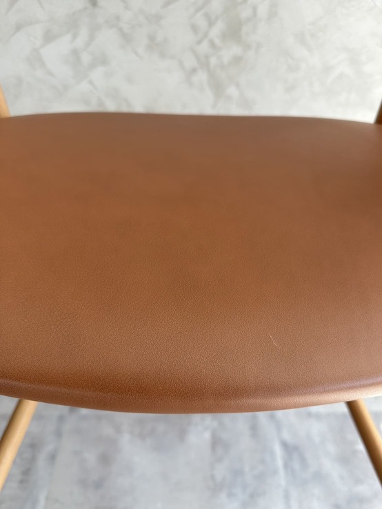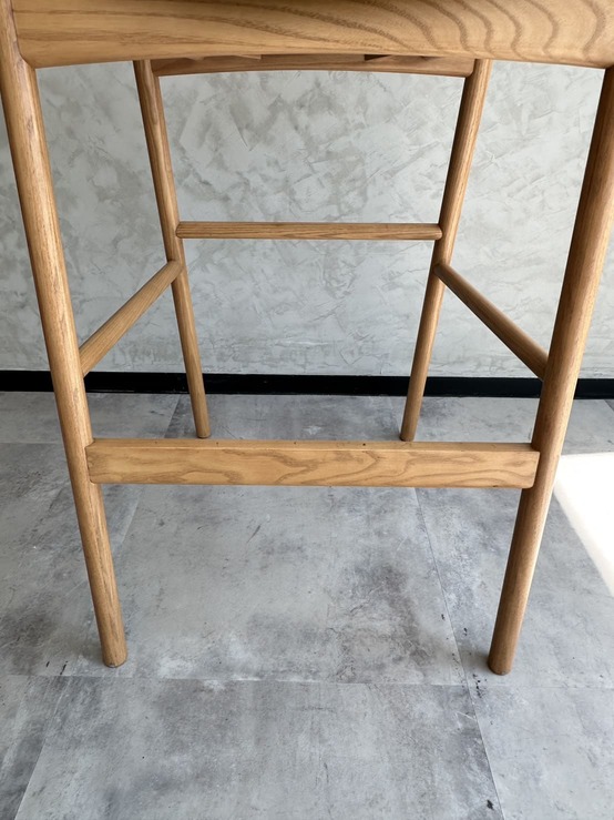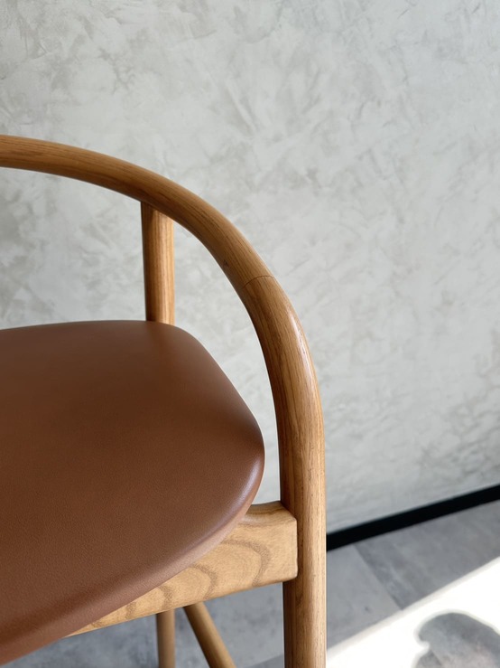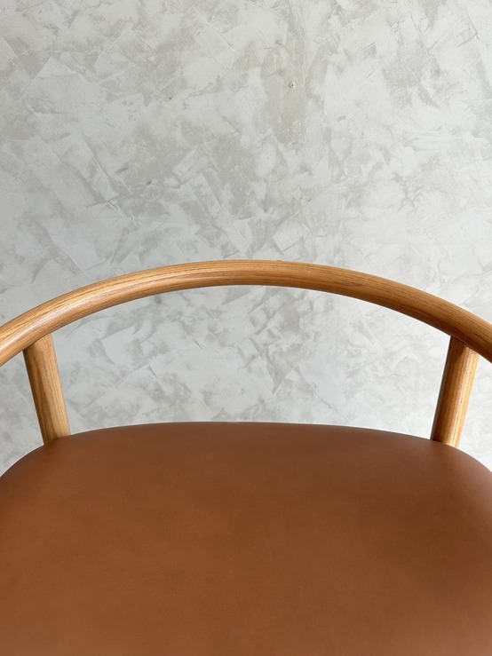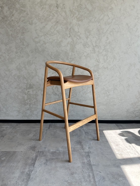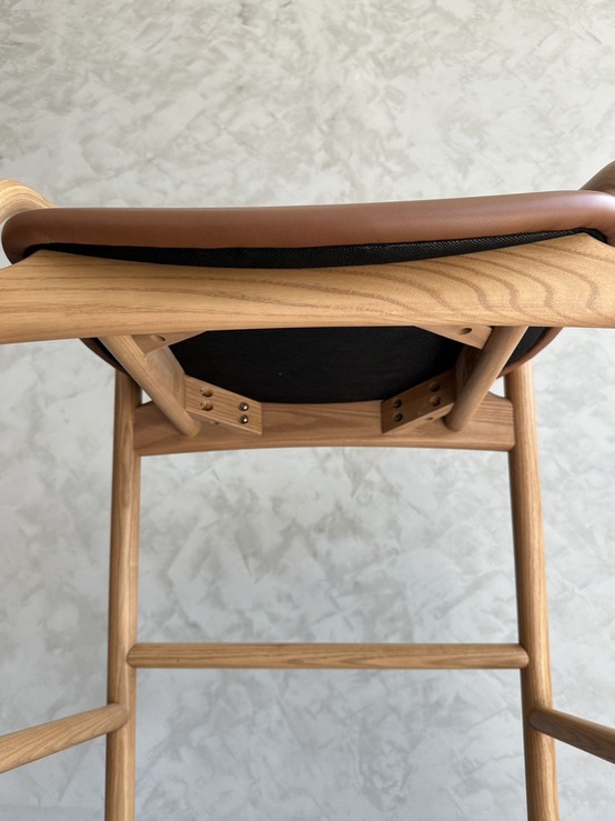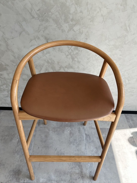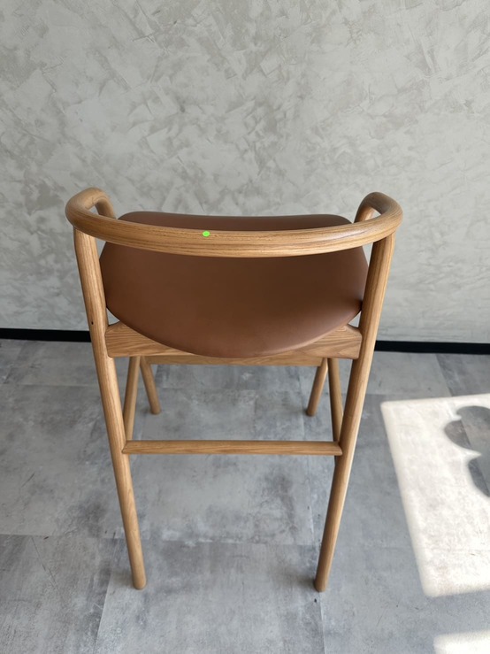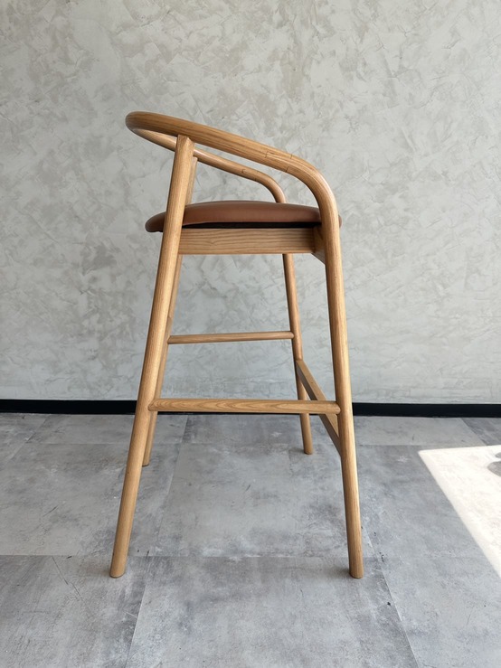 เก้าอี้บาร์ เบาะหนัง PU สีน้ำตาล พิงหลัง พักแขน และ โครงขาไม้จริงสีบีช