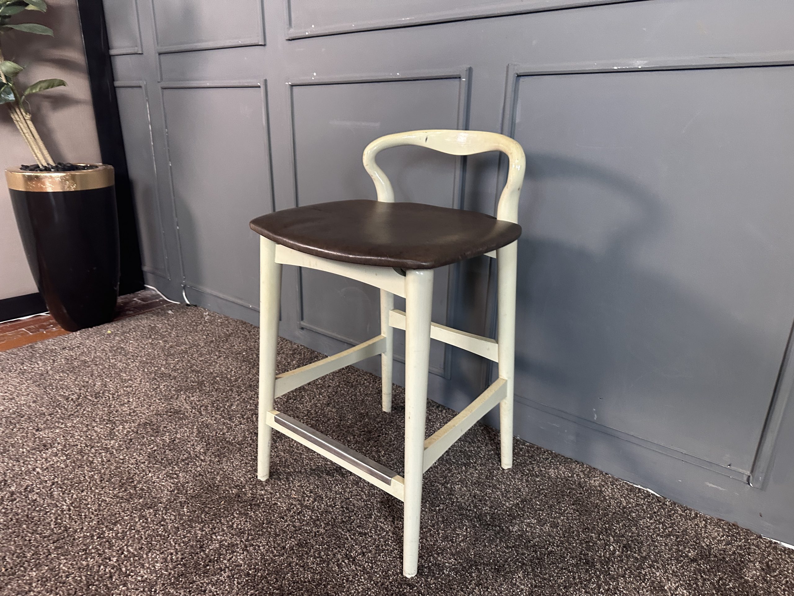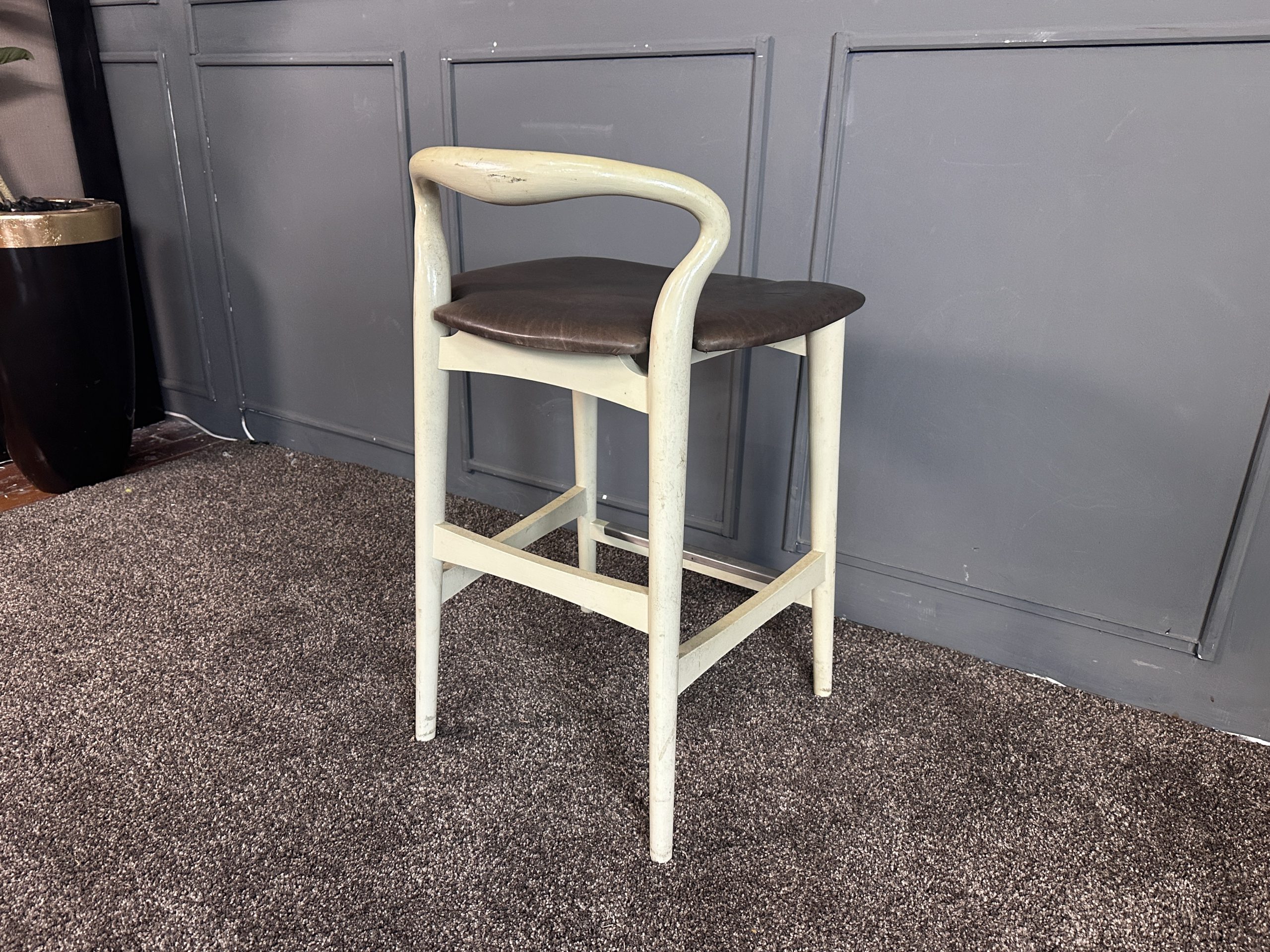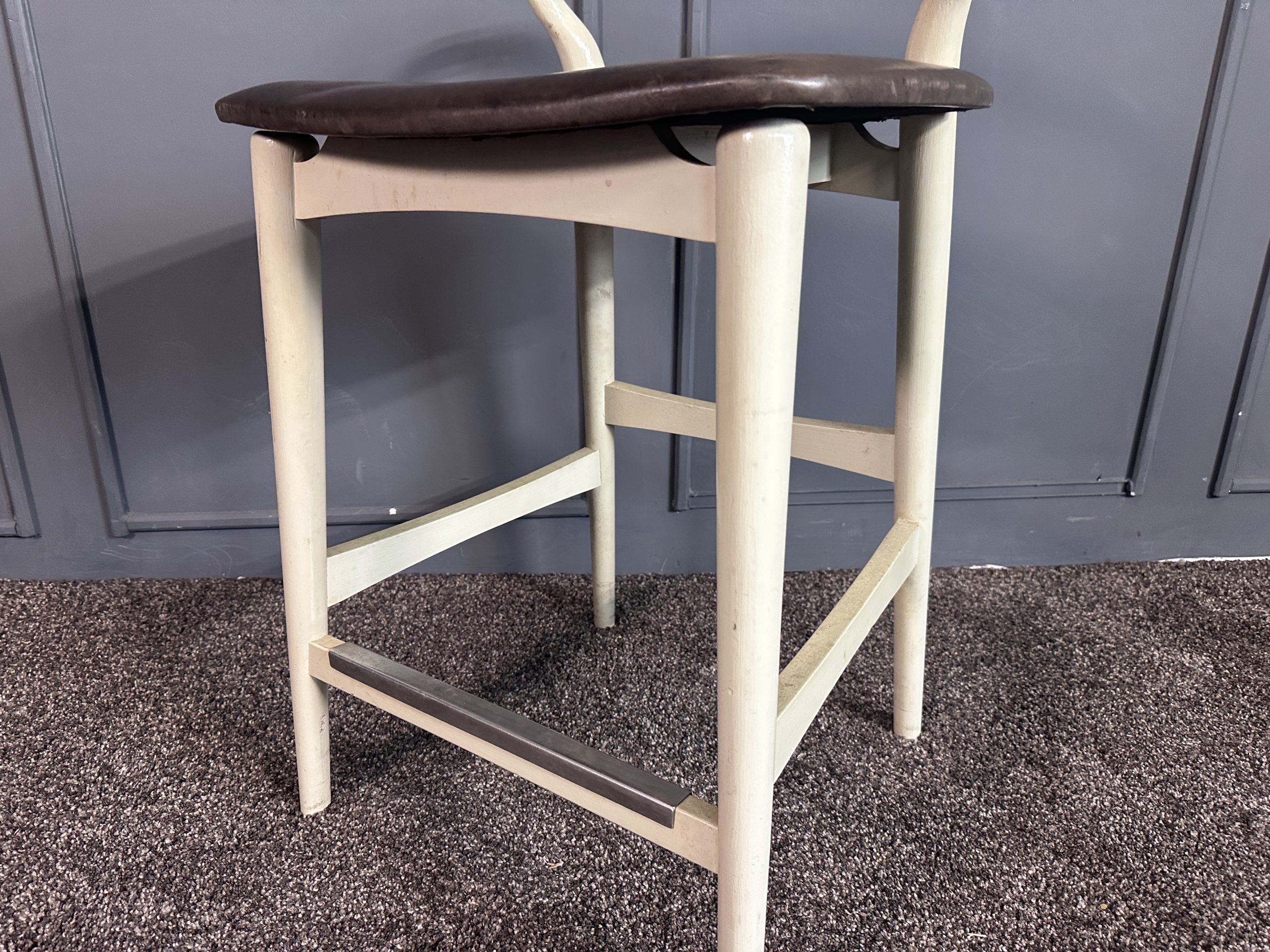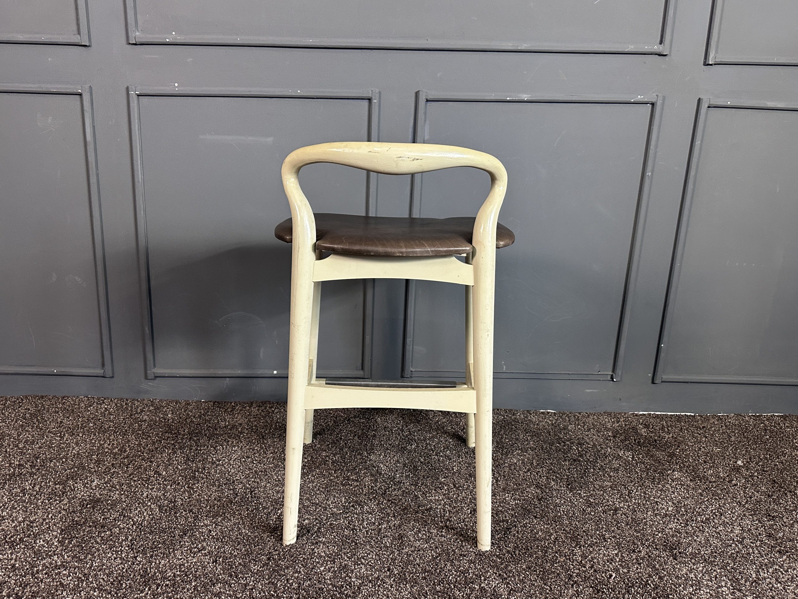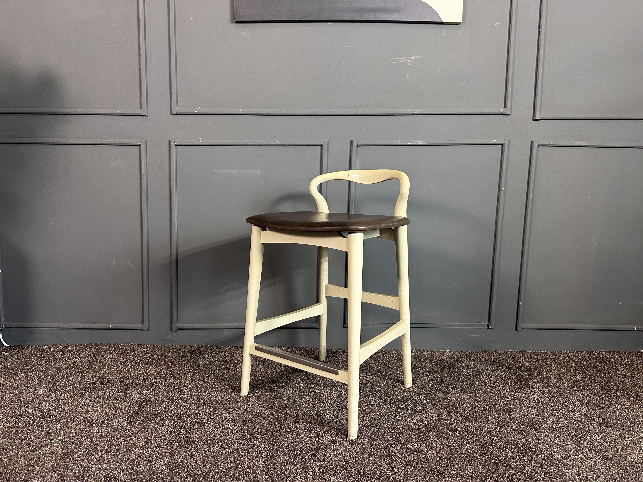 เก้าอี้มินิบาร์ เบาะหนังแท้สีน้ำตาลเข้ม โครงขาไม้สีขาว แบรนด์ Stanley Furniture