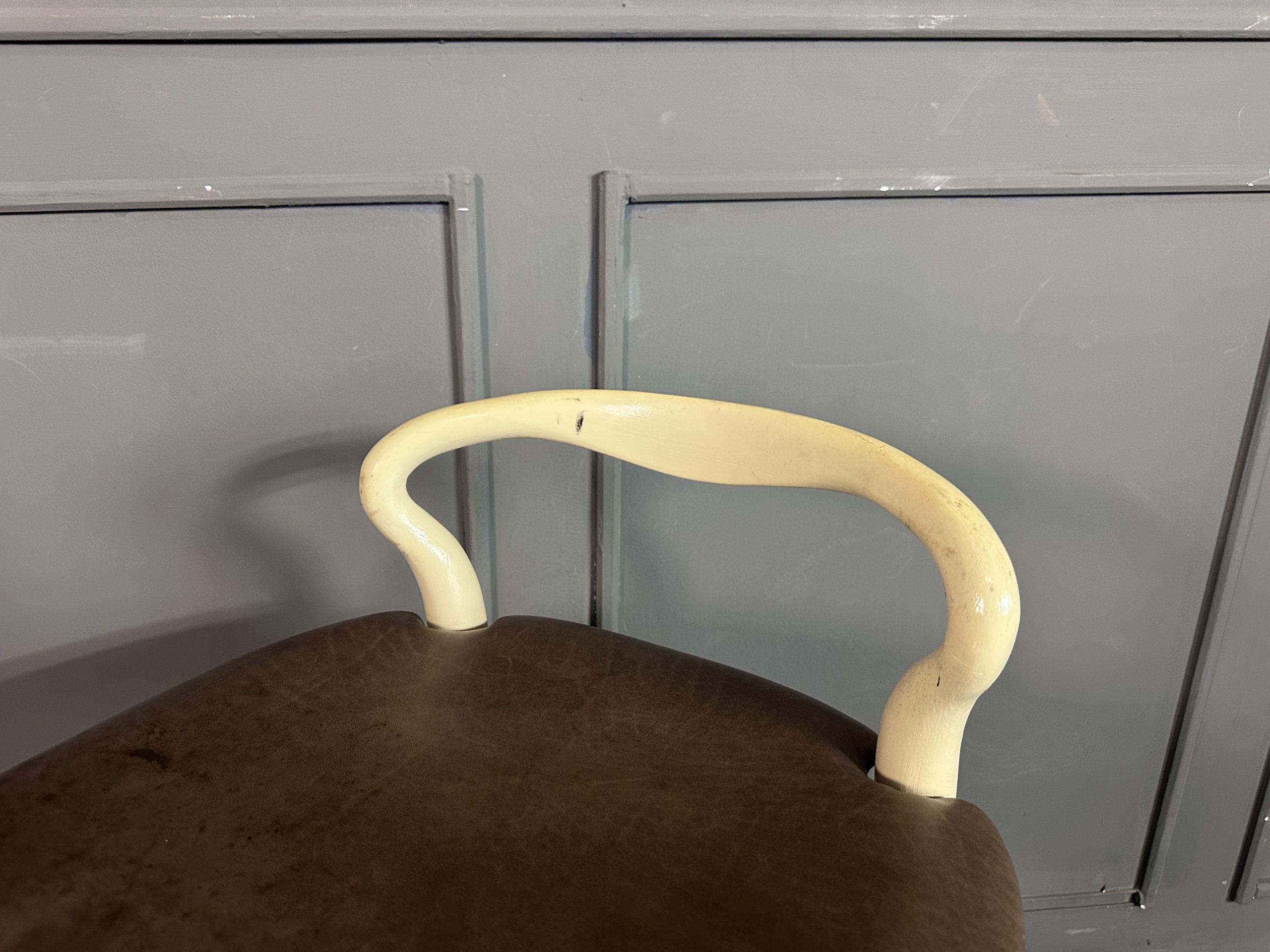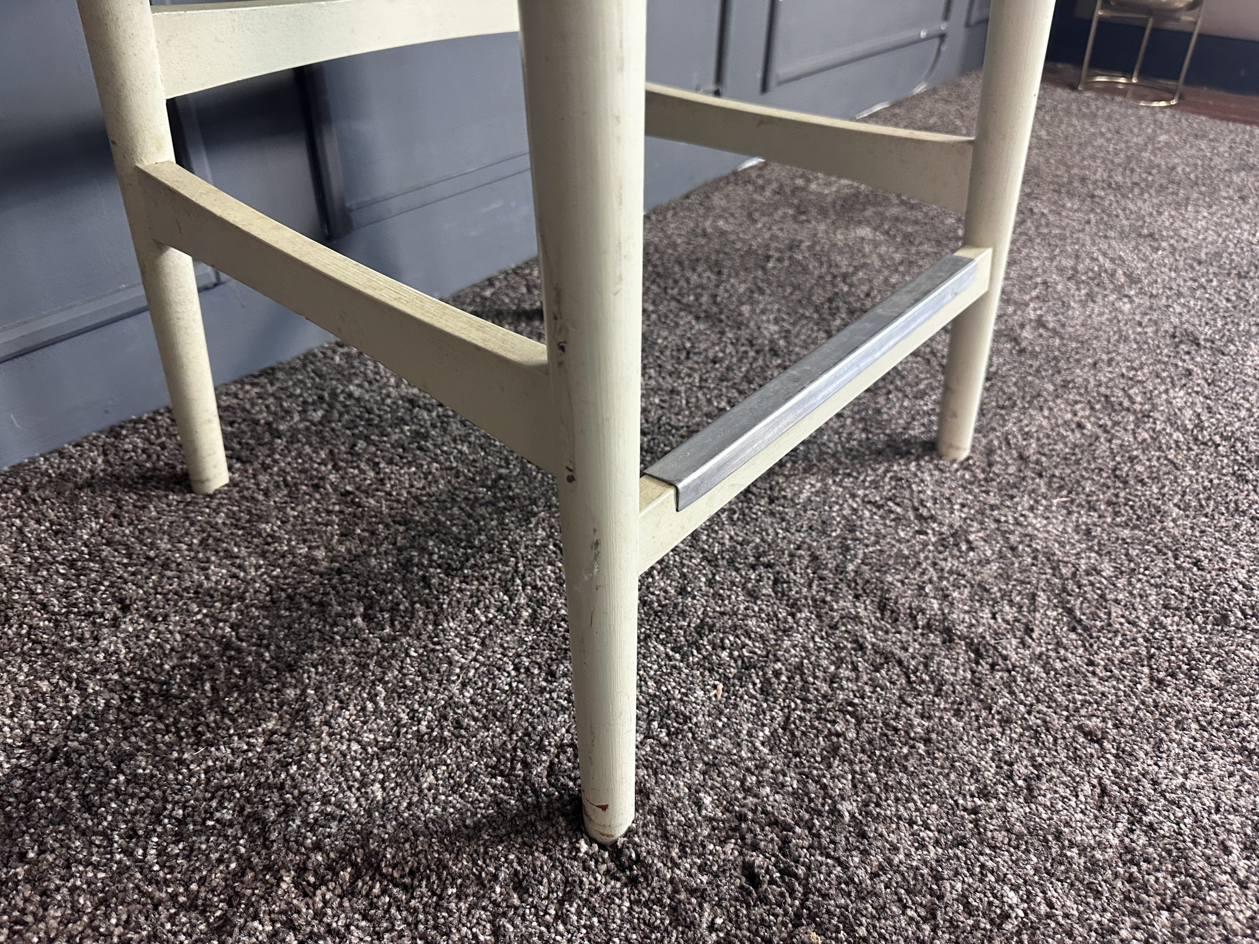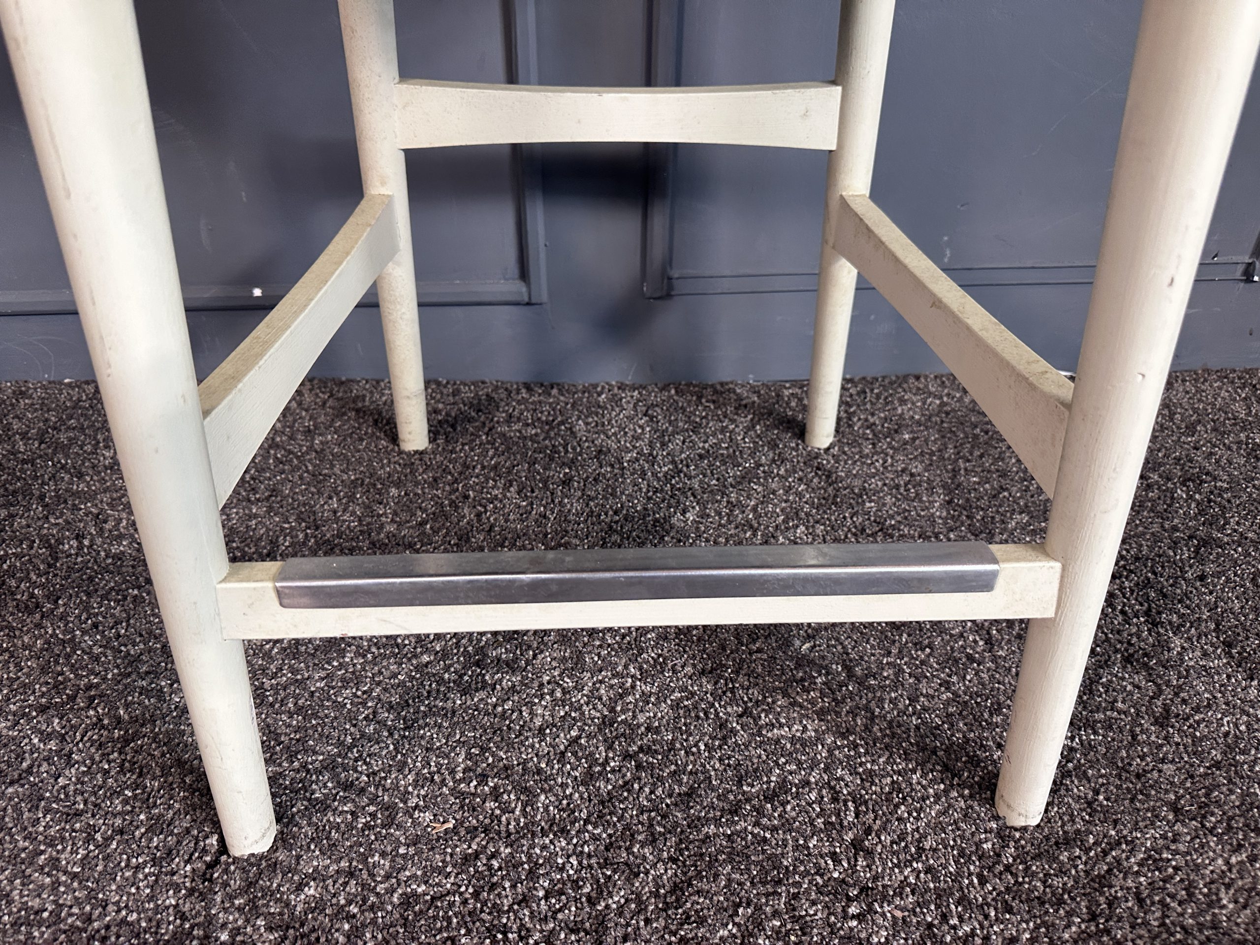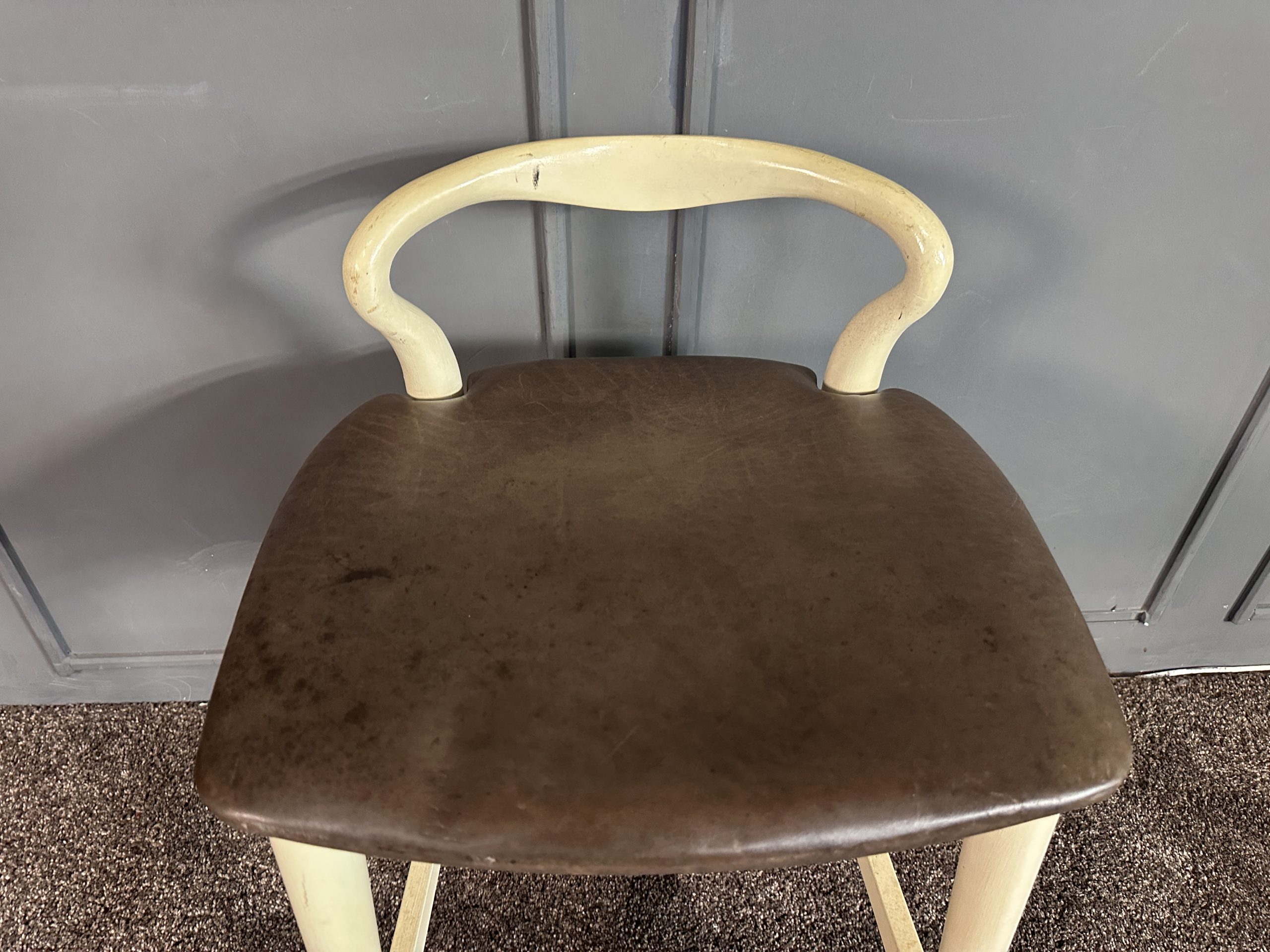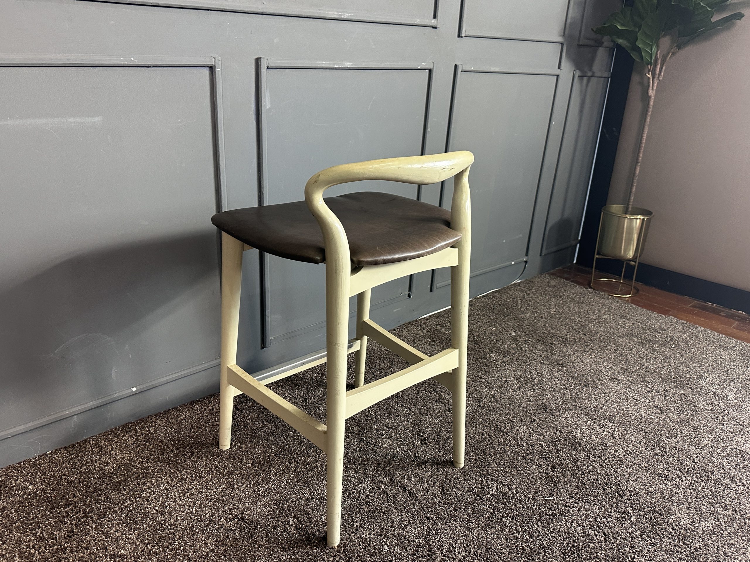 เก้าอี้มินิบาร์ เบาะหนังแท้สีน้ำตาลเข้ม โครงขาไม้สีขาว แบรนด์ Stanley Furniture