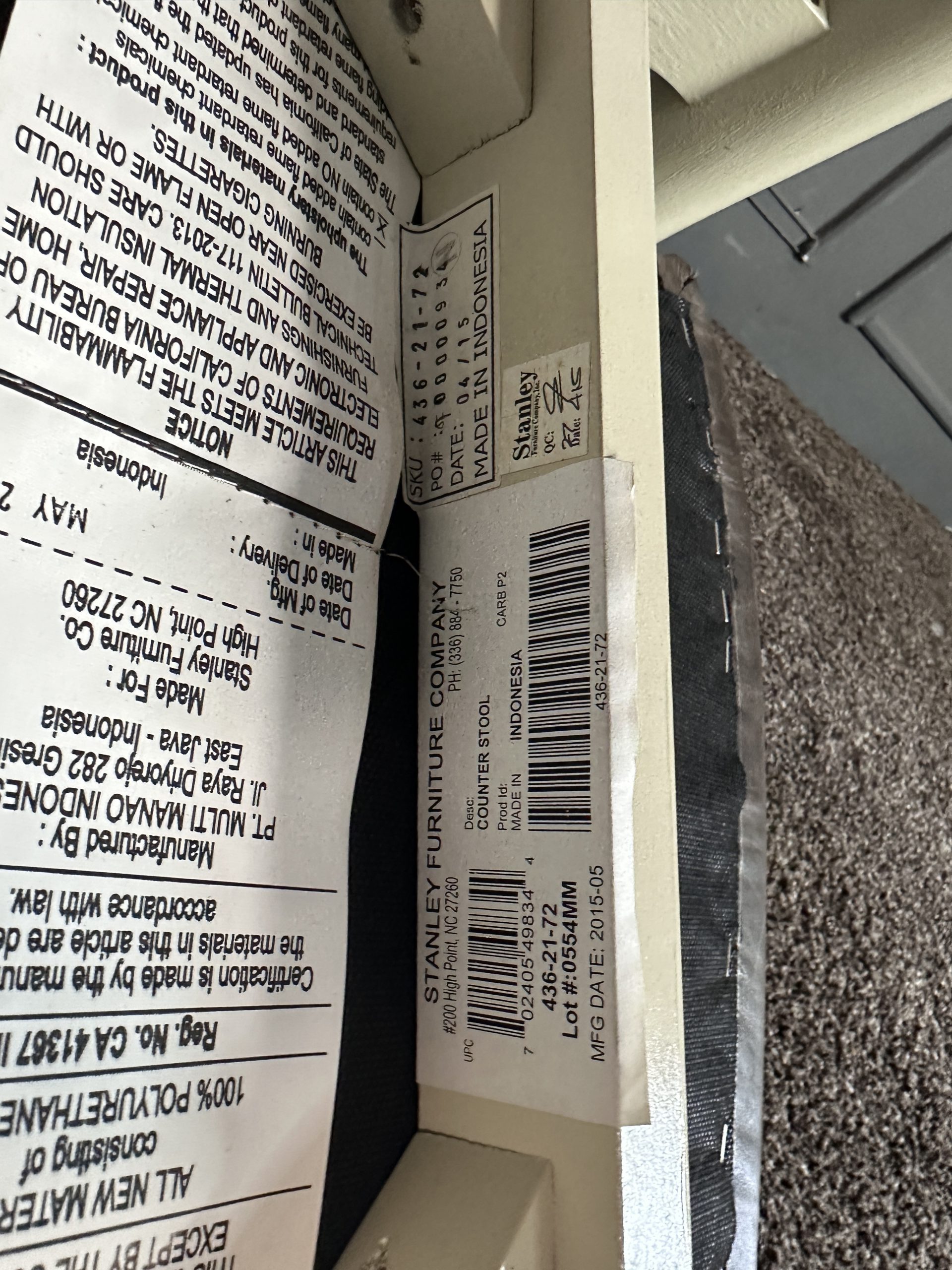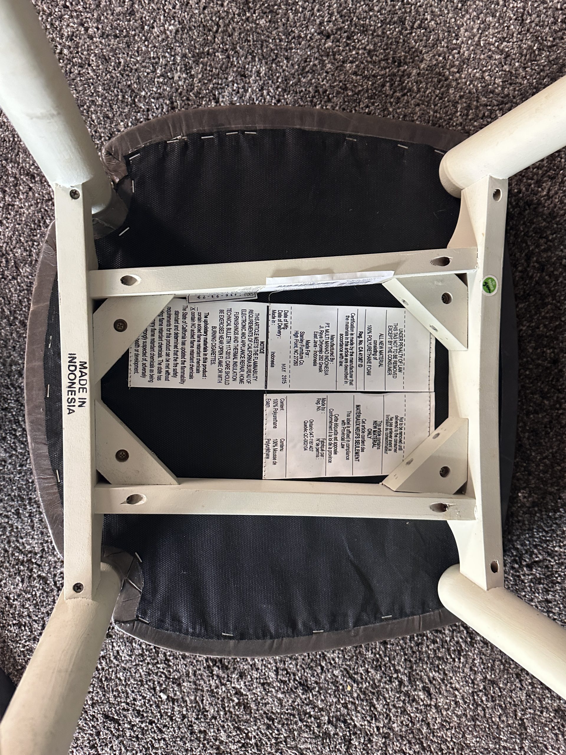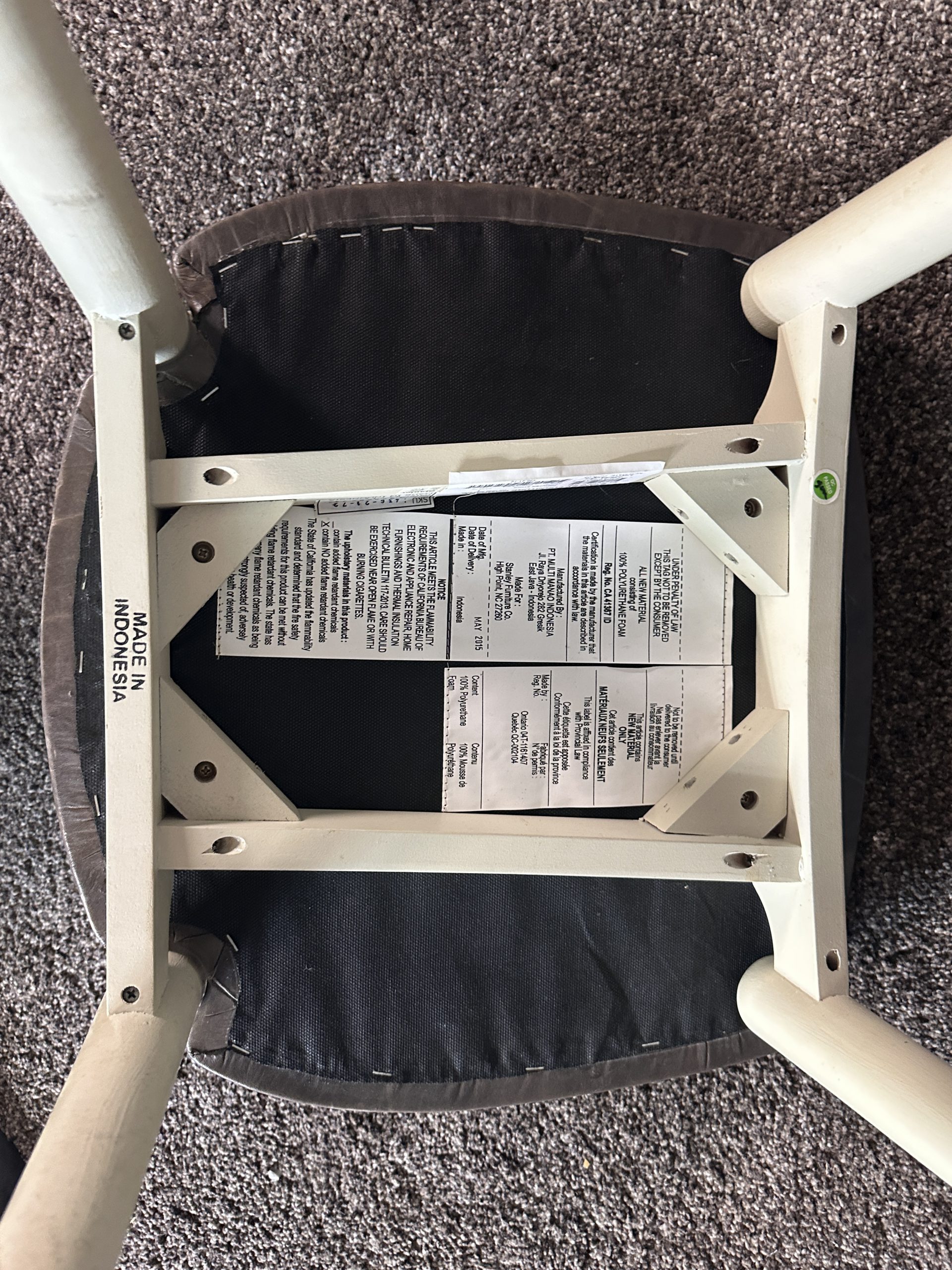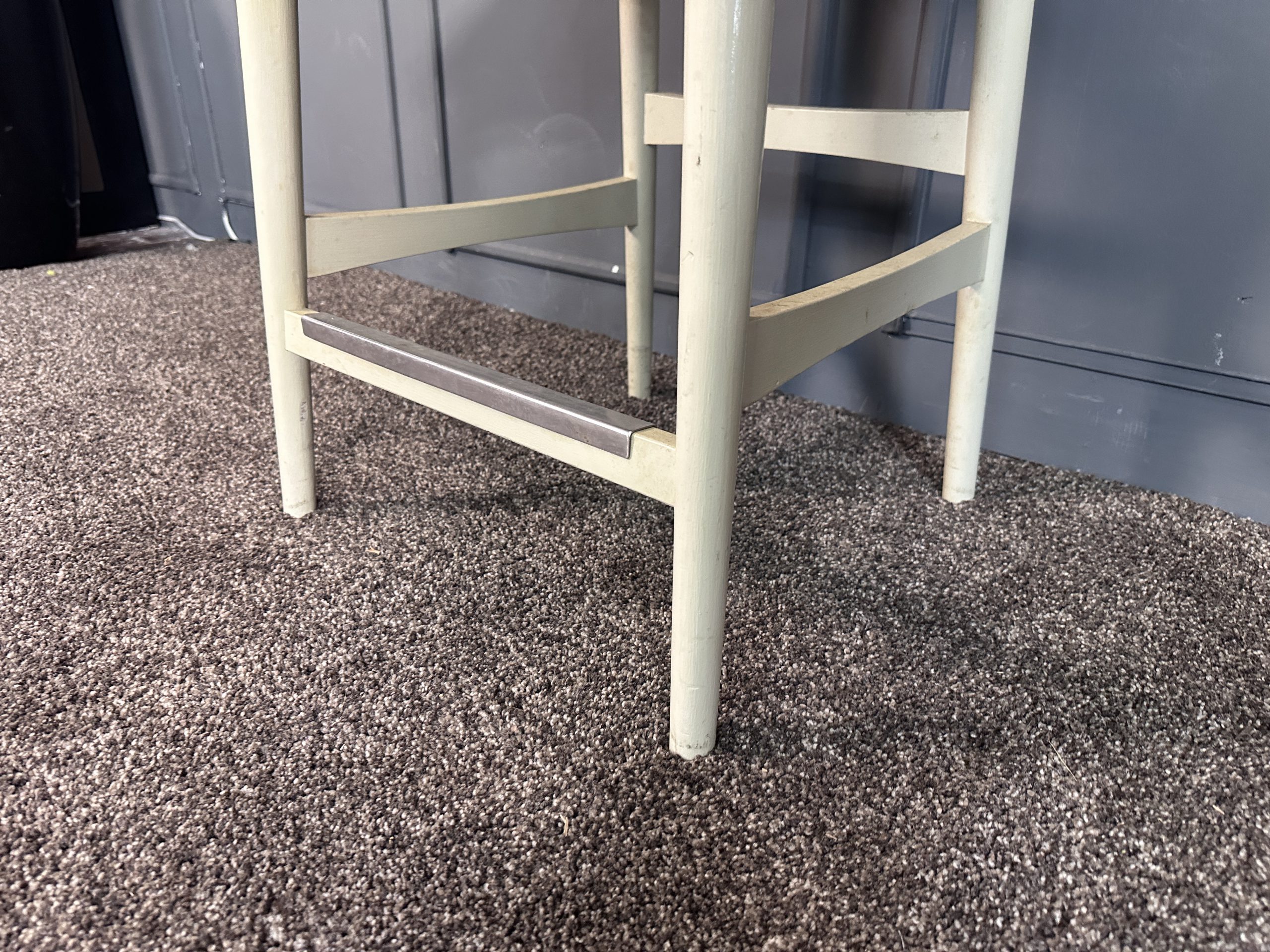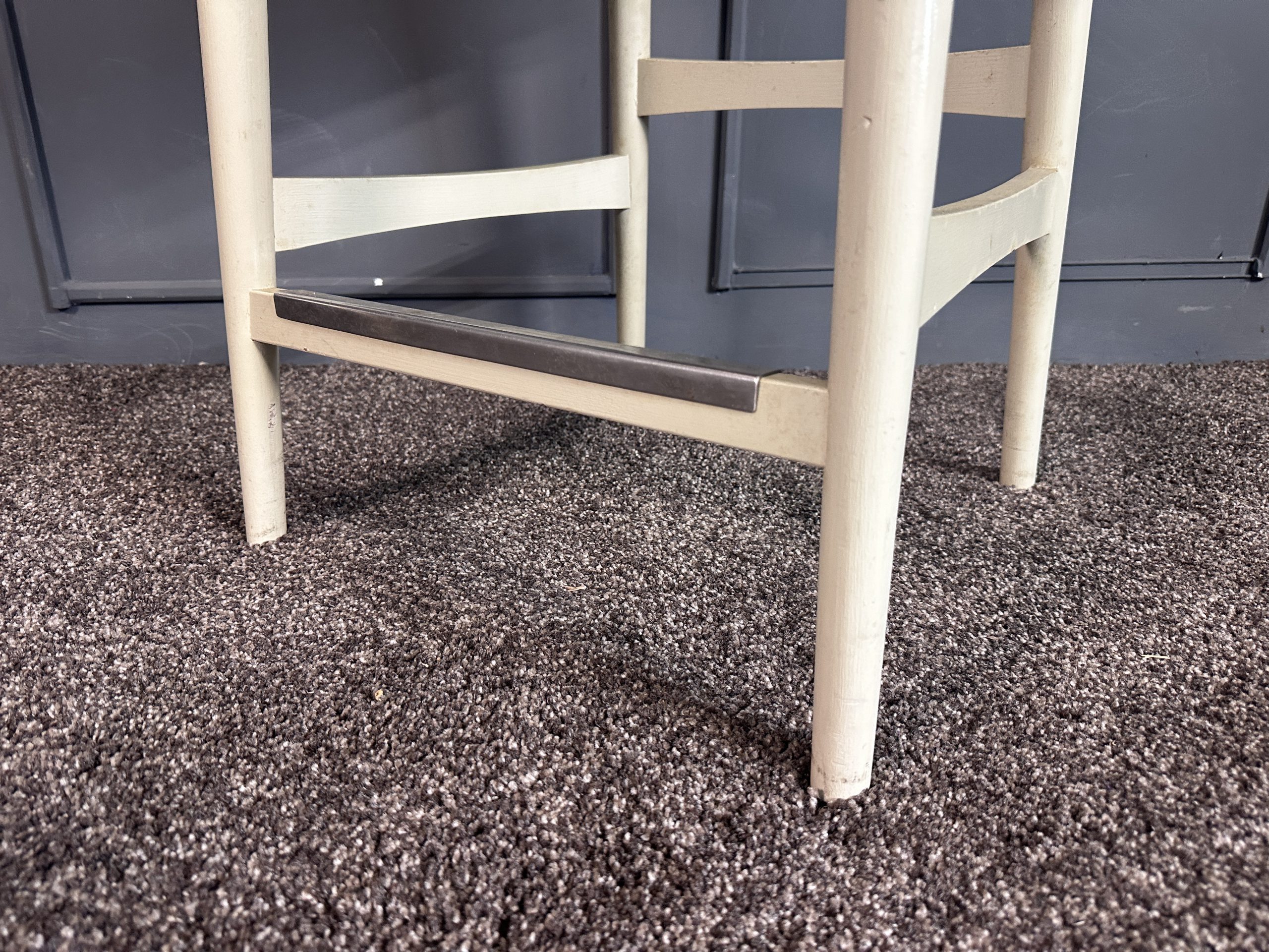 เก้าอี้มินิบาร์ เบาะหนังแท้สีน้ำตาลเข้ม โครงขาไม้สีขาว แบรนด์ Stanley Furniture