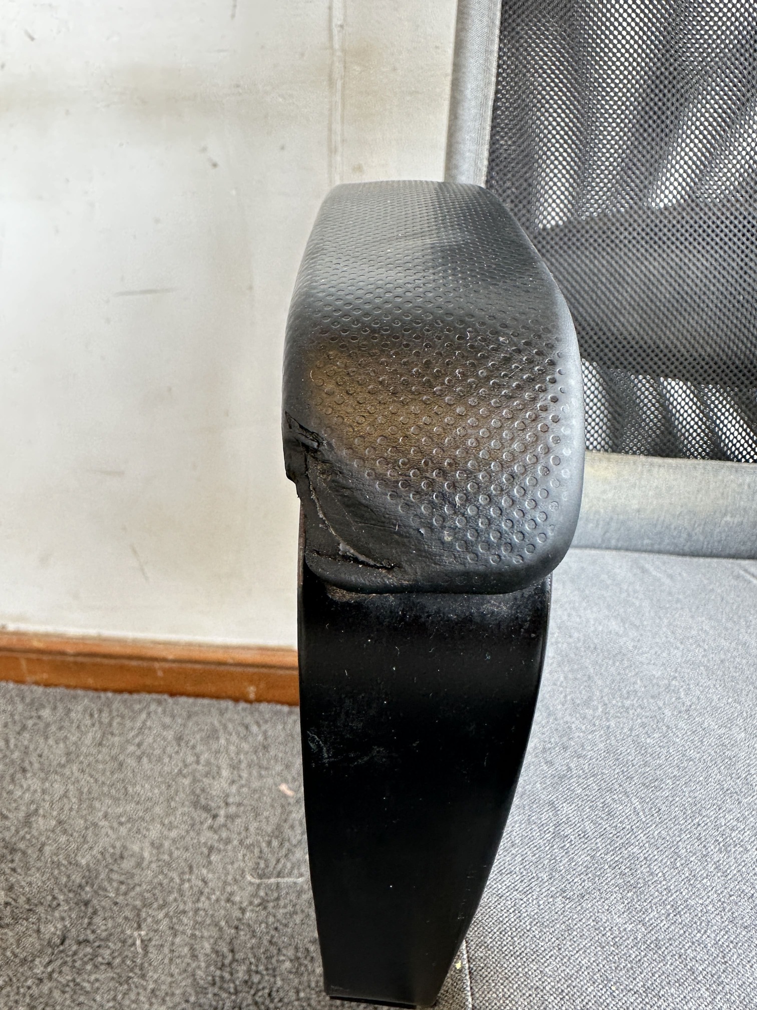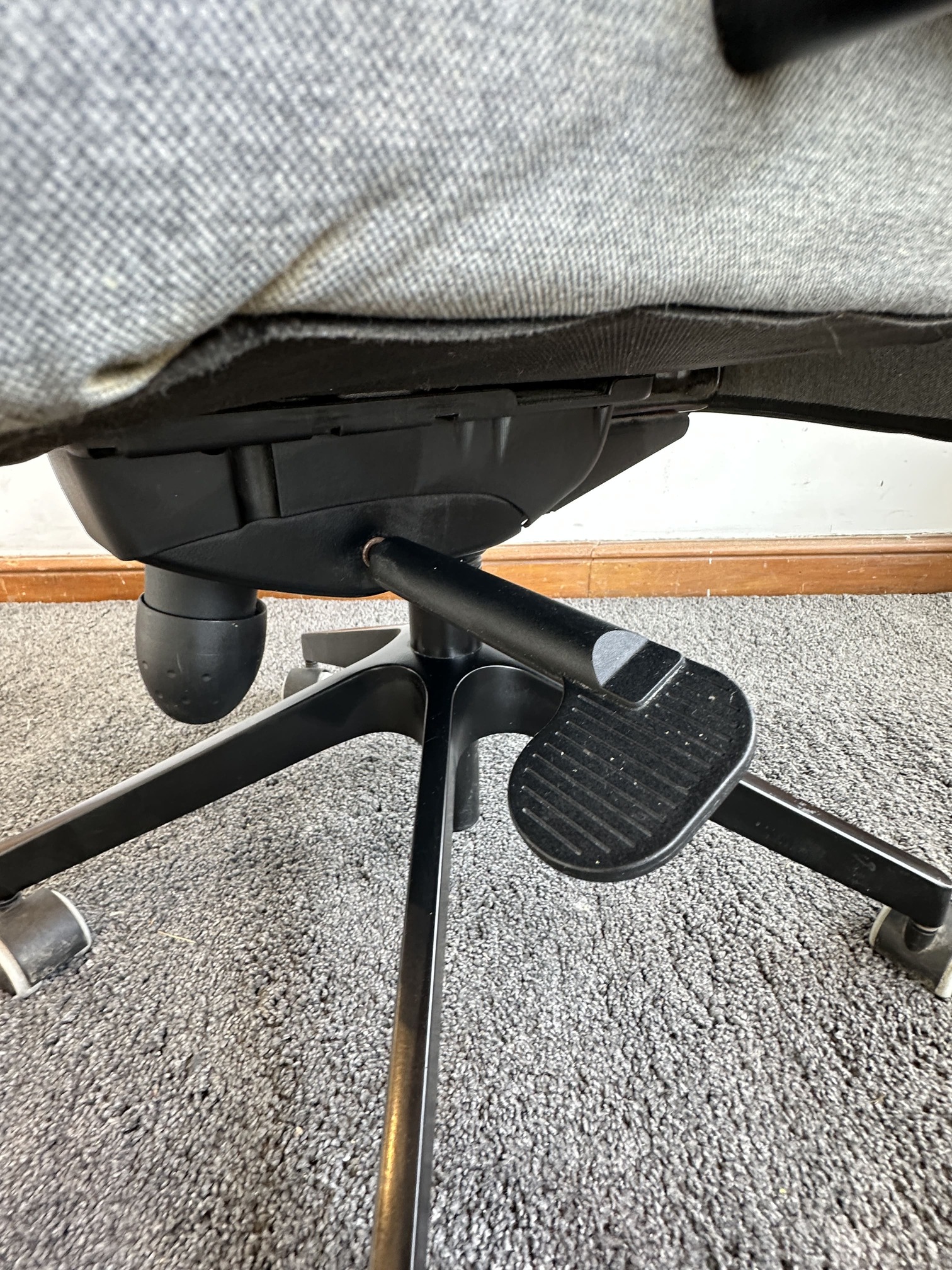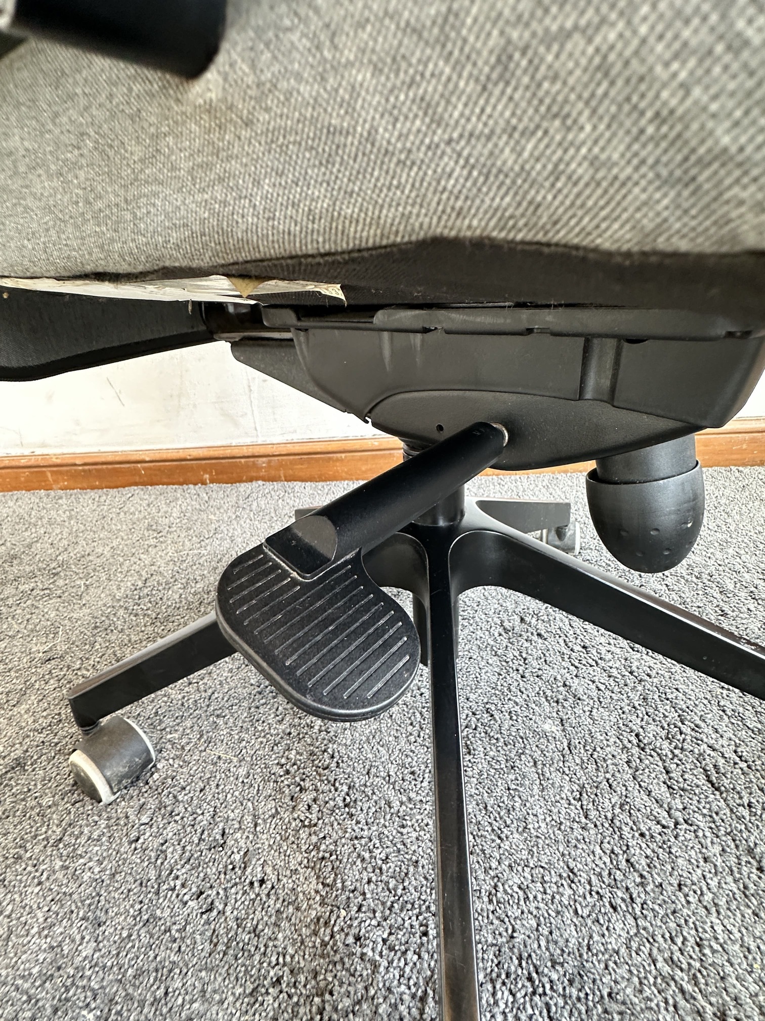 เก้าอี้สำนักงานหลังสูง แบรนด์ IKEA รุ่น MARKUS เบาะผ้าสีเทา พักแขนเหล็กติดโฟมดำ มีโช็คปรับหนืดล็อคพิงหลังได้ โครงเหล็ก ขาอลูมิเนีบม ล้อเลื่อน