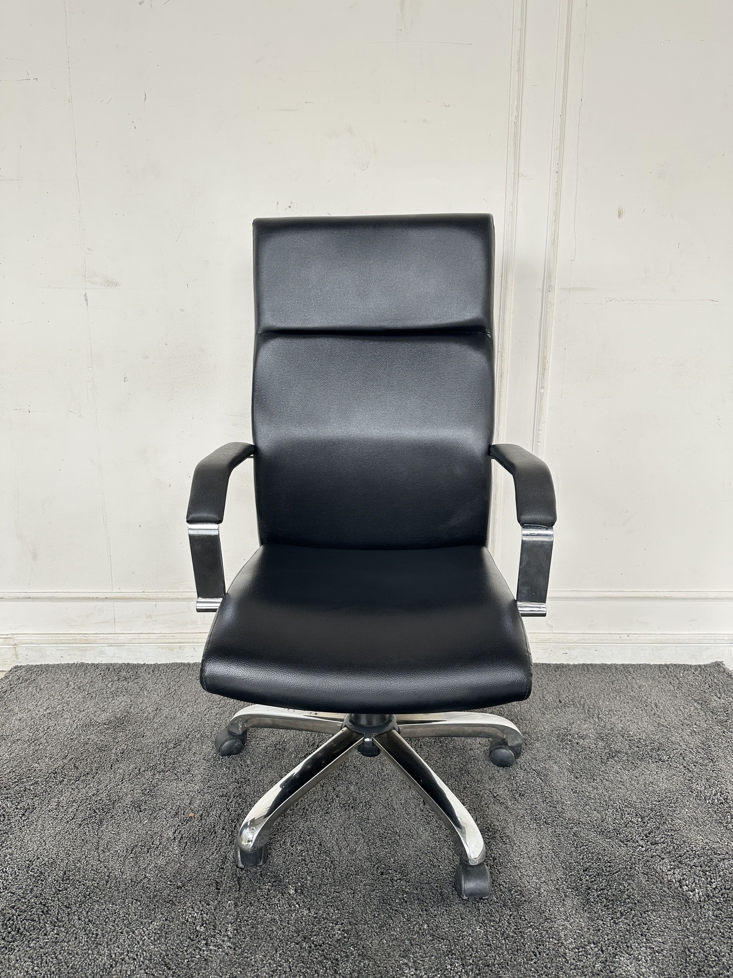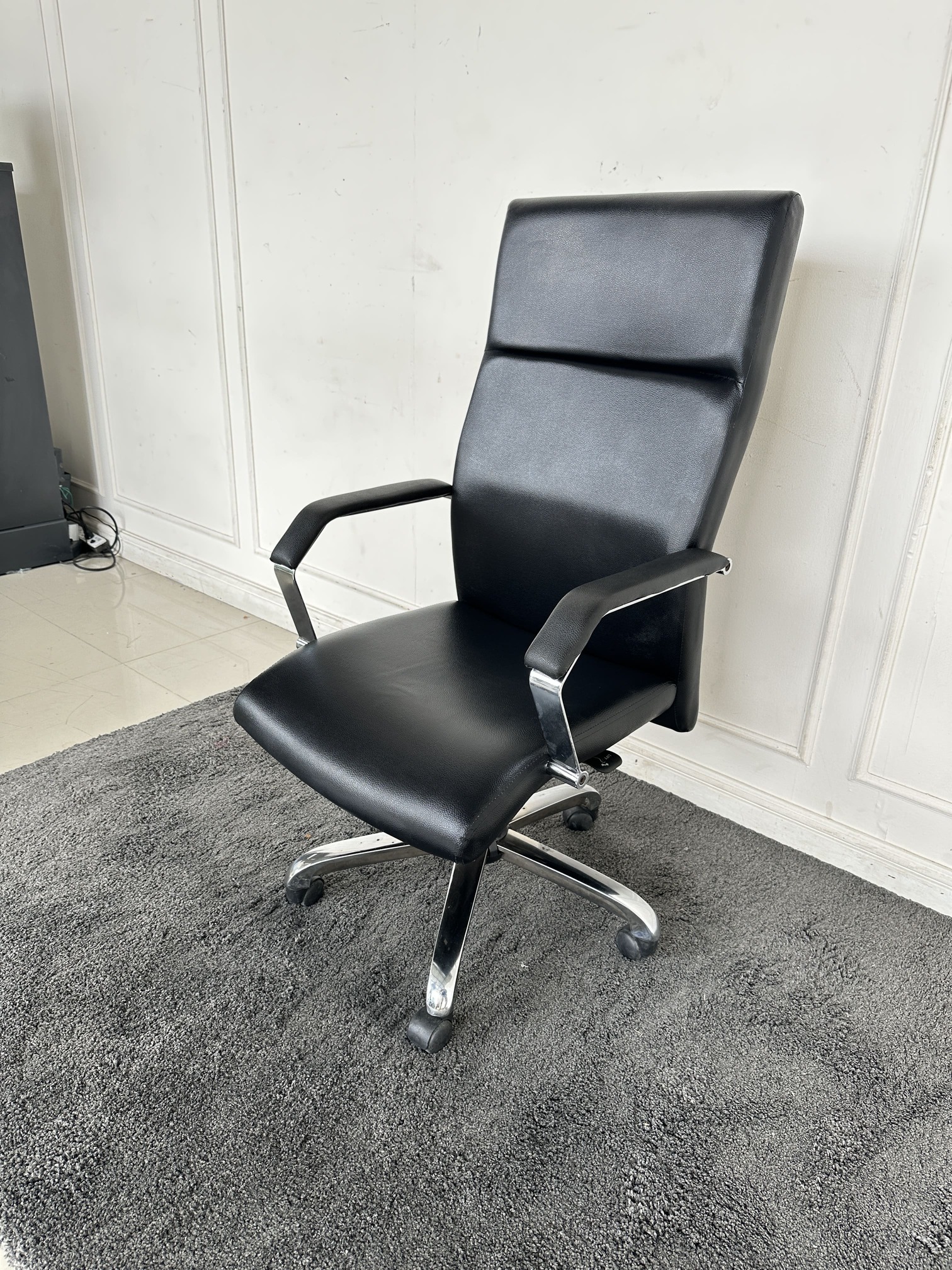 เก้าอี้สำนักงานหลังสูง เบาะหุ้มหนัง PU สีดำ