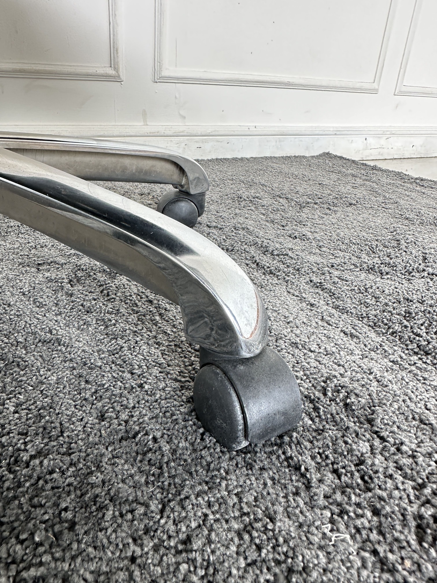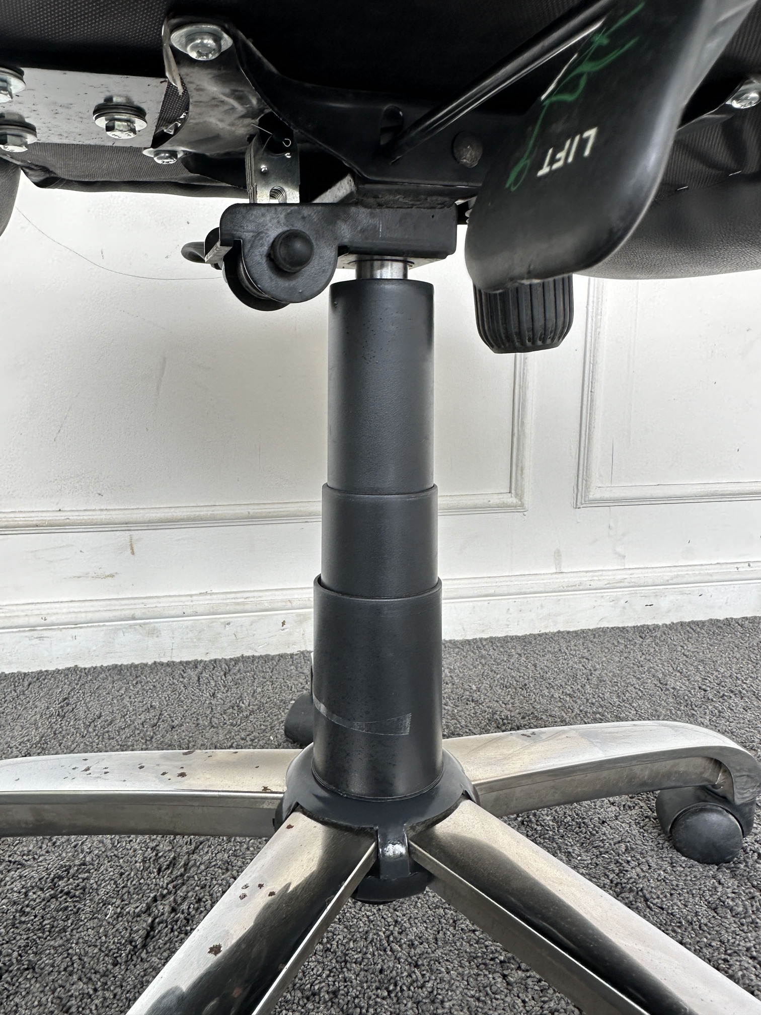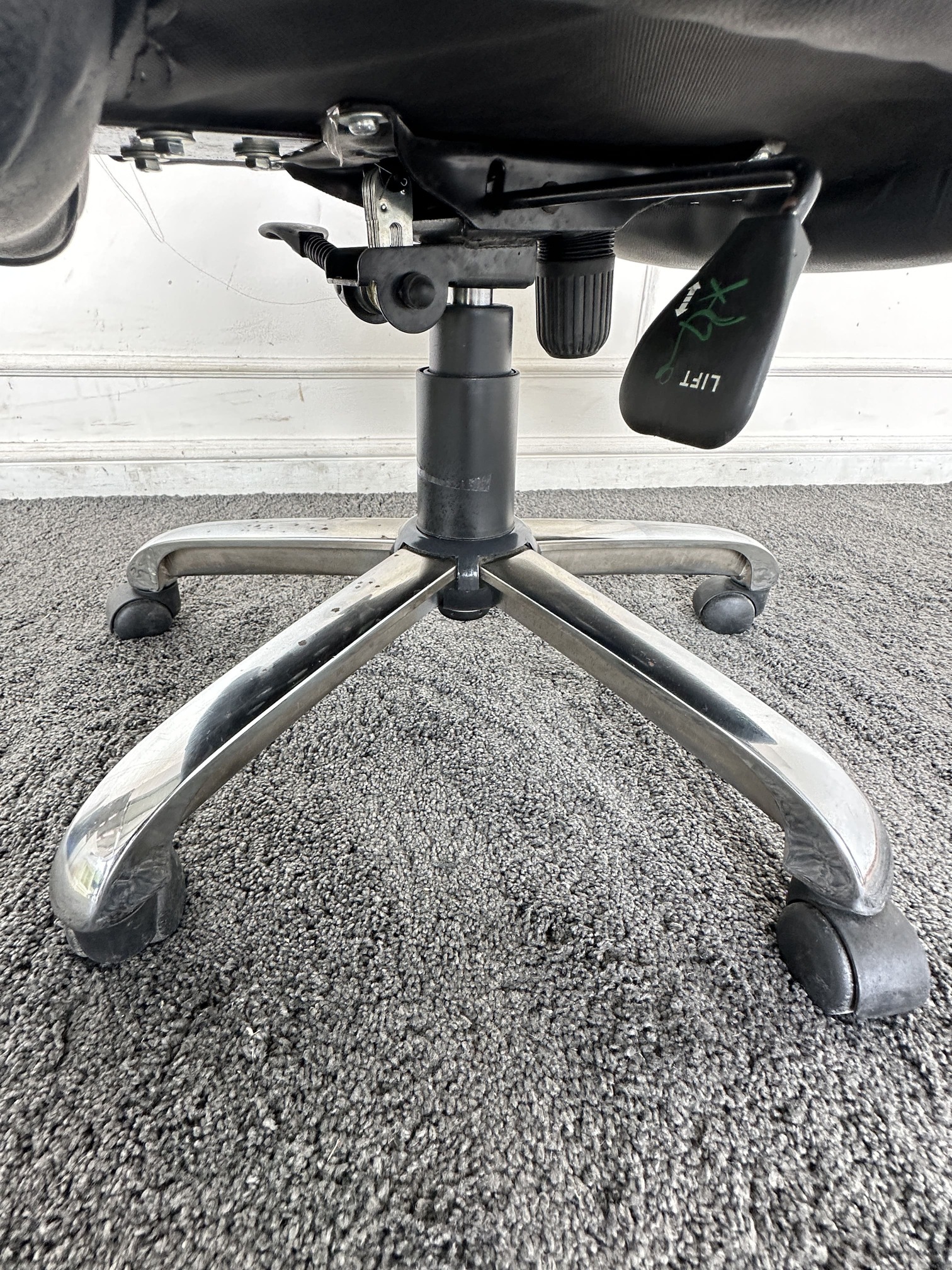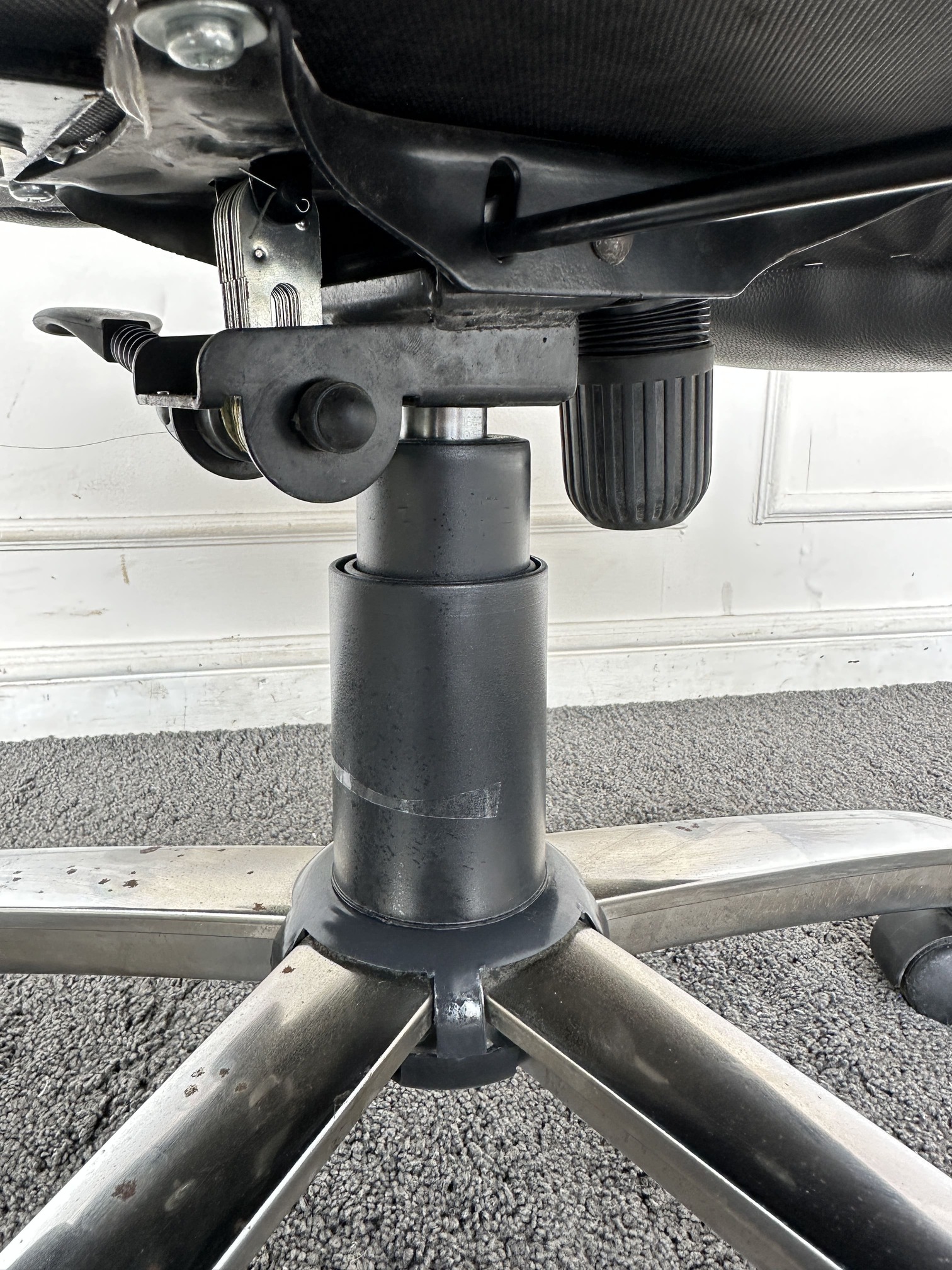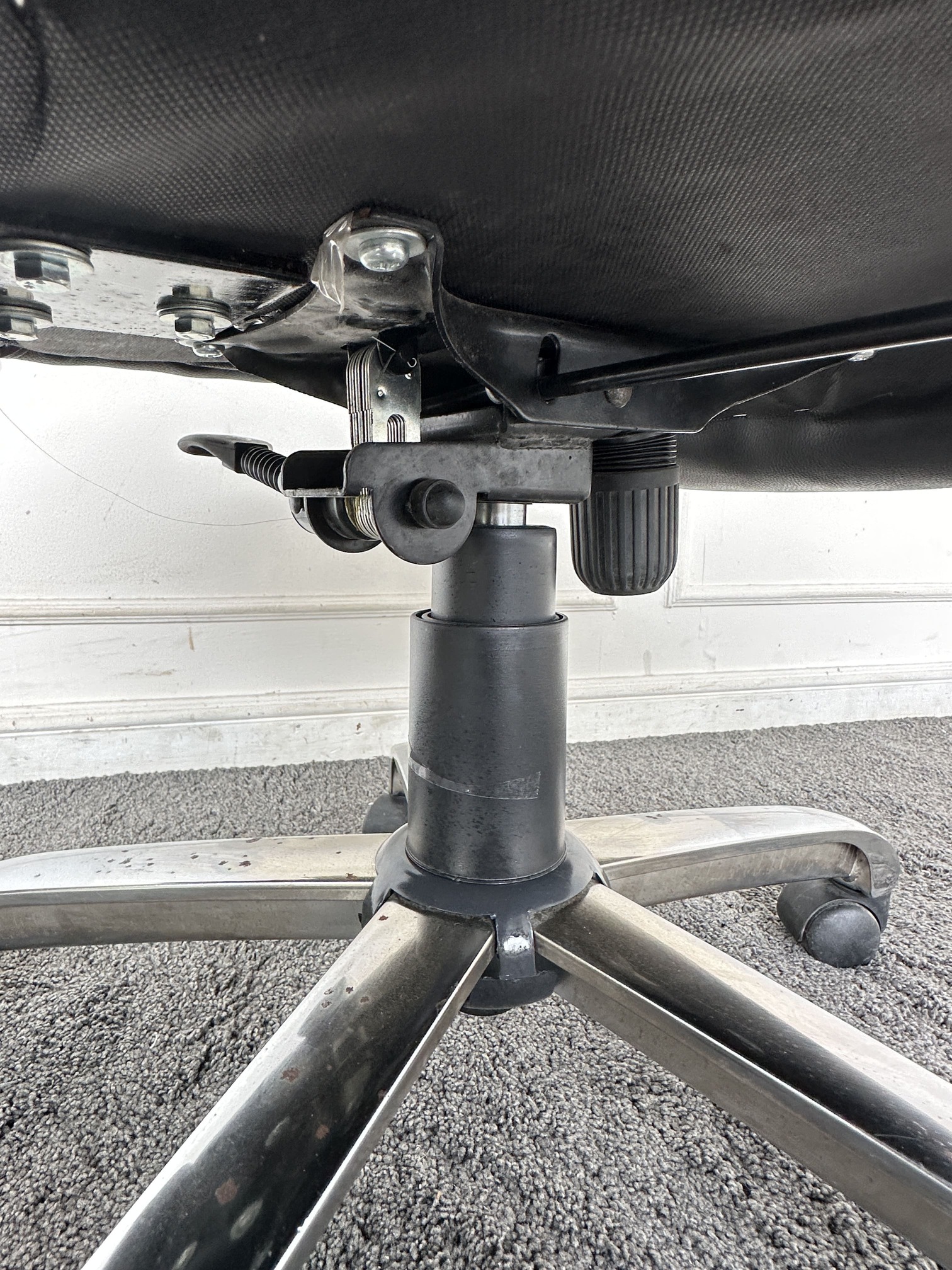 เก้าอี้สำนักงานหลังสูง เบาะหุ้มหนัง PU สีดำ มีโช็คปรับหนืด ล็อคพิงหลังได้ ขาเหล็ก ล้อเลื่อน