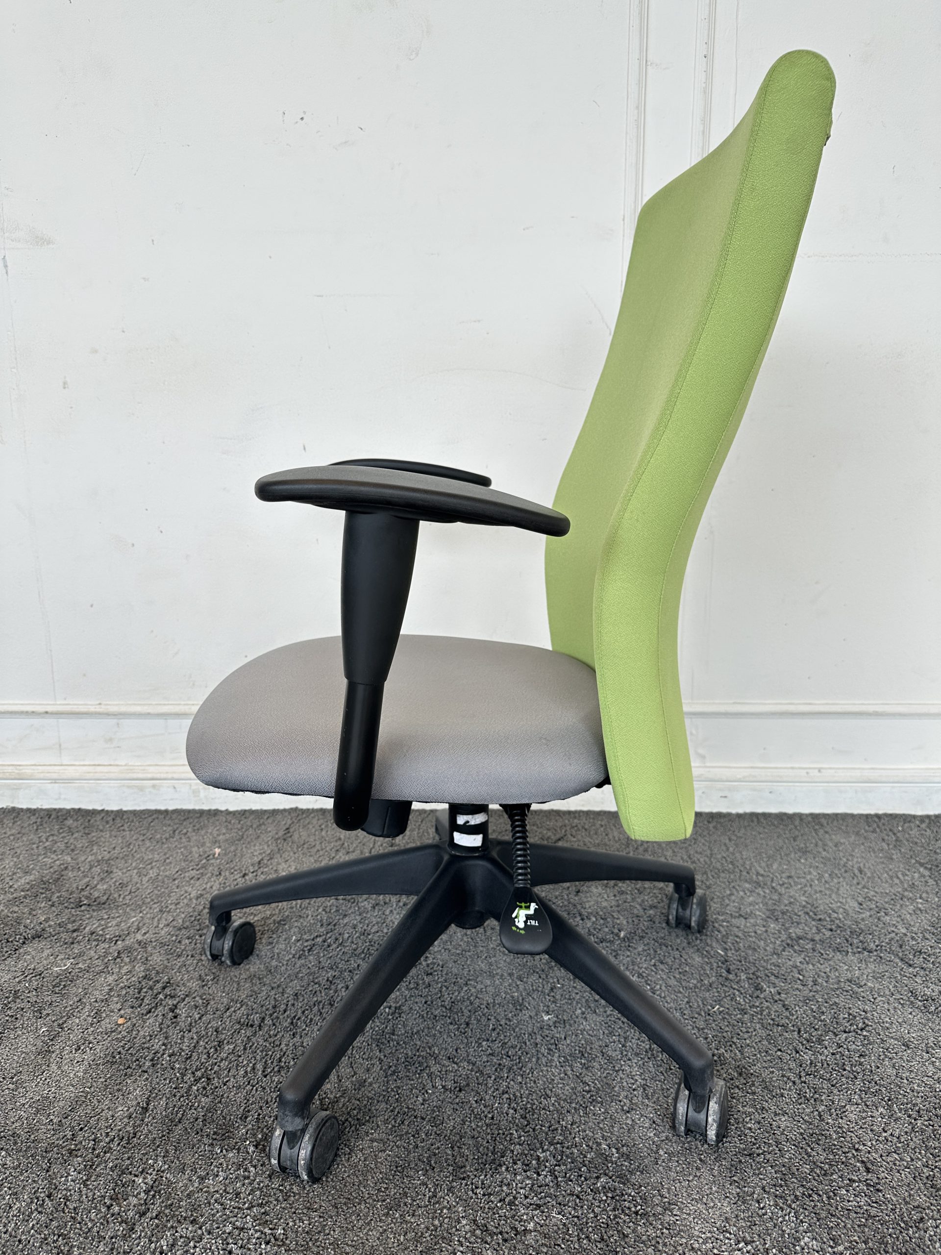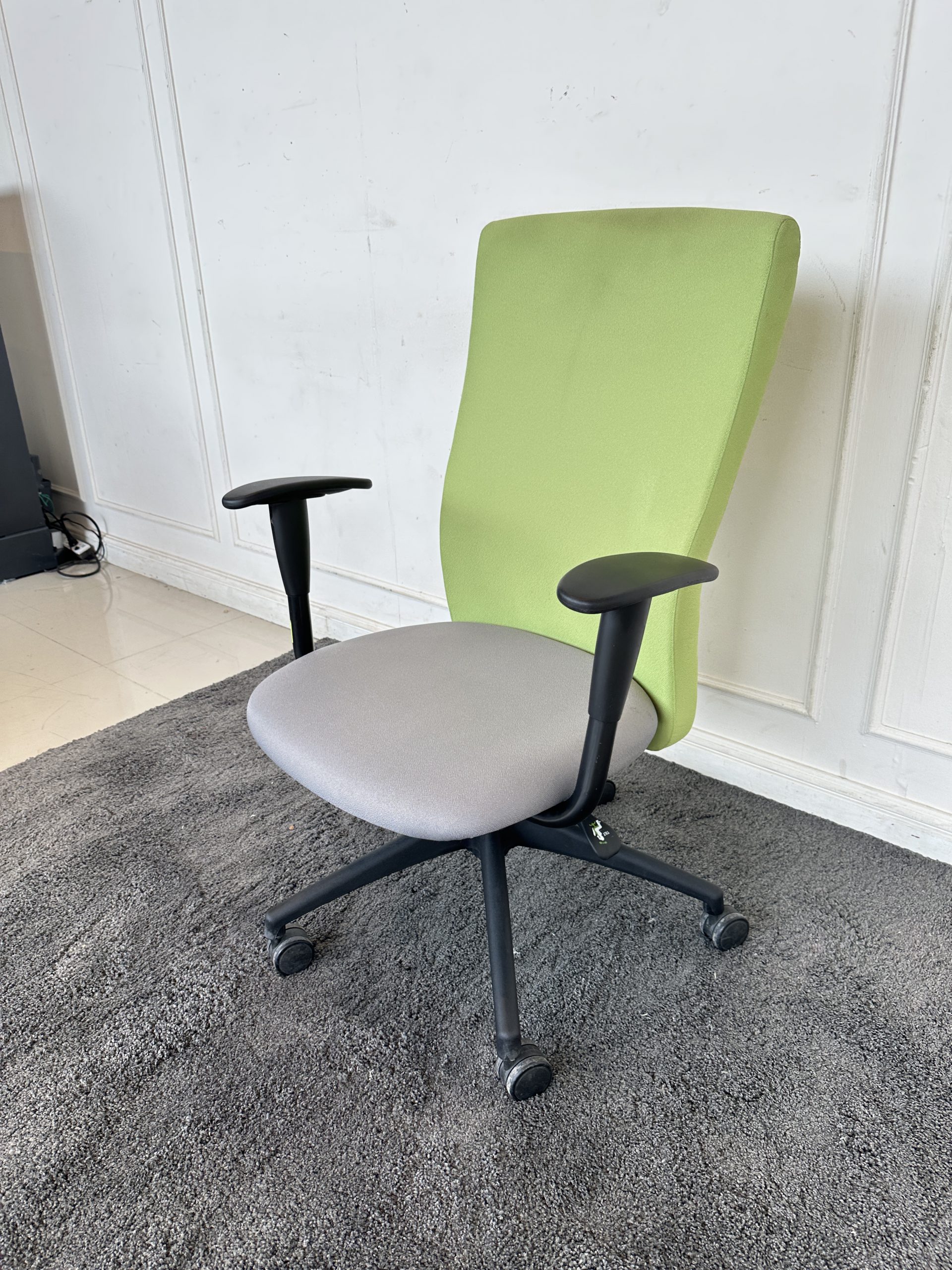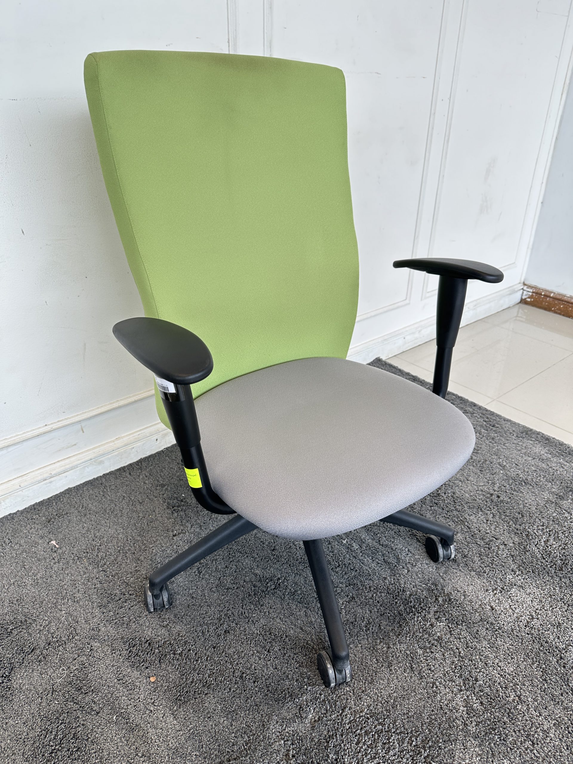 เก้าอี้สำนักงานหลังสูง เบาะผ้าสีเทา พิงหลังผ้าสีเขียว