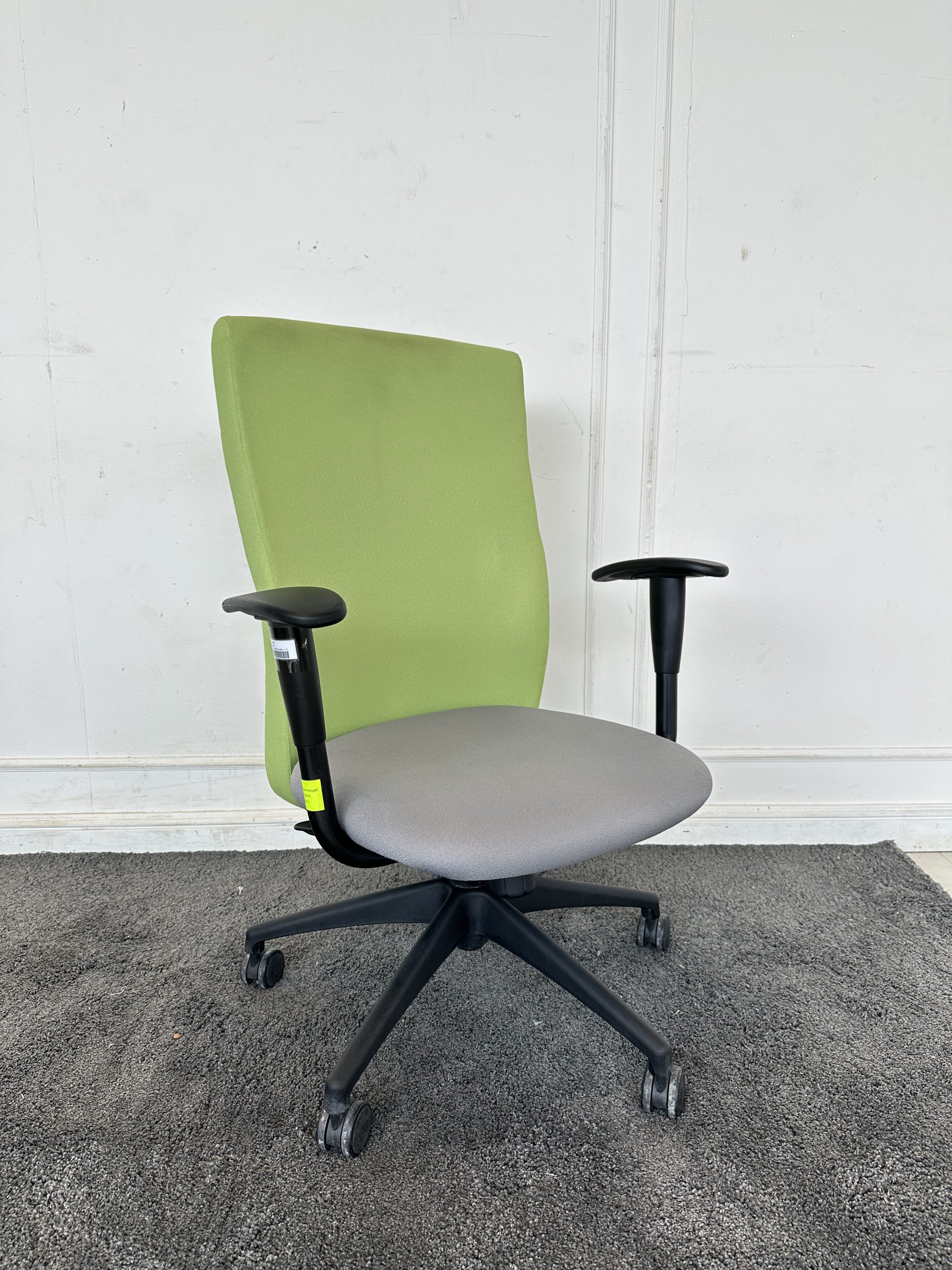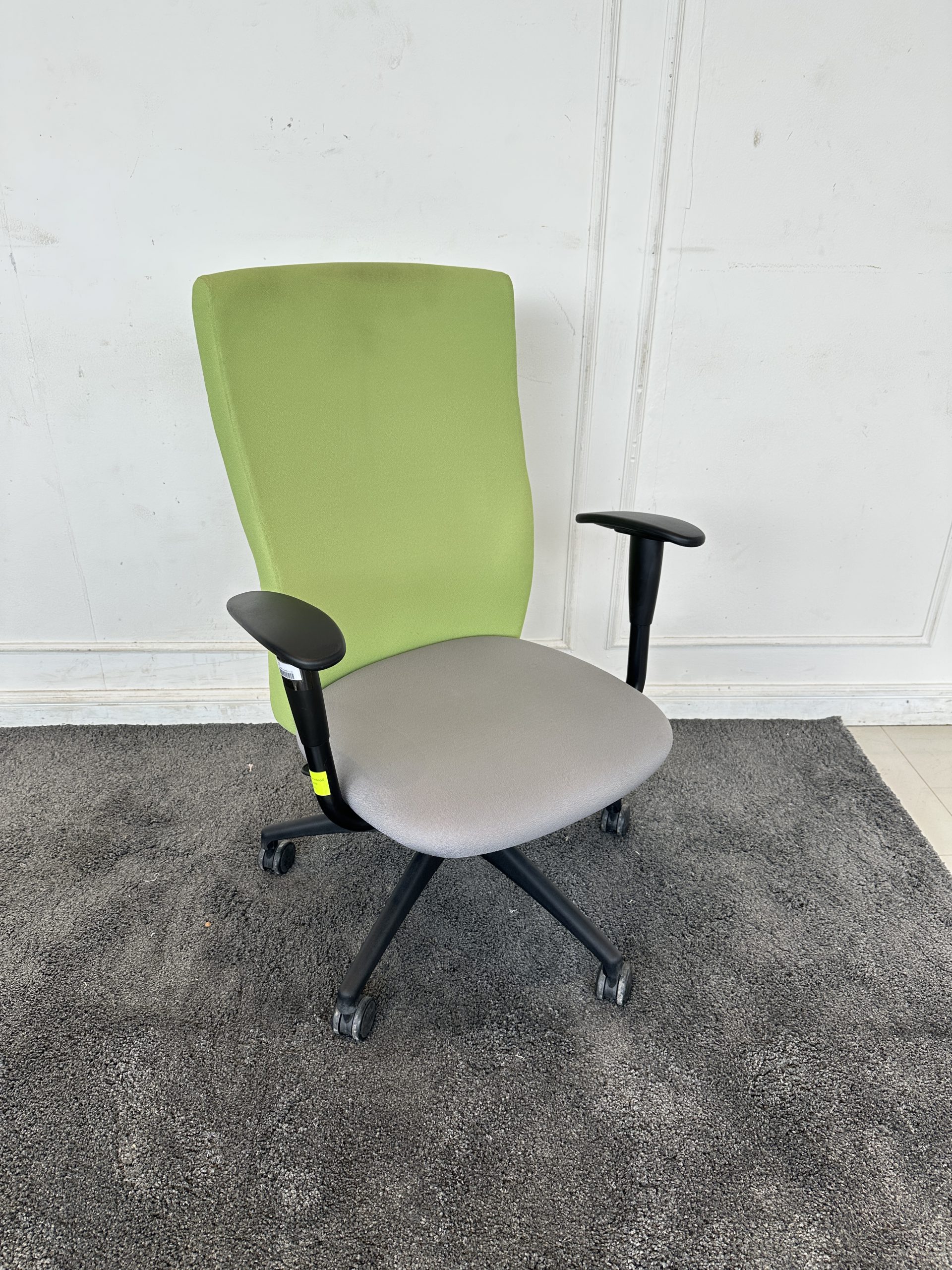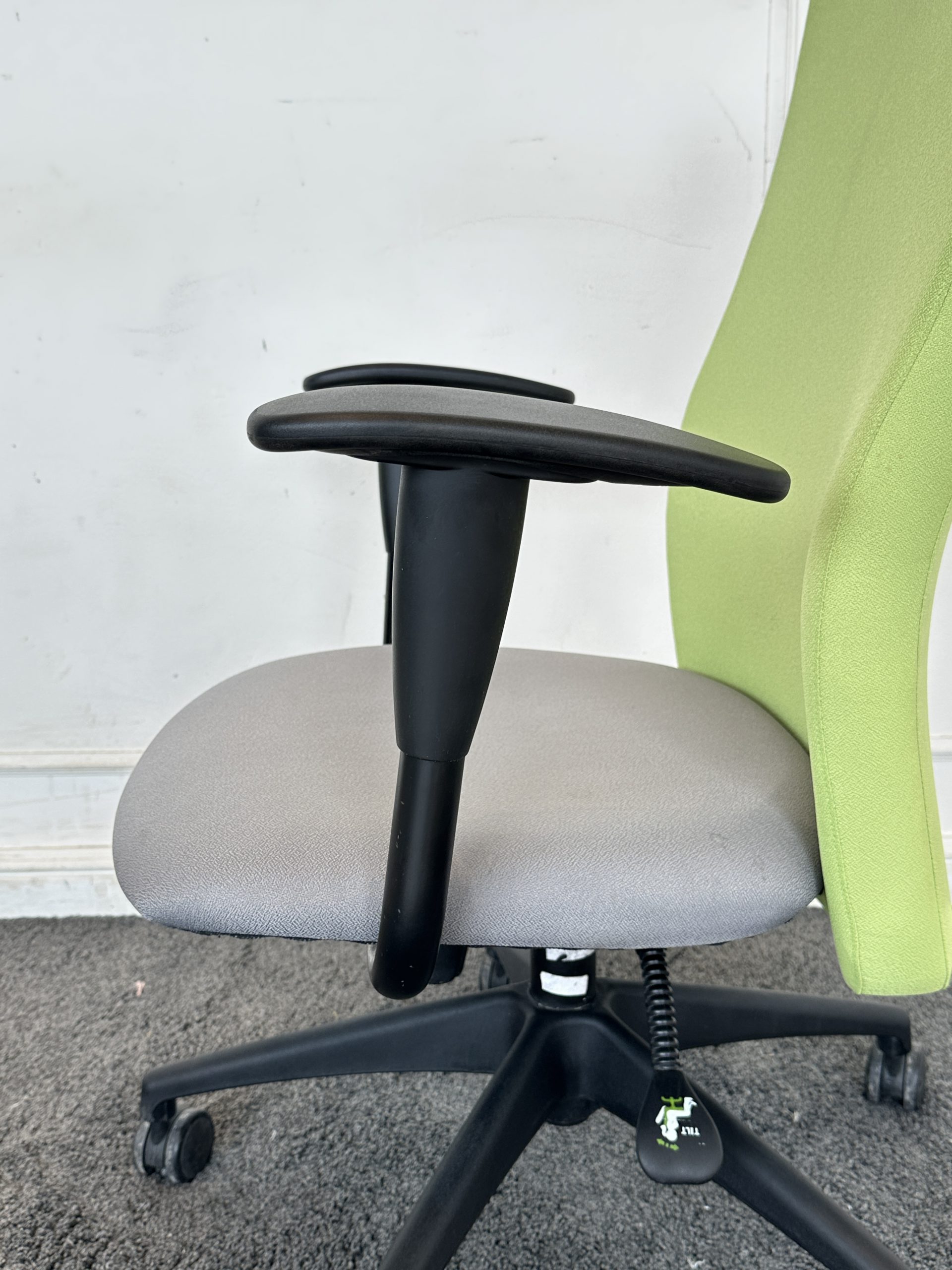 เก้าอี้สำนักงานหลังสูง เบาะผ้าสีเทา พิงหลังผ้าสีเขียว
