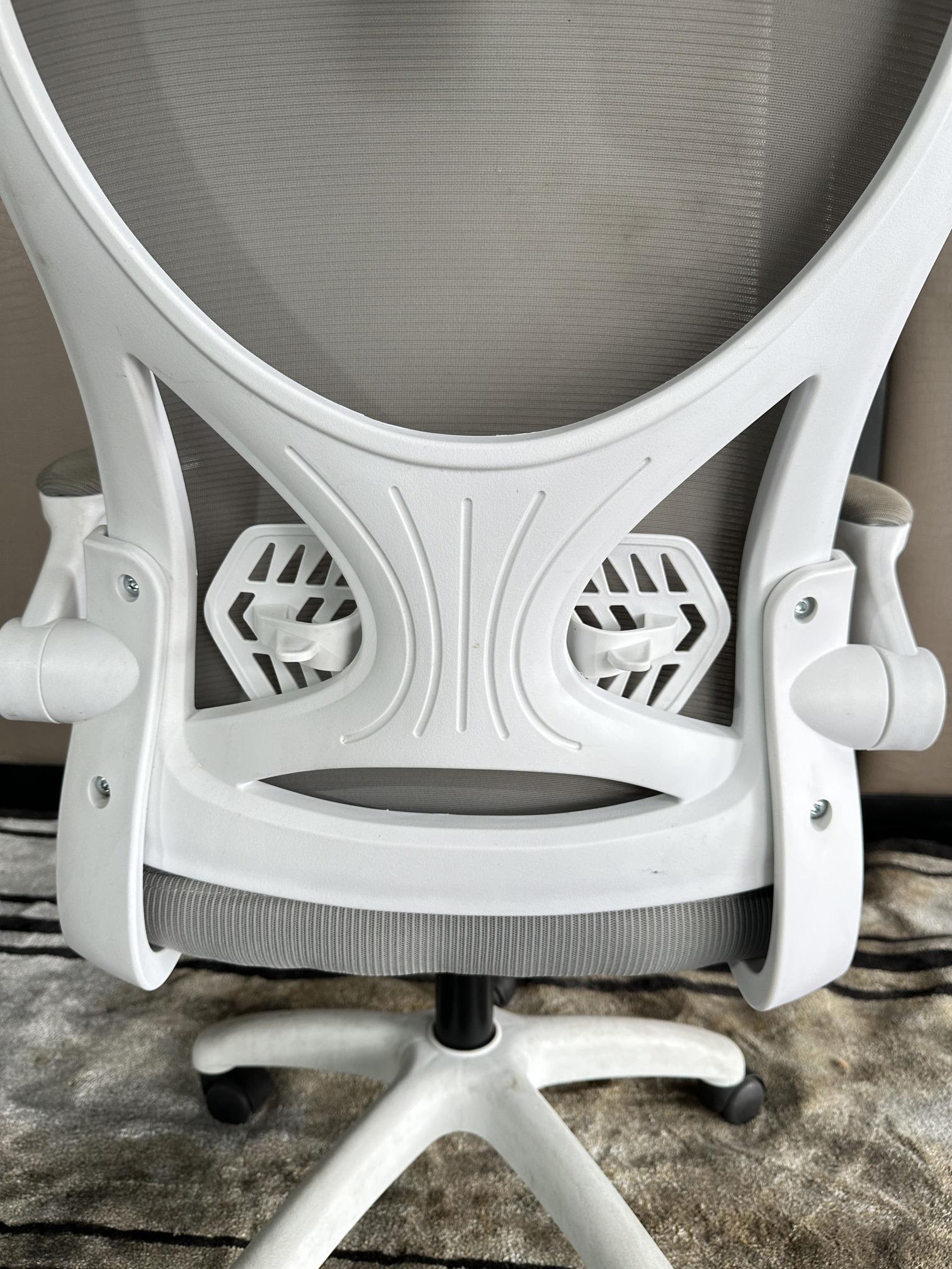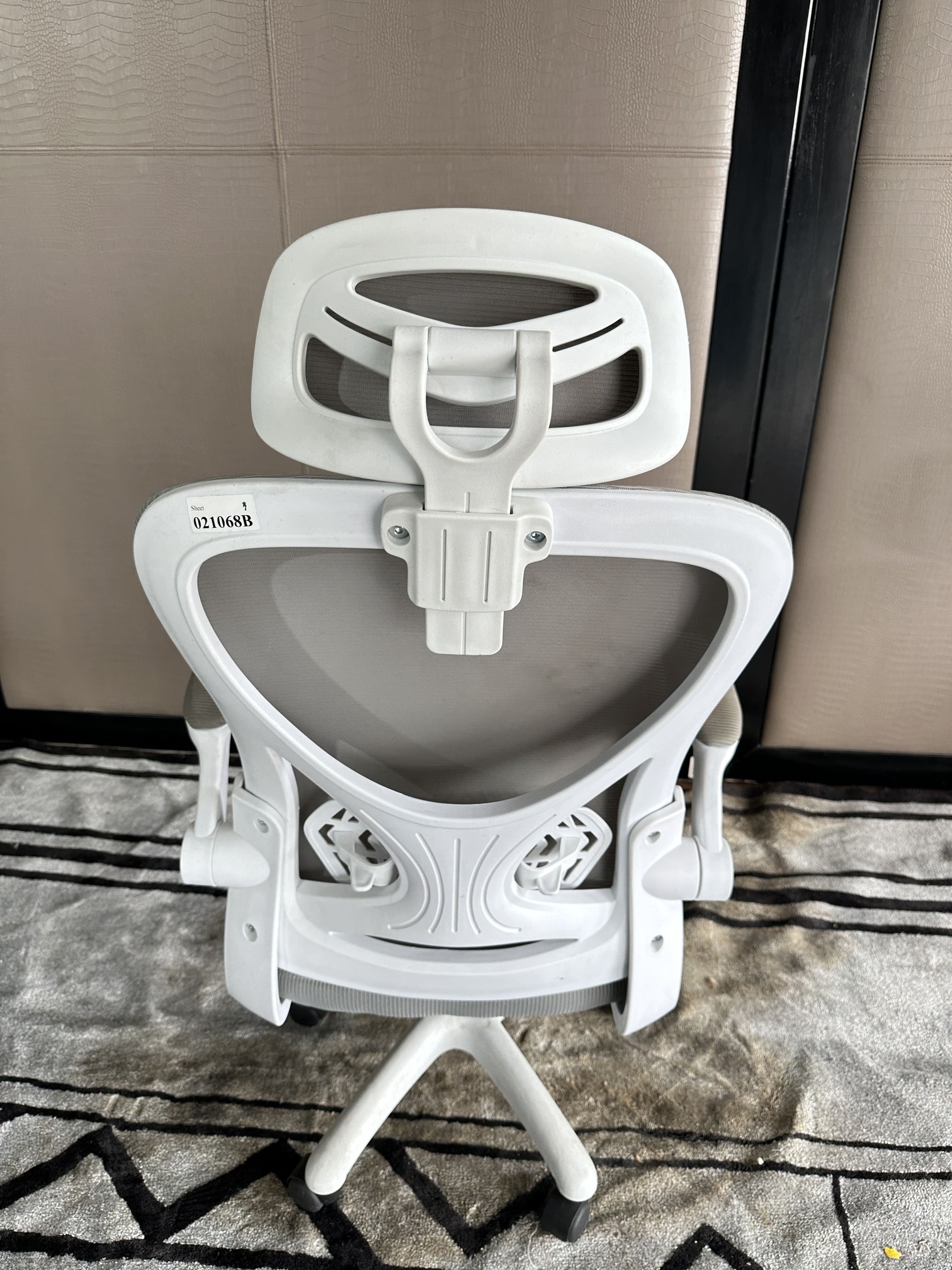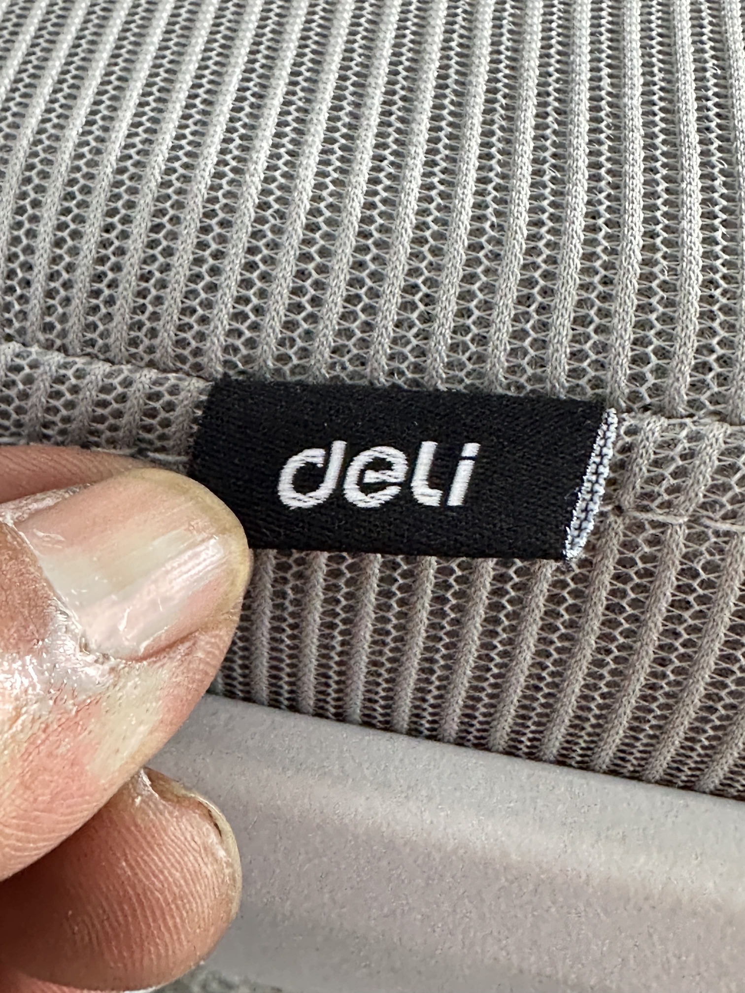 เก้าอี้สำนักงานหลังสูง แบรนด์ DELI เบาะผ้าตาข่ายสีเทา มีพักคอ