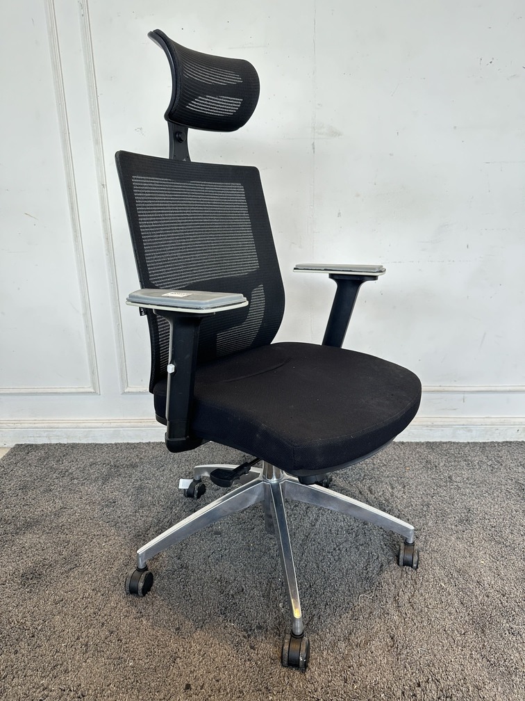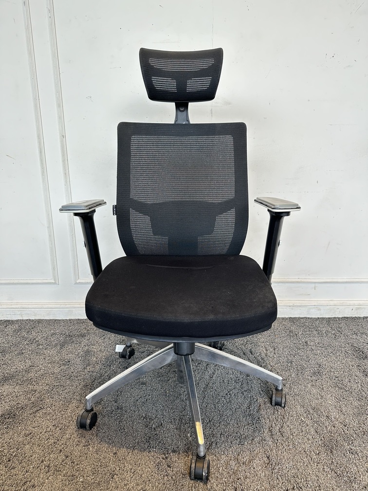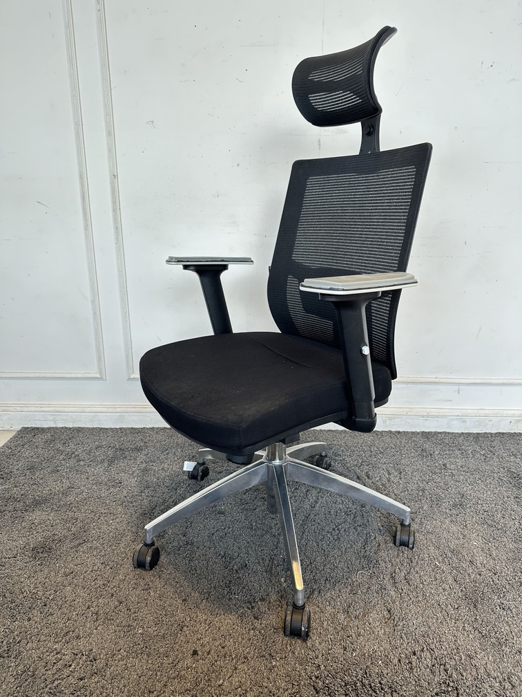 เก้าอี้สำนักงานหลังสูง แบรนด์ ELEMENTS เบาะผ้าตาข่ายสีดำ มีที่พักคอ พักแขนปรับขึ้นลงได้ ดันหลังปรับได้ มีโช็คปรับหนืด ขาอลูมิเนียม ล้อเลื่อน