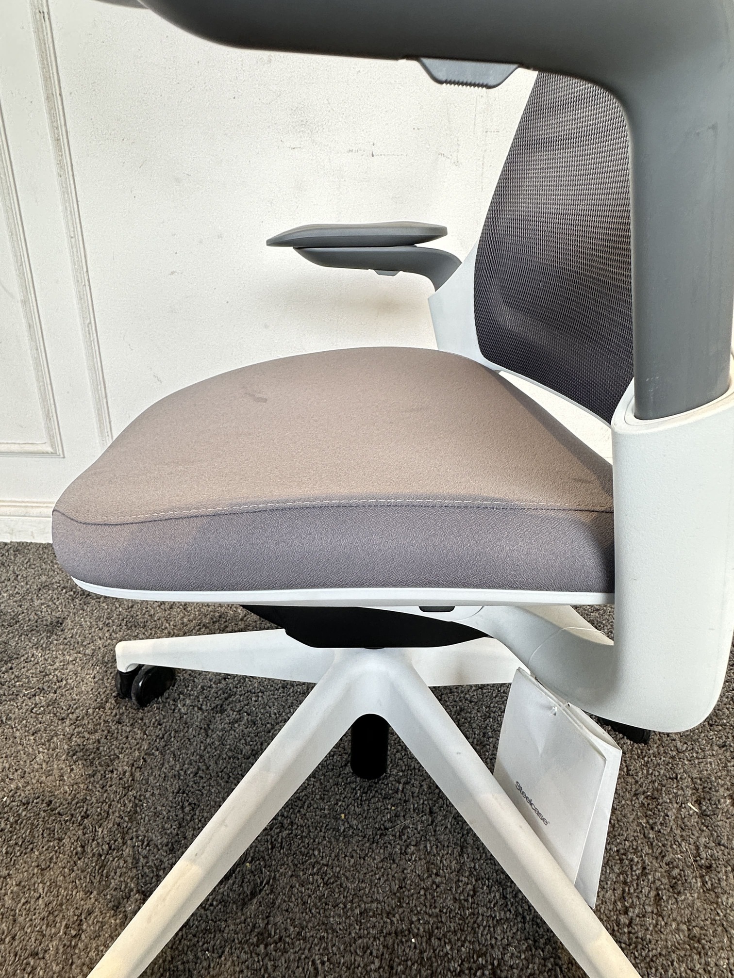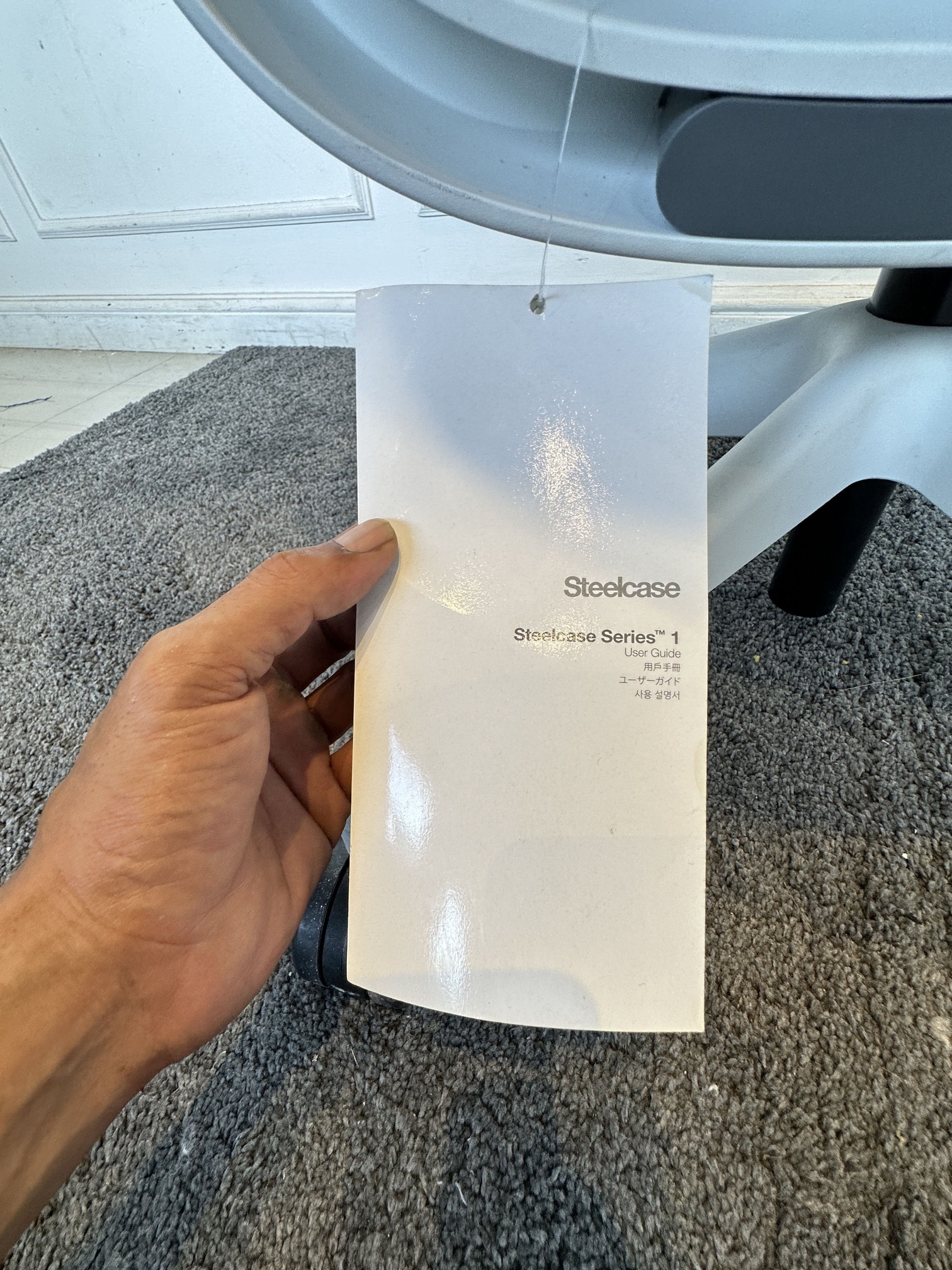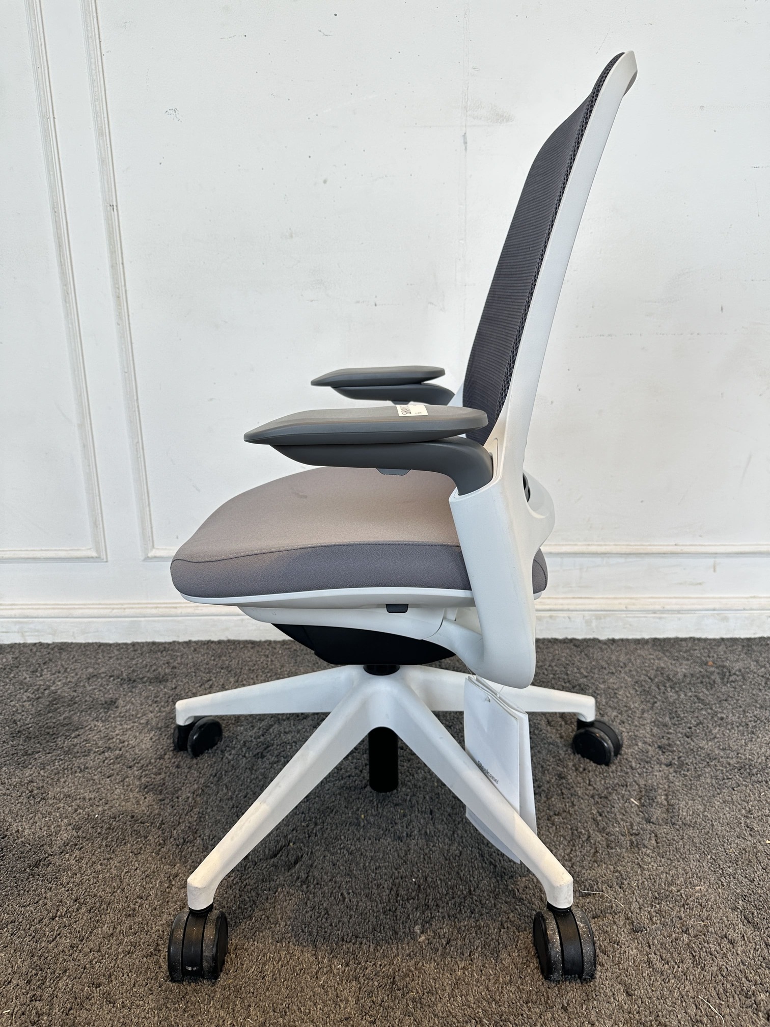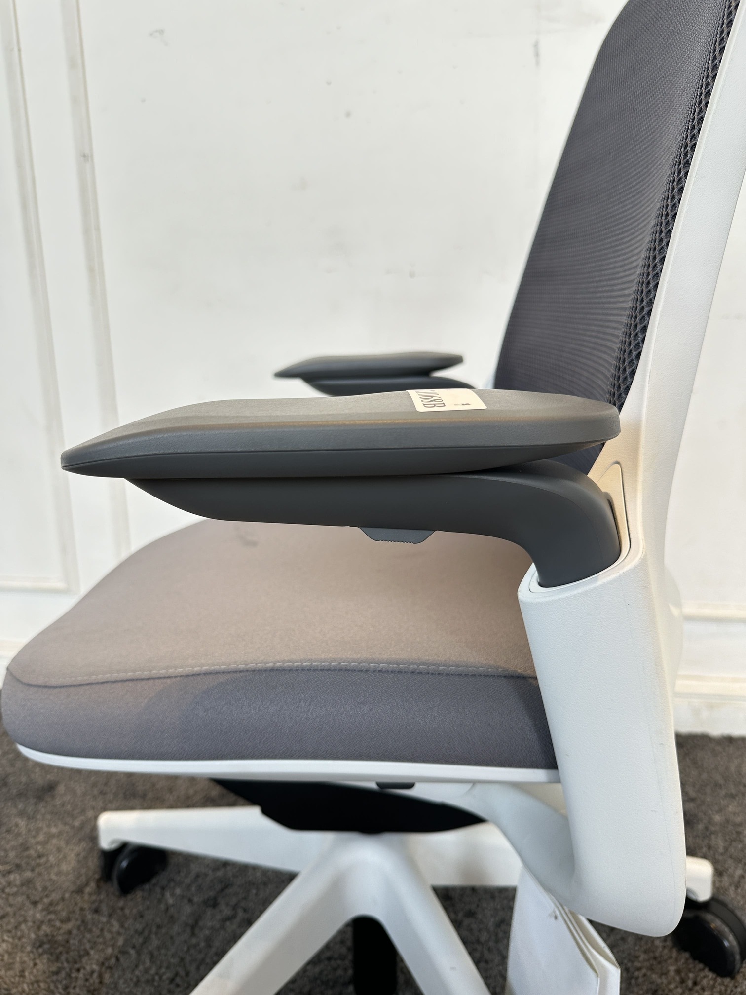 เก้าอี้สำนักงาน เพื่อสุขภาพ แบรนด์ Steelcase Ergonomic รุ่น Series 1 เบาะผ้าพิงหลังตาข่ายสีเทา เลื่อนเข้าออกได้ ดันหลังและพักแขนพลาสติกปรับขึ้นลงได้ มีโช็คปรับหนืด ขาพลาสติก ล้อเลื่อน