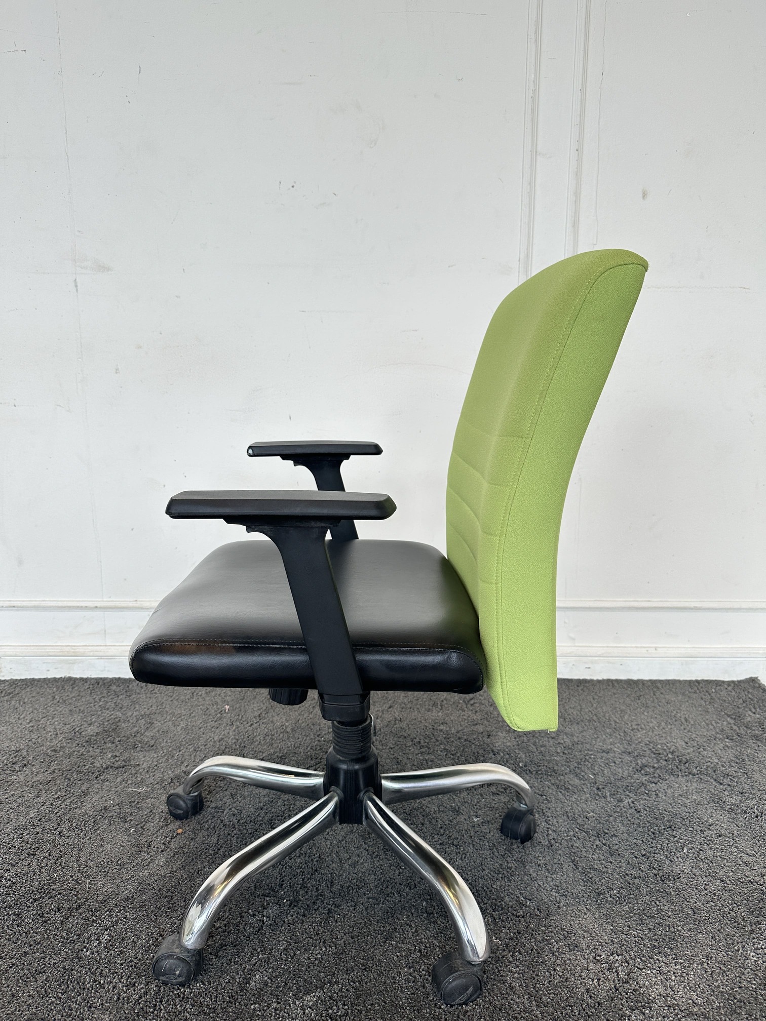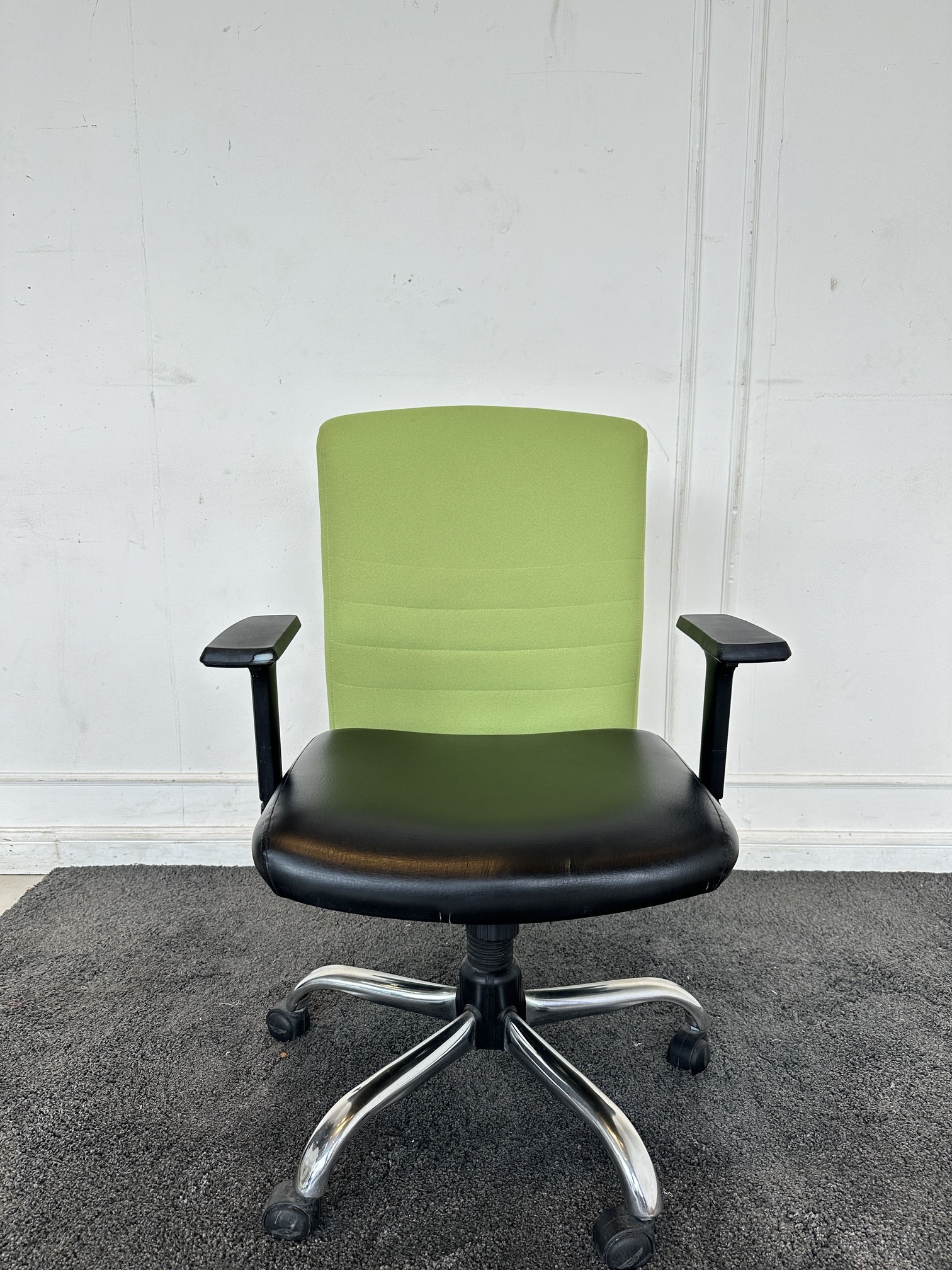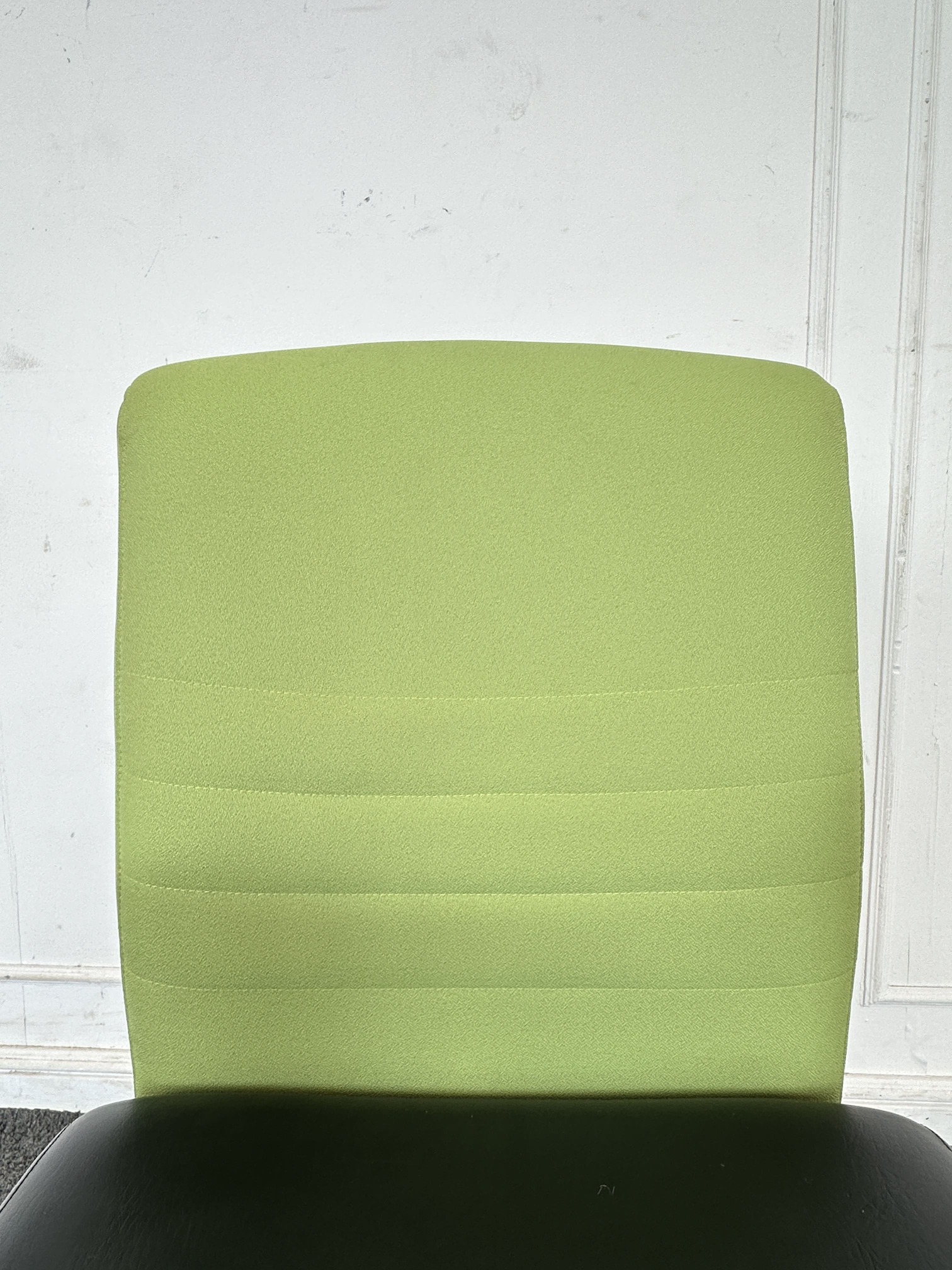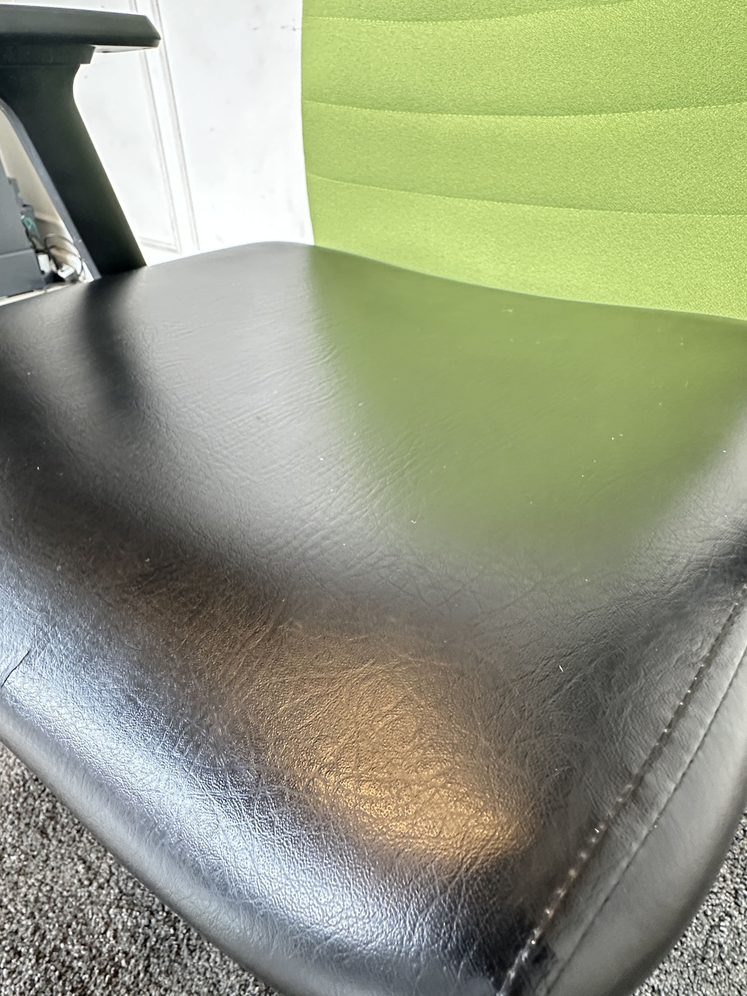 เก้าอี้สำนักงาน แบรนด์ KING-DOM เบาะหนัง PU สีดำ พิงหลังผ้าสีเขียว มีโช็คปรับหนืดล็อคพิงหลังได้ ขาเหล็ก ล้อเลื่อน