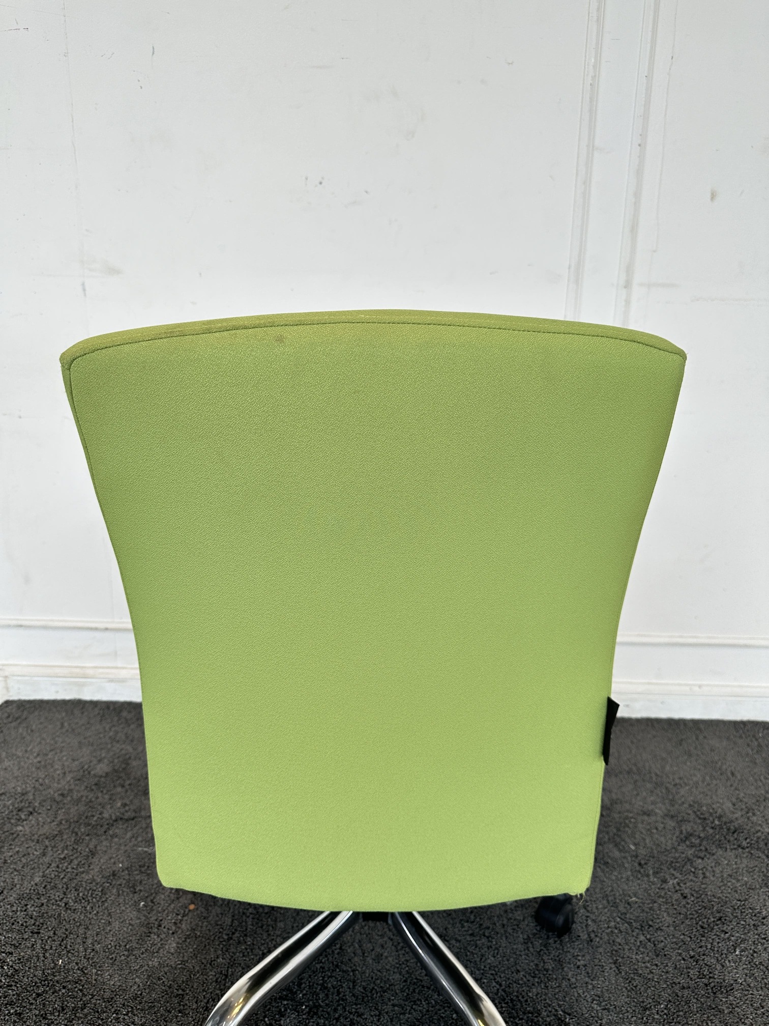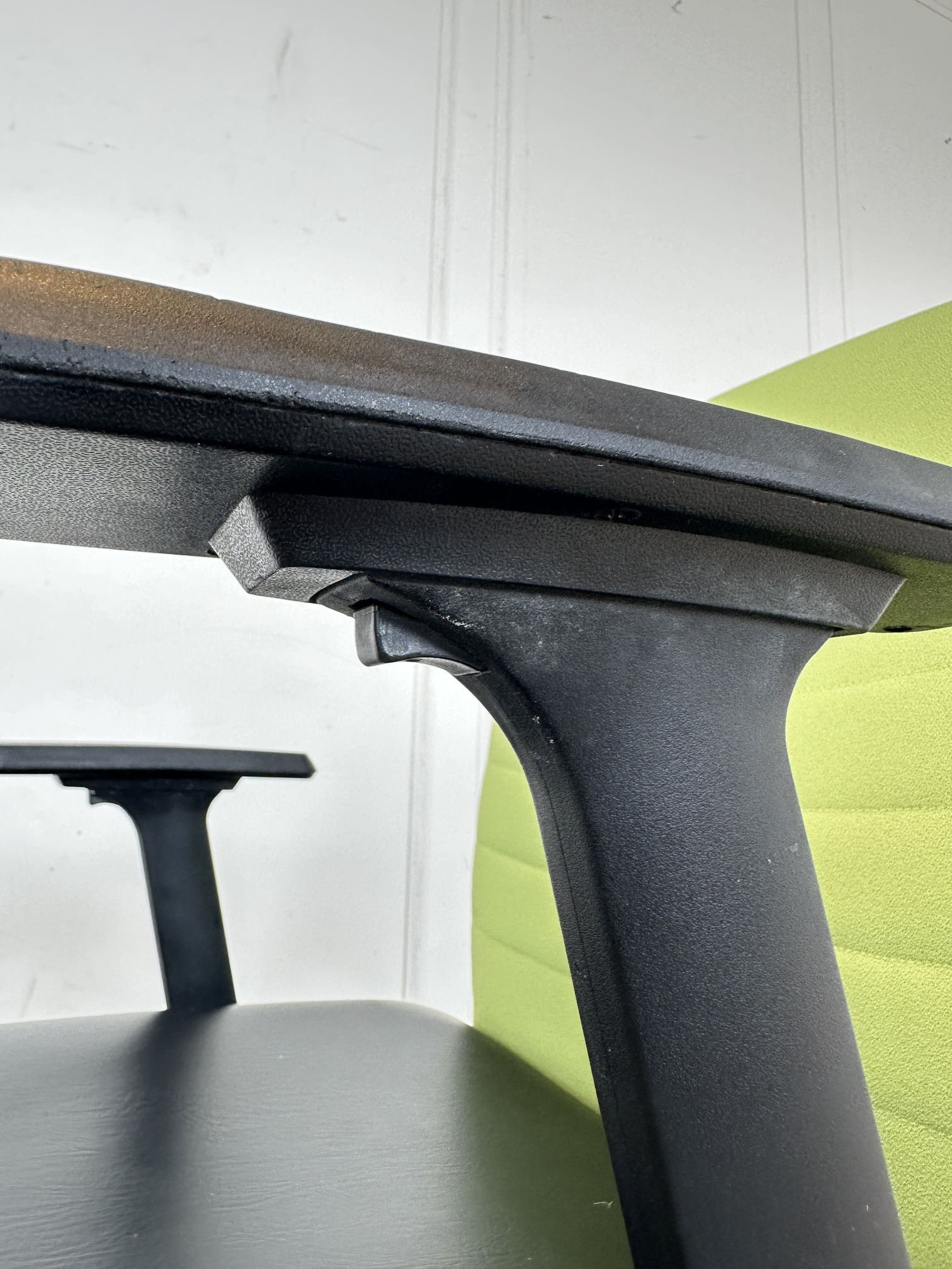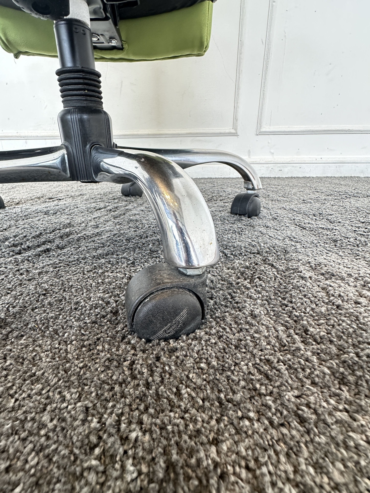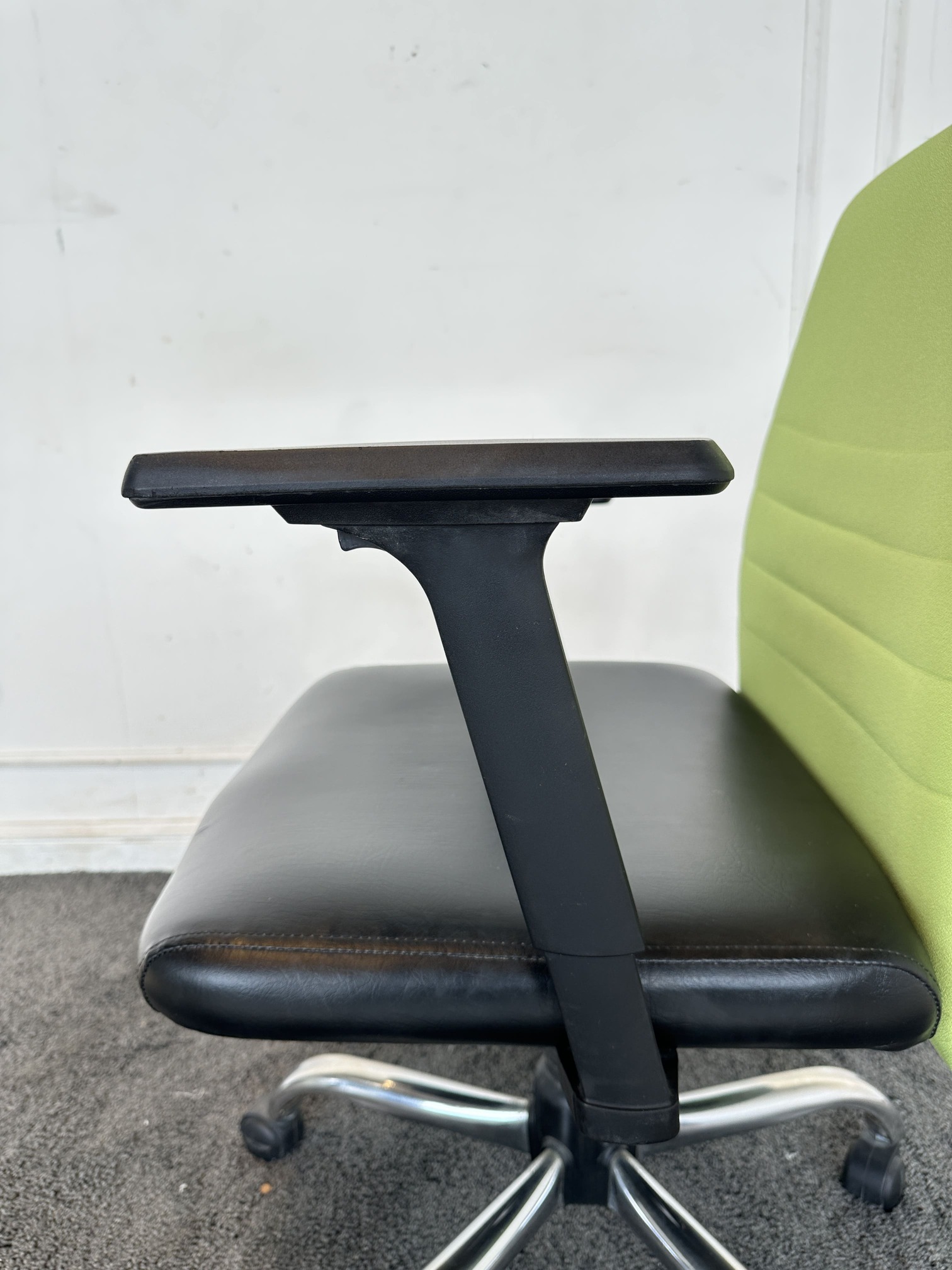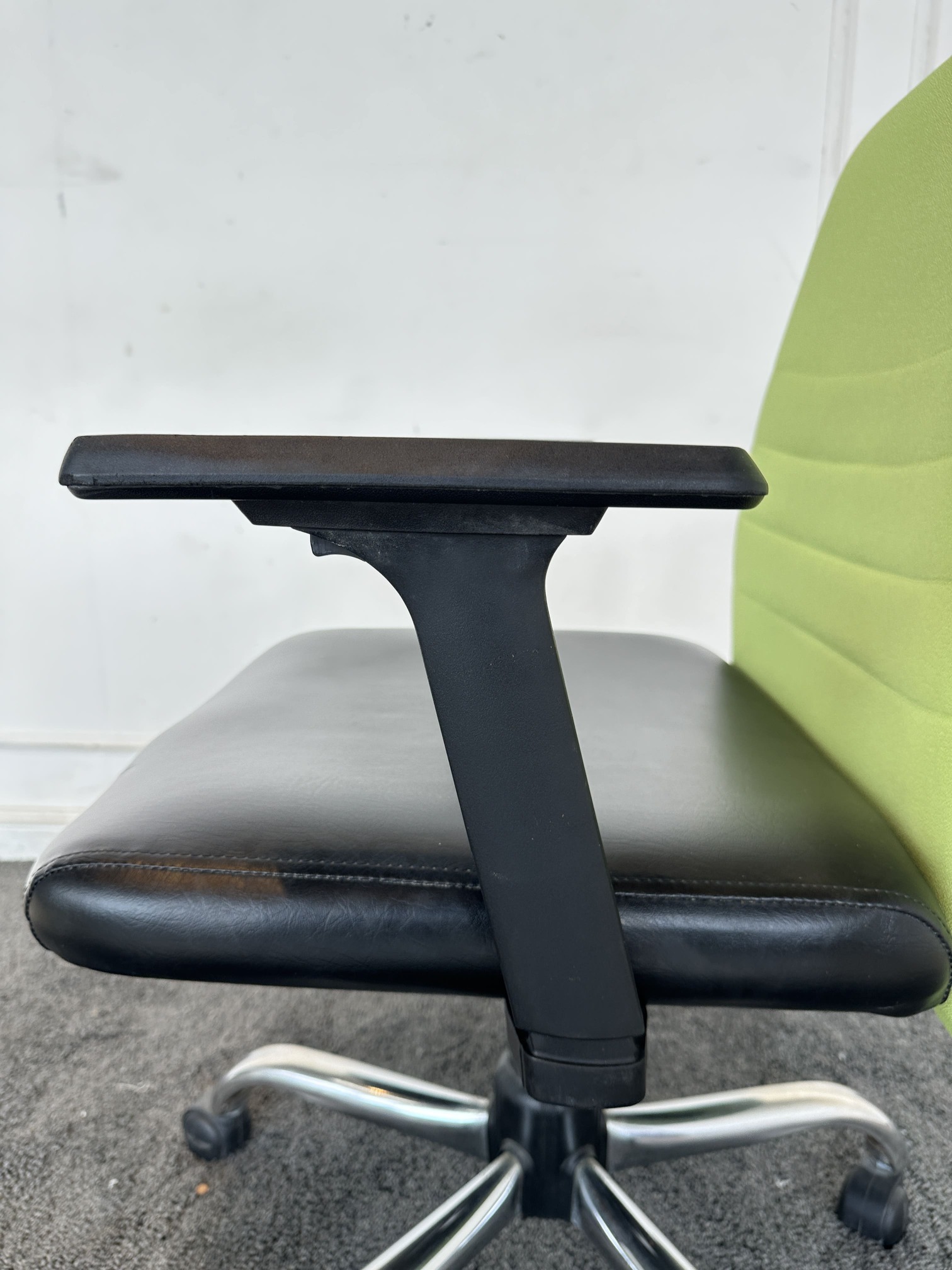 เก้าอี้สำนักงาน แบรนด์ KING-DOM เบาะหนัง PU สีดำ พิงหลังผ้าสีเขียว มีโช็คปรับหนืดล็อคพิงหลังได้ ขาเหล็ก ล้อเลื่อน