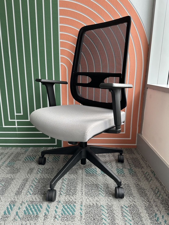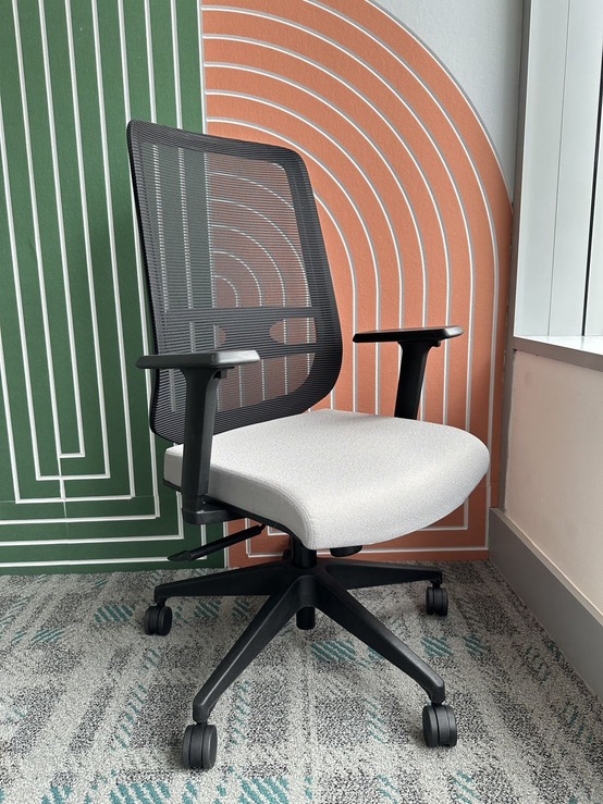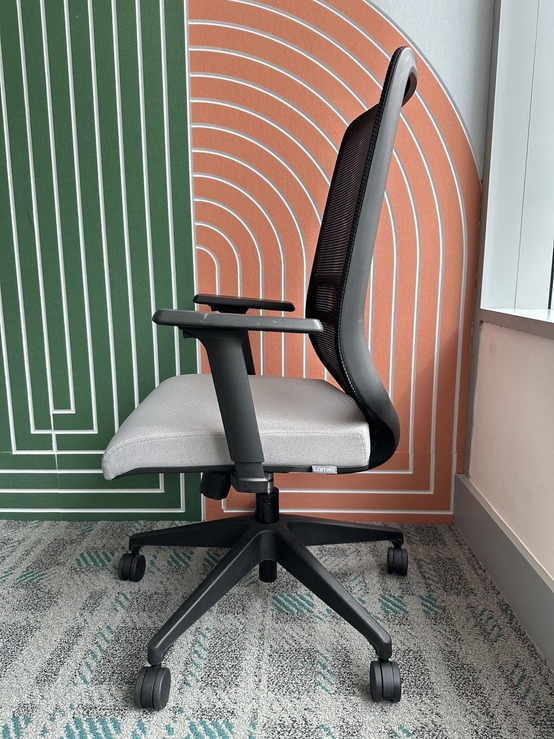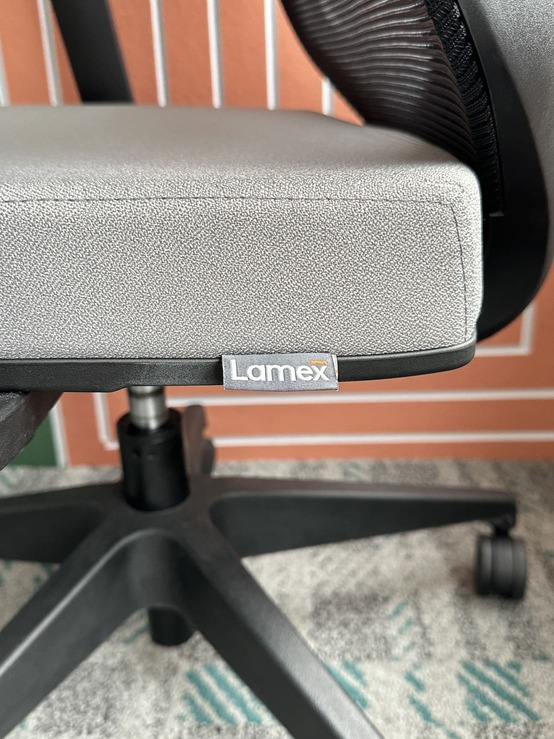 เก้าอี้สำนักงาน แบรนด์ LAMEX เบาะผ้าสีเทา ขาพลาสติก ล้อเลื่อน