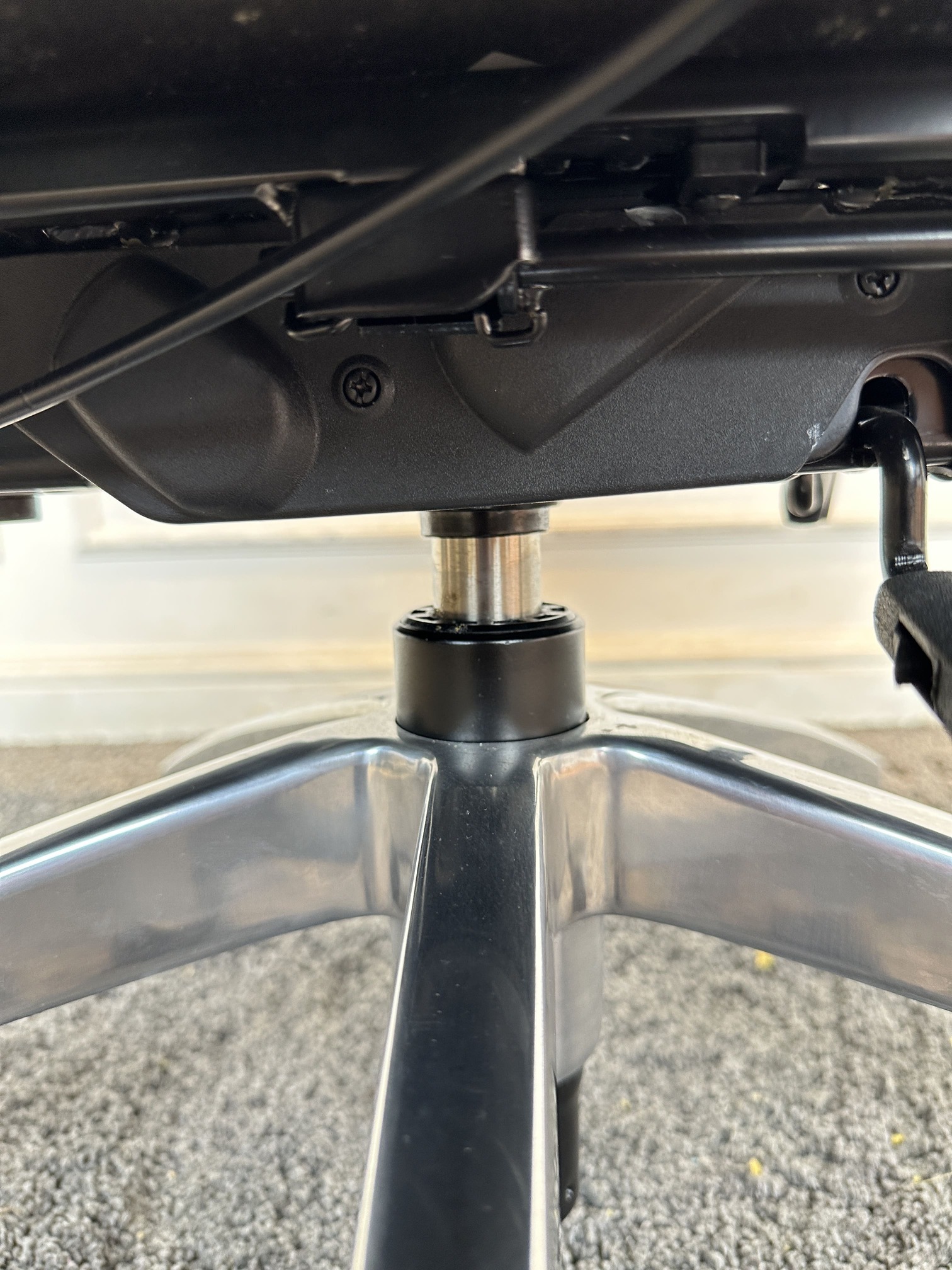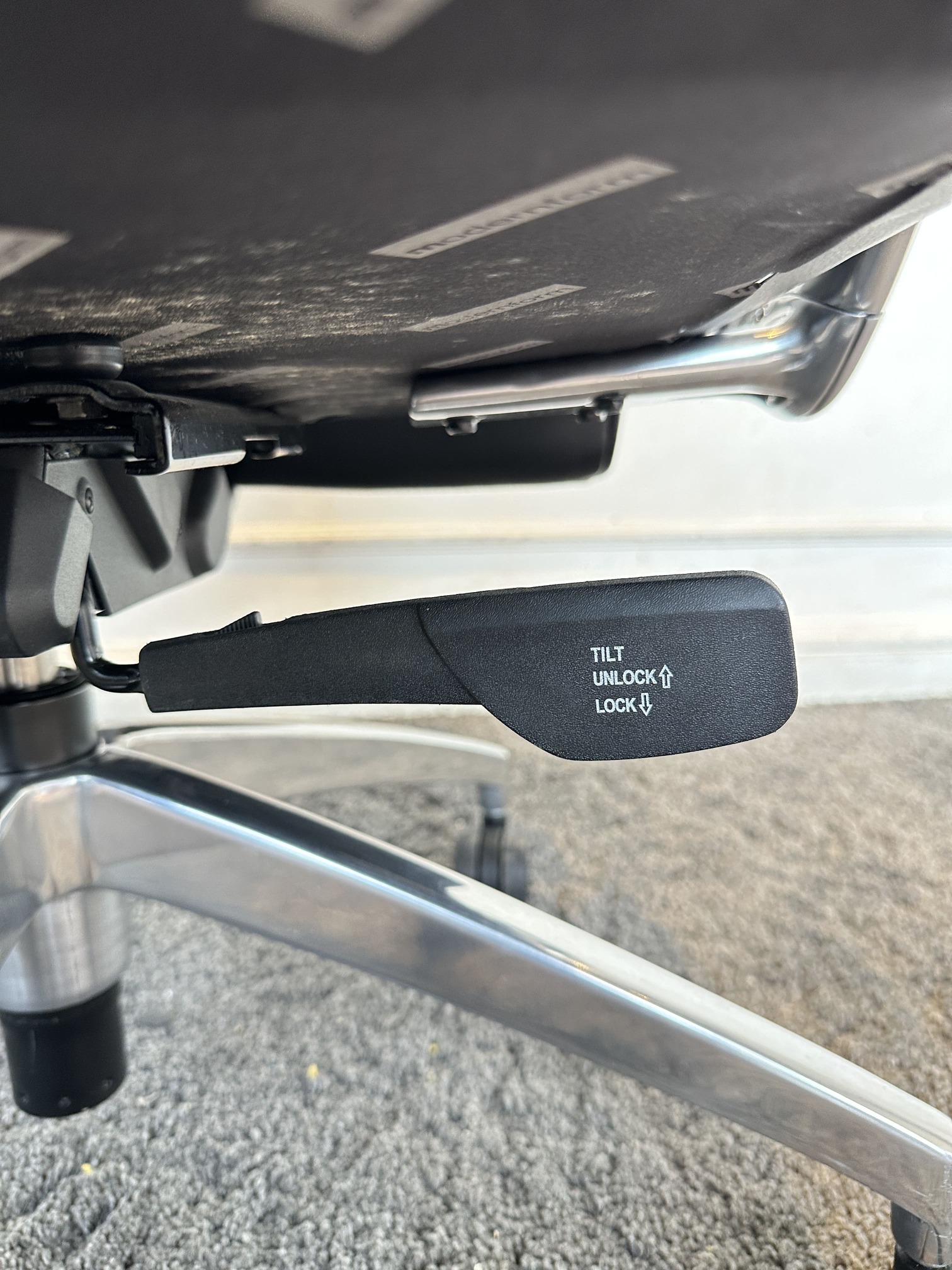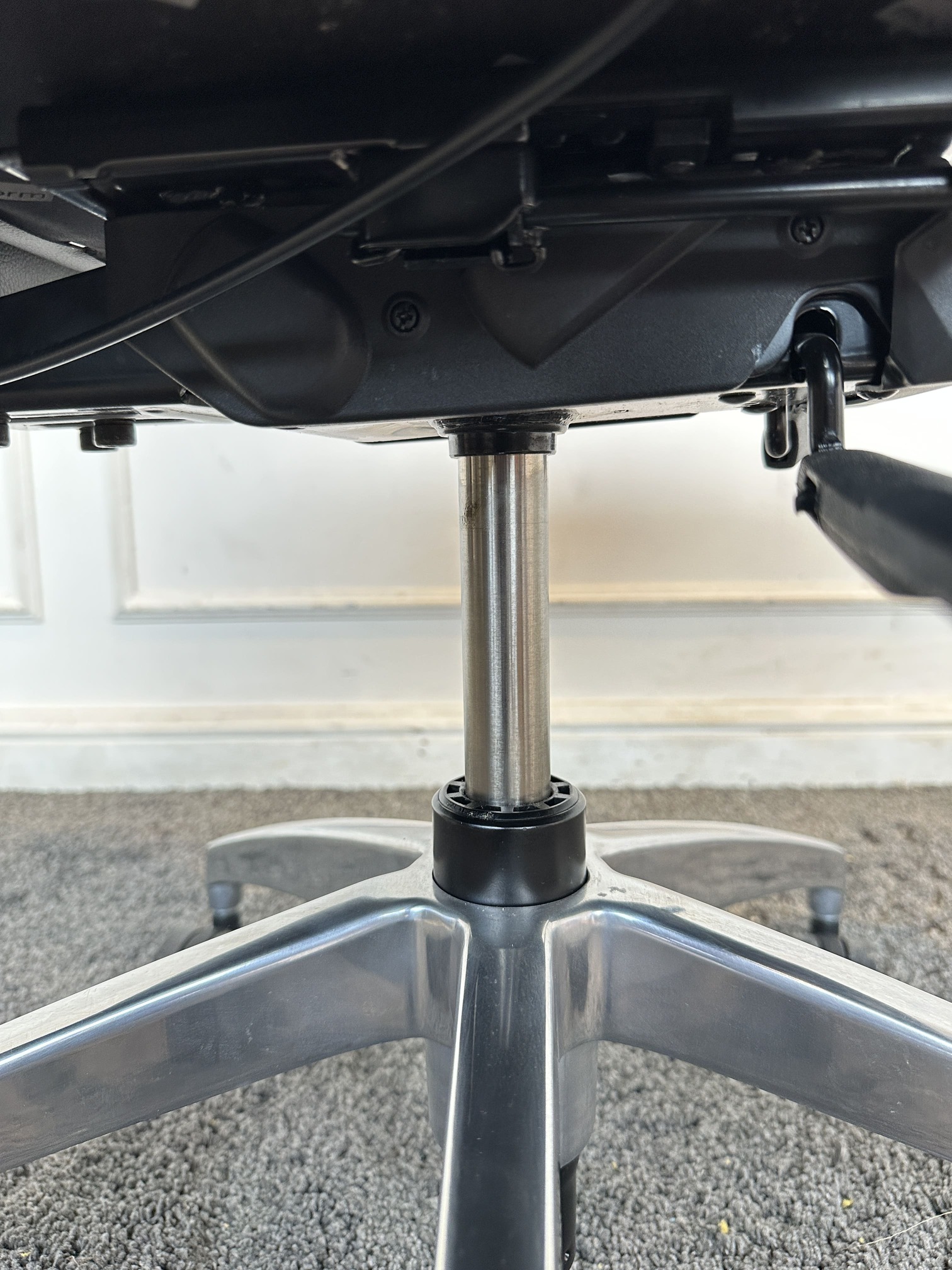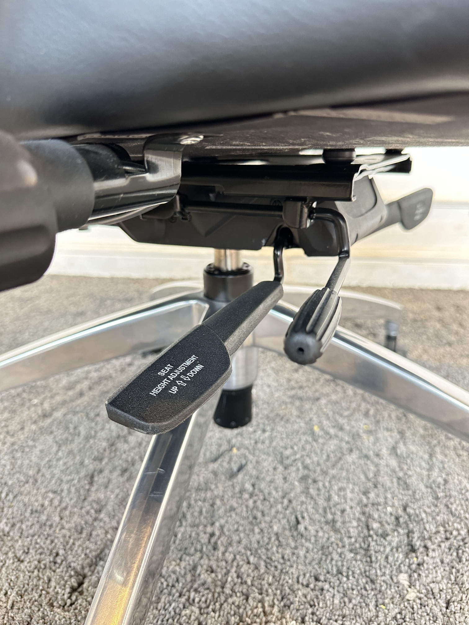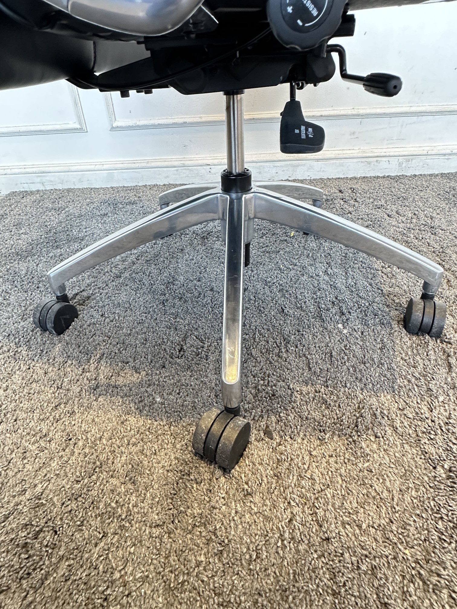 เก้าอี้สำนักงาน แบรนด์ MODERNFORM เบาะและพิงหลังหุ้มหนังแท้สีดำ พักแขนอลูมิเนียม ล้อเลื่อน