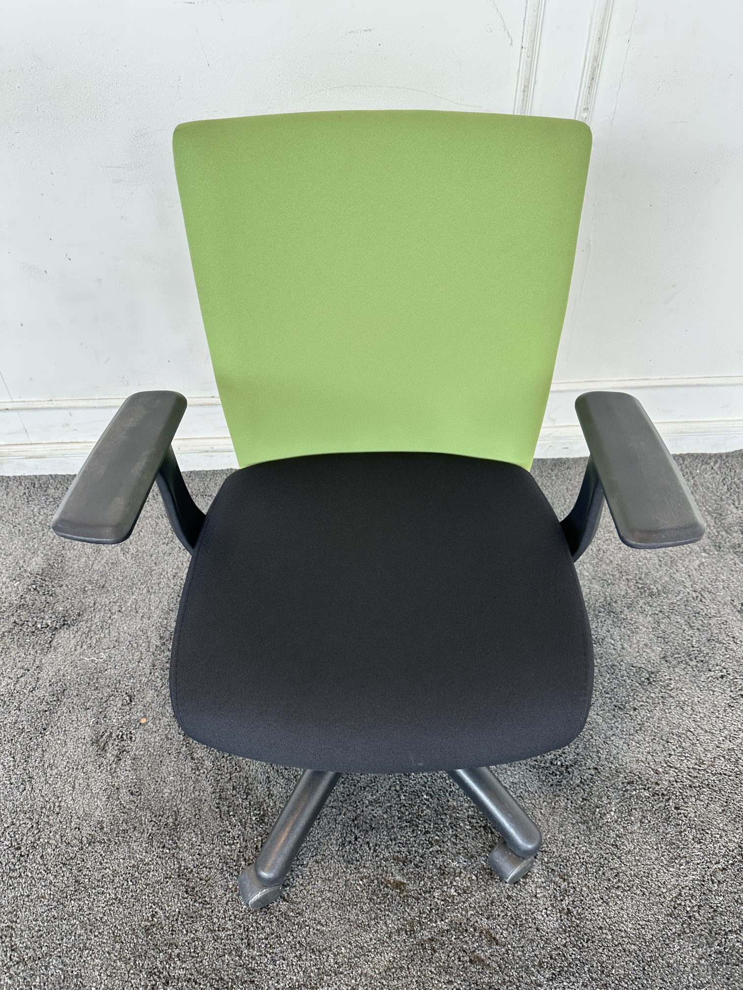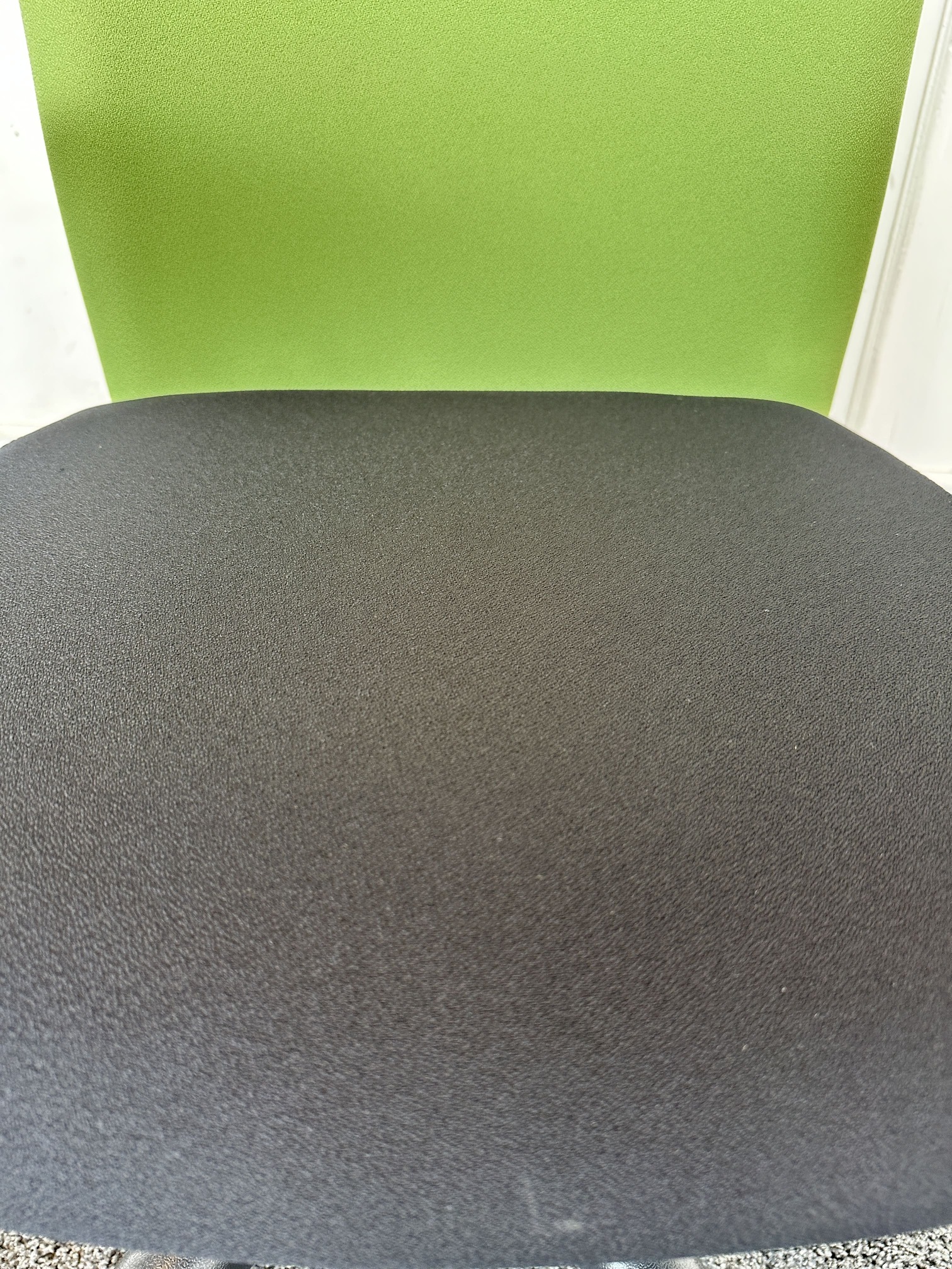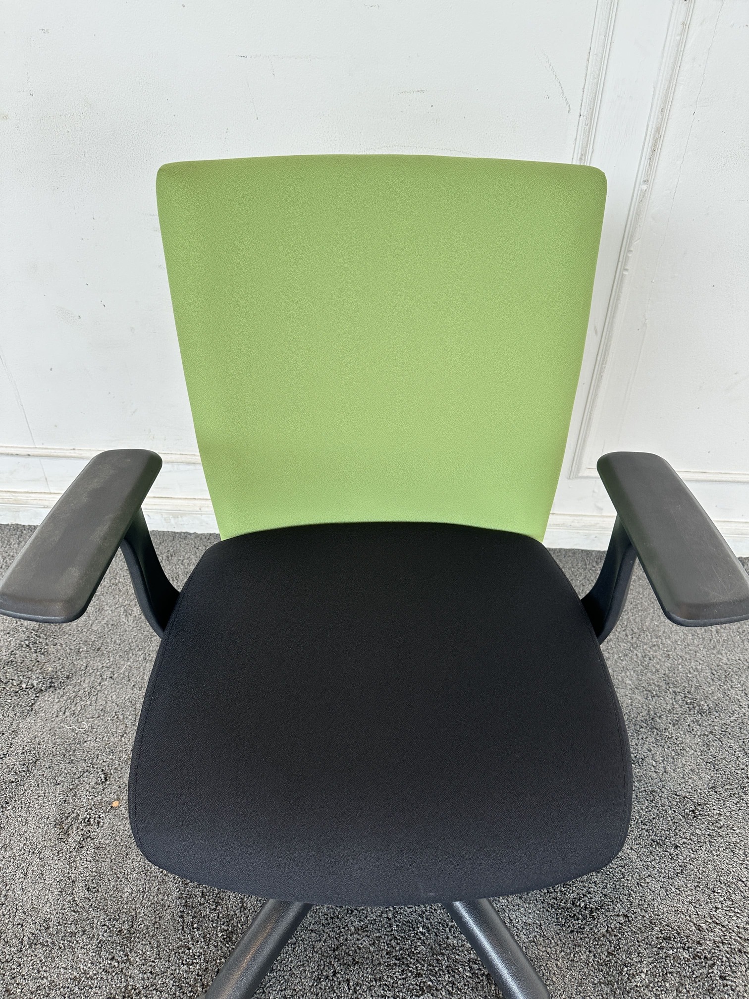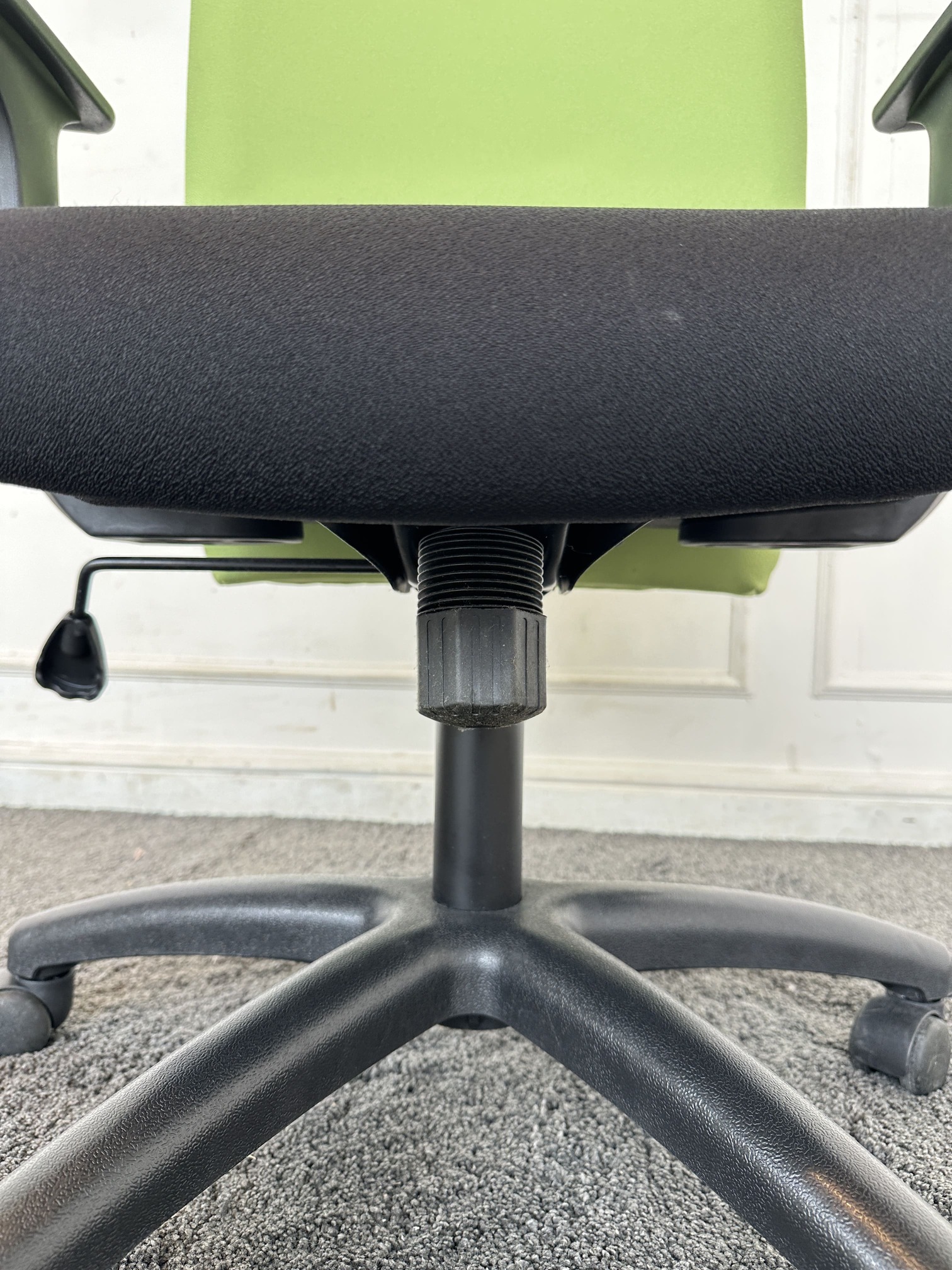 เก้าอี้สำนักงาน แบรนด์ MONO เบาะผ้าสีดำ พิงหลังสีเขียว มีโช็ค ปรับหนืดล็อคพิงหลังได้ ขาพลาสติกสีดำ ล้อเลื่อน