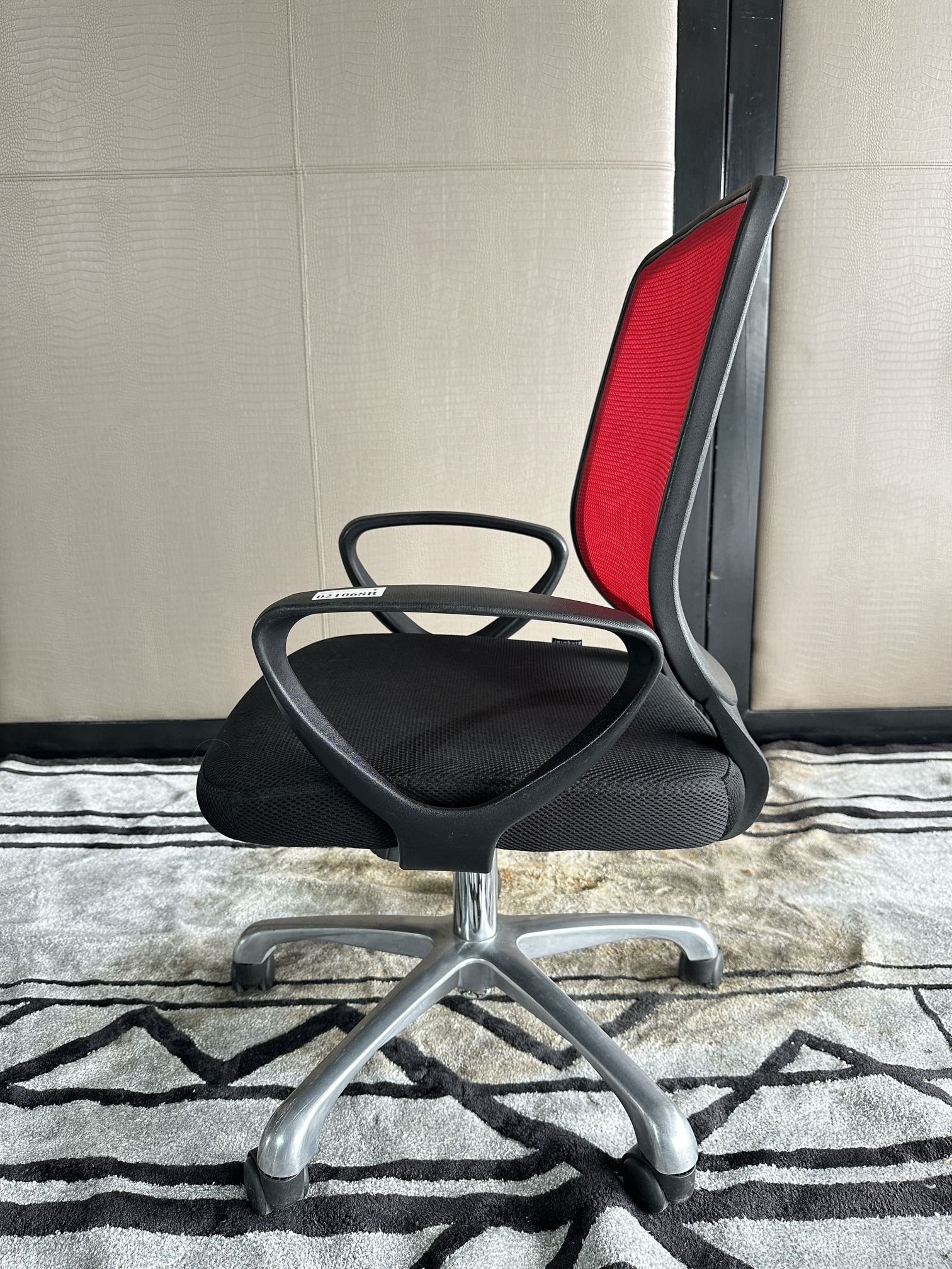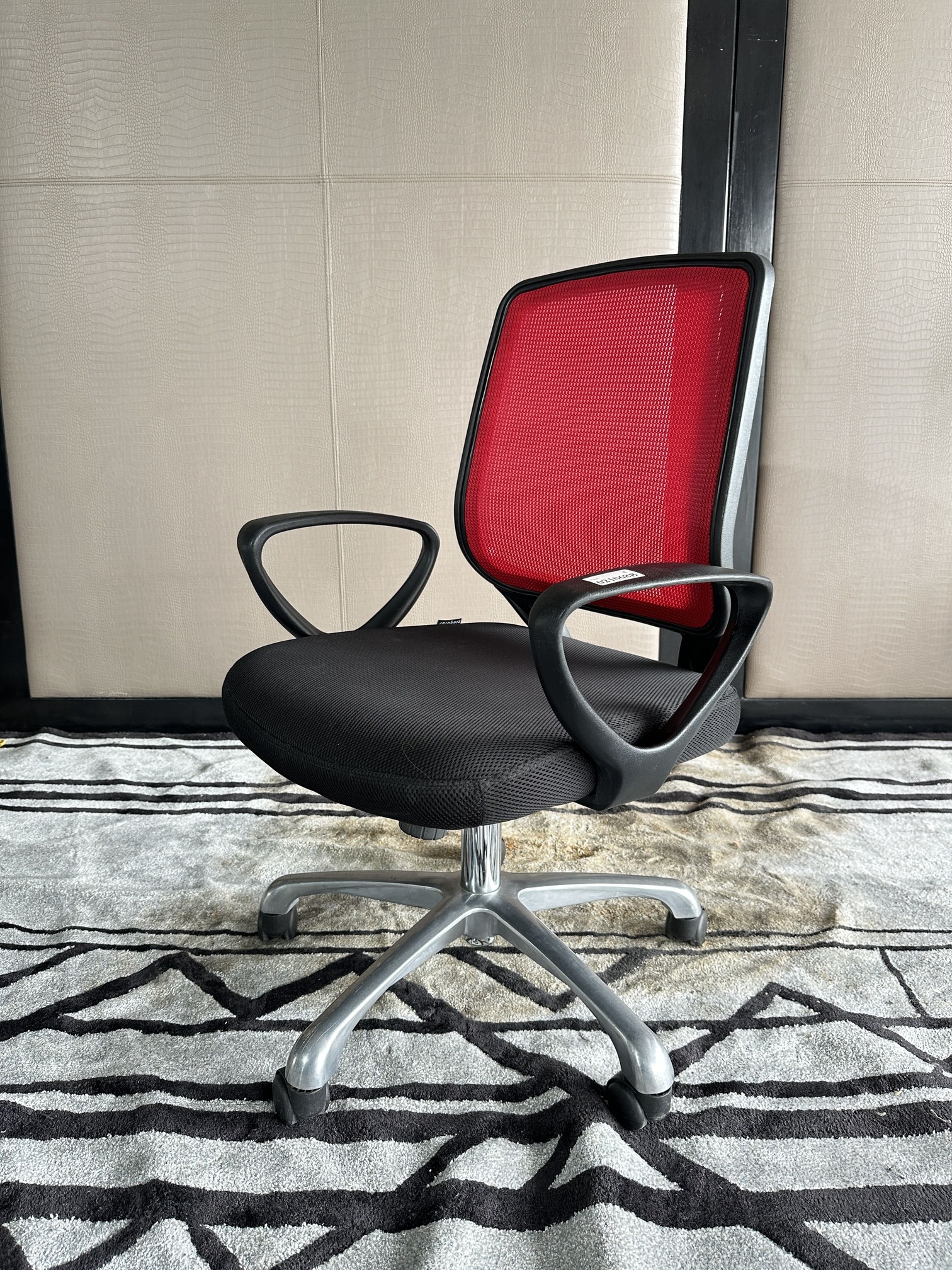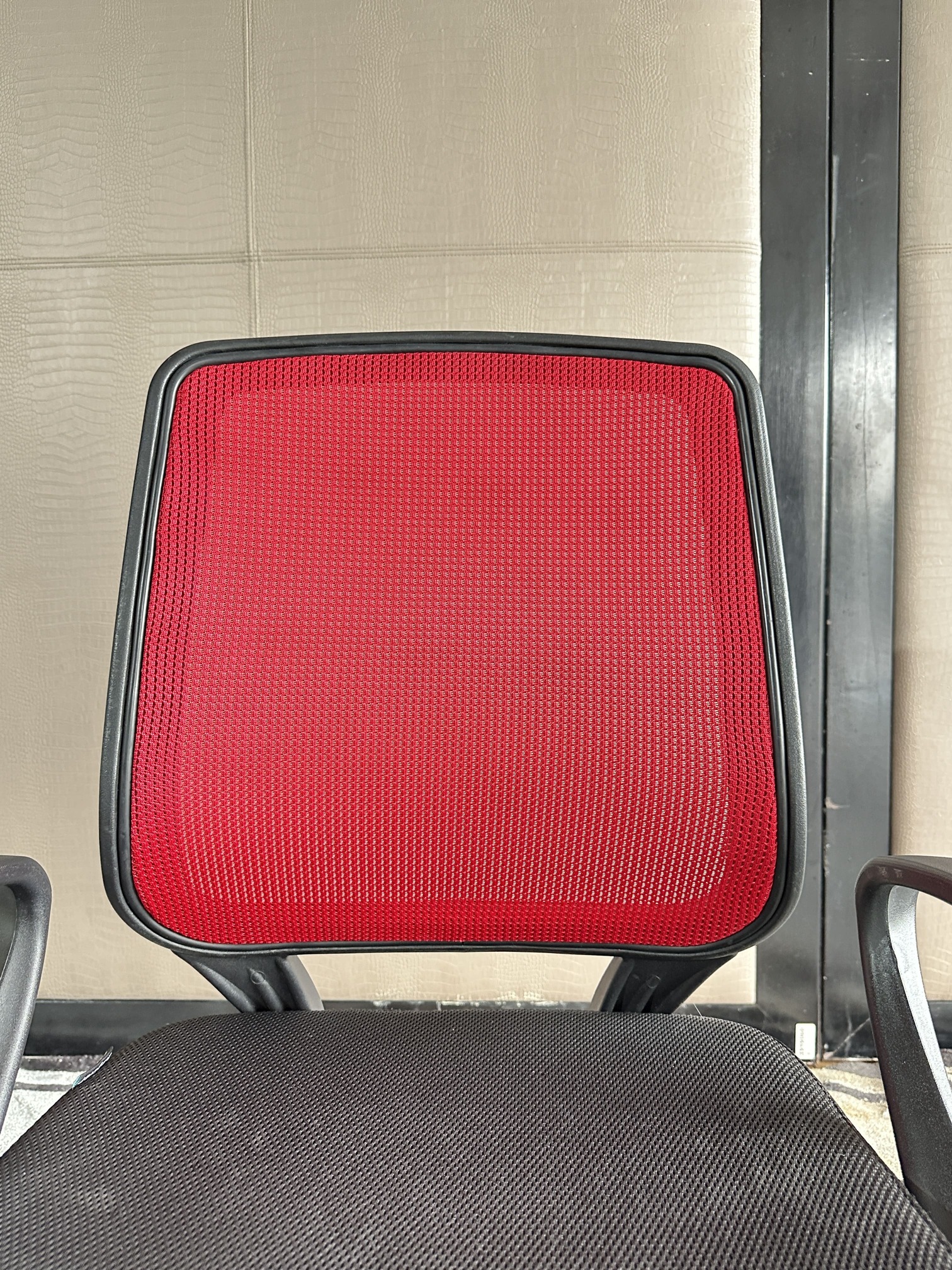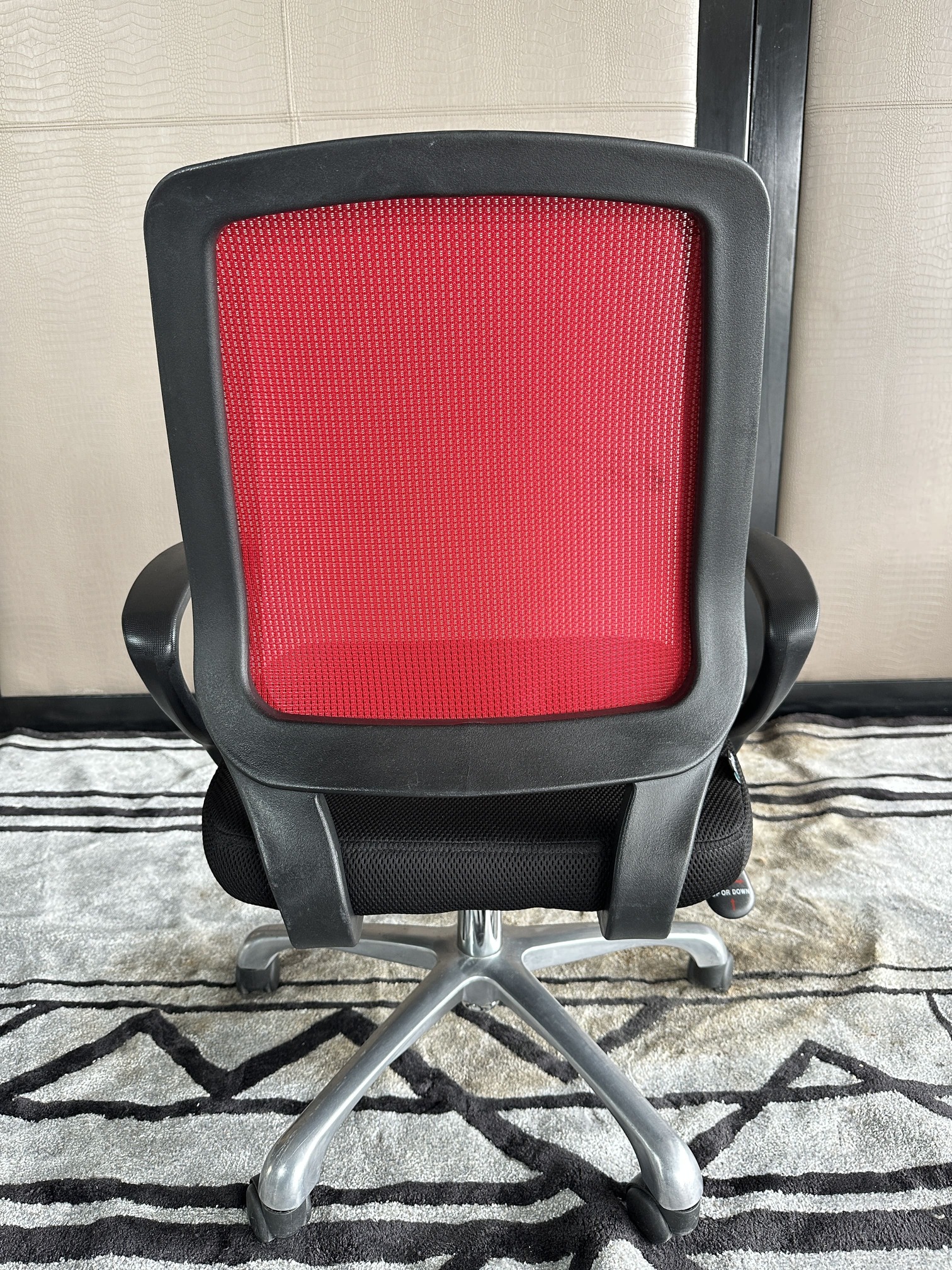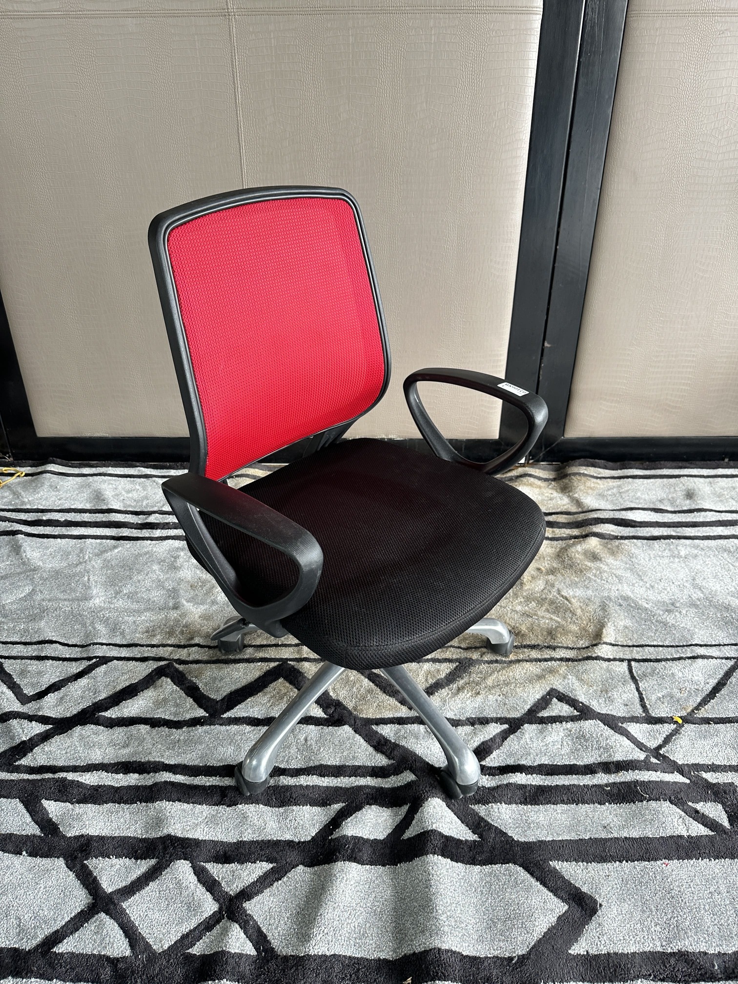 เก้าอี้สำนักงาน แบรนด์ ZINGILAR เบาะผ้าสีดำ พิงหลังตาข่ายสีแดง พักแขนพลาสติก มีโช็ค ล้อเลื่อน