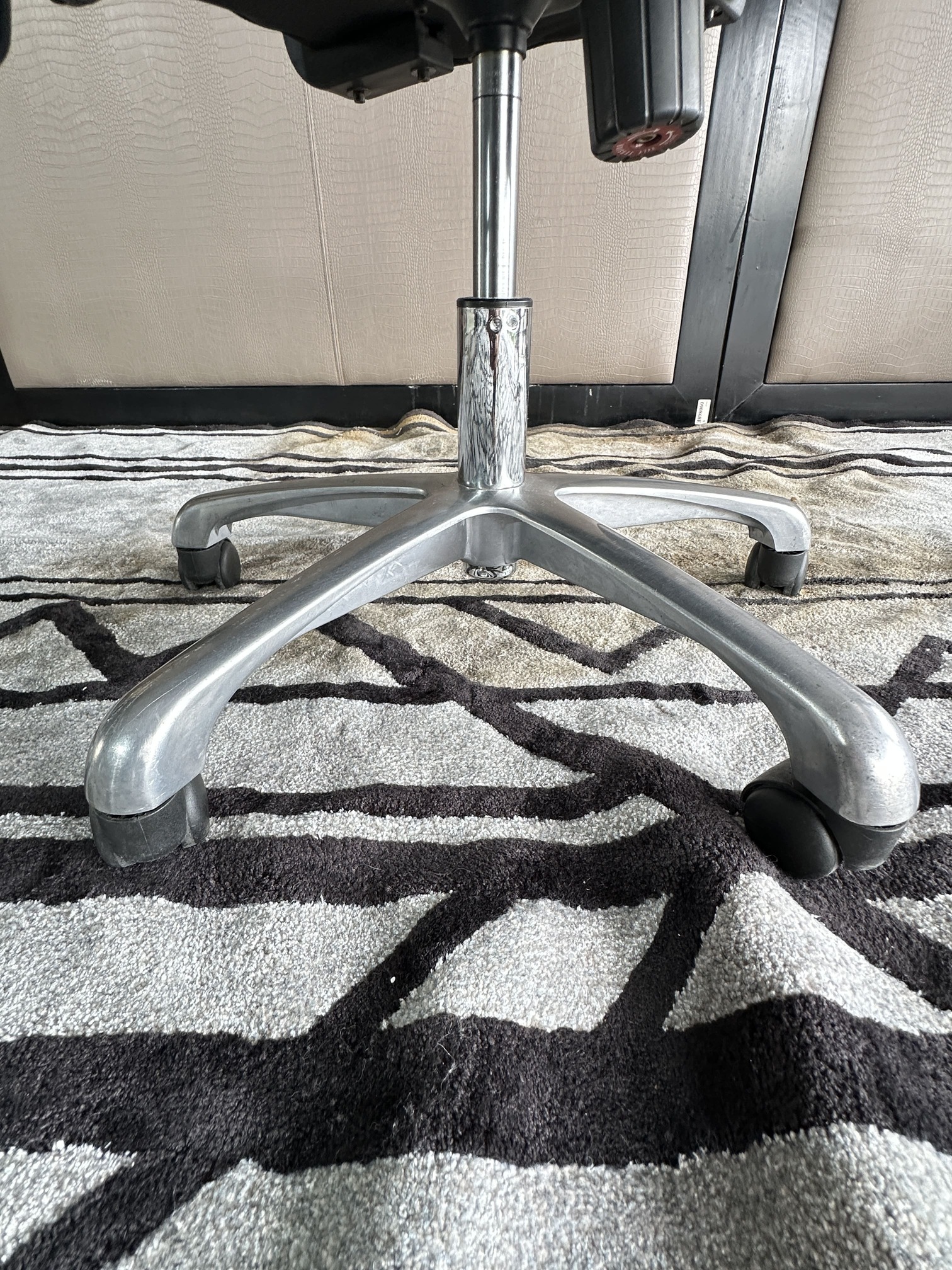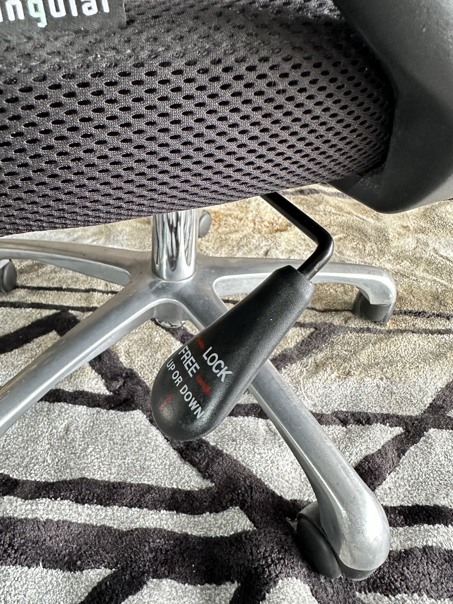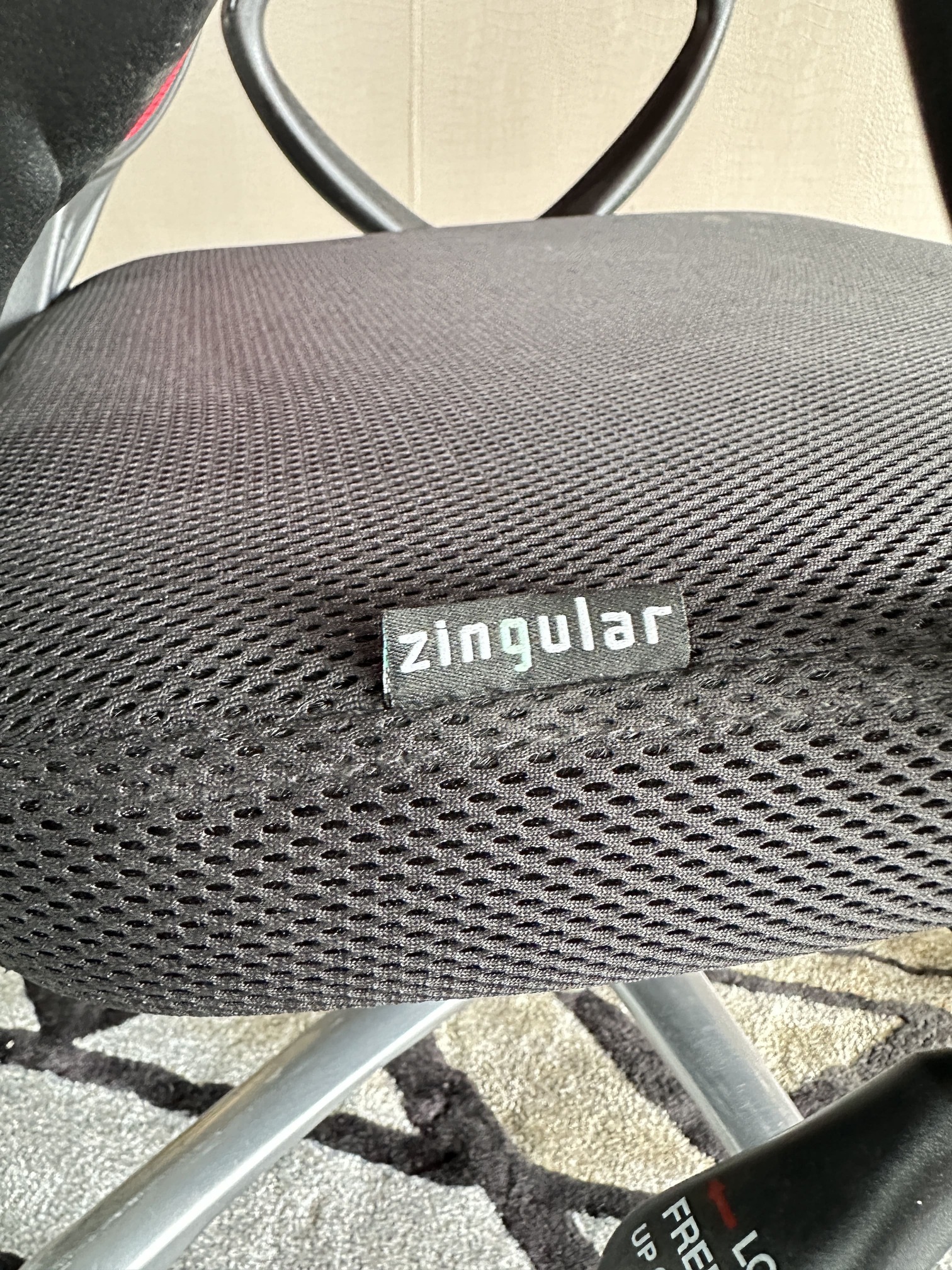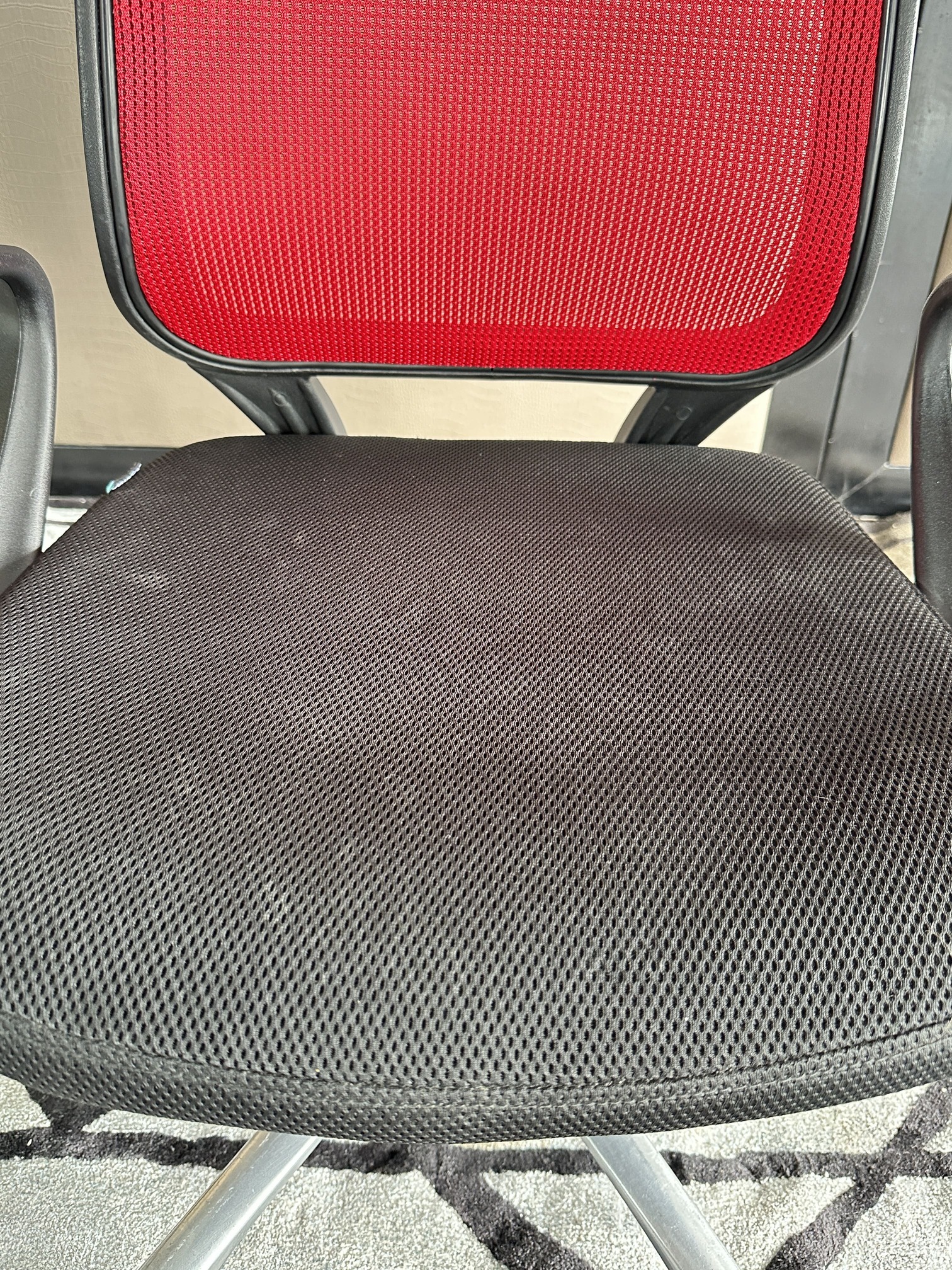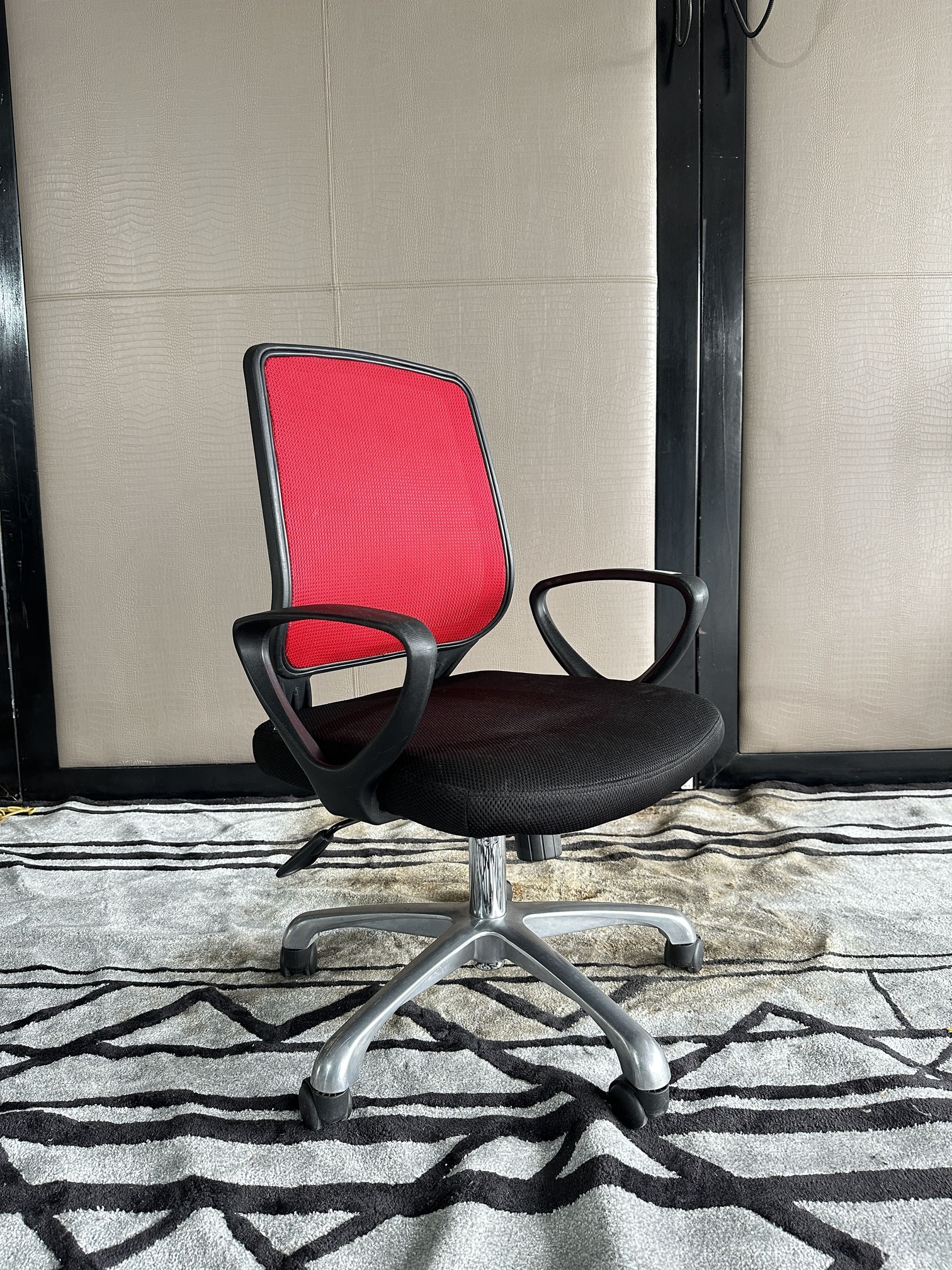 เก้าอี้สำนักงาน แบรนด์ ZINGILAR เบาะผ้าสีดำ พิงหลังตาข่ายสีแดง พักแขนพลาสติก มีโช็ค ล้อเลื่อน