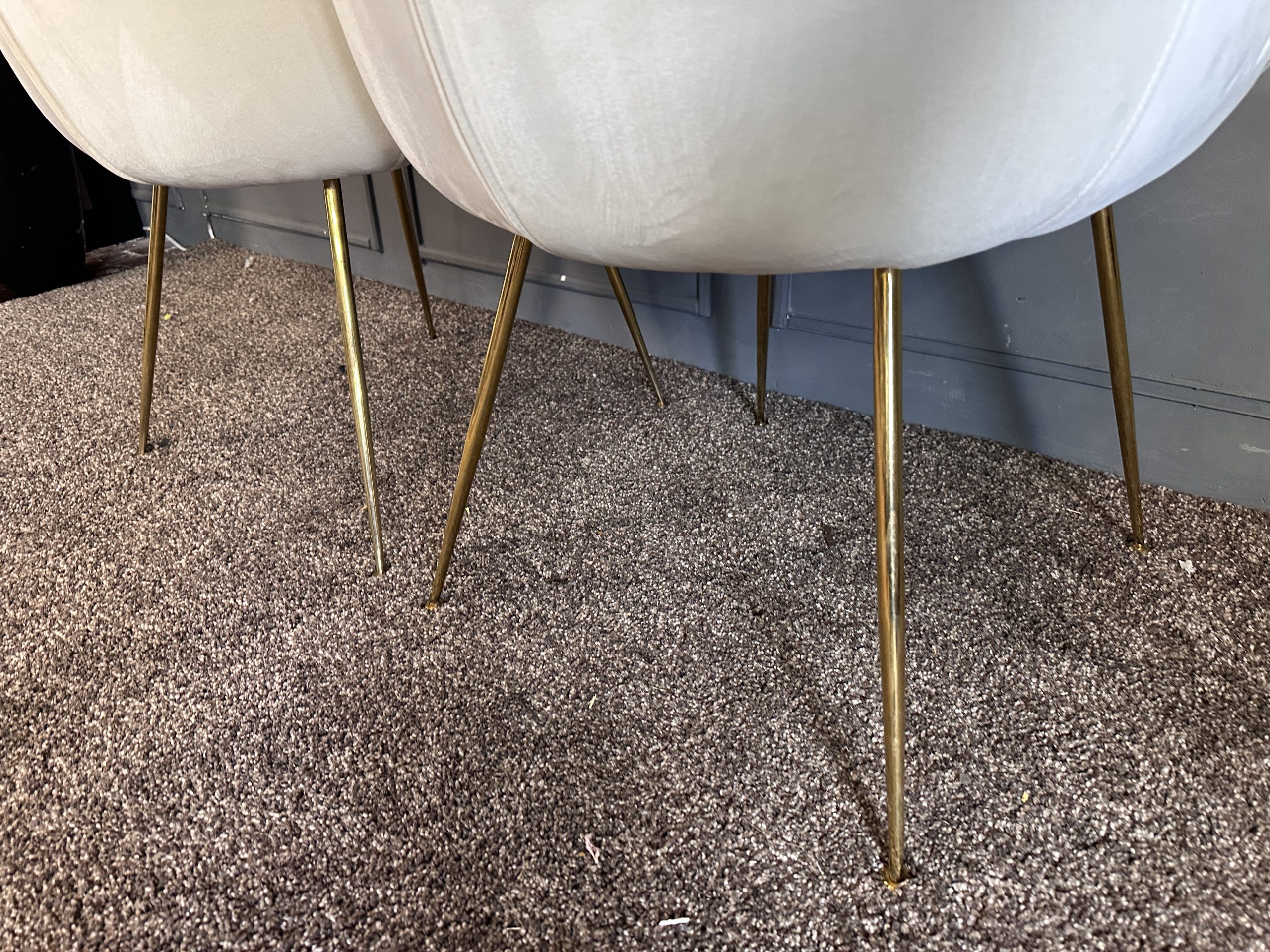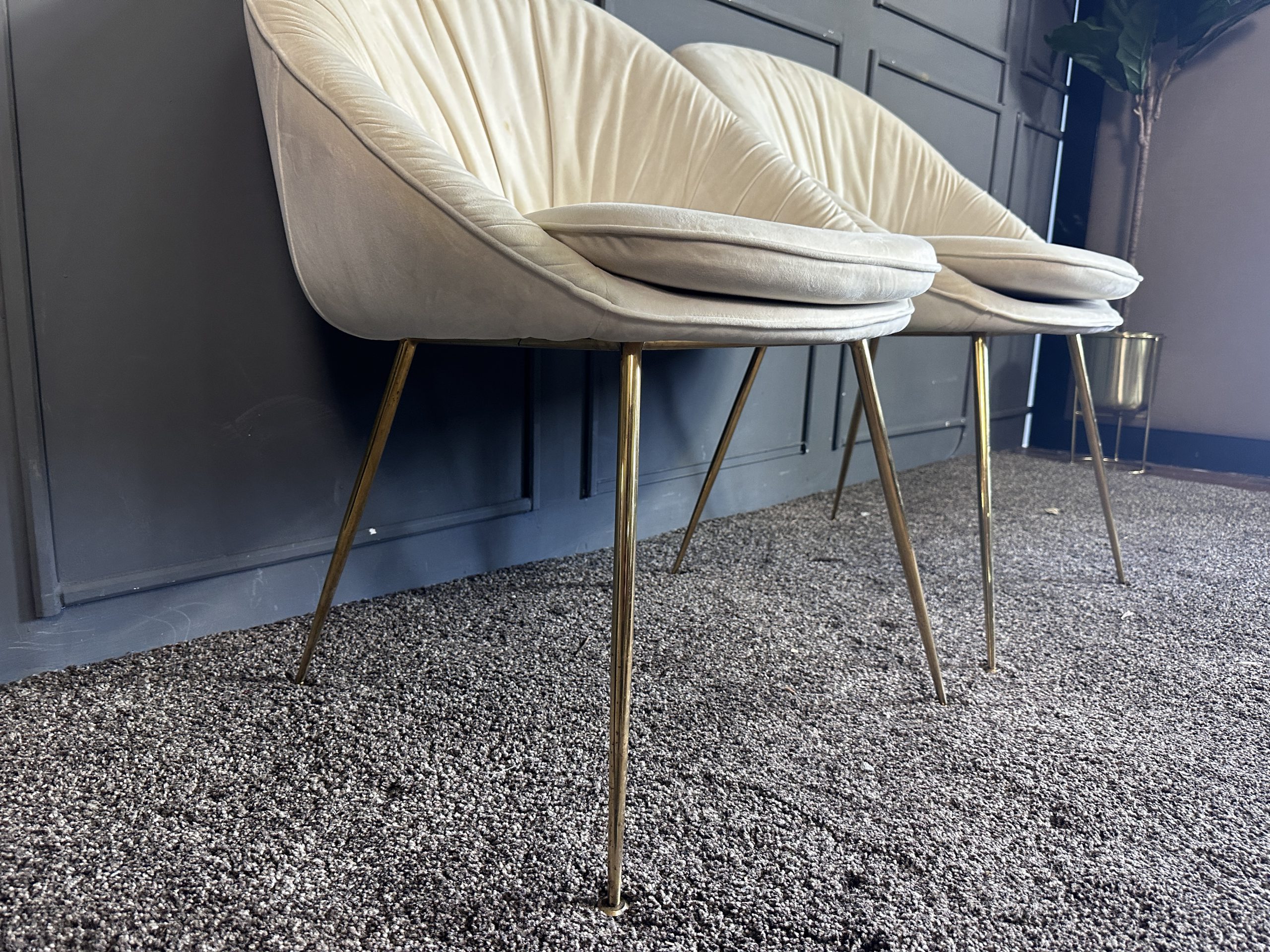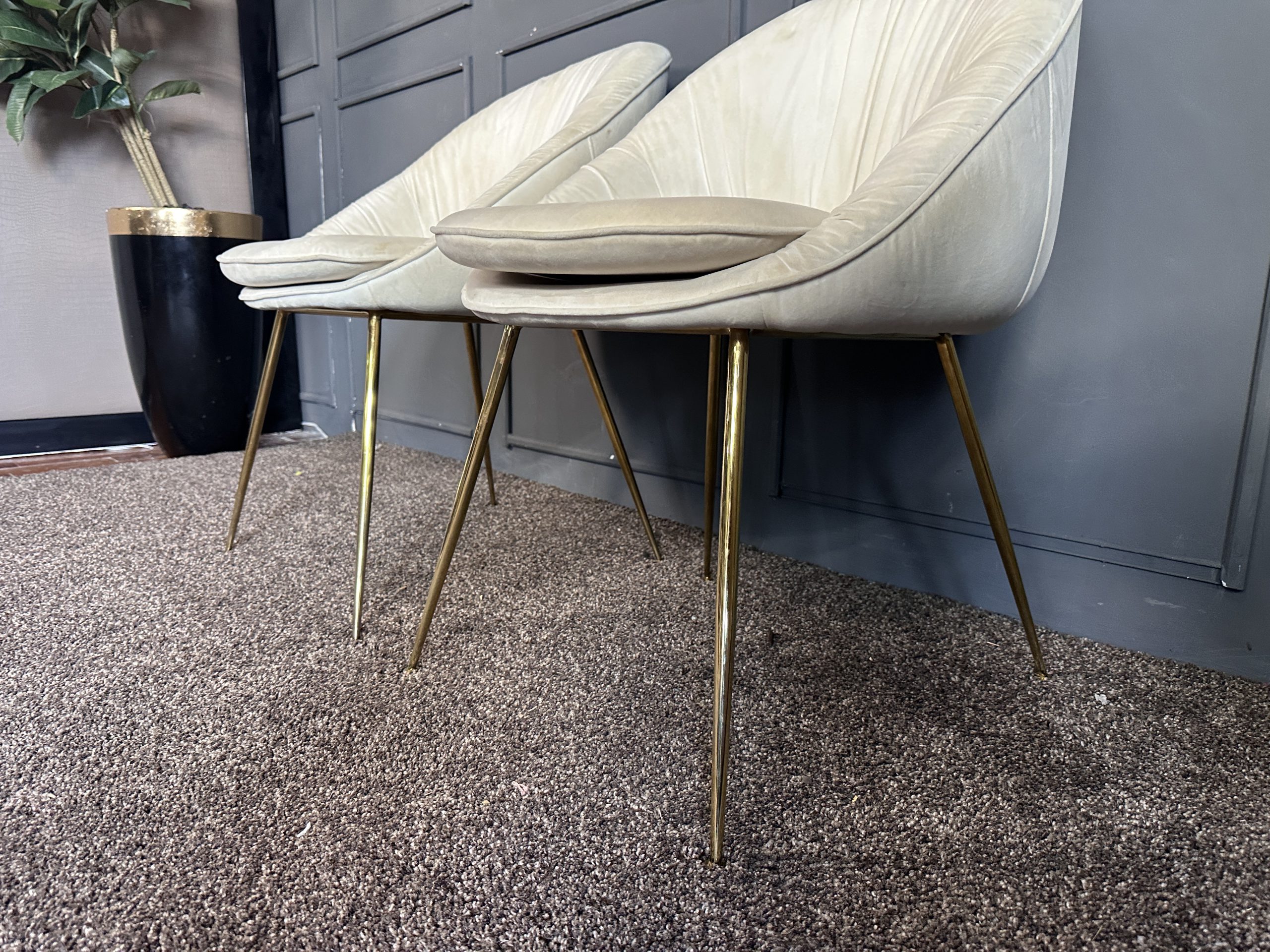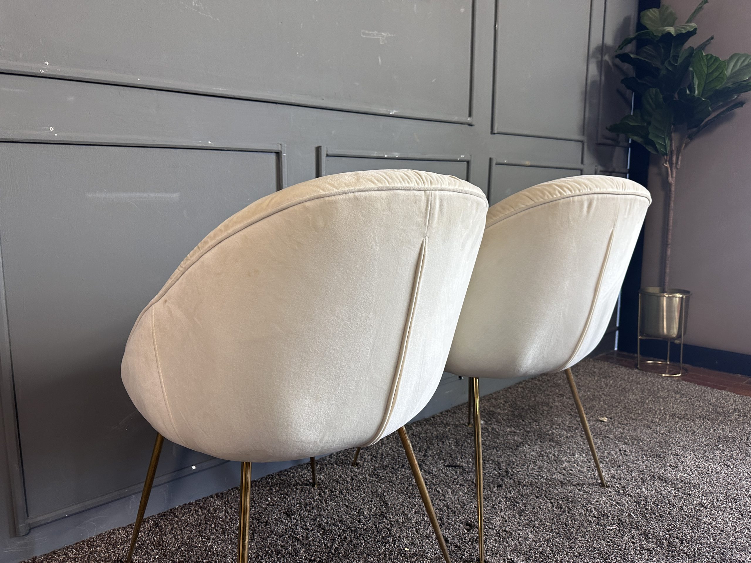 เก้าอี้ เบาะผ้ากำมะหยี่สีครีม โครงขาสแตนเลสสีโกลด์