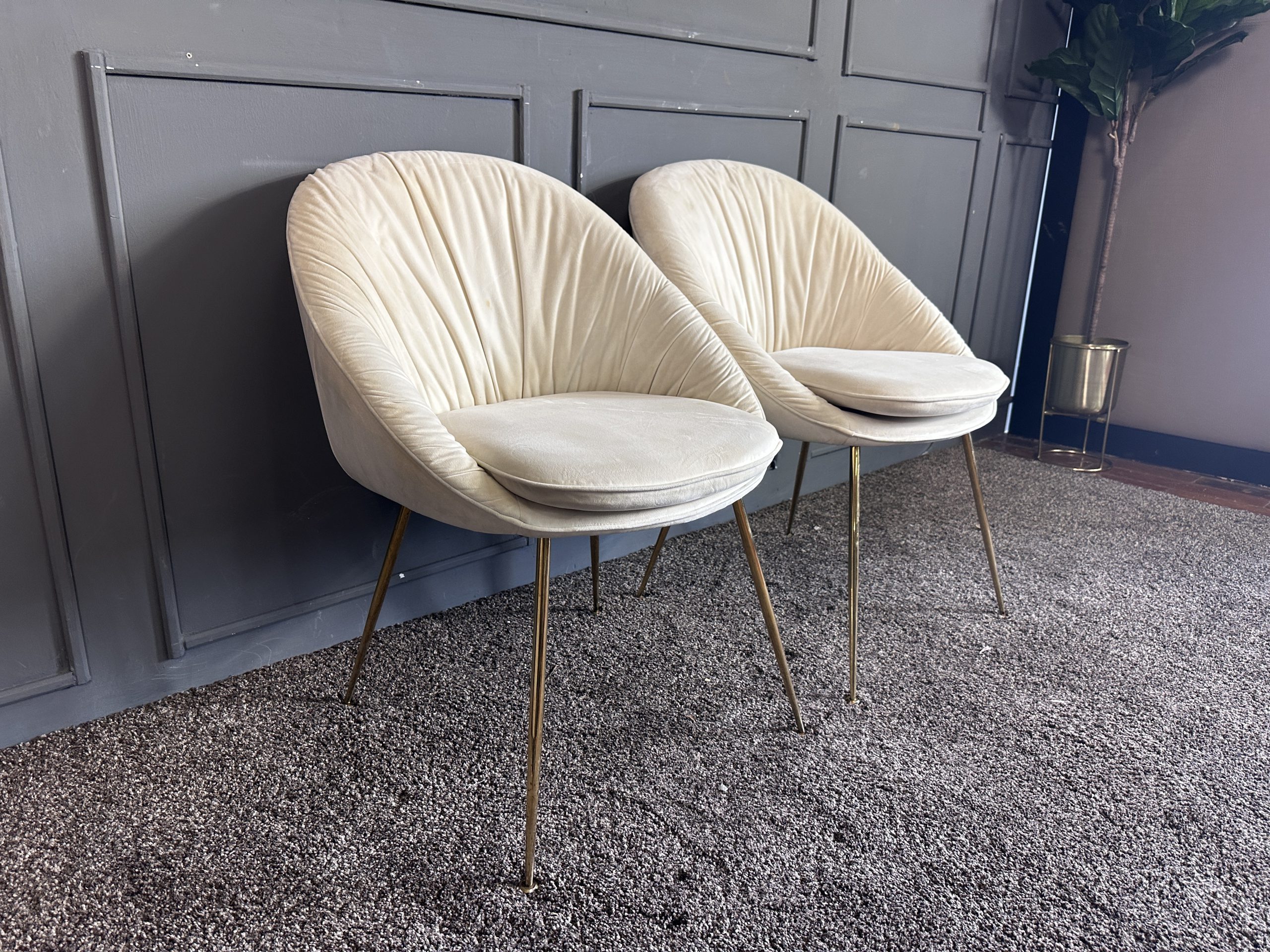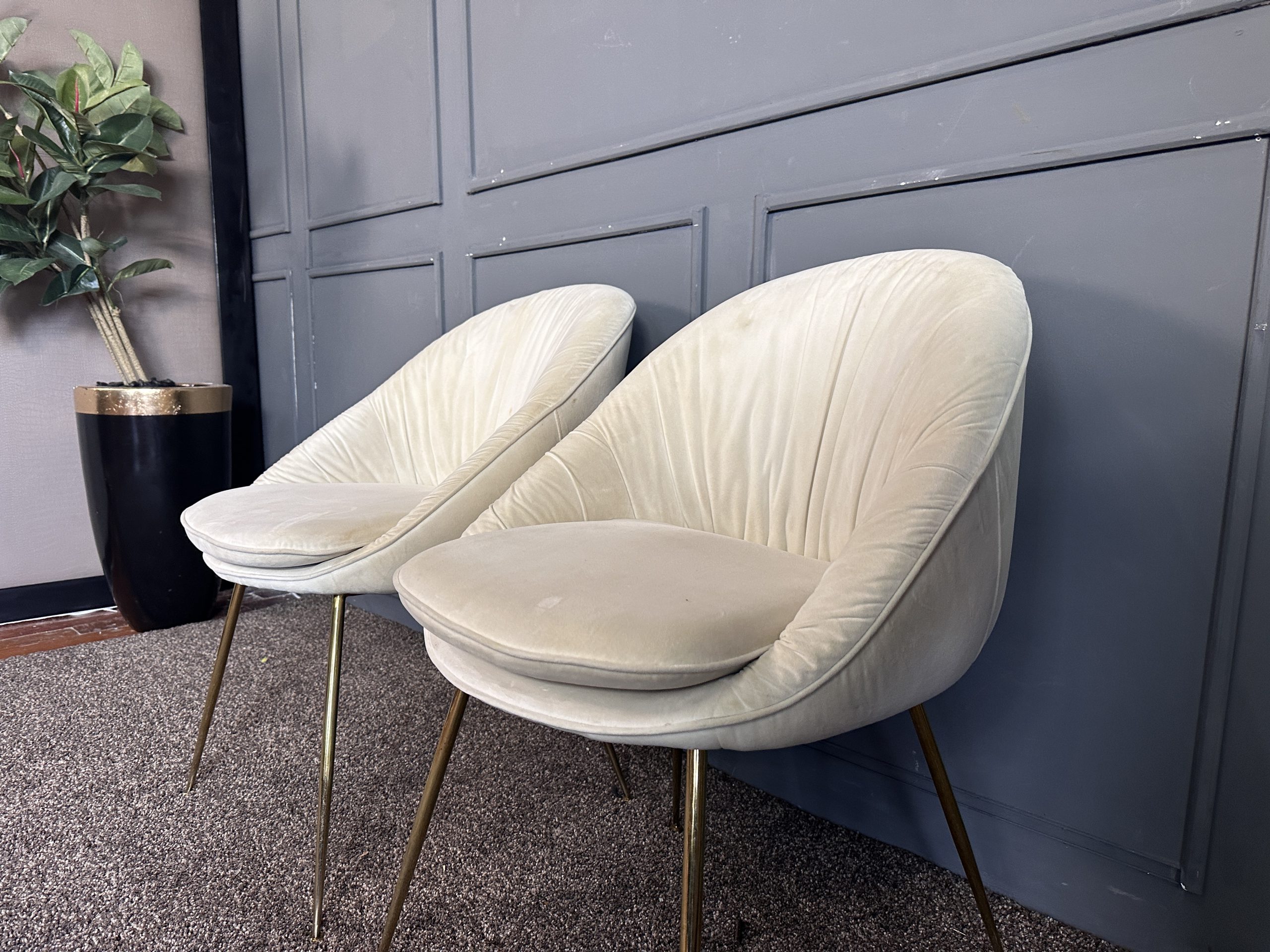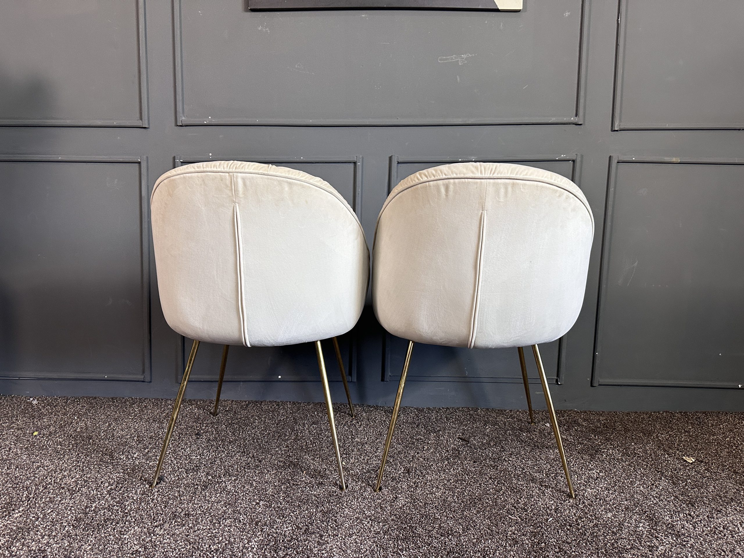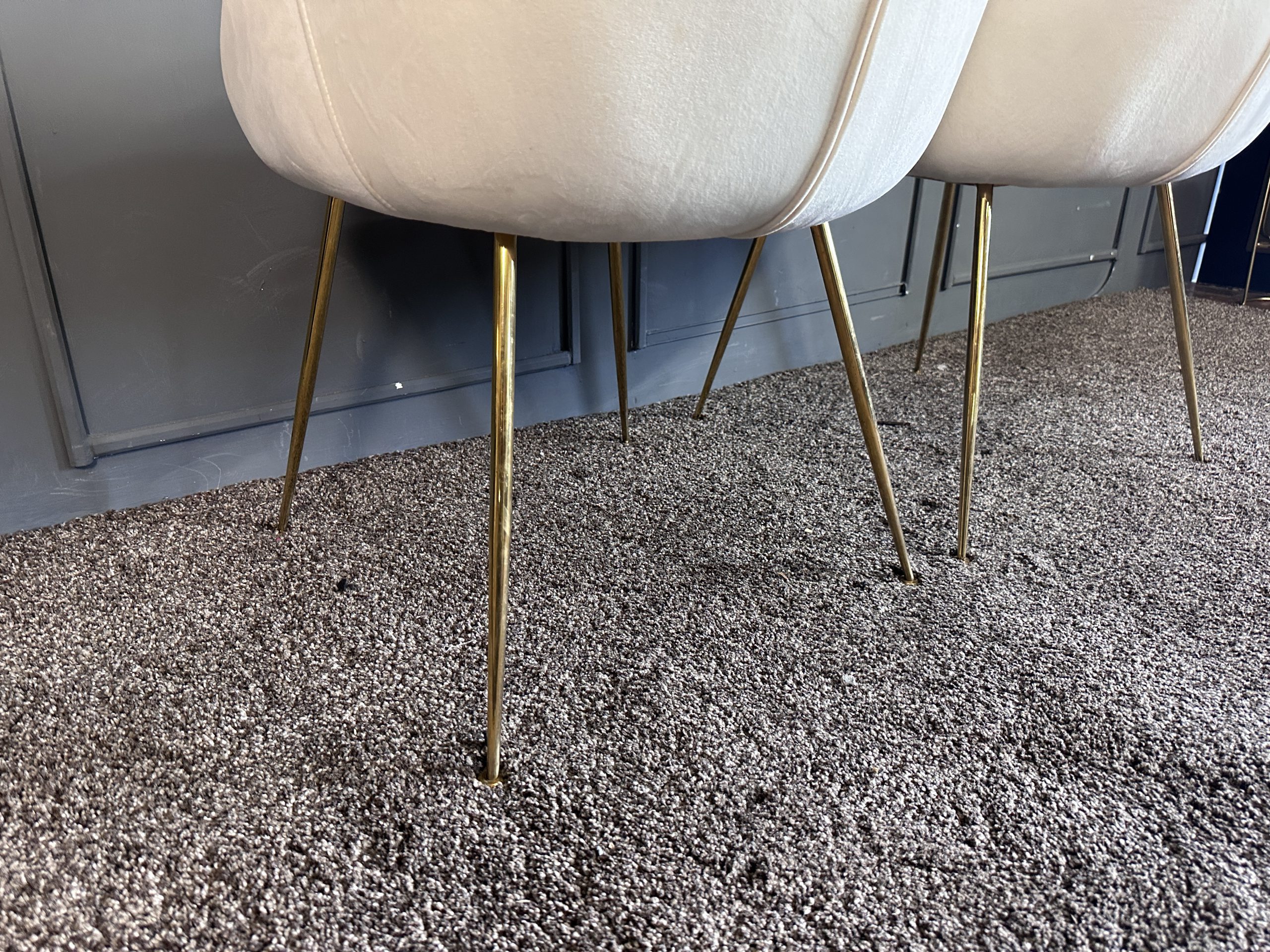 เก้าอี้ เบาะผ้ากำมะหยี่สีครีม โครงขาสแตนเลสสีโกลด์