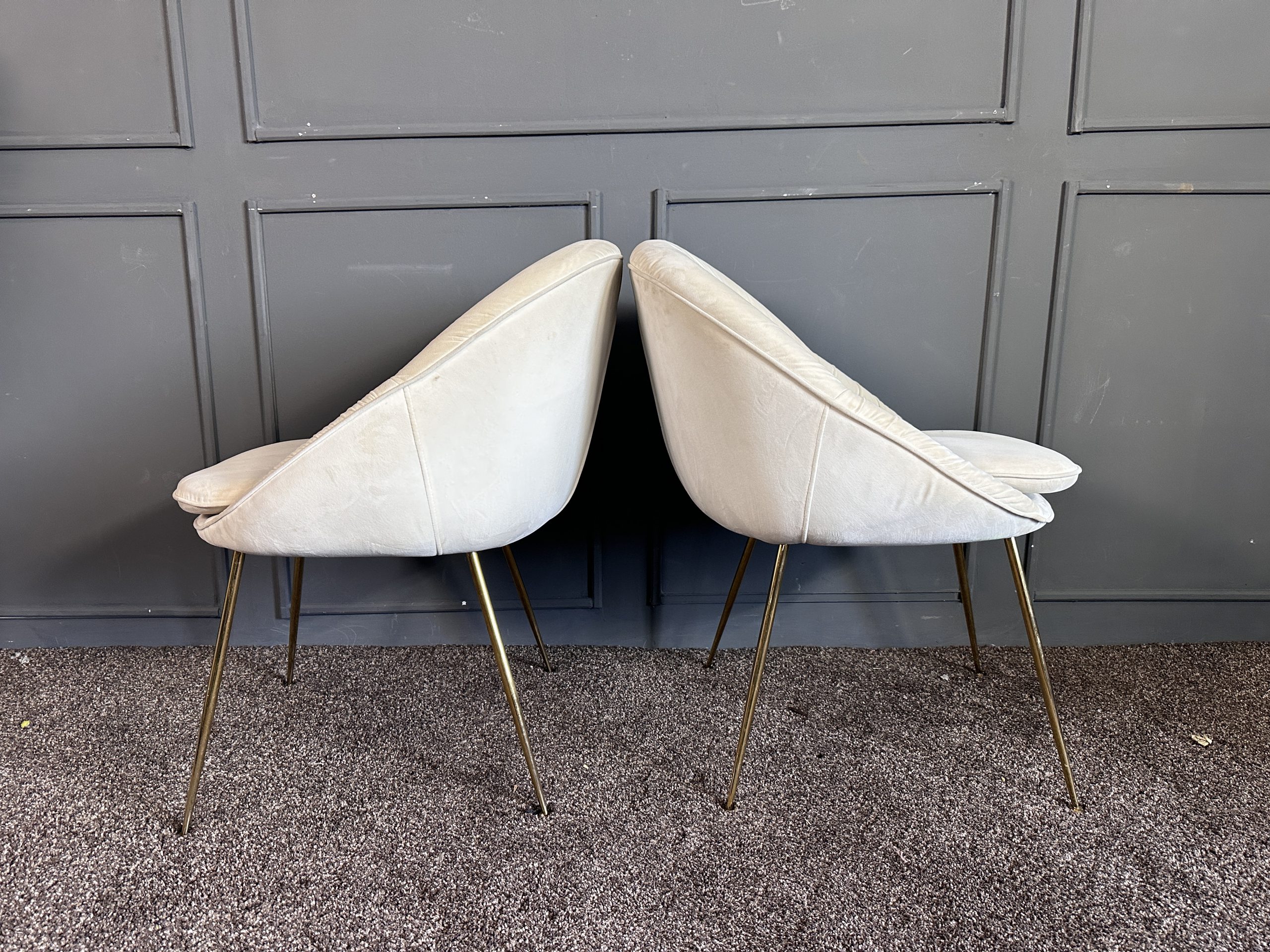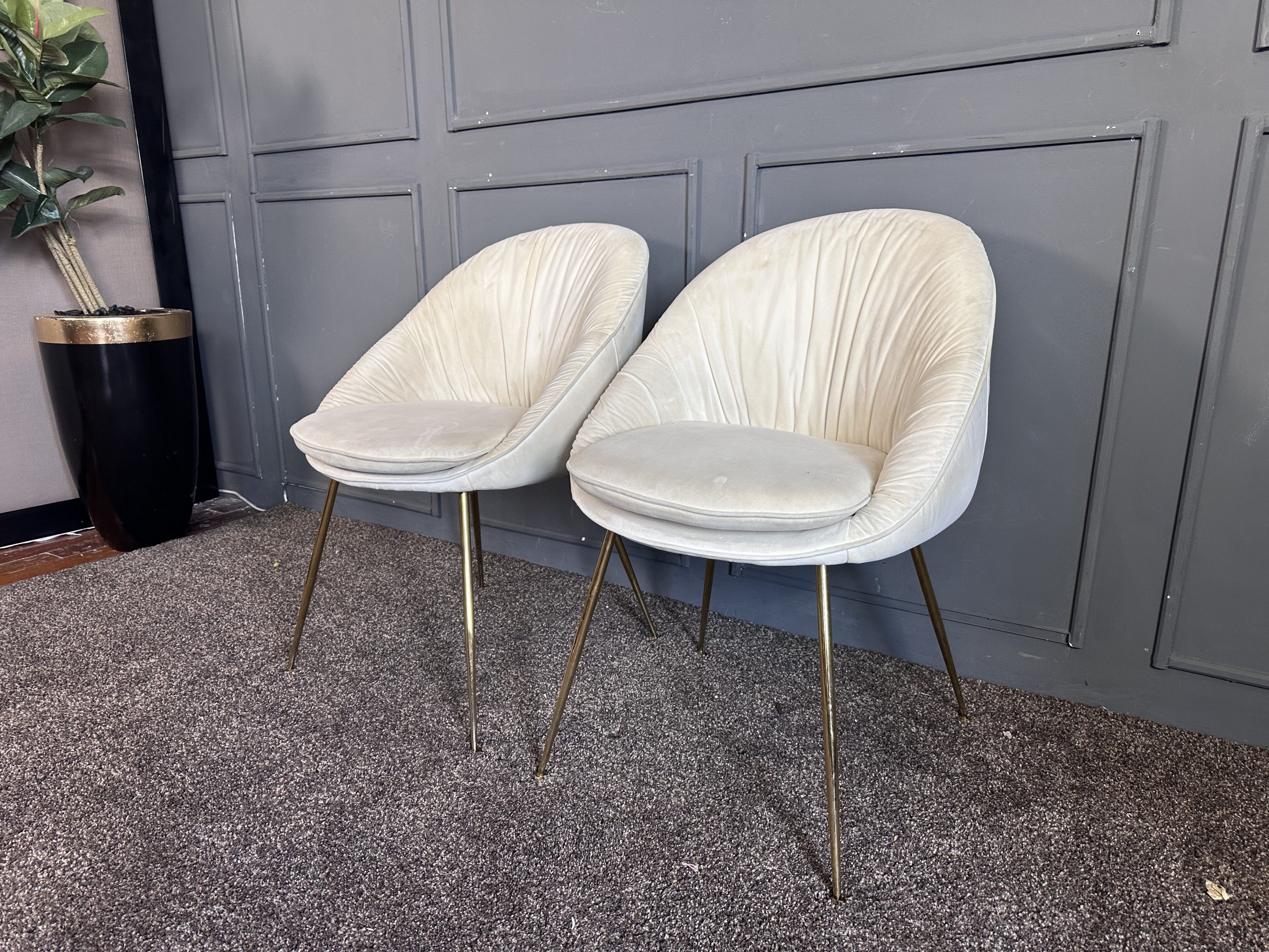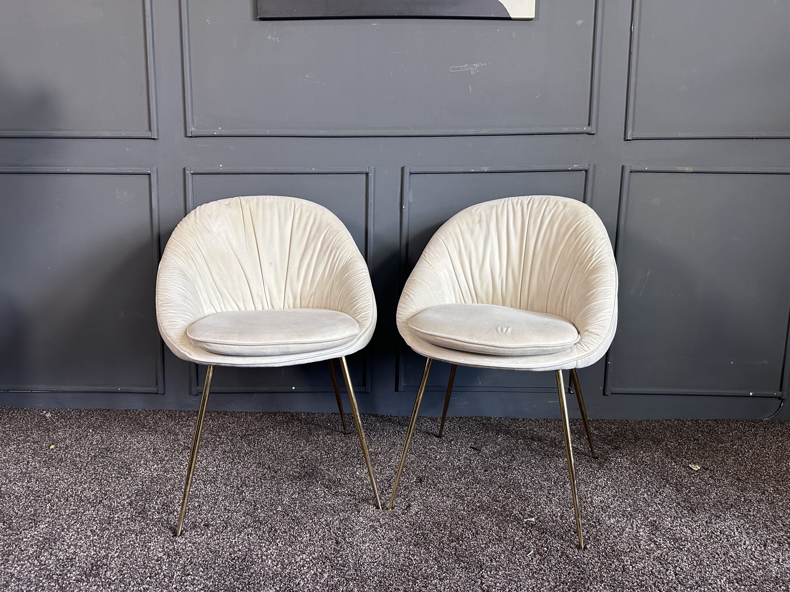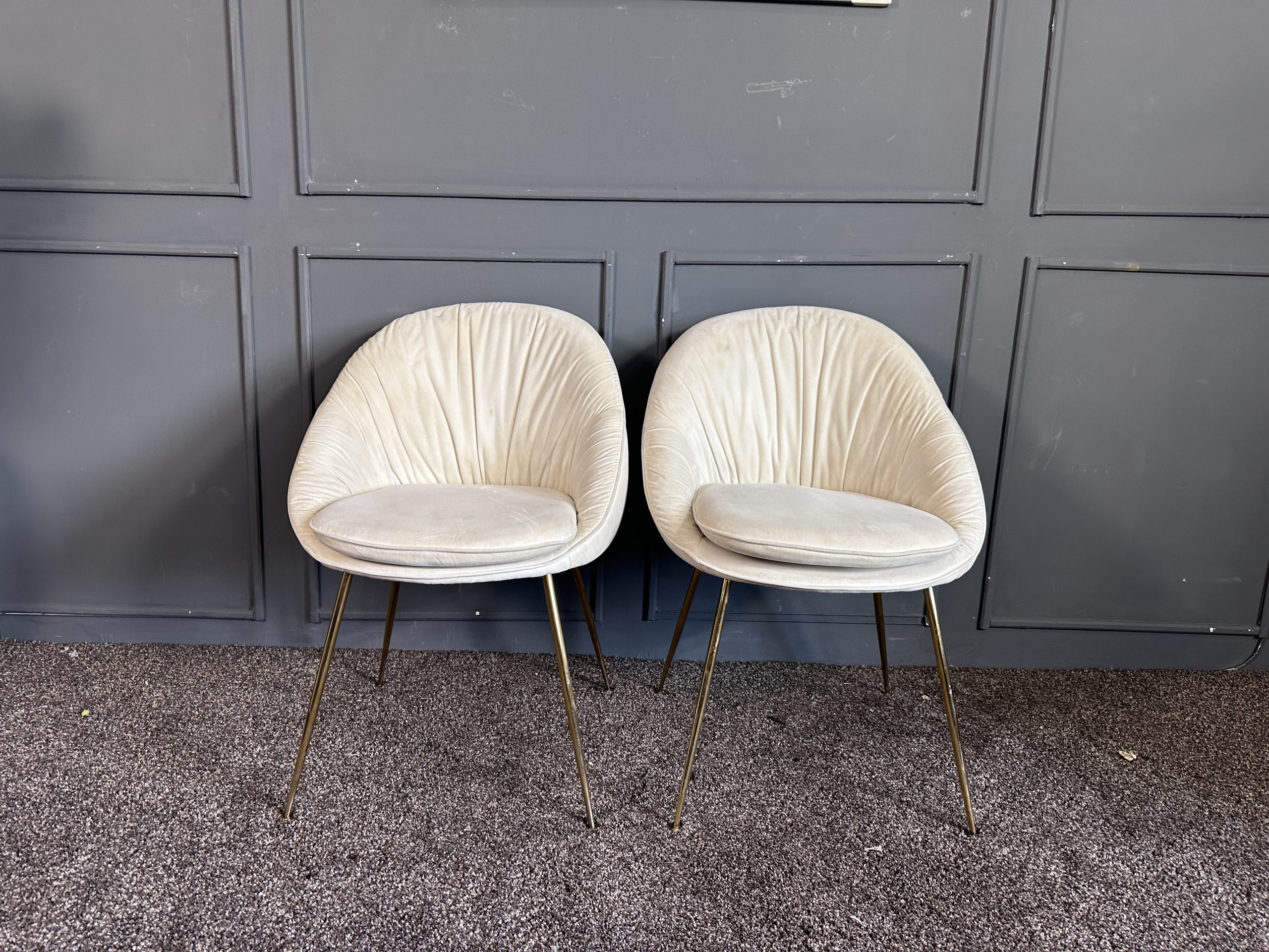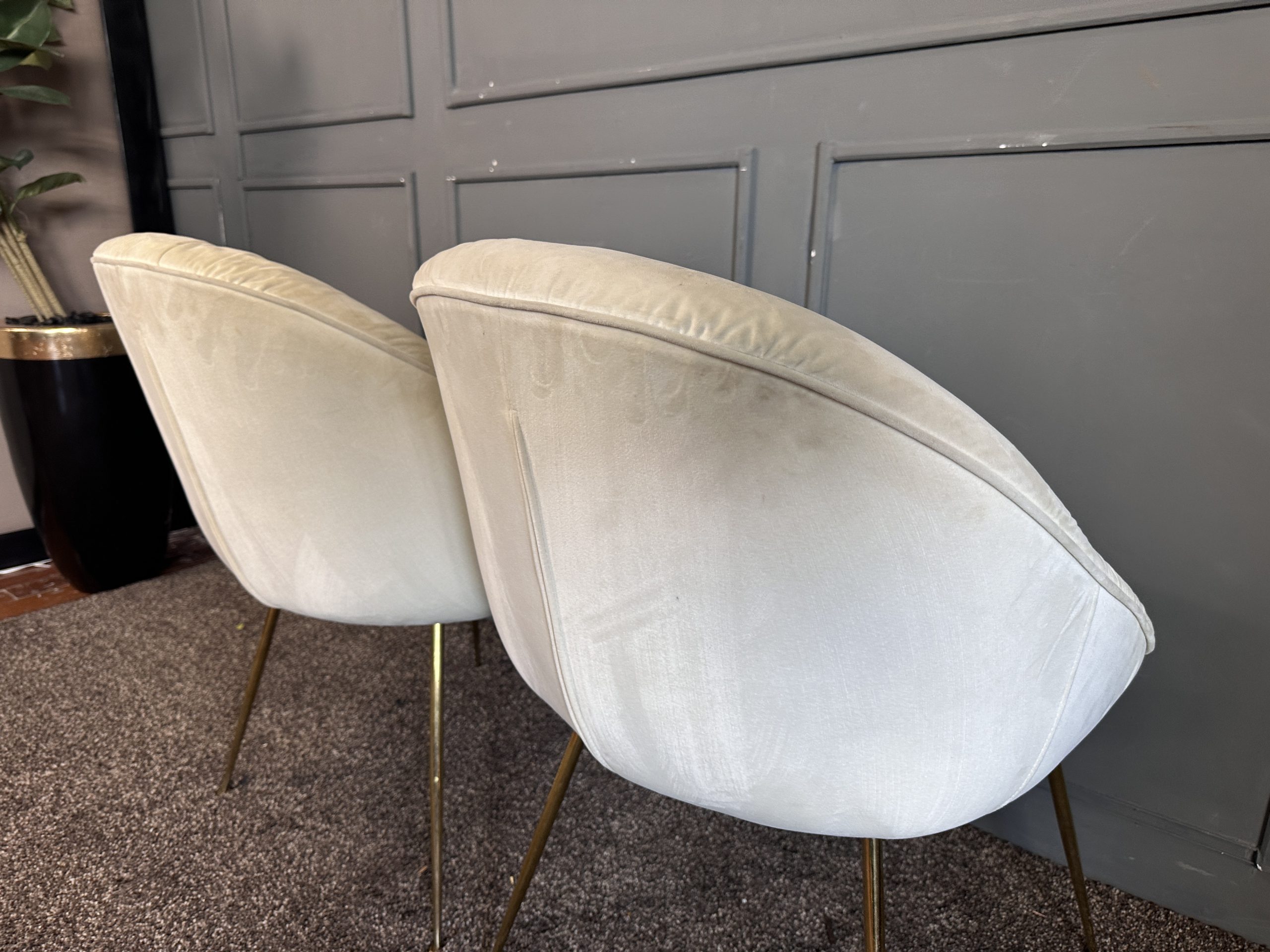 เก้าอี้ เบาะผ้ากำมะหยี่สีครีม โครงขาสแตนเลสสีโกลด์