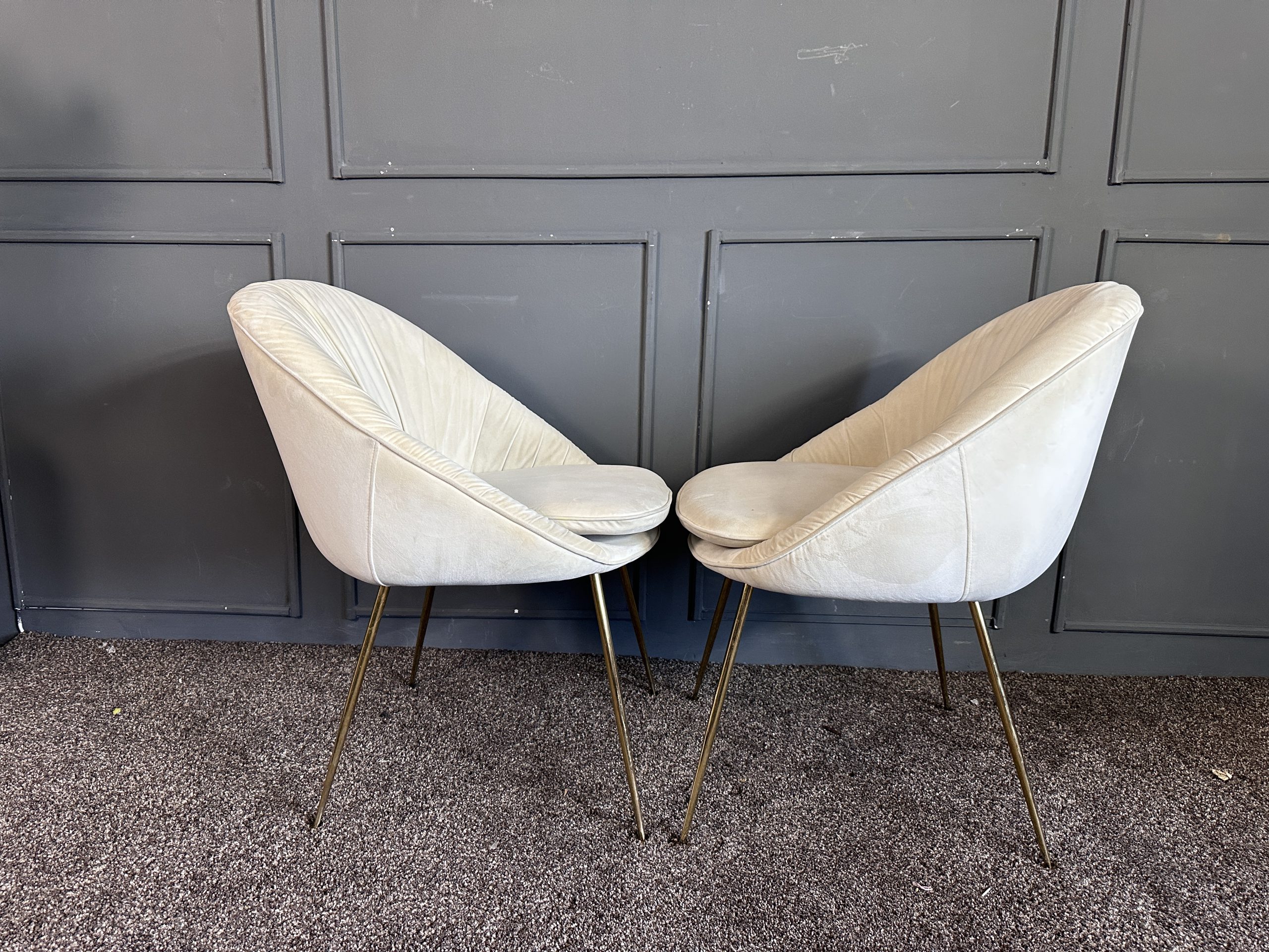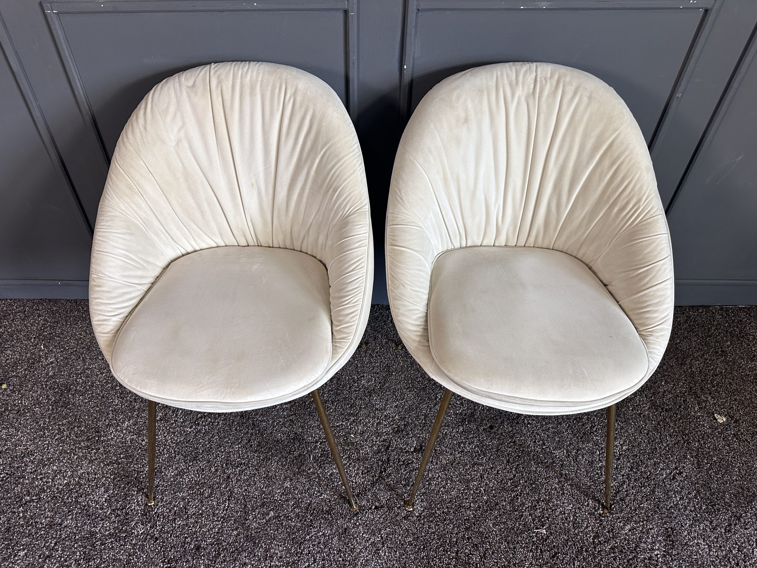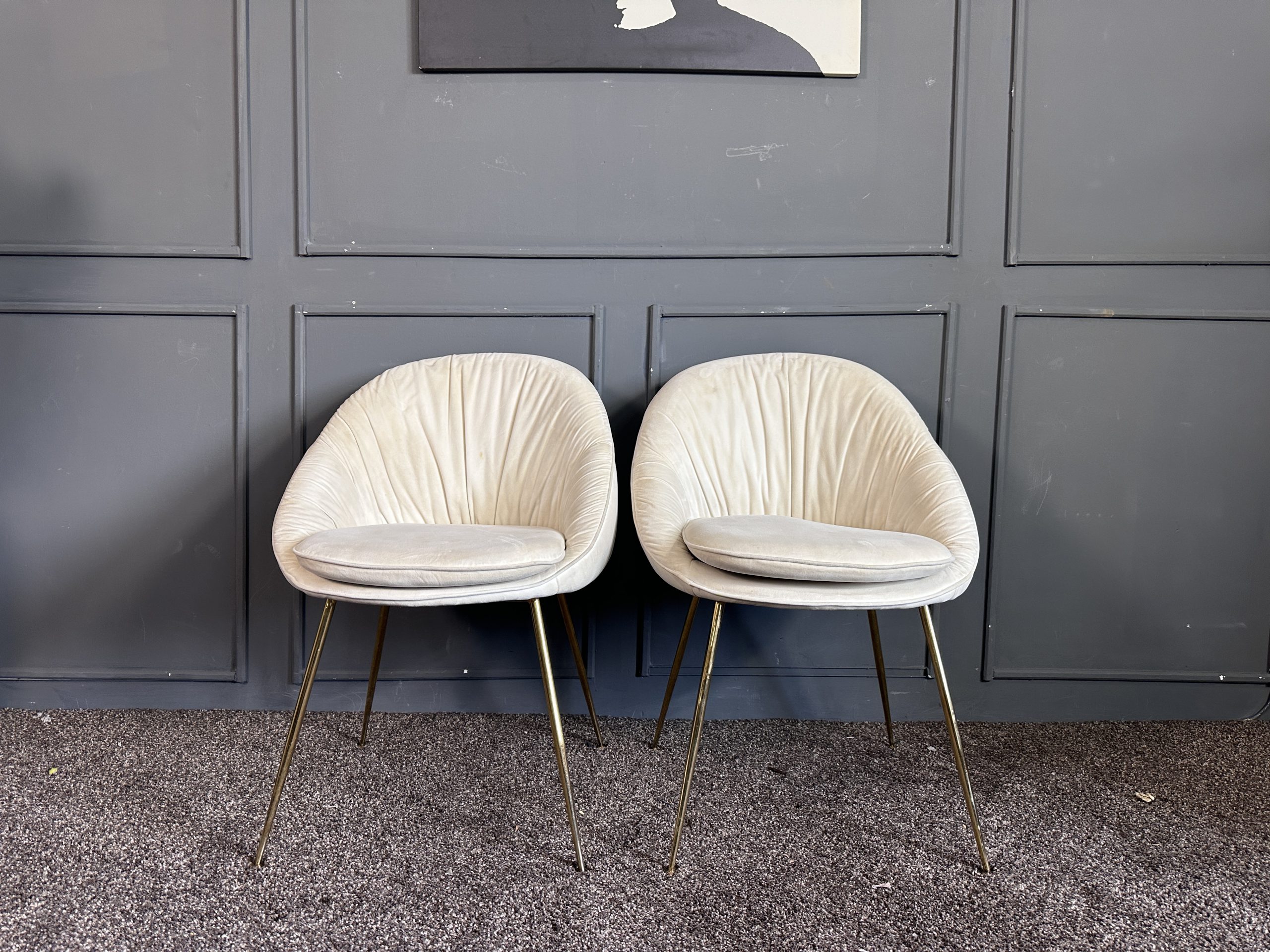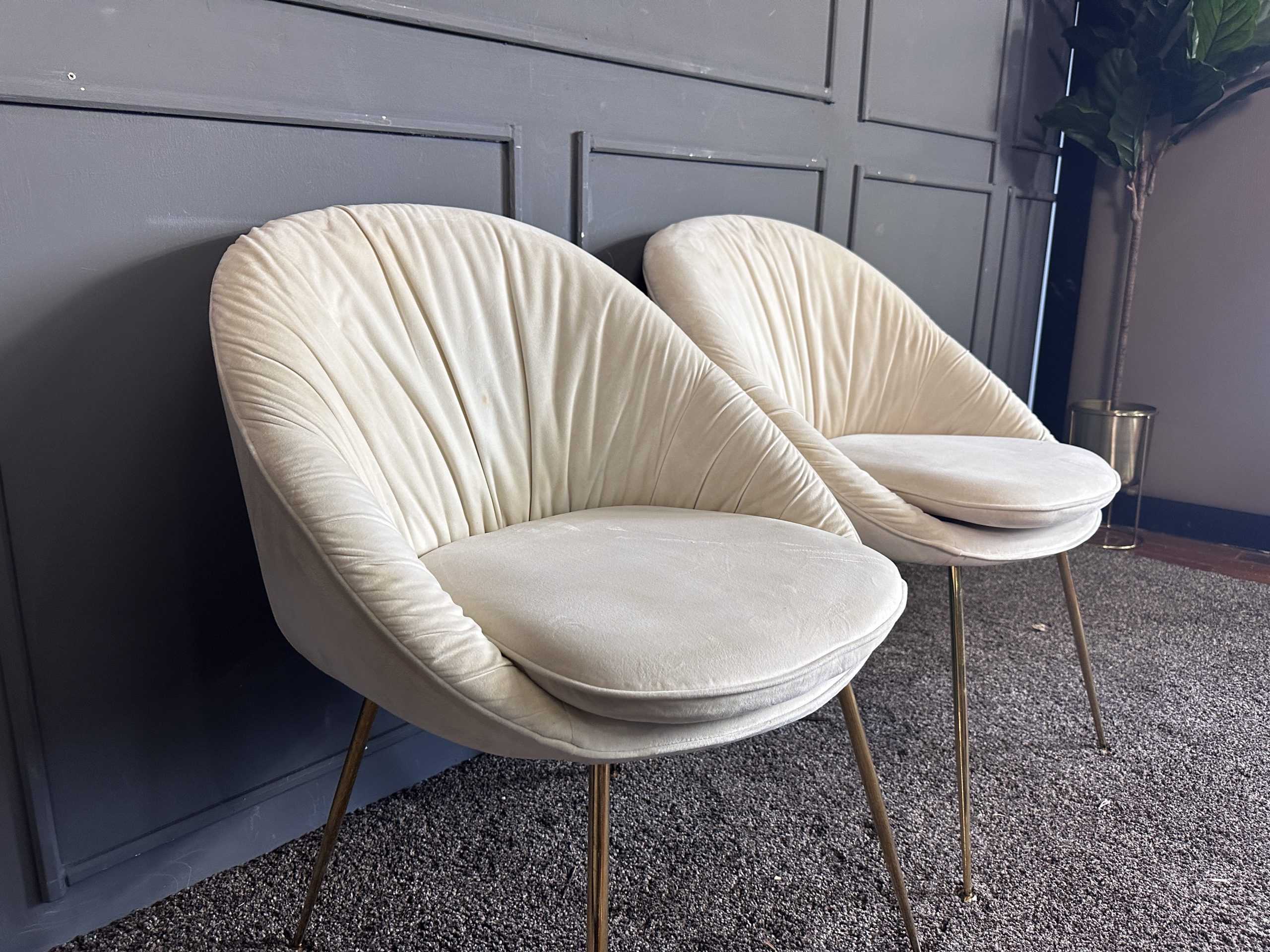 เก้าอี้ เบาะผ้ากำมะหยี่สีครีม โครงขาสแตนเลสสีโกลด์