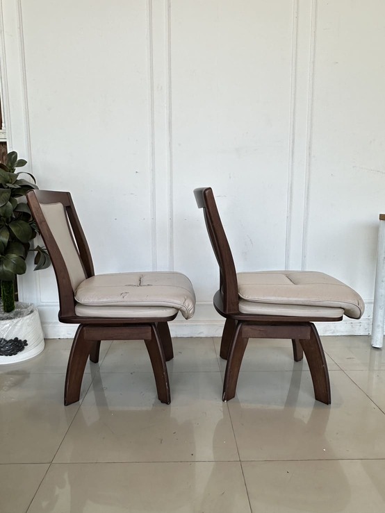 เก้าอี้ แบรนด์ COSTA เบาะหนัง PU สีน้ำตาลอ่อน เบาะหมุนได้ โครงขาไม้สน