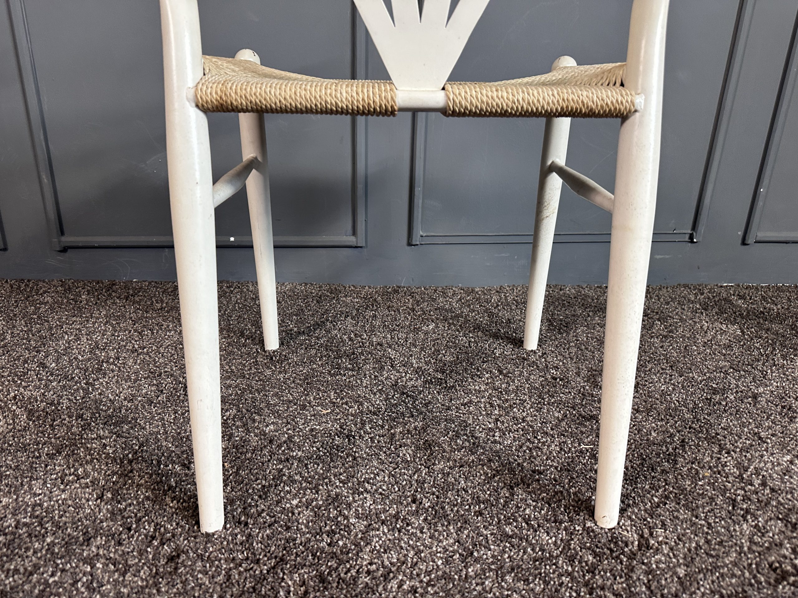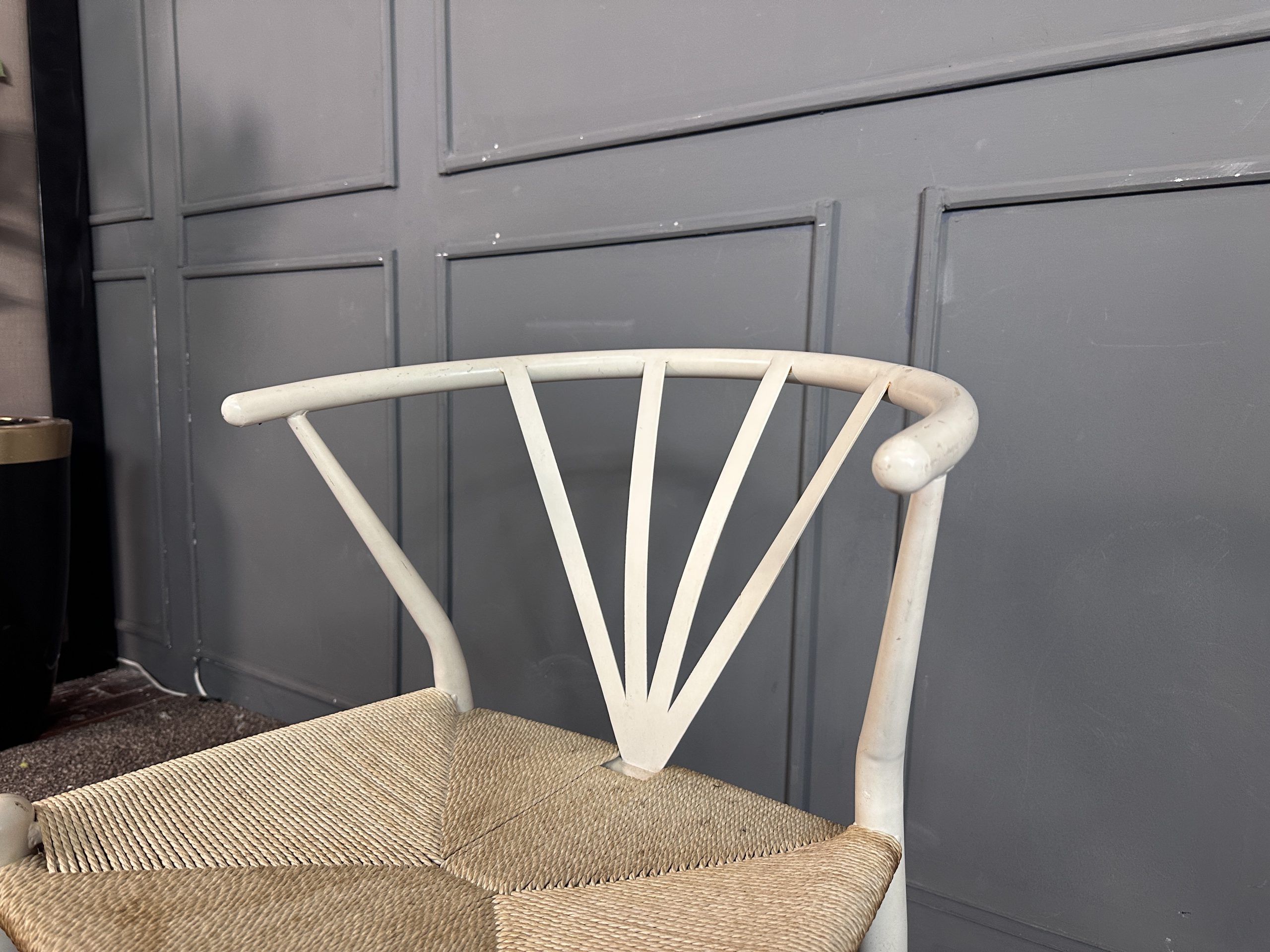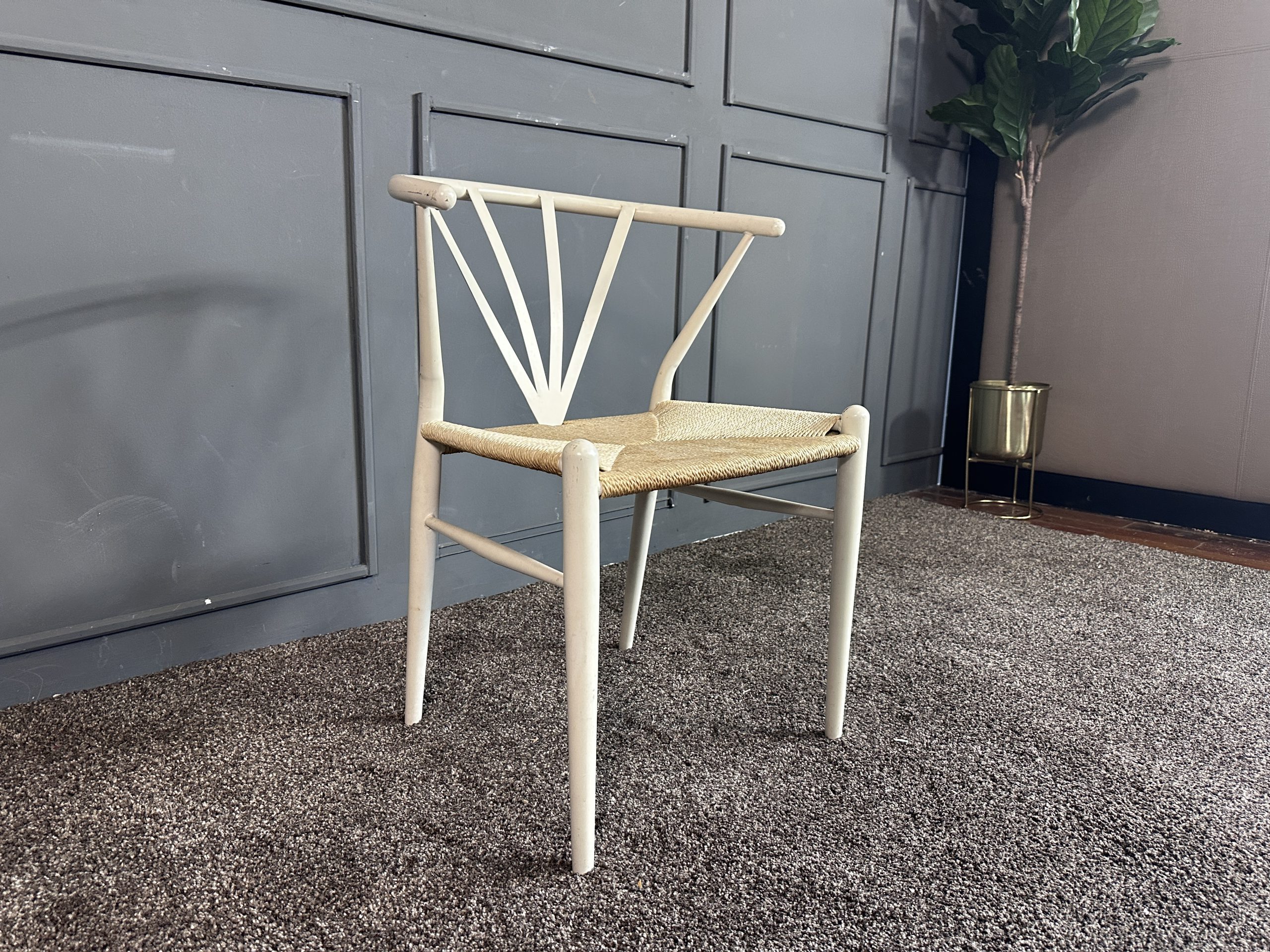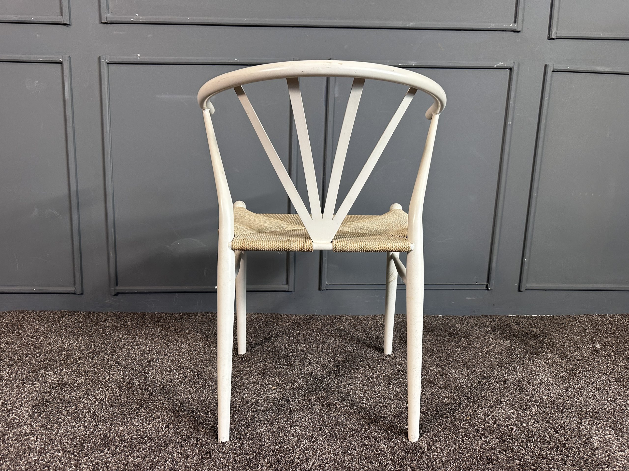 เก้าอี้ Whishbone Chair เบาะเชือกถัก โครงขาเหล็กสีขาว