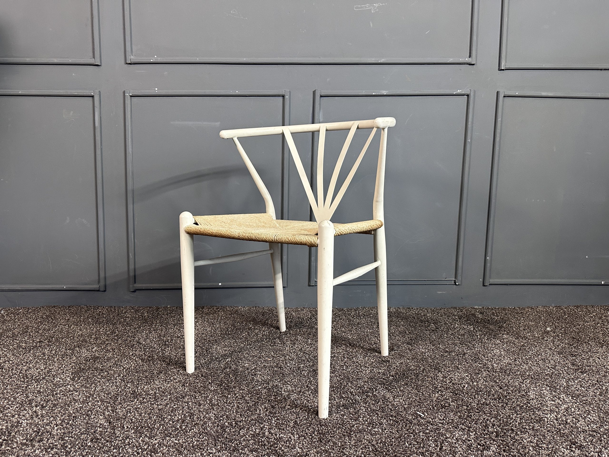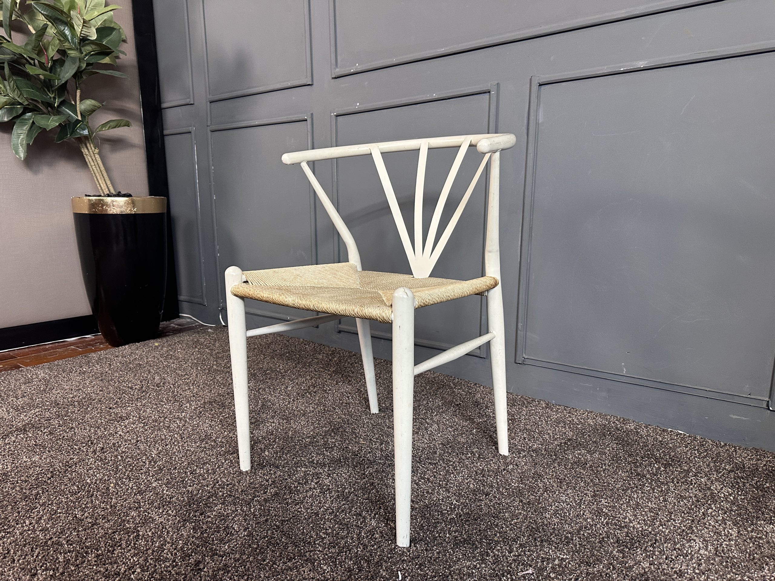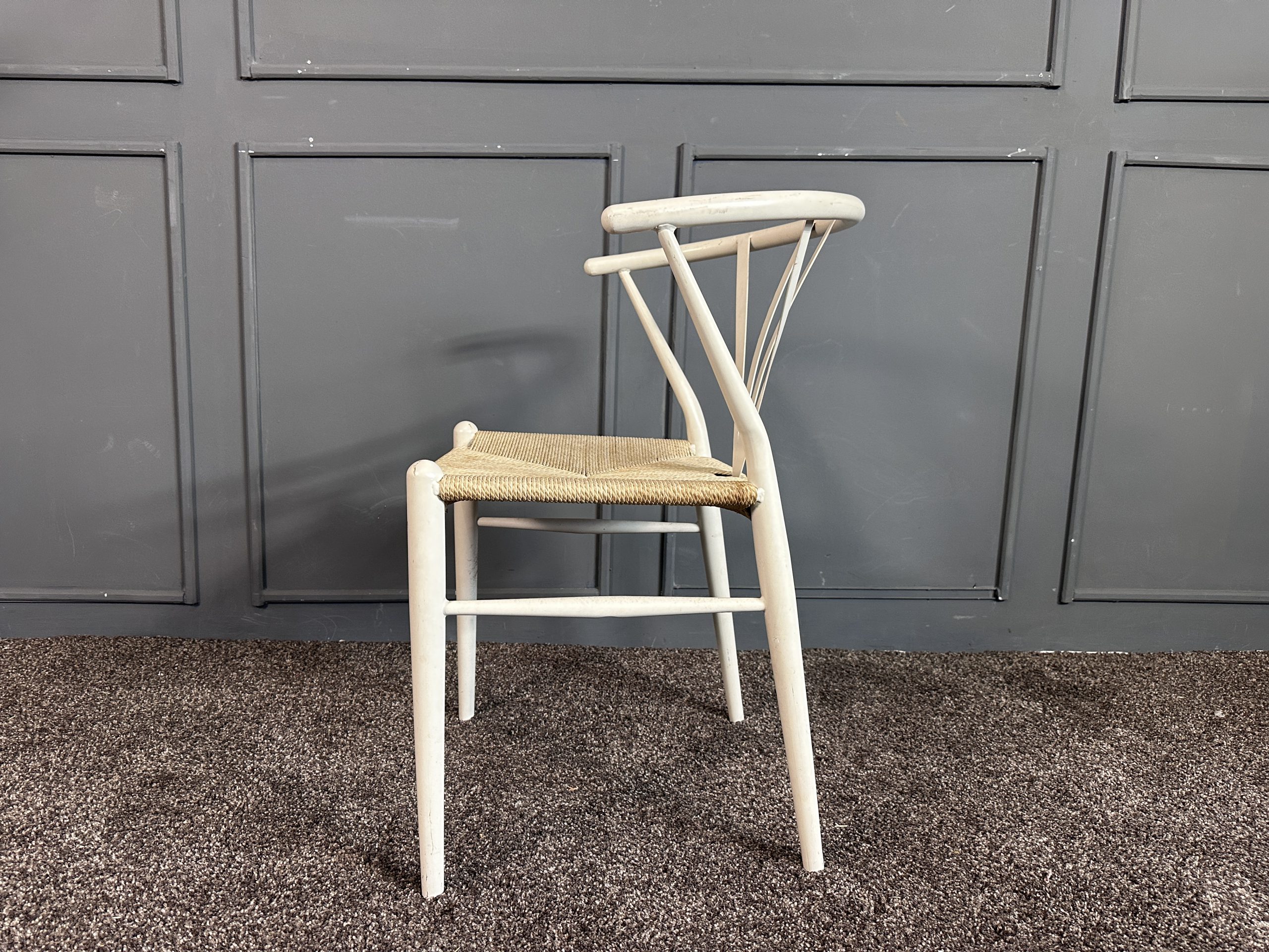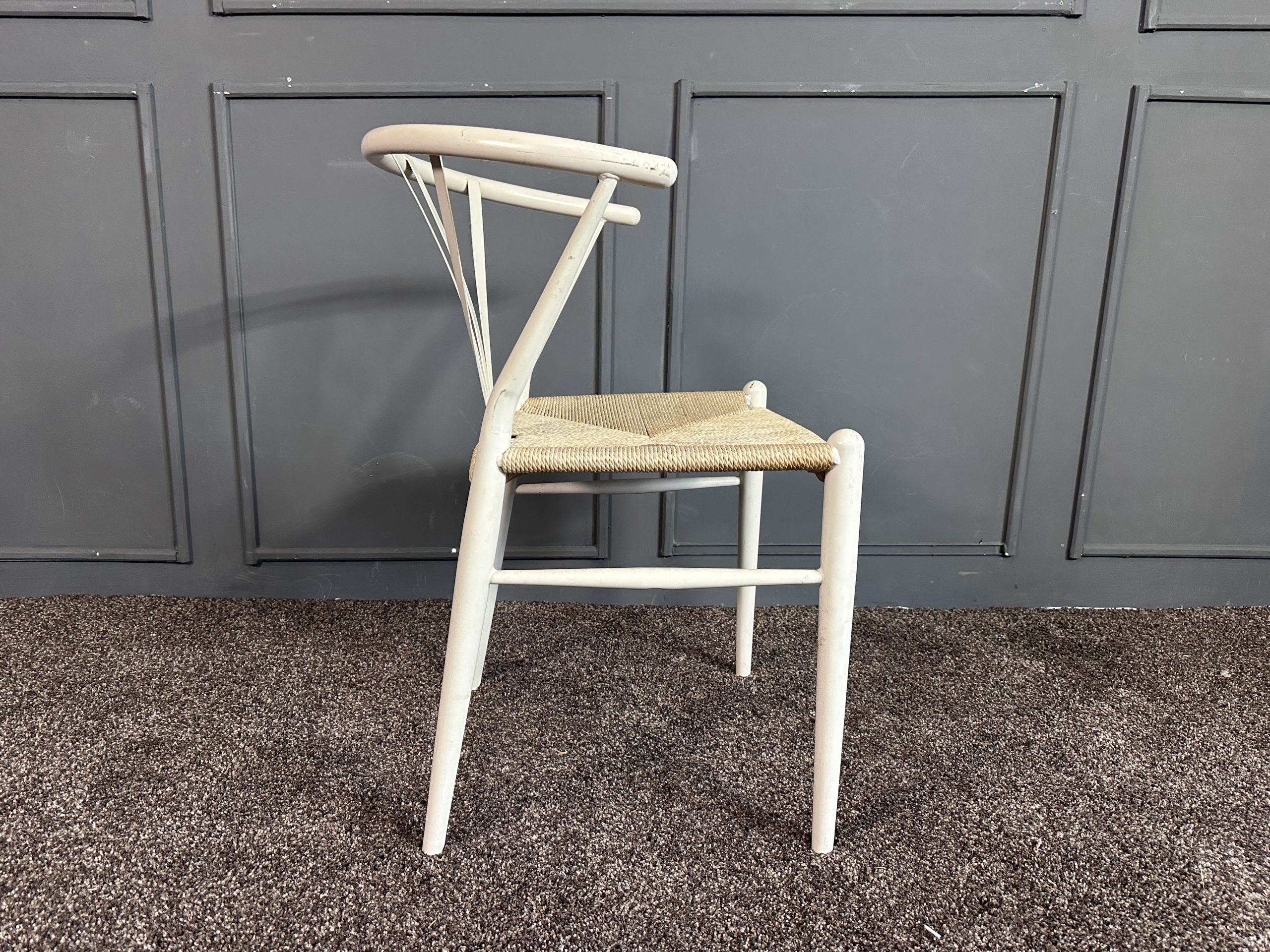 เก้าอี้ Whishbone Chair เบาะเชือกถัก โครงขาเหล็กสีขาว