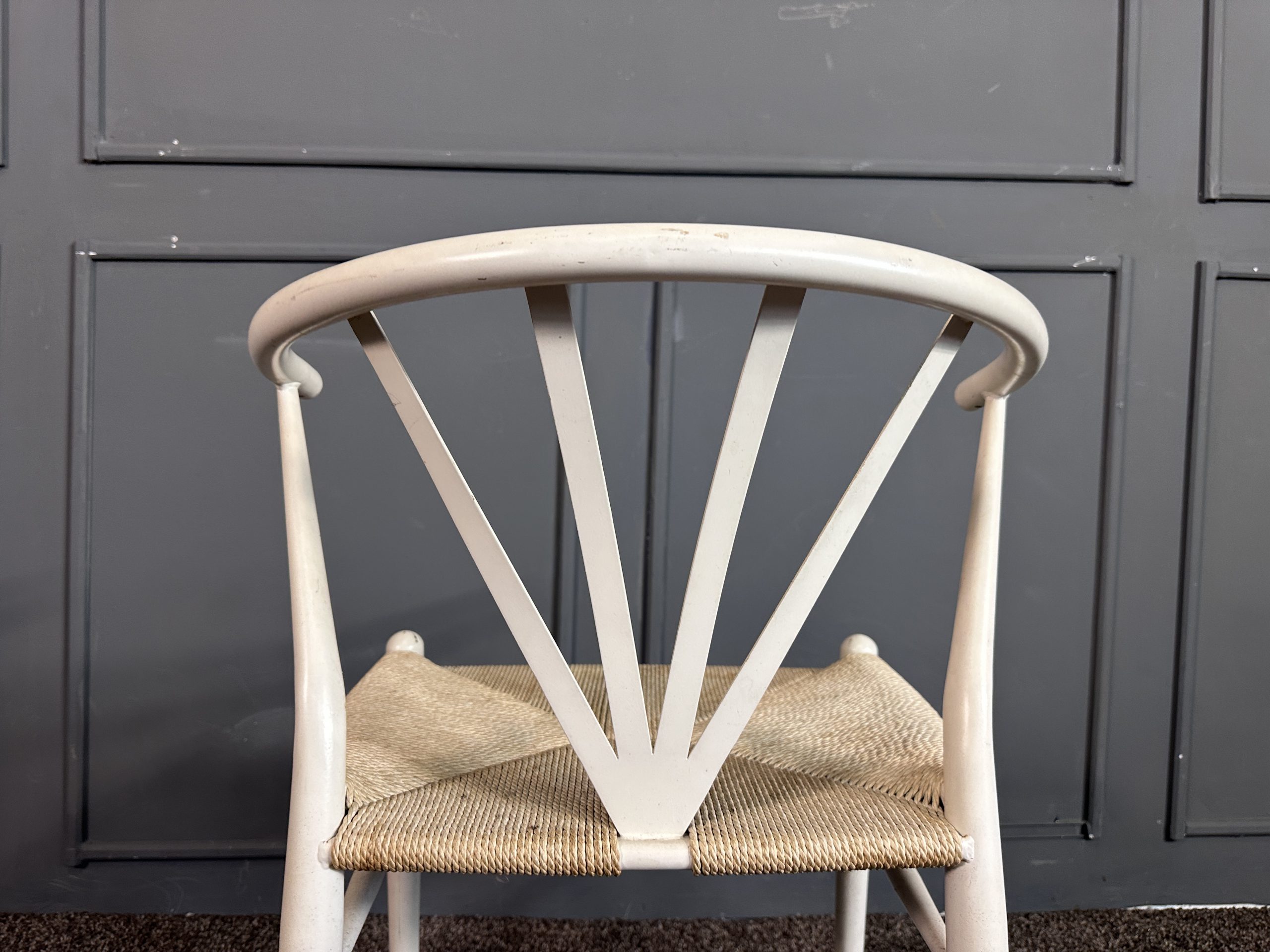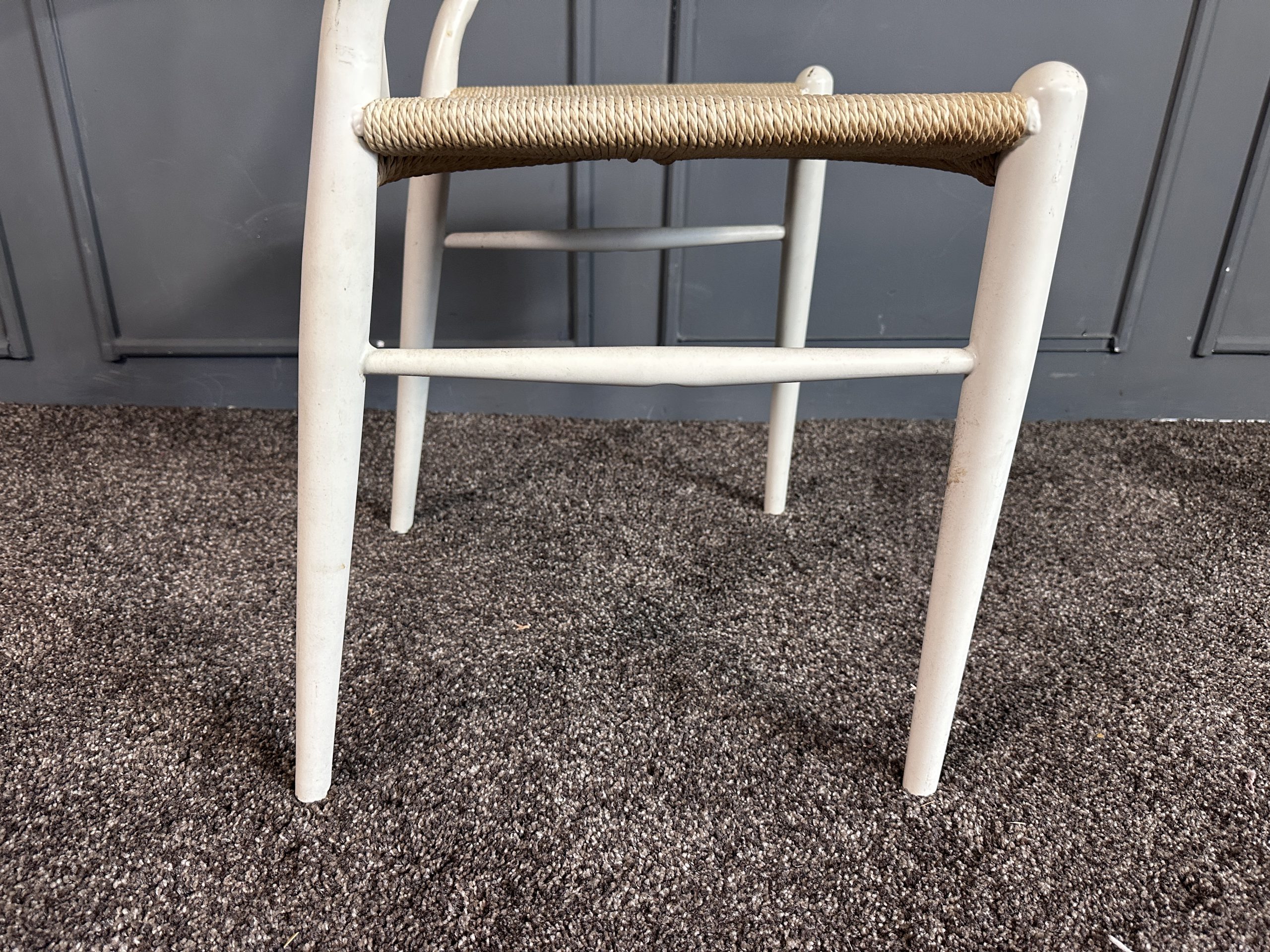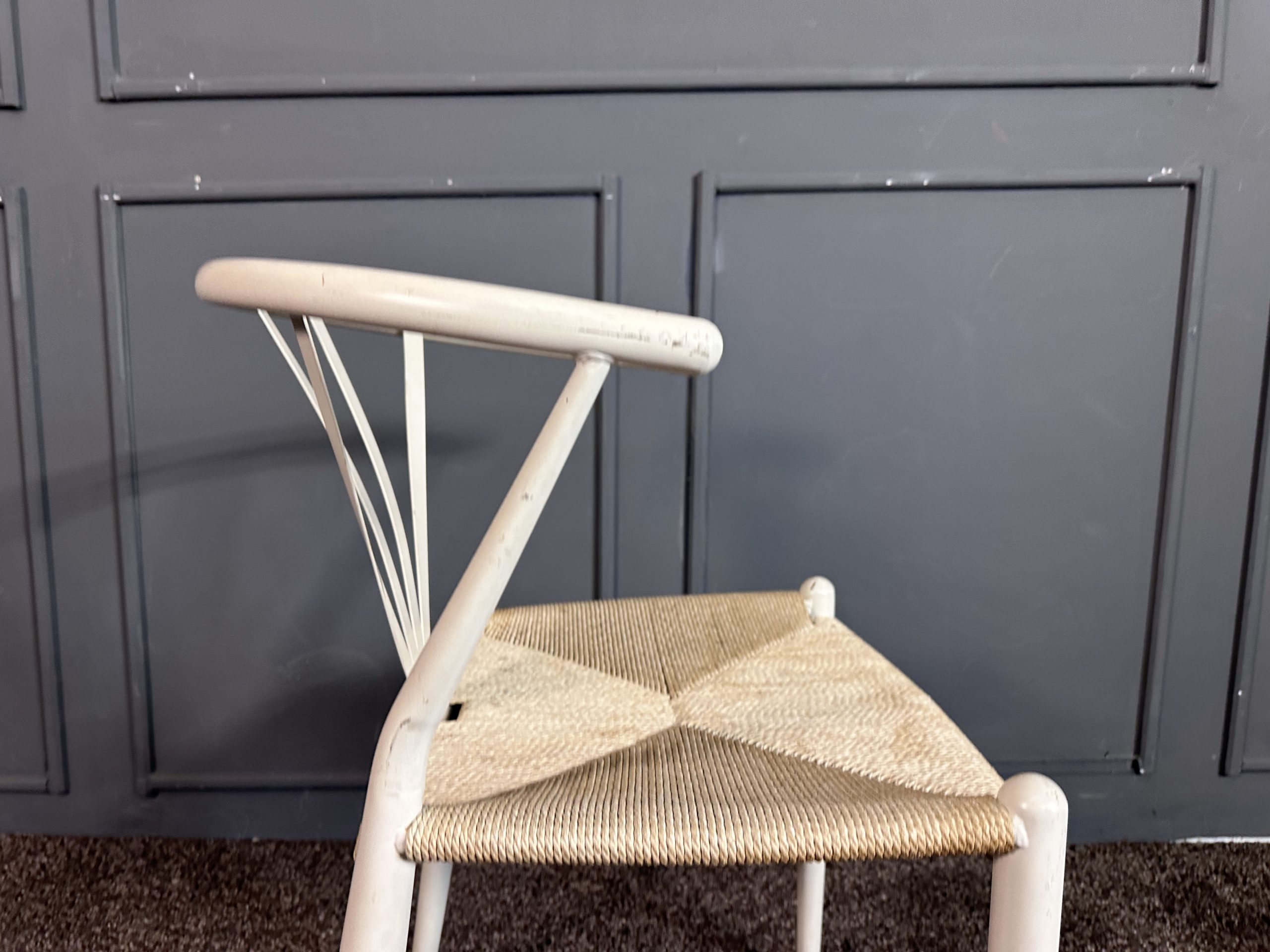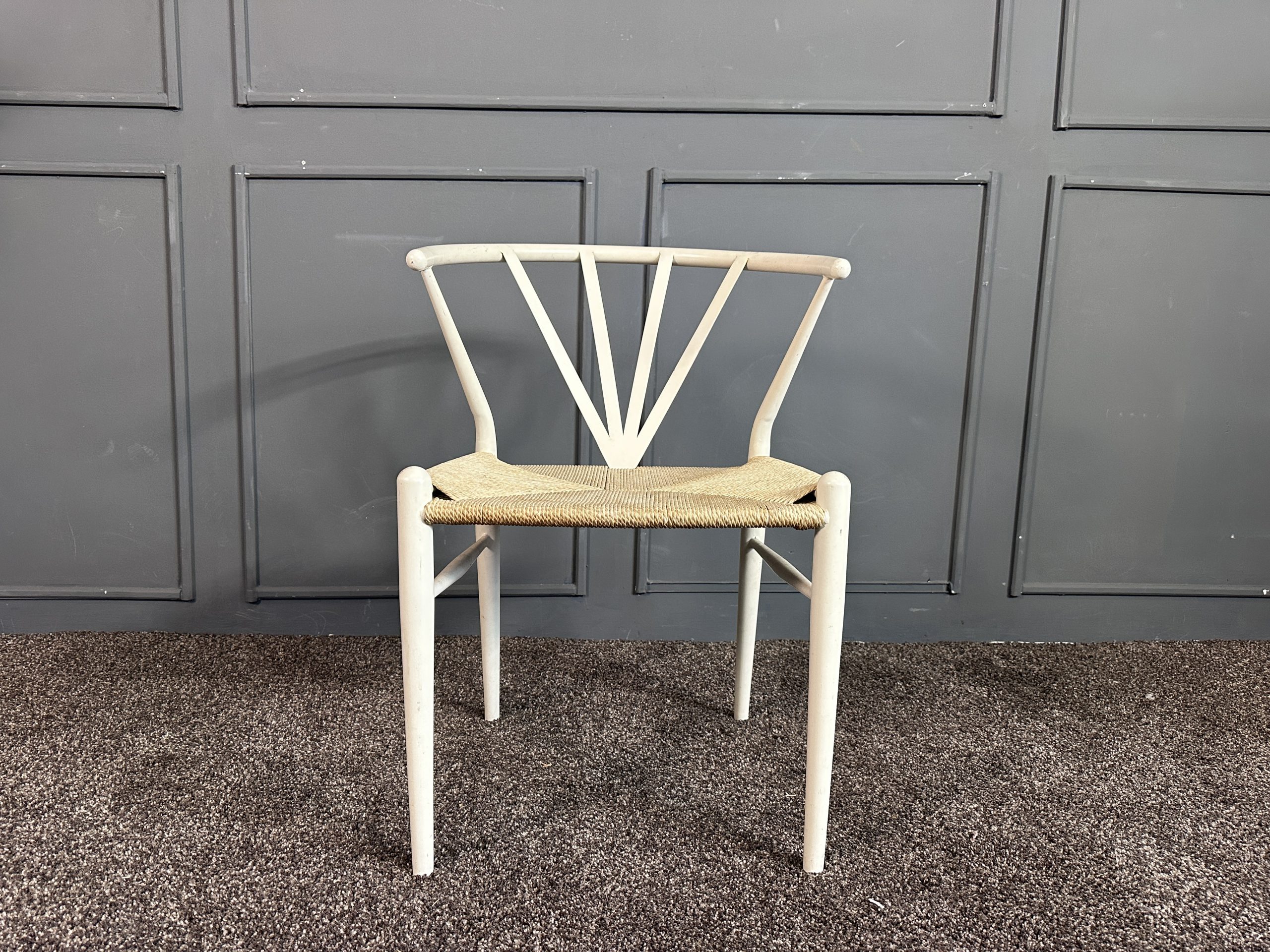 เก้าอี้ Whishbone Chair เบาะเชือกถัก โครงขาเหล็กสีขาว