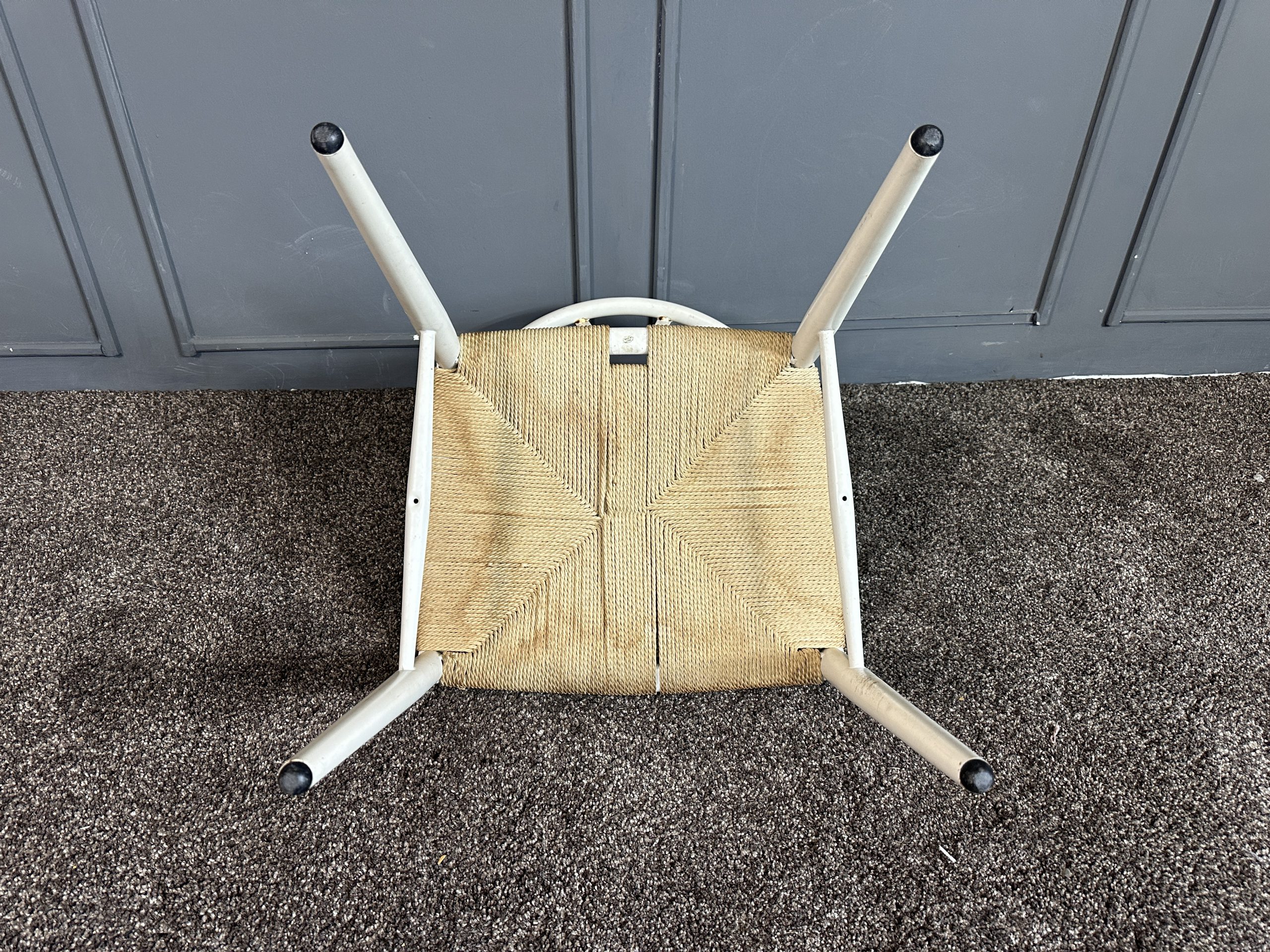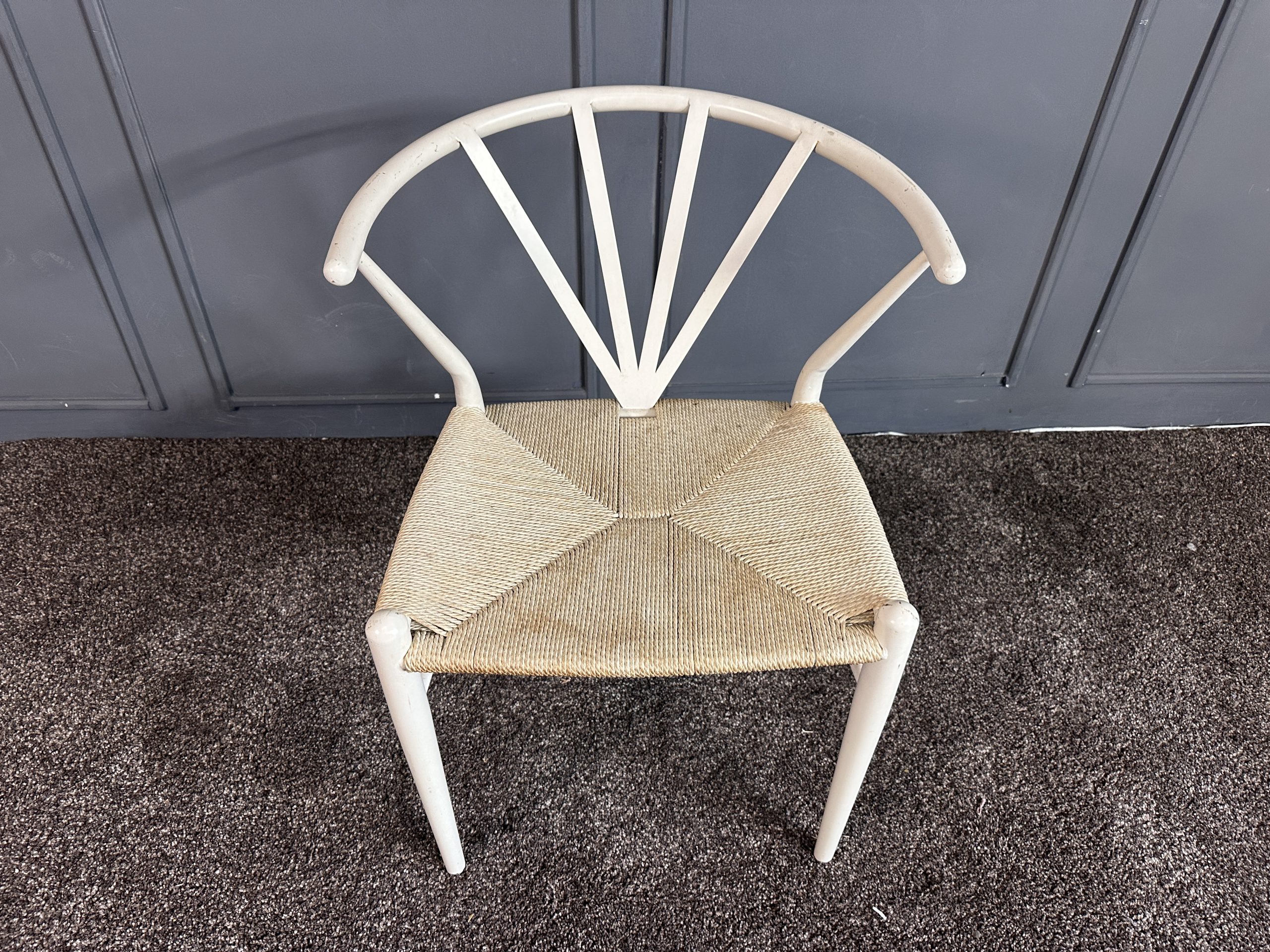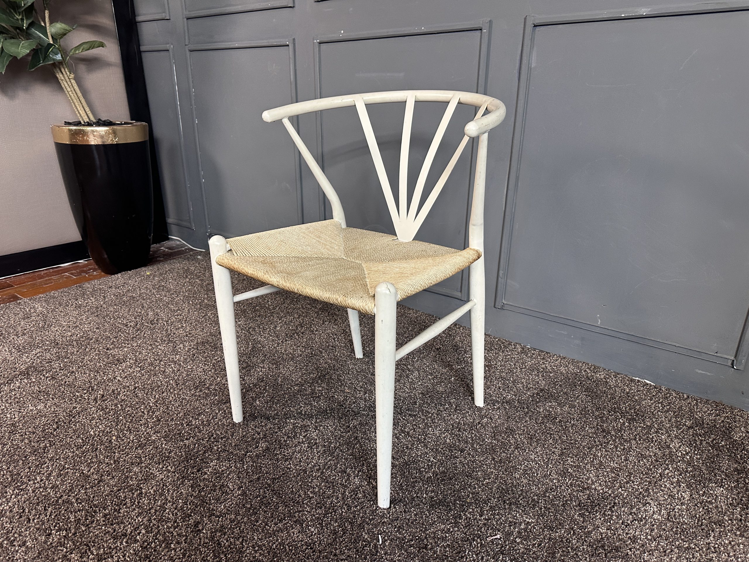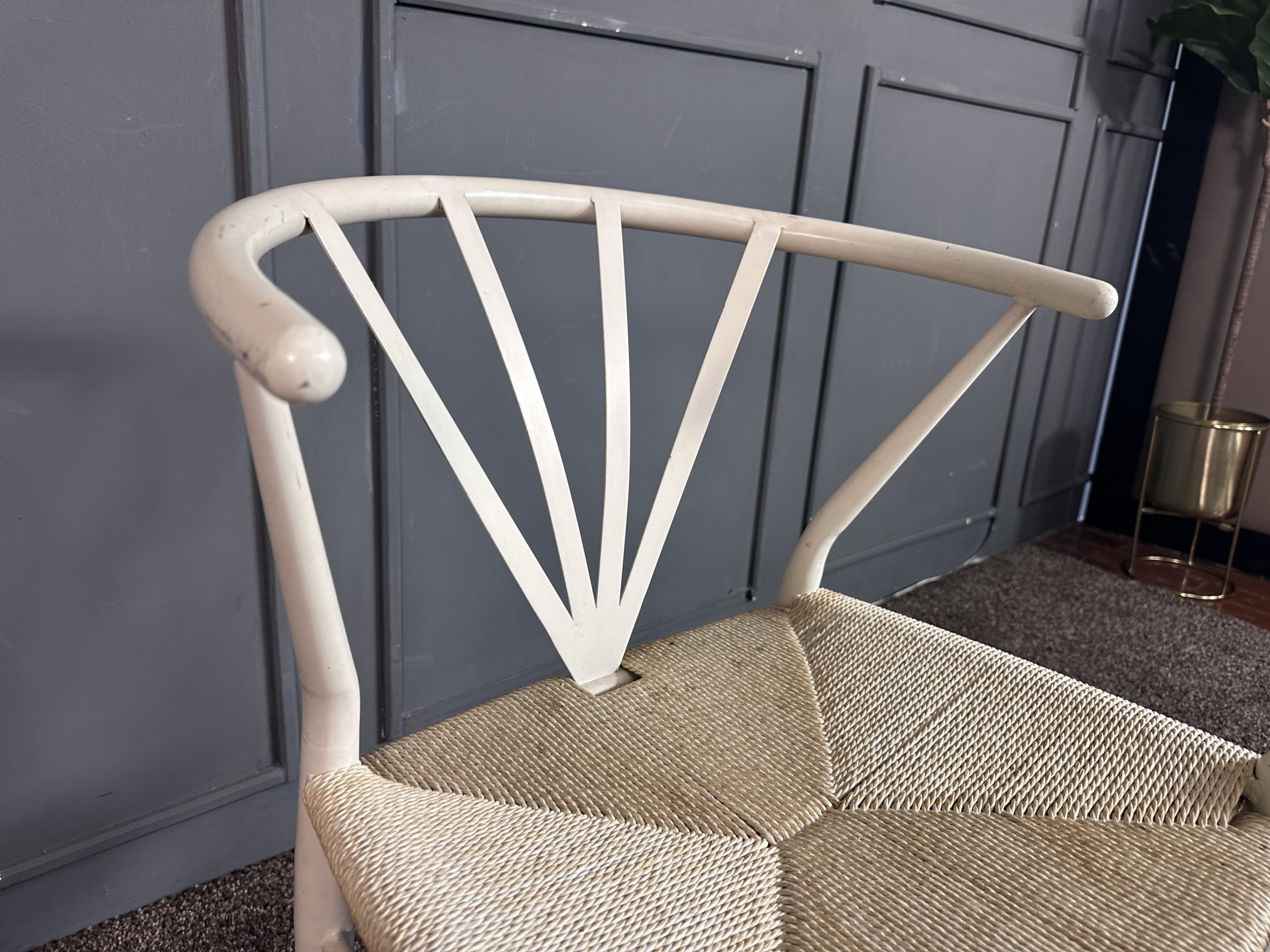 เก้าอี้ Whishbone Chair เบาะเชือกถัก โครงขาเหล็กสีขาว