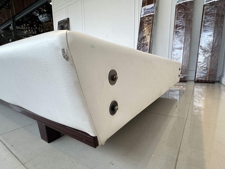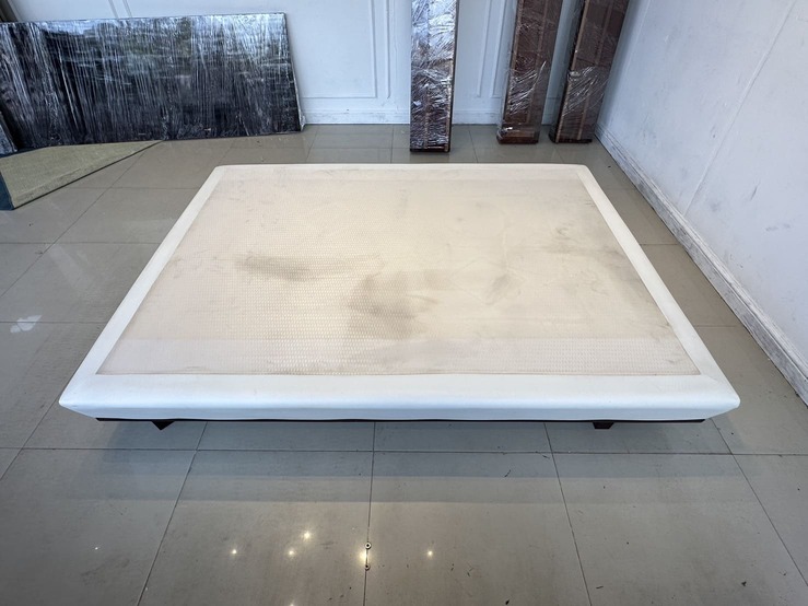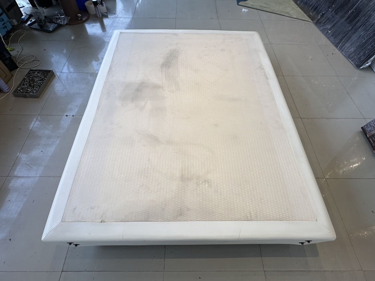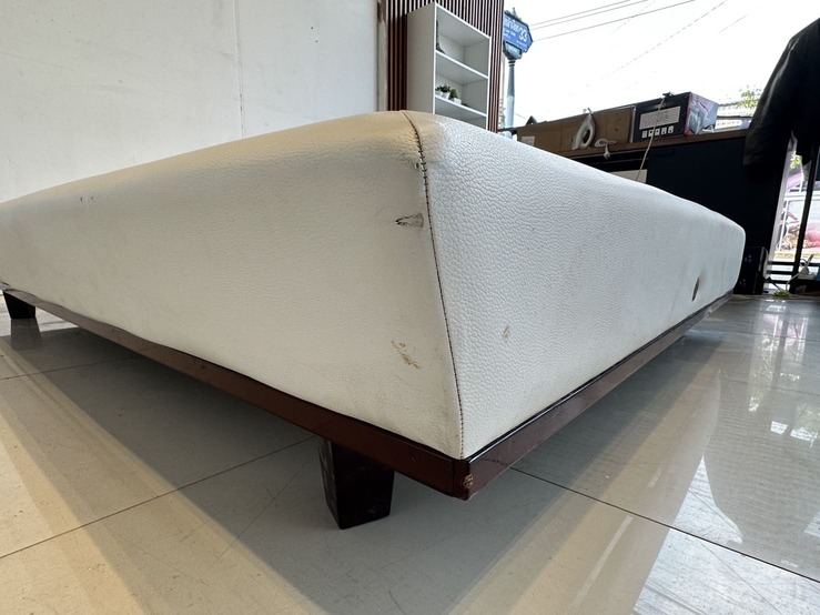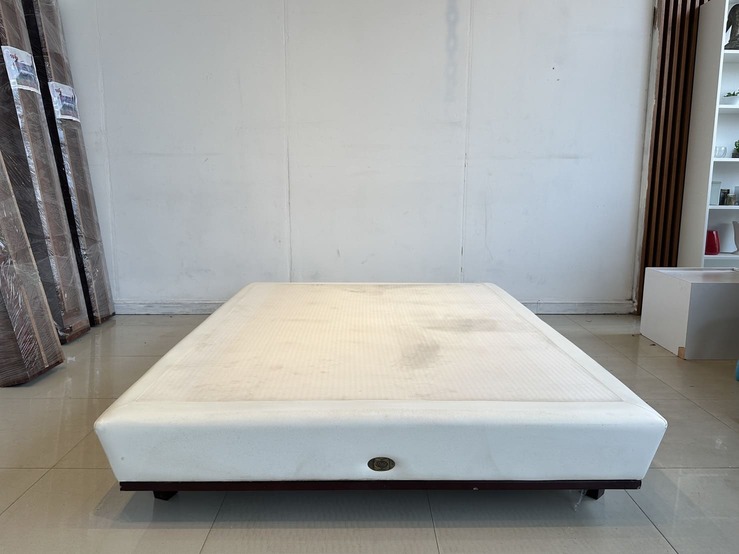 เตียงนอน ฐานสำเร็จรูป แบรนด์ sealy รุ่น ellte โครงขาไม้ยาง ฐานหุ้มหนังพียูสีขาว