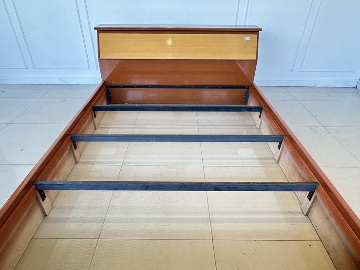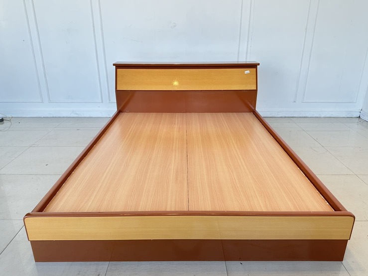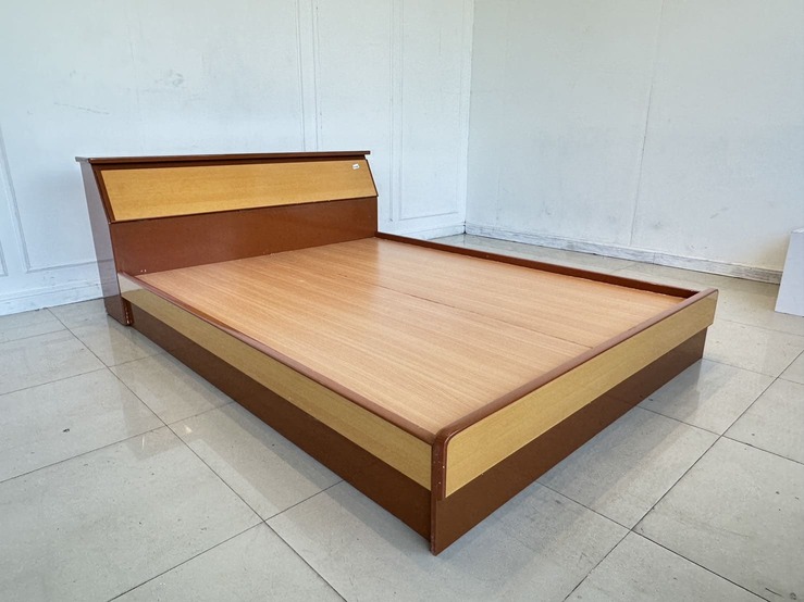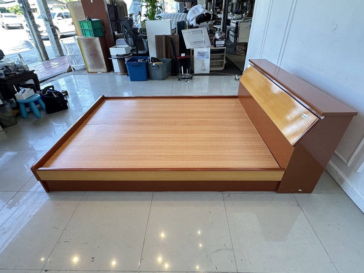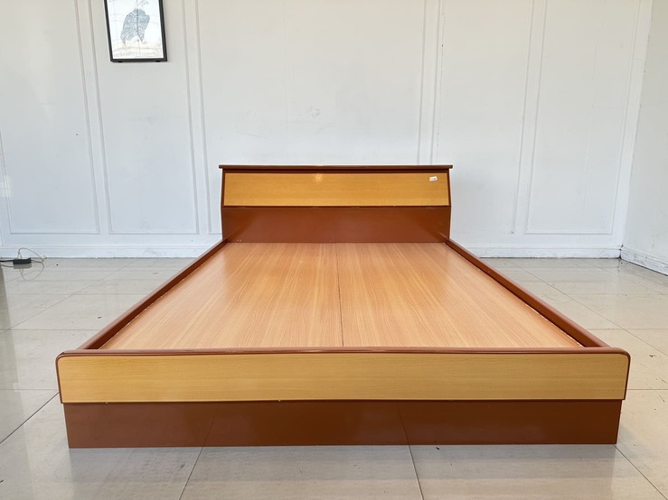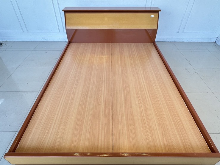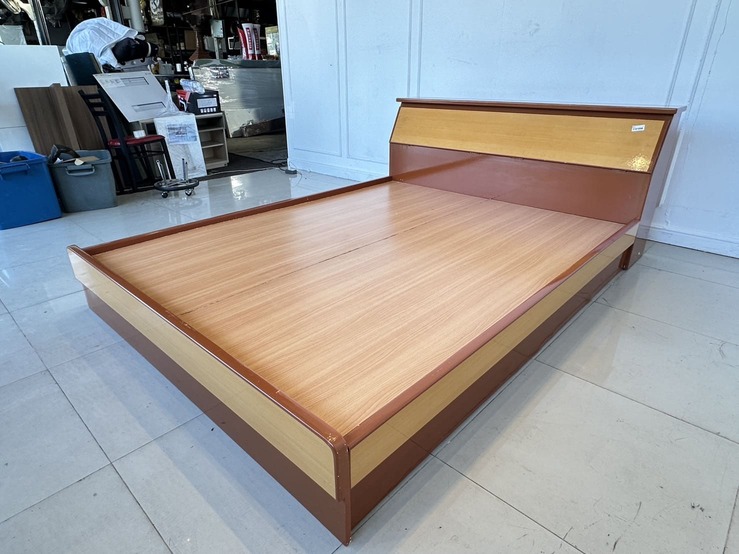 เตียงนอน 5 ฟุต โครงไม้ MDF แผ่นรองไม้อัด สีน้ำตาลลายไม้