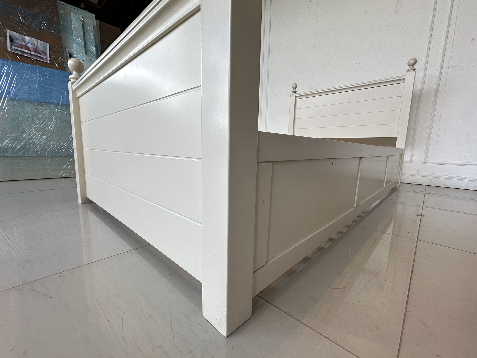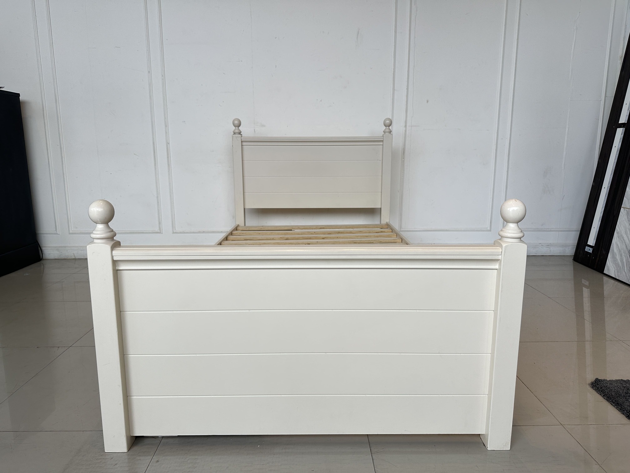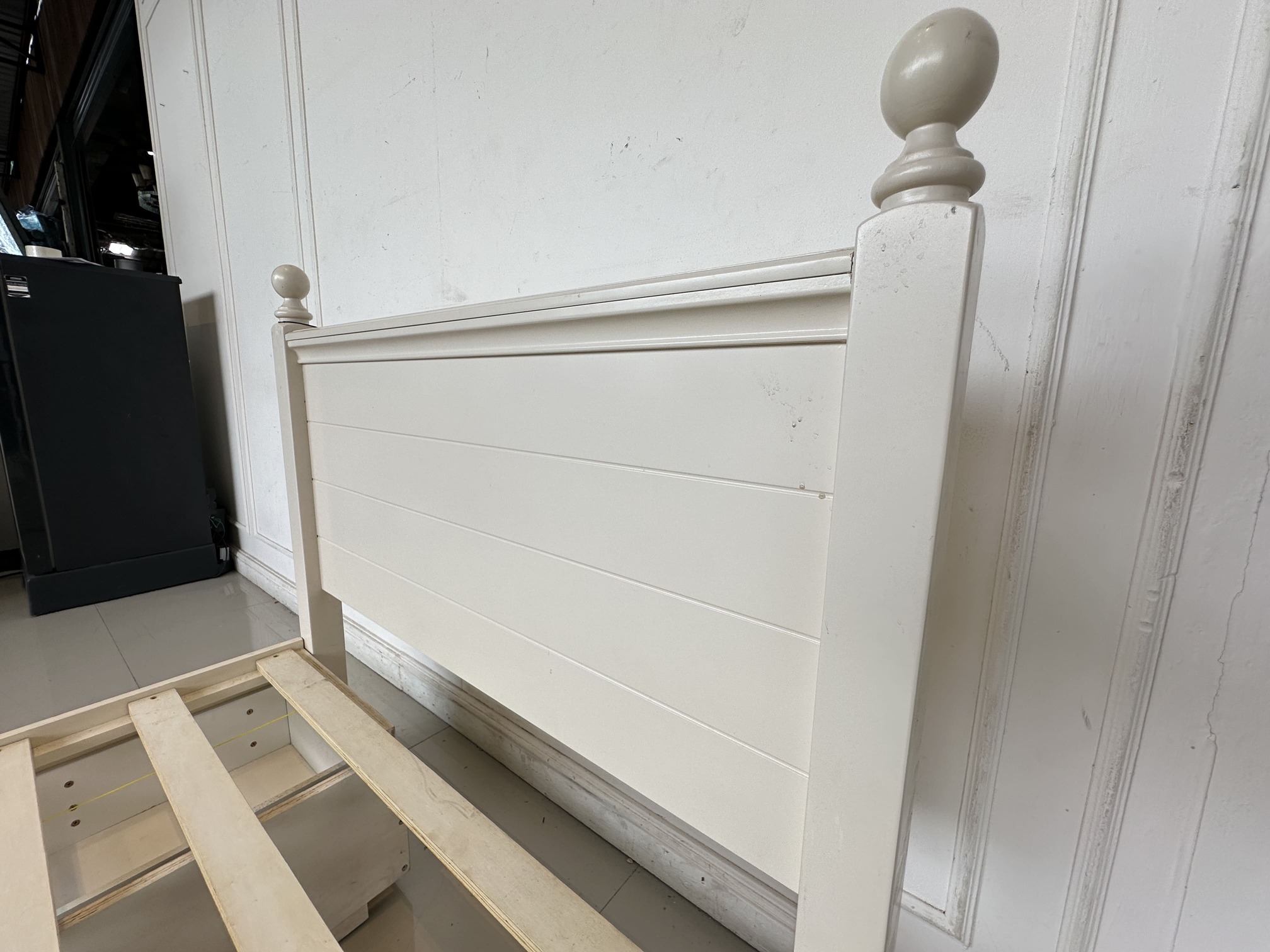 เตียงไม้จริง สไตล์วินเทจ 3.5 ฟุต ด้านข้างมี 3 ลิ้นชักสีครีม