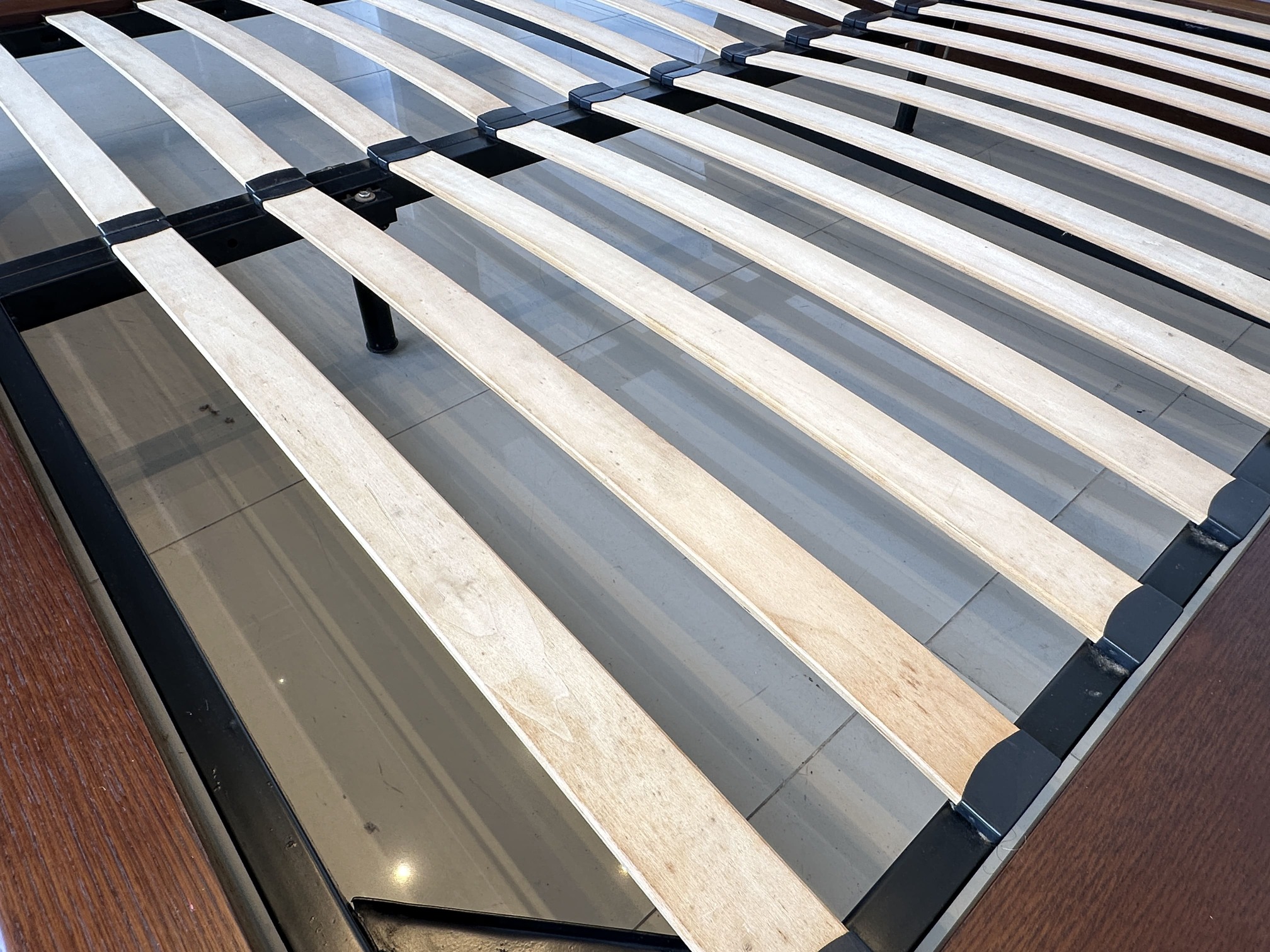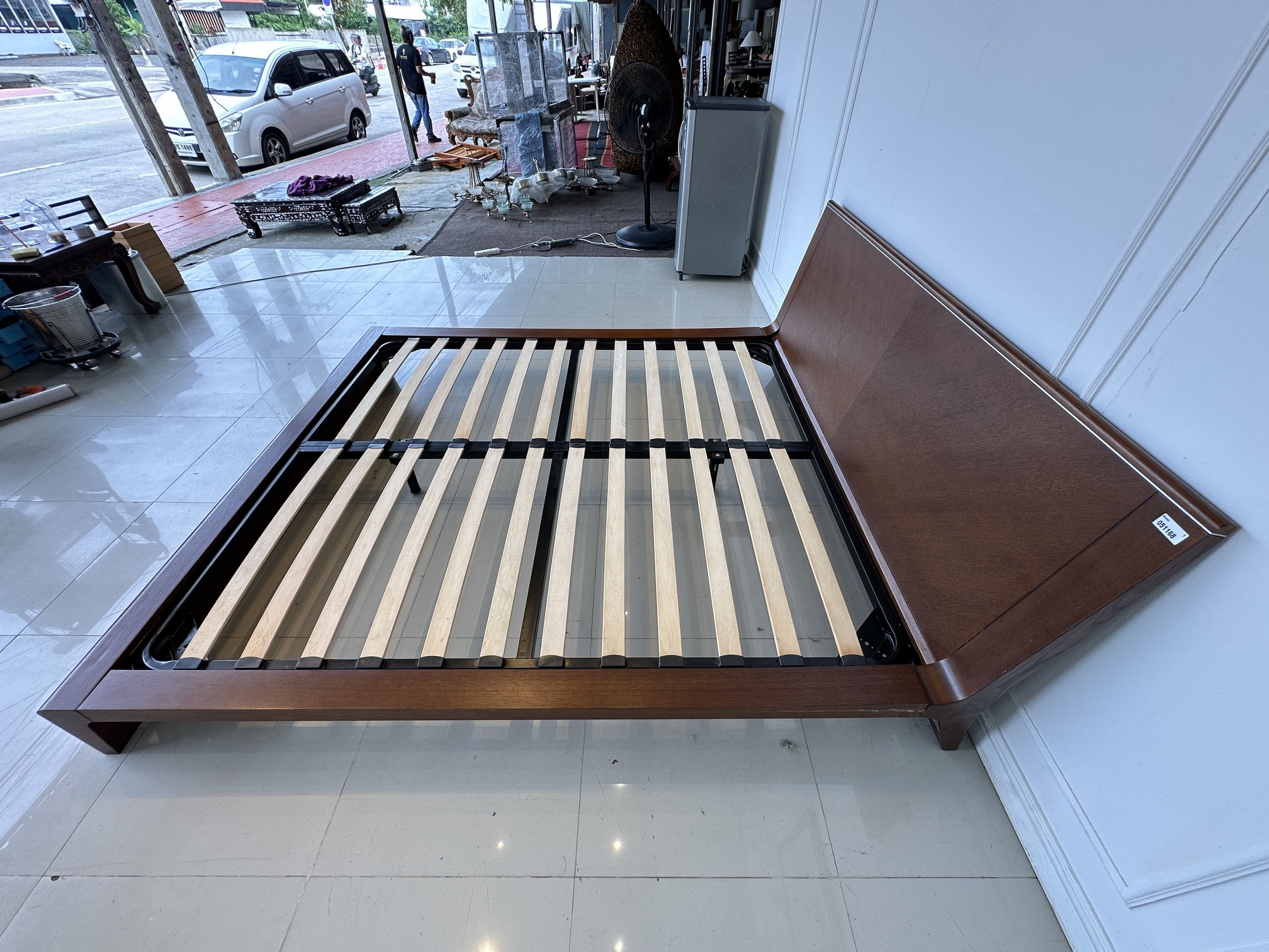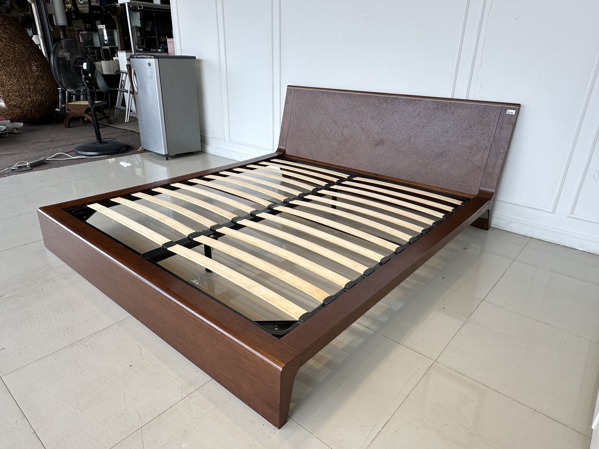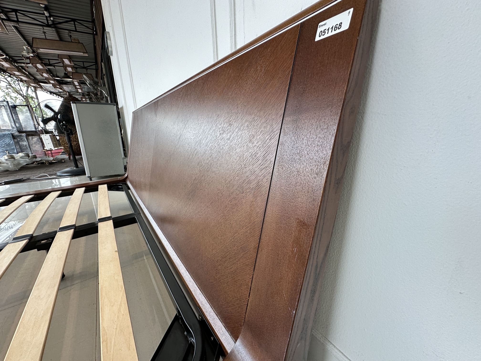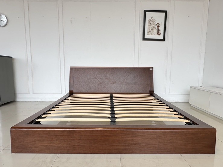 เตียงไม้จริง 6 ฟุต แผ่นรองโครงเหล็กติดแผ่นไม้สนระแนง โครงขาไม้จริงสีน้ำตาล