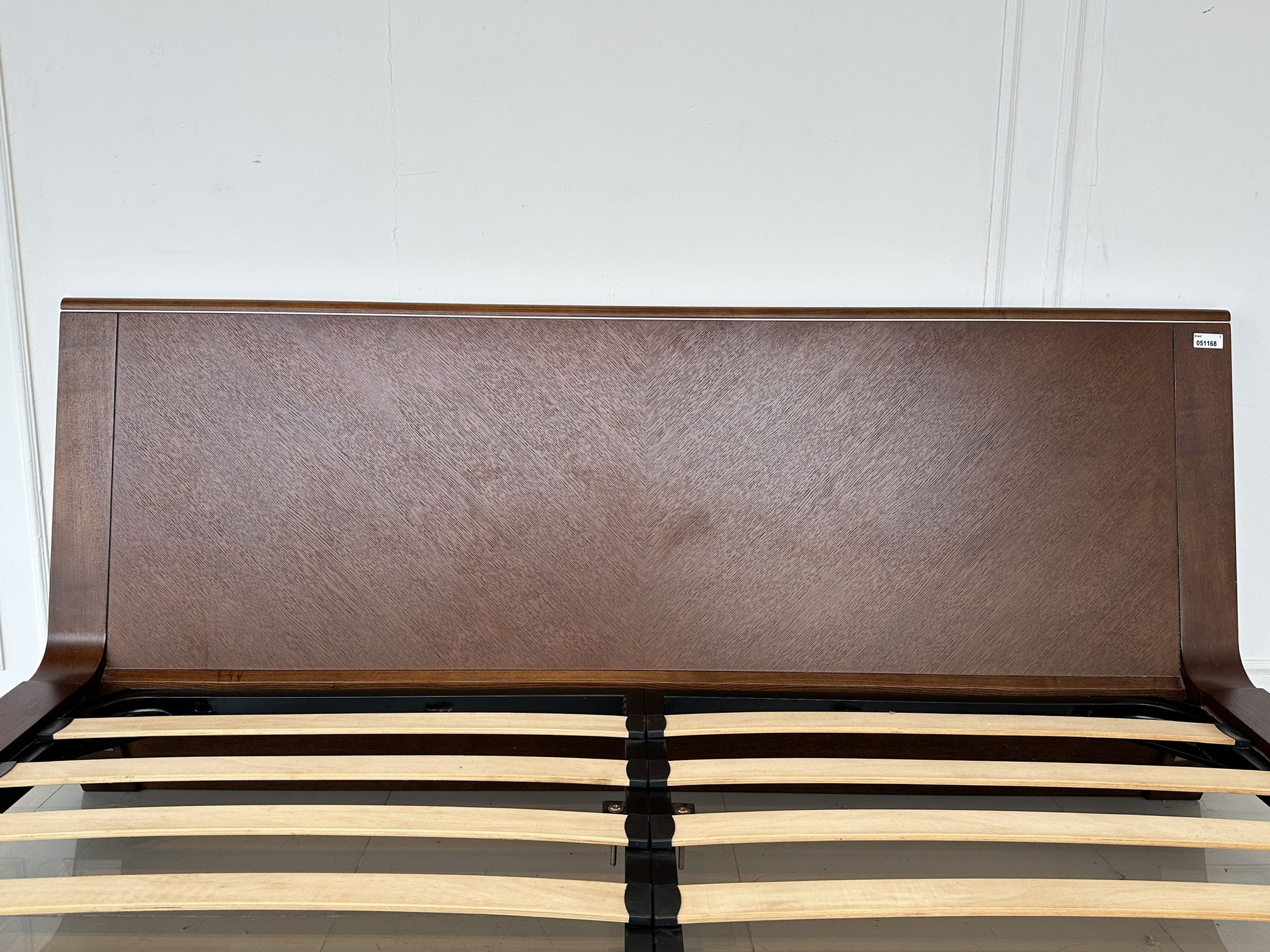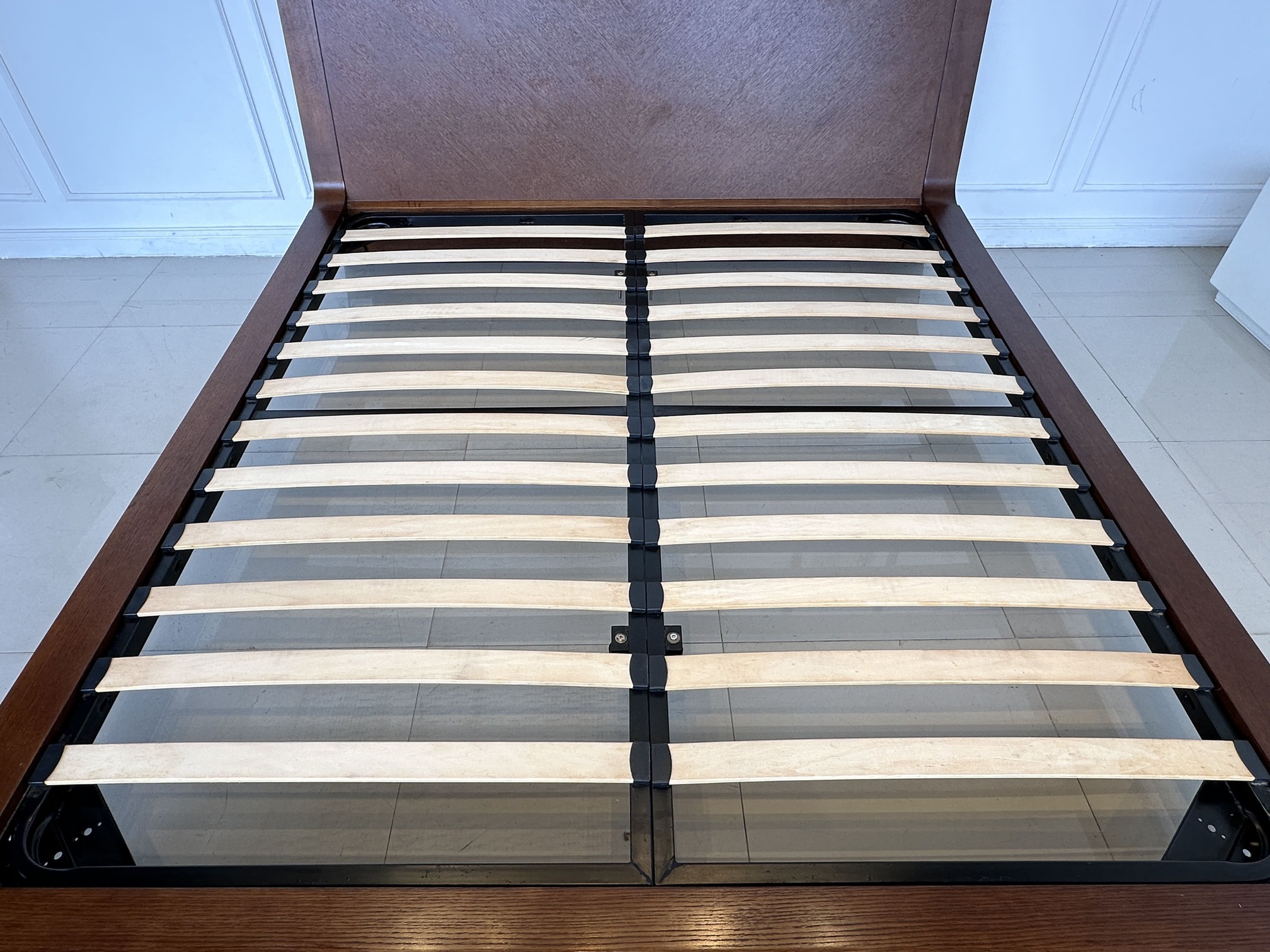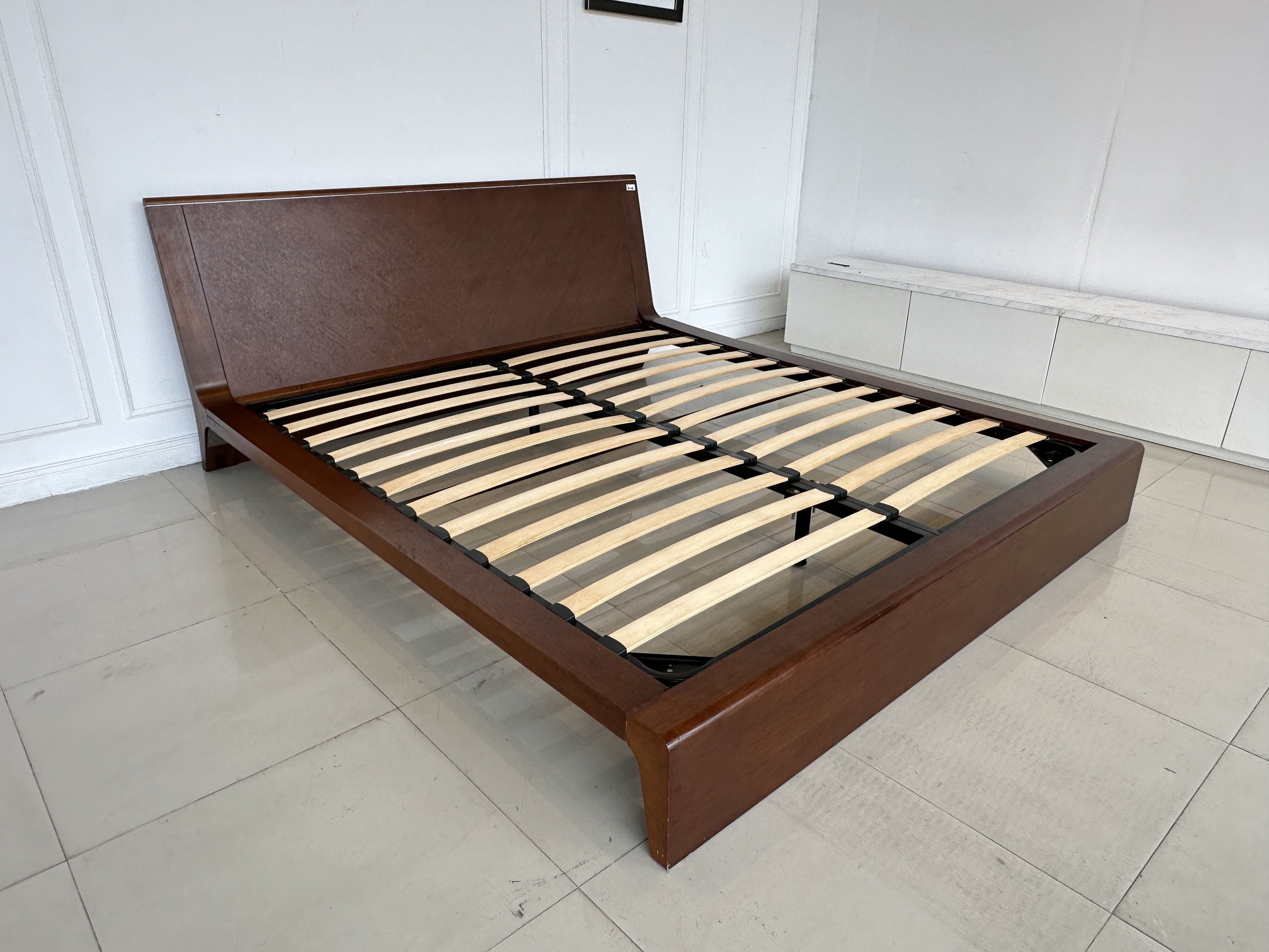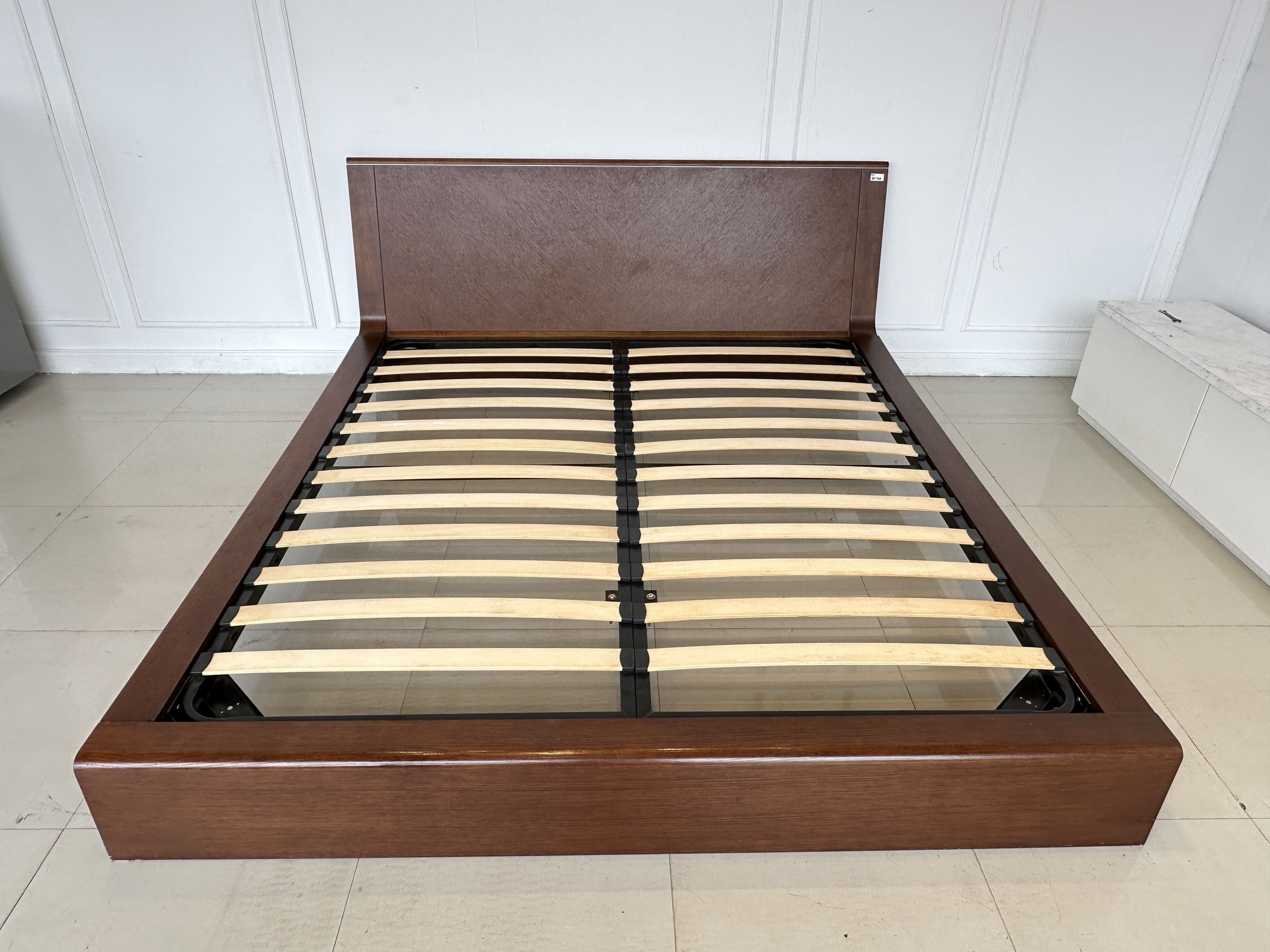 เตียงไม้จริง 6 ฟุต แผ่นรองโครงเหล็กติดแผ่นไม้สนระแนง โครงขาไม้จริงสีน้ำตาล