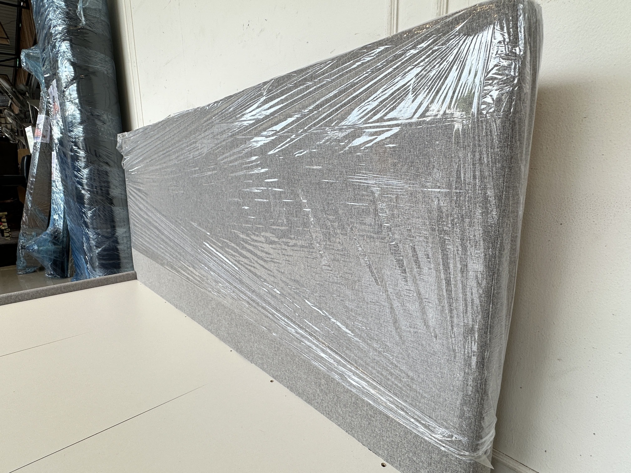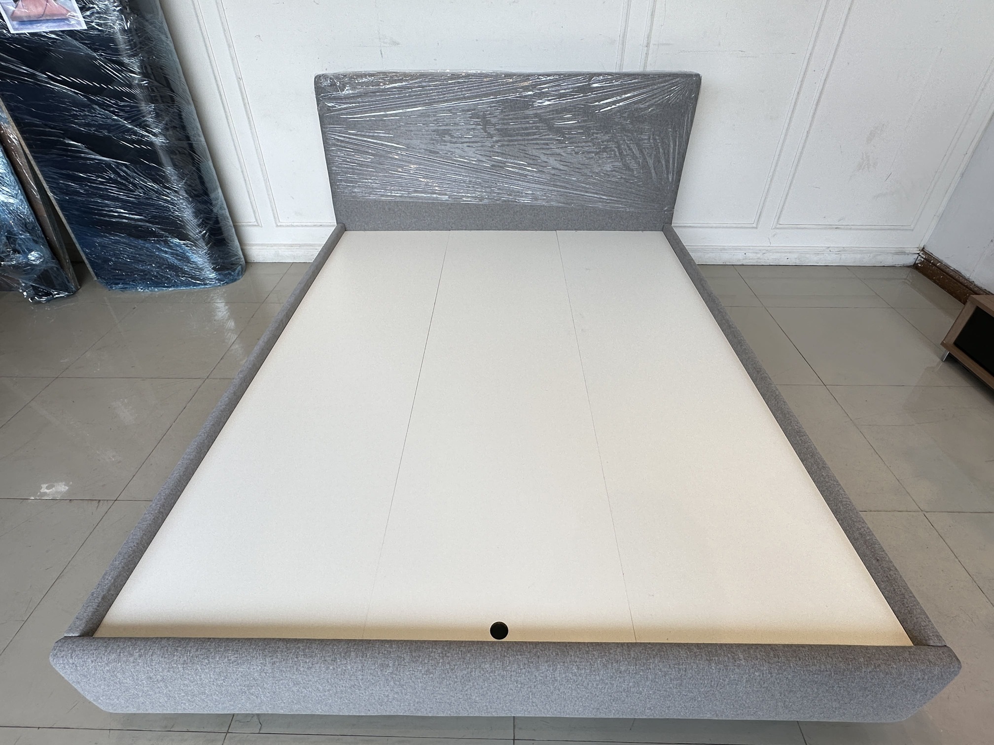 เตียง 5 ฟุต โครงเตียงไม้ MDF บุนวมหุ้มผ้าสีเทา
