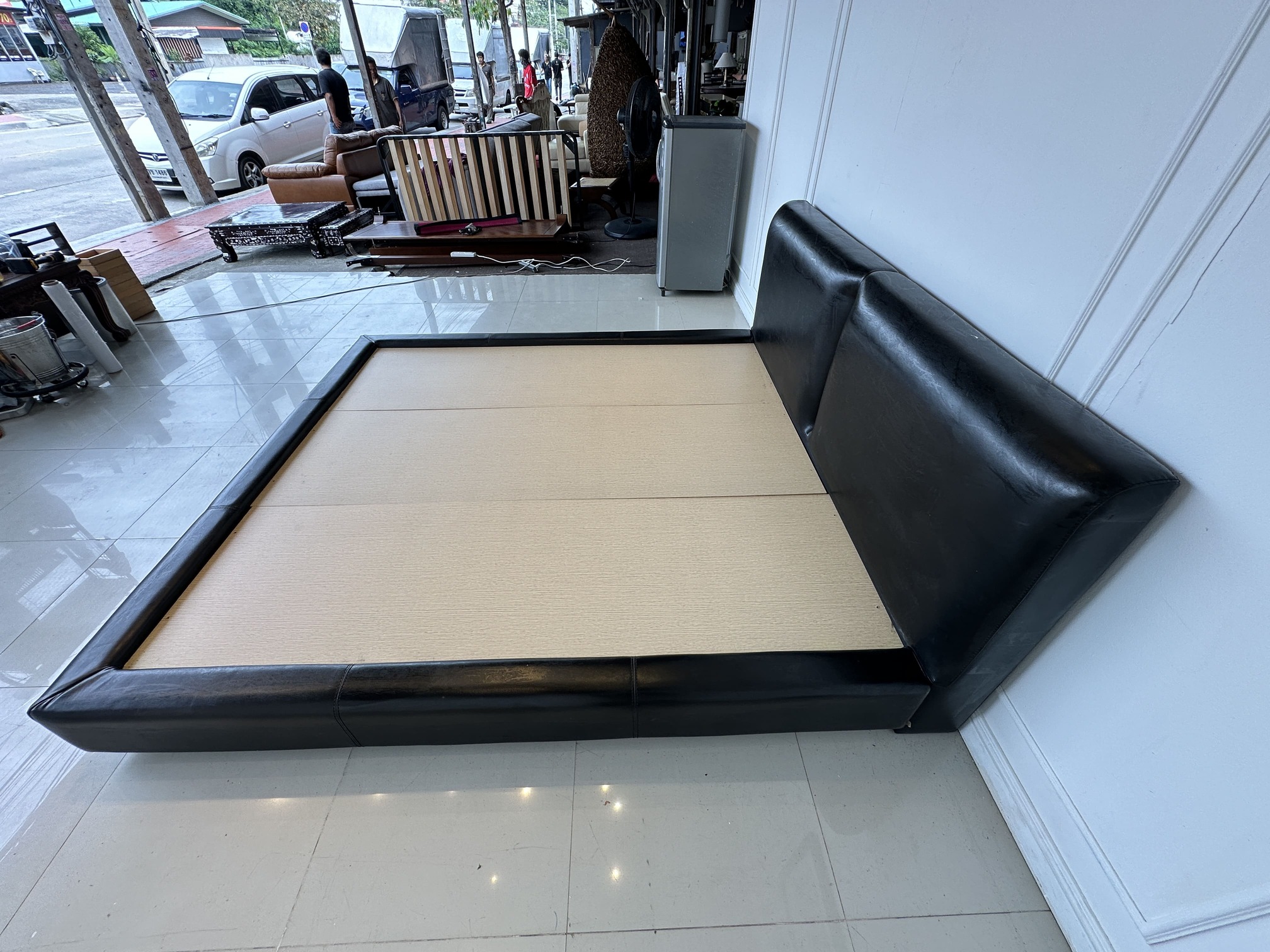 เตียง 6 ฟุต แบรนด์ SB FURNITURE โครงบุนวมหุ้มหนัง PU สีดำ
