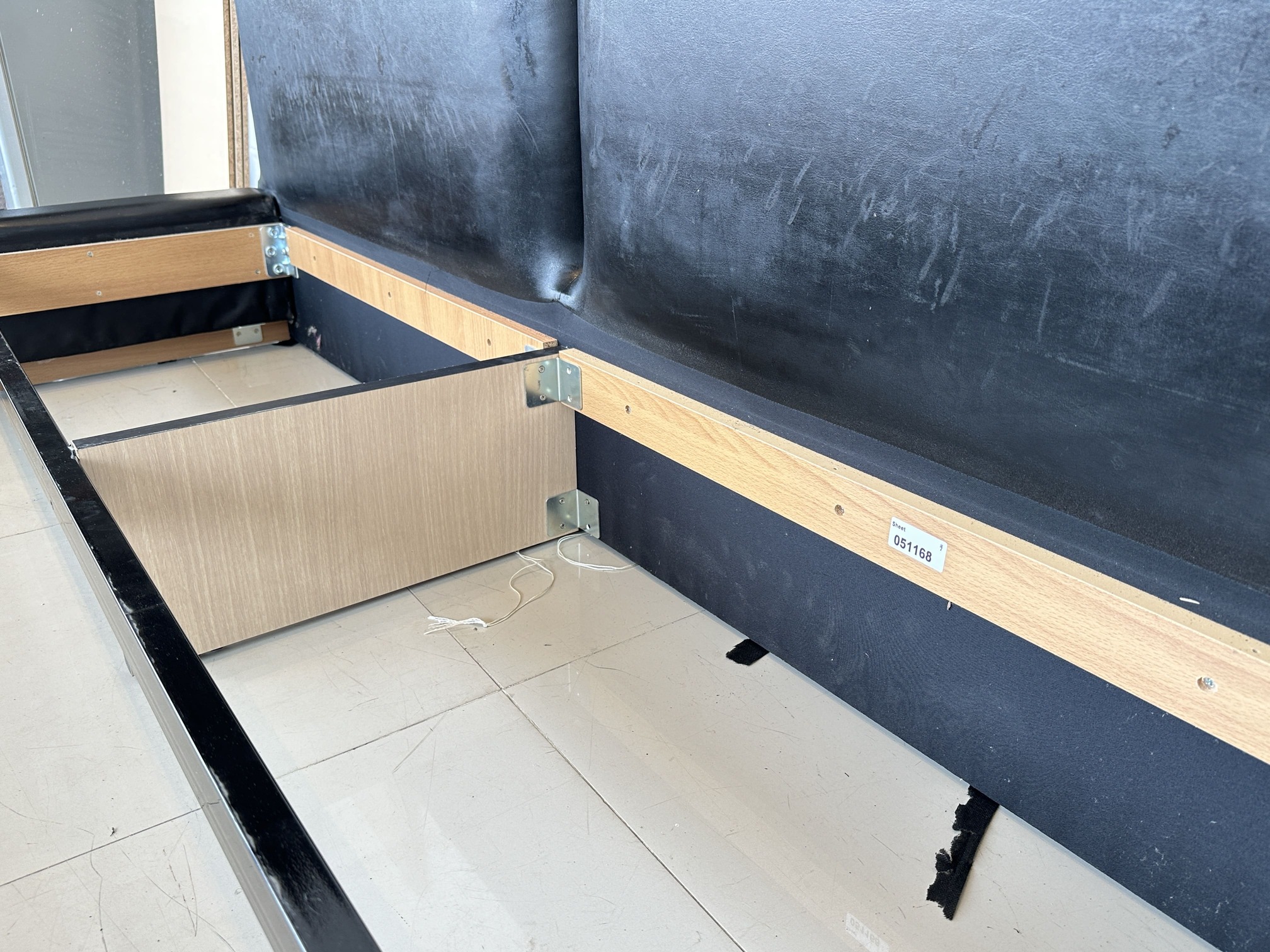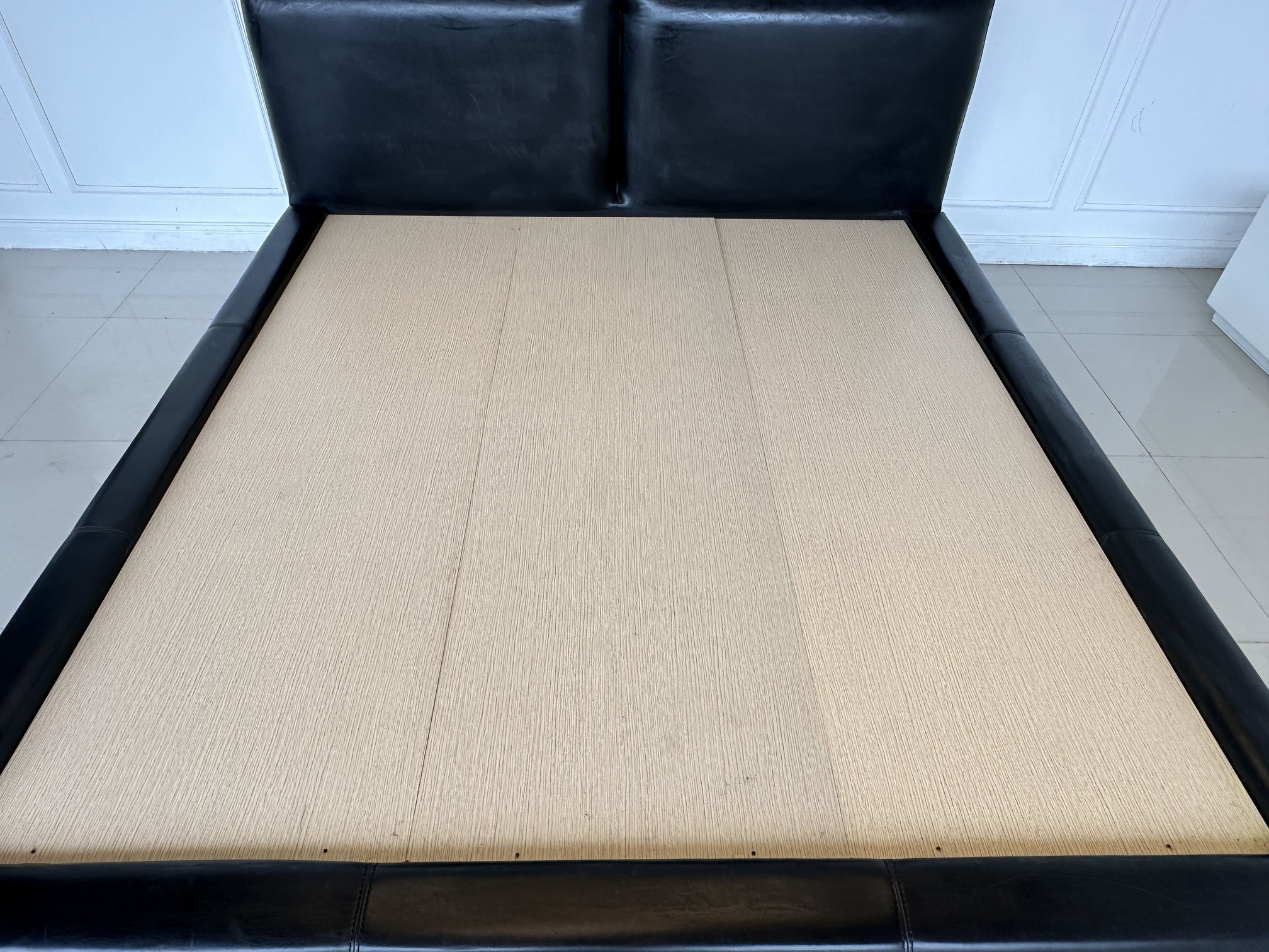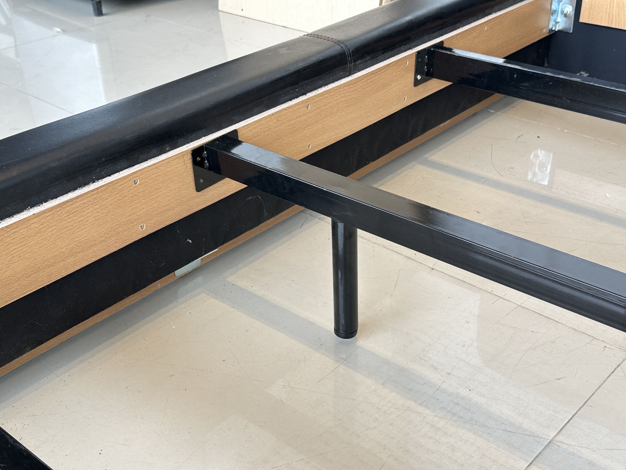 เตียง 6 ฟุต แบรนด์ SB FURNITURE โครงบุนวมหุ้มหนัง PU สีดำ โครงฐานไม้ MDF คานเหล็ก 3 ท่อน แผ่นรองไม้อัด 3 แผ่น